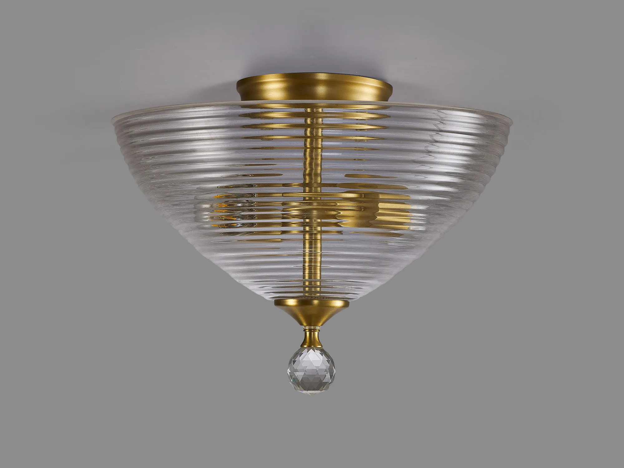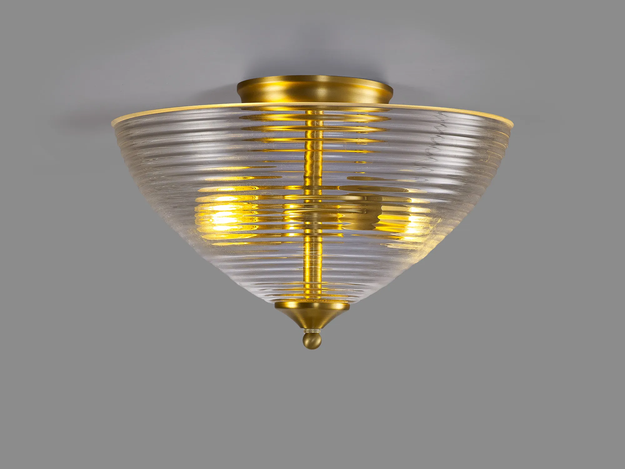 Quebec Semi Flush Ceiling Light (FRAME ONLY), 2 x E27, Satin Gold