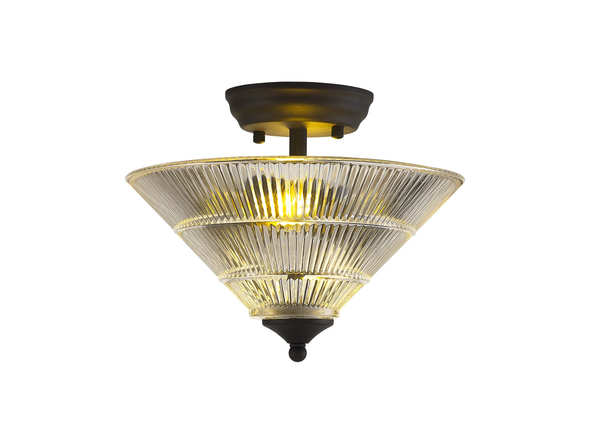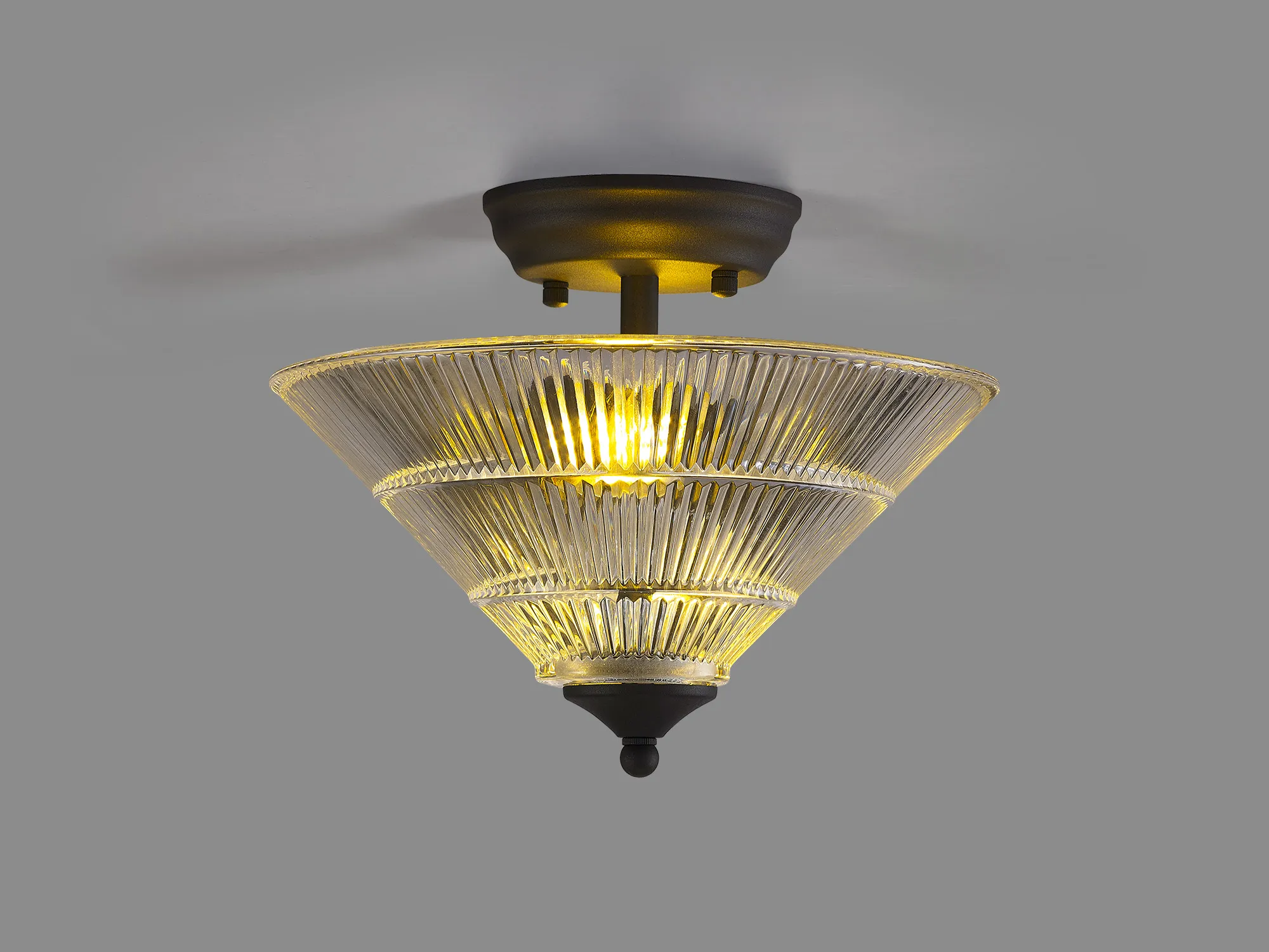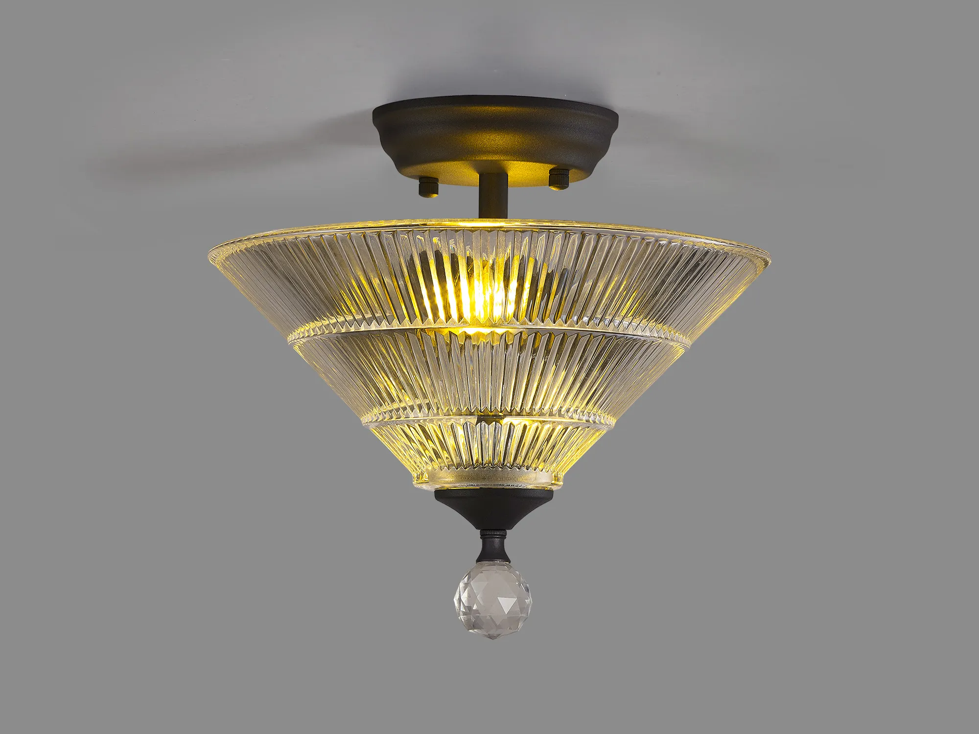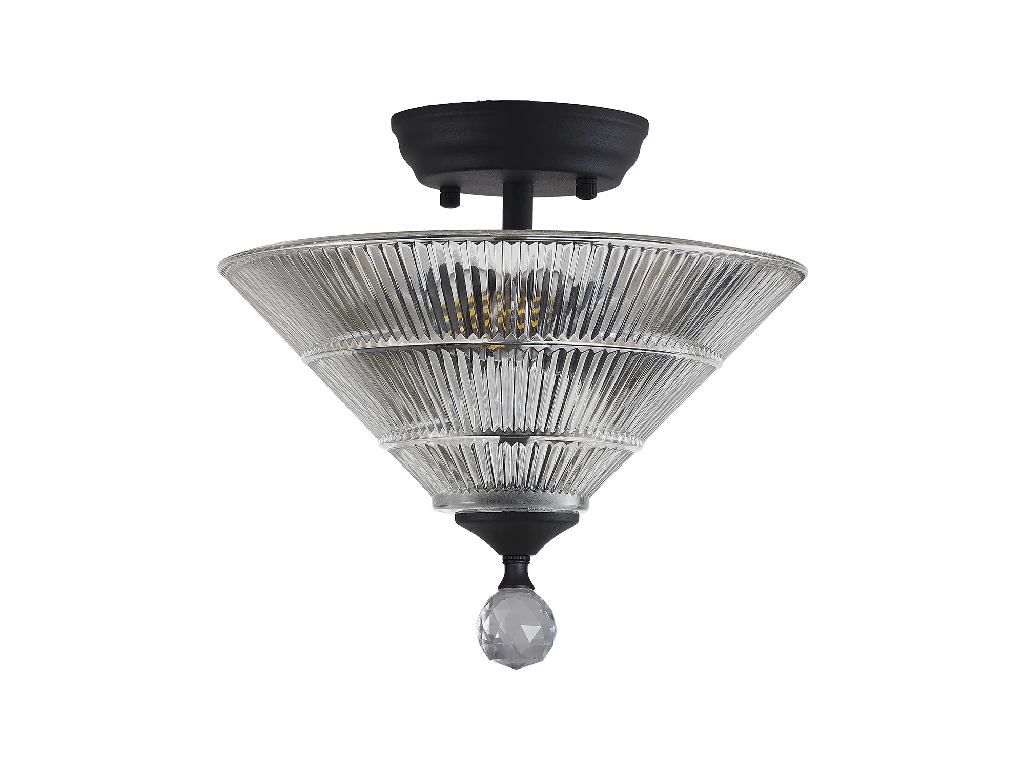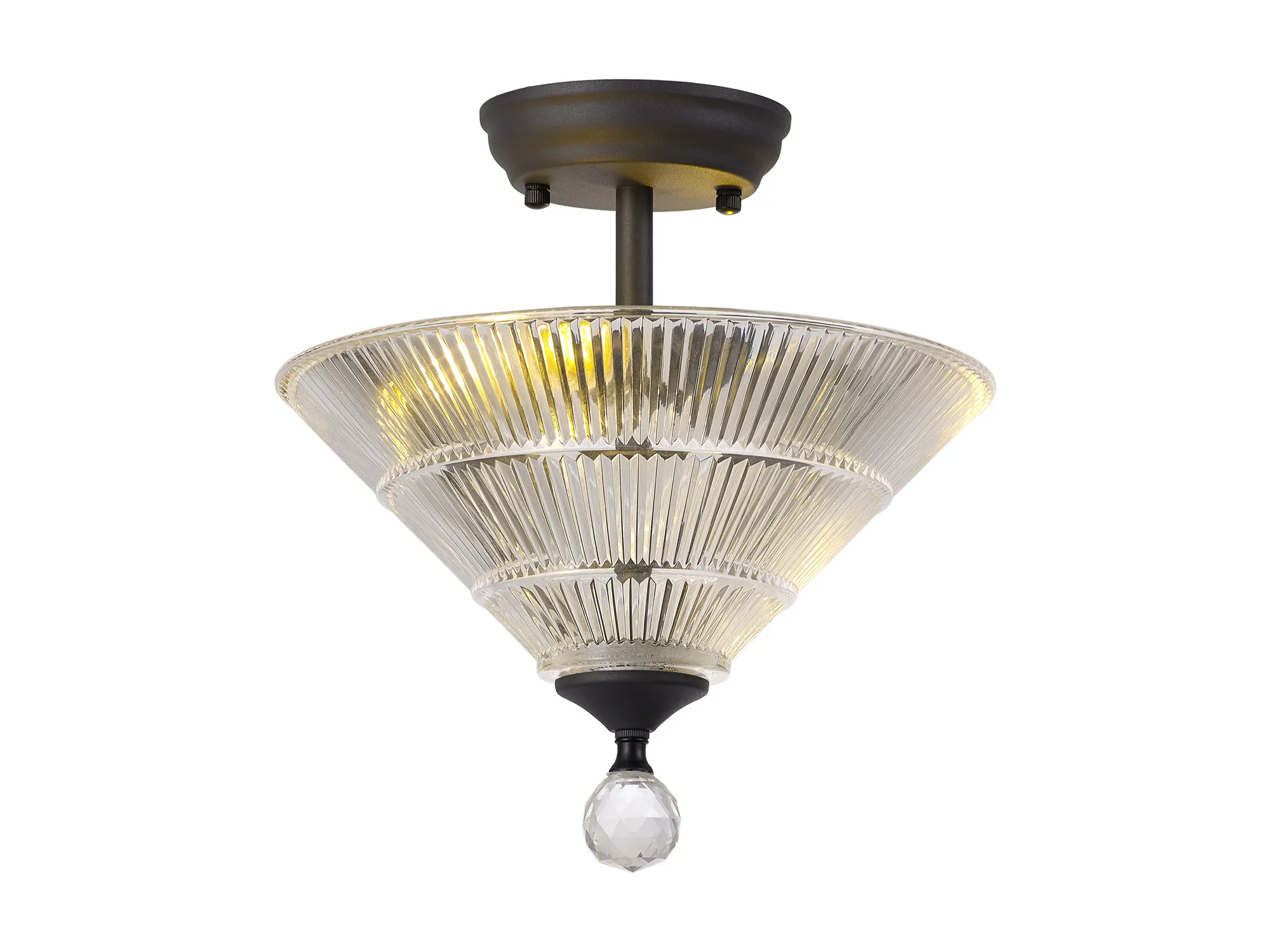 Quebec 2 Light Semi Flush Ceiling E27 With Round 26.5cm Prismatic Effect Glass Shade Graphite/Clear