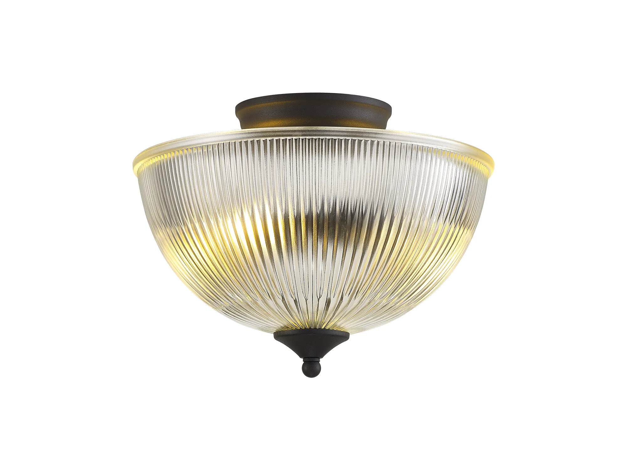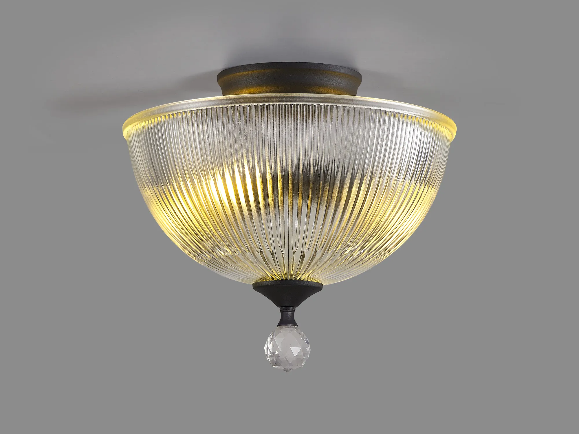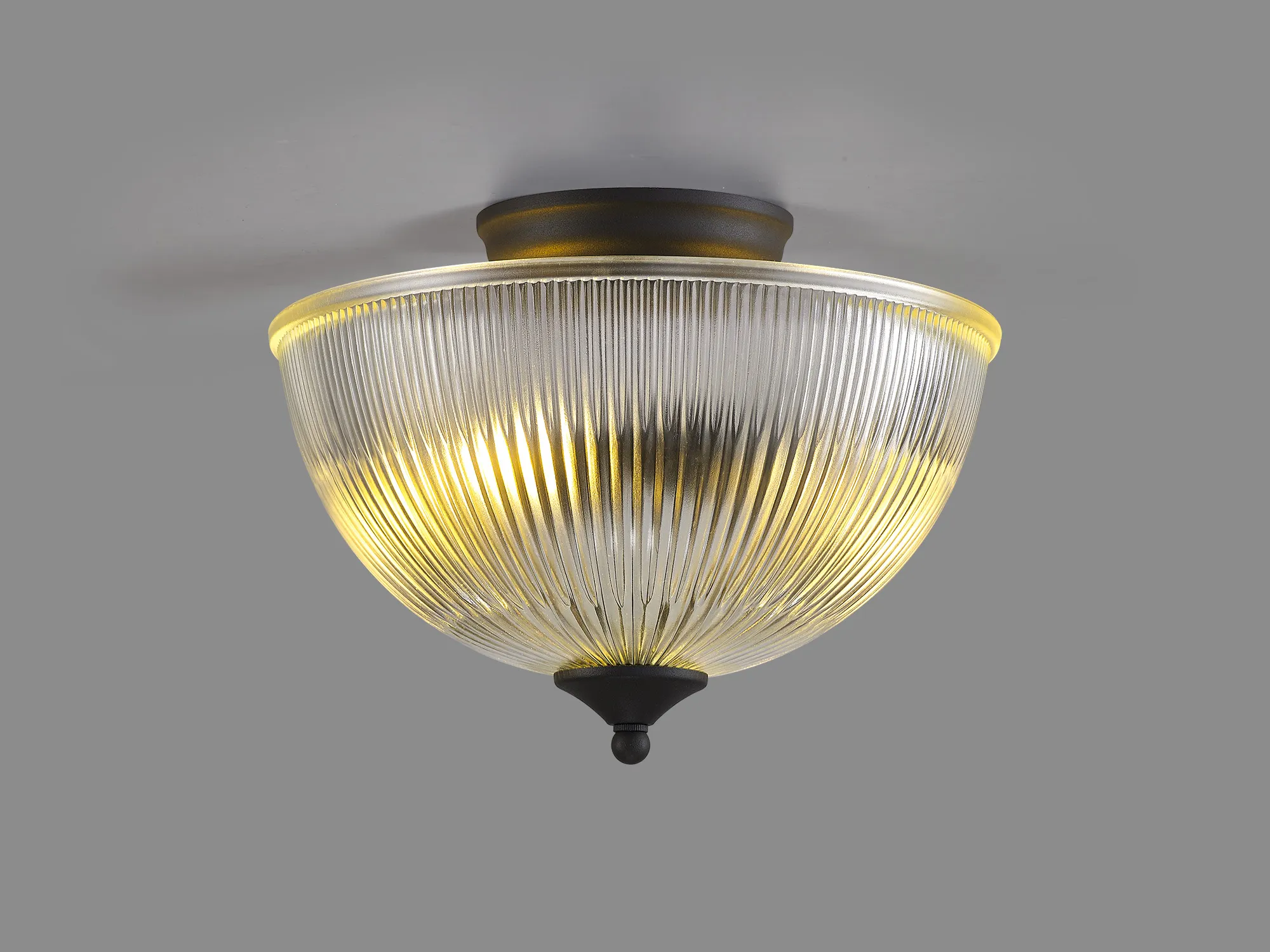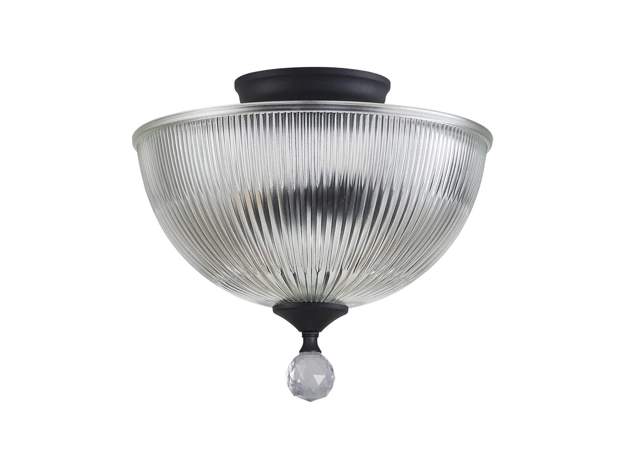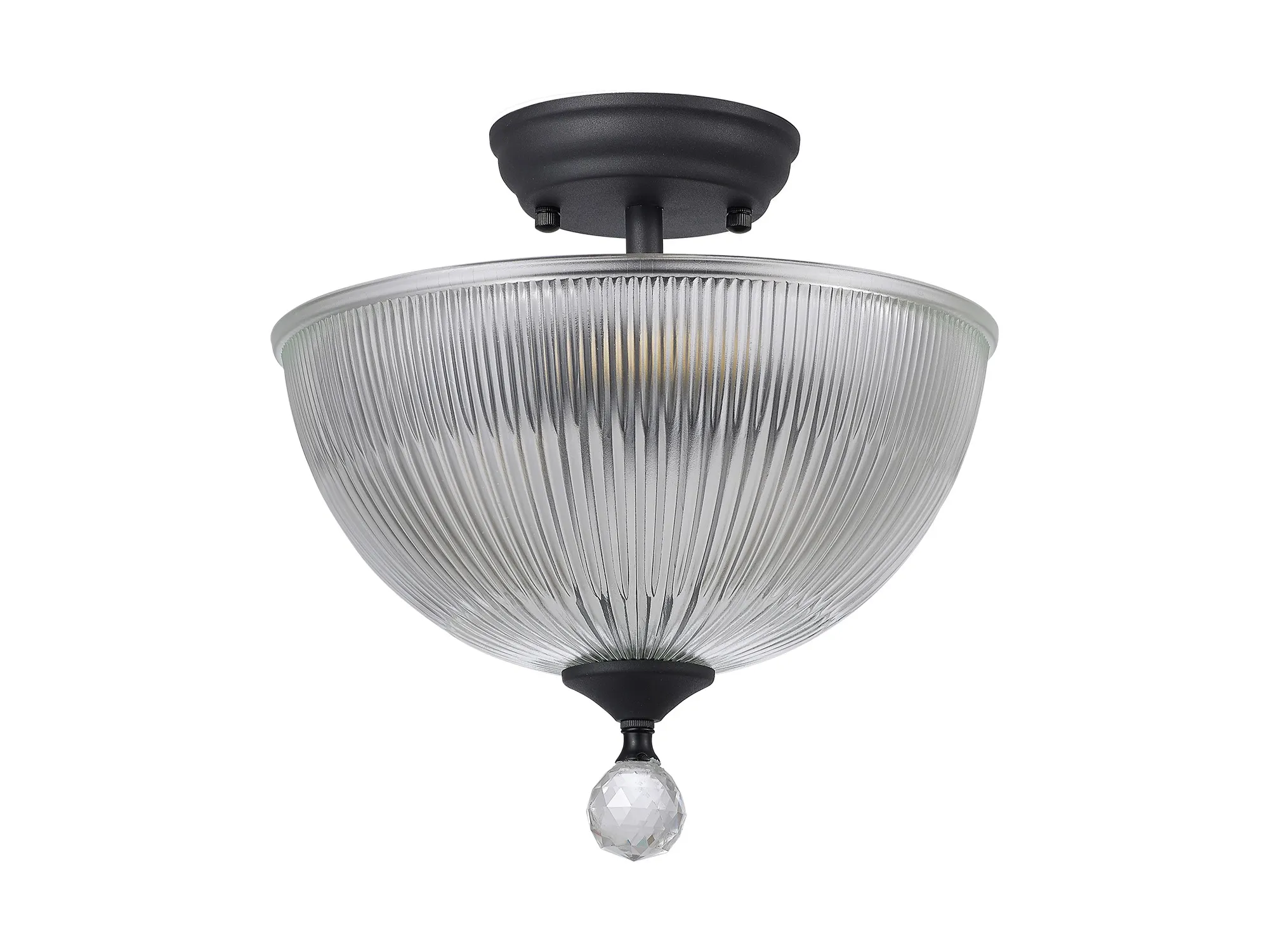 Quebec 2 Light Semi Flush Ceiling E27 With Round 26.5cm Prismatic Effect Glass Shade Graphite/Clear