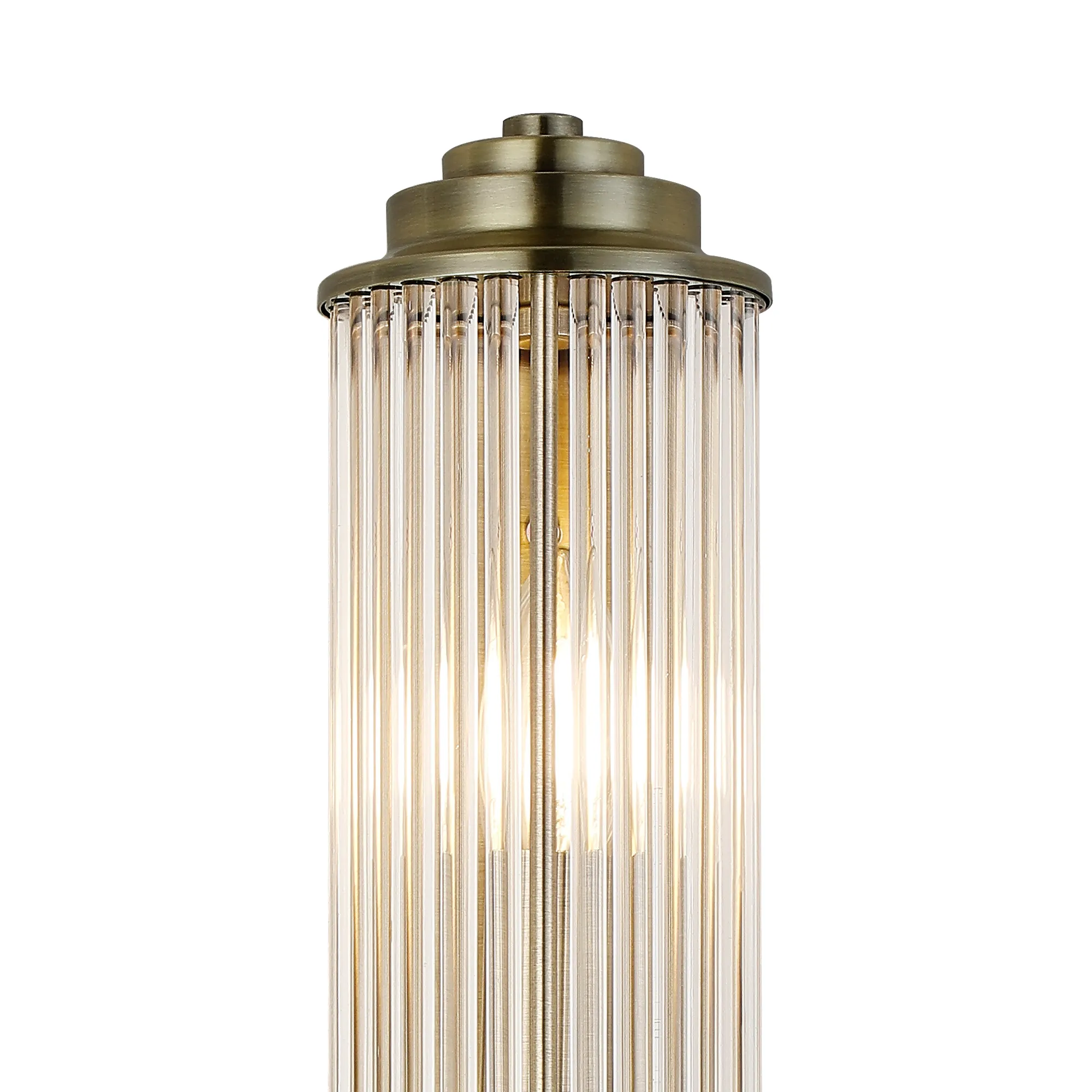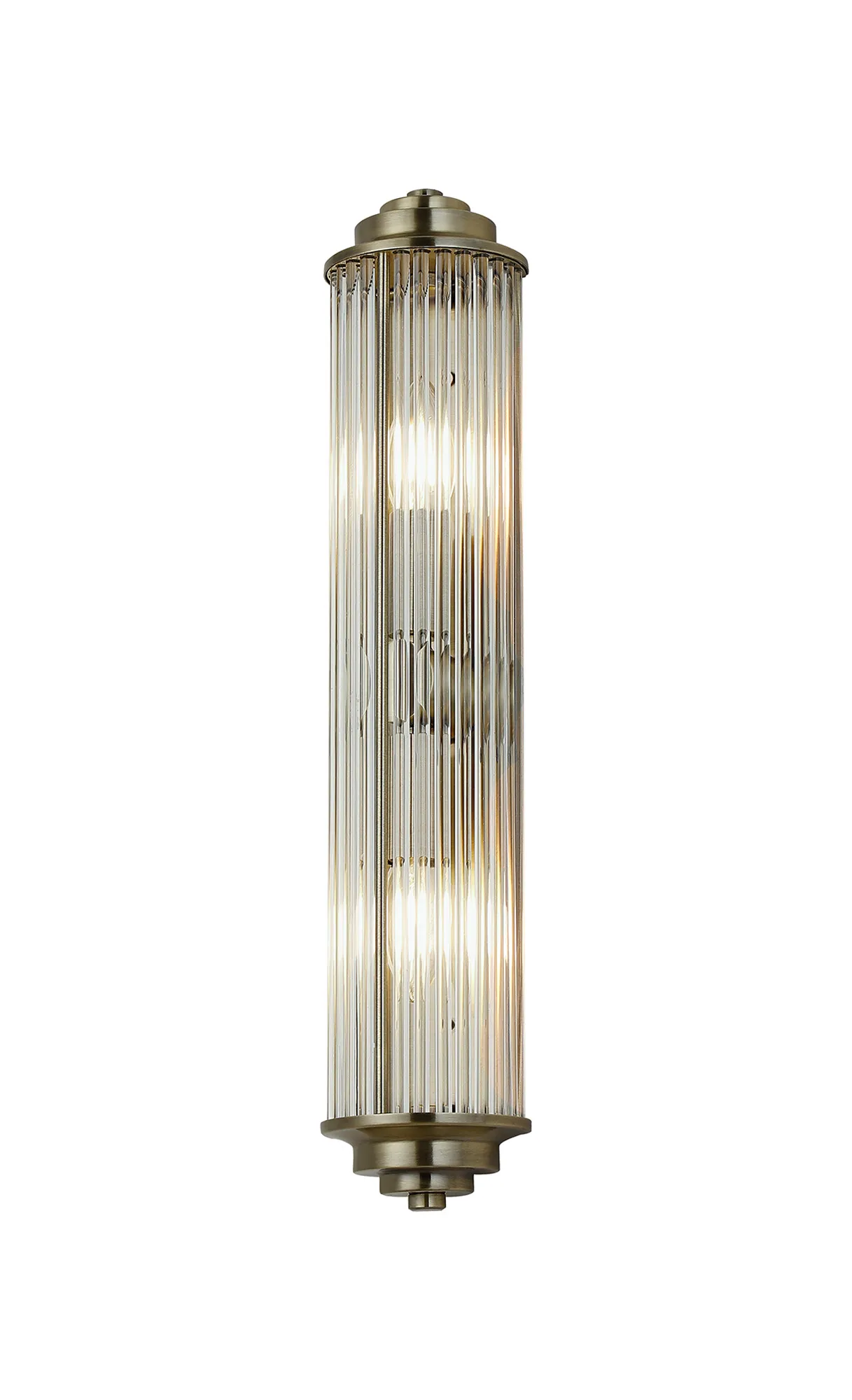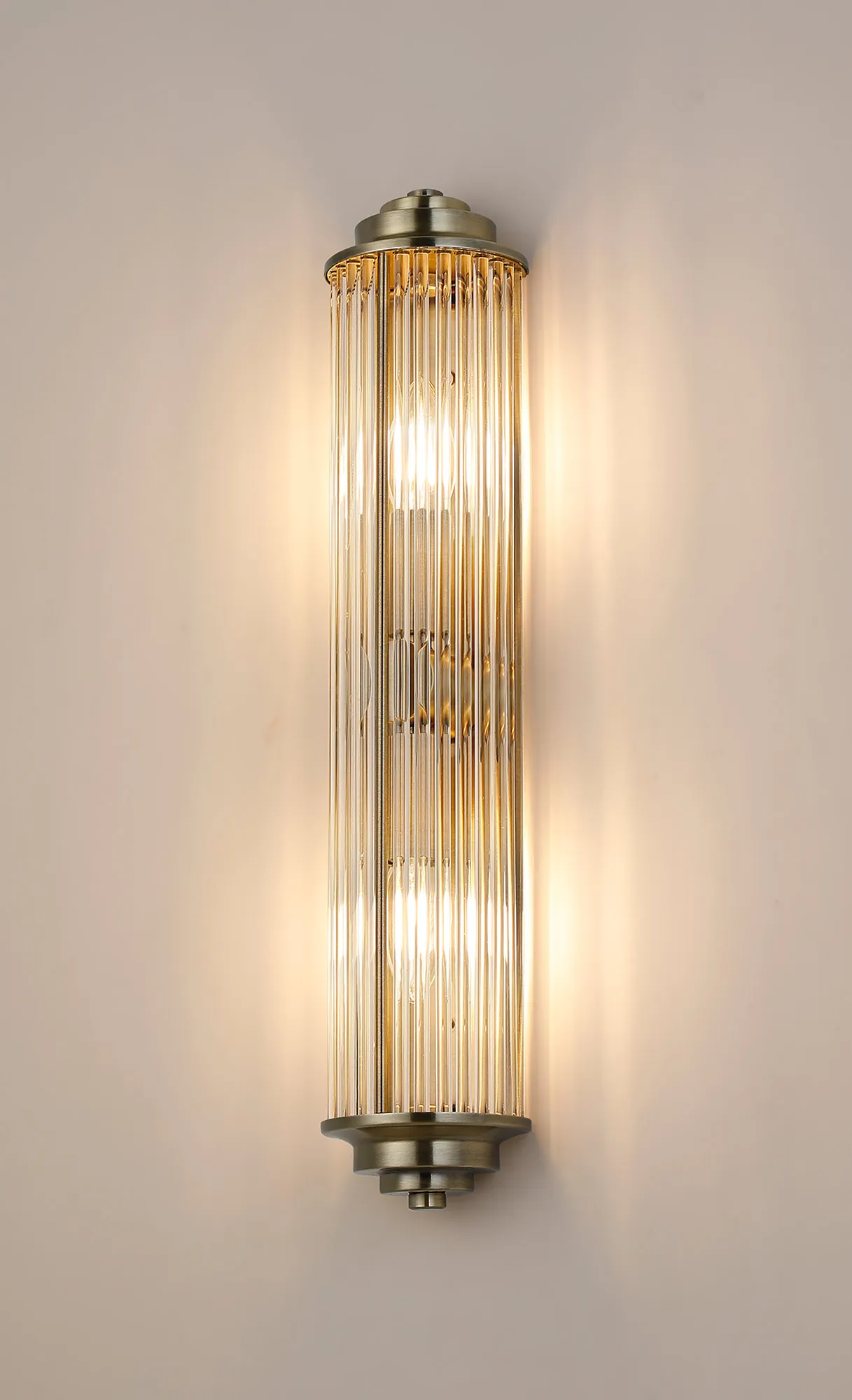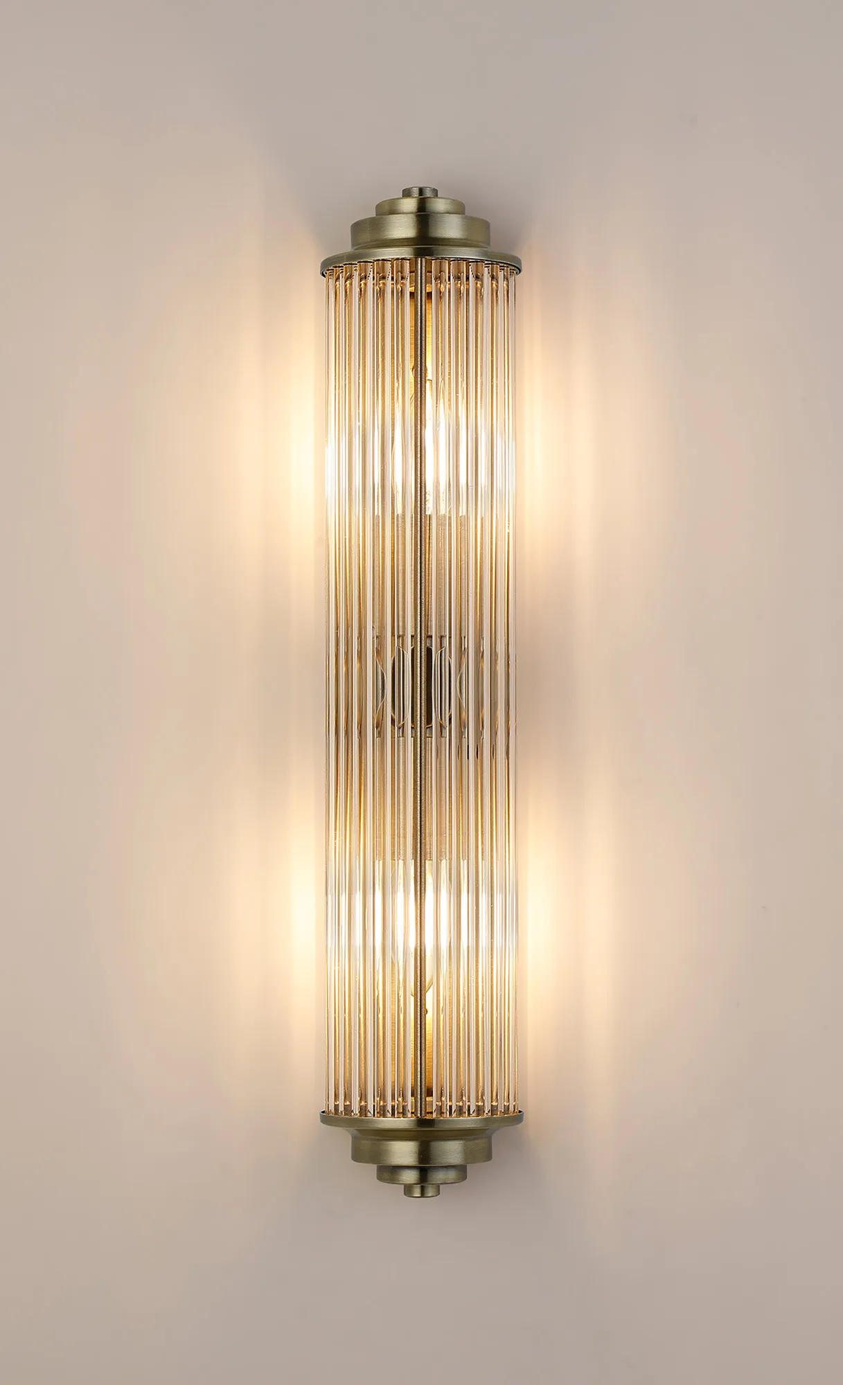 Labrador 2 Light Glass Rod Wall Up & Down, E14, IP44, Antique Brass/Clear Glass Rods