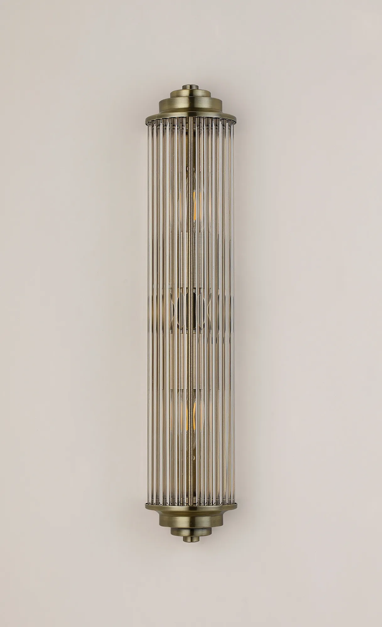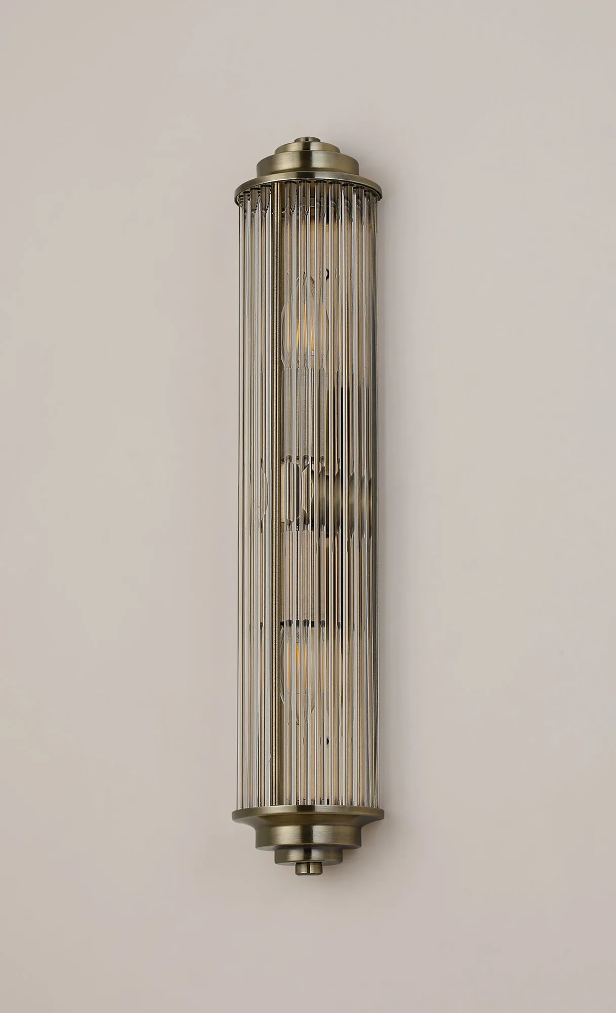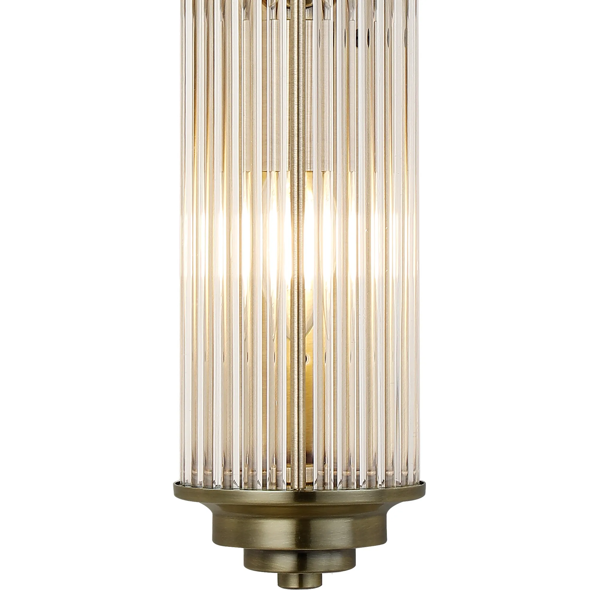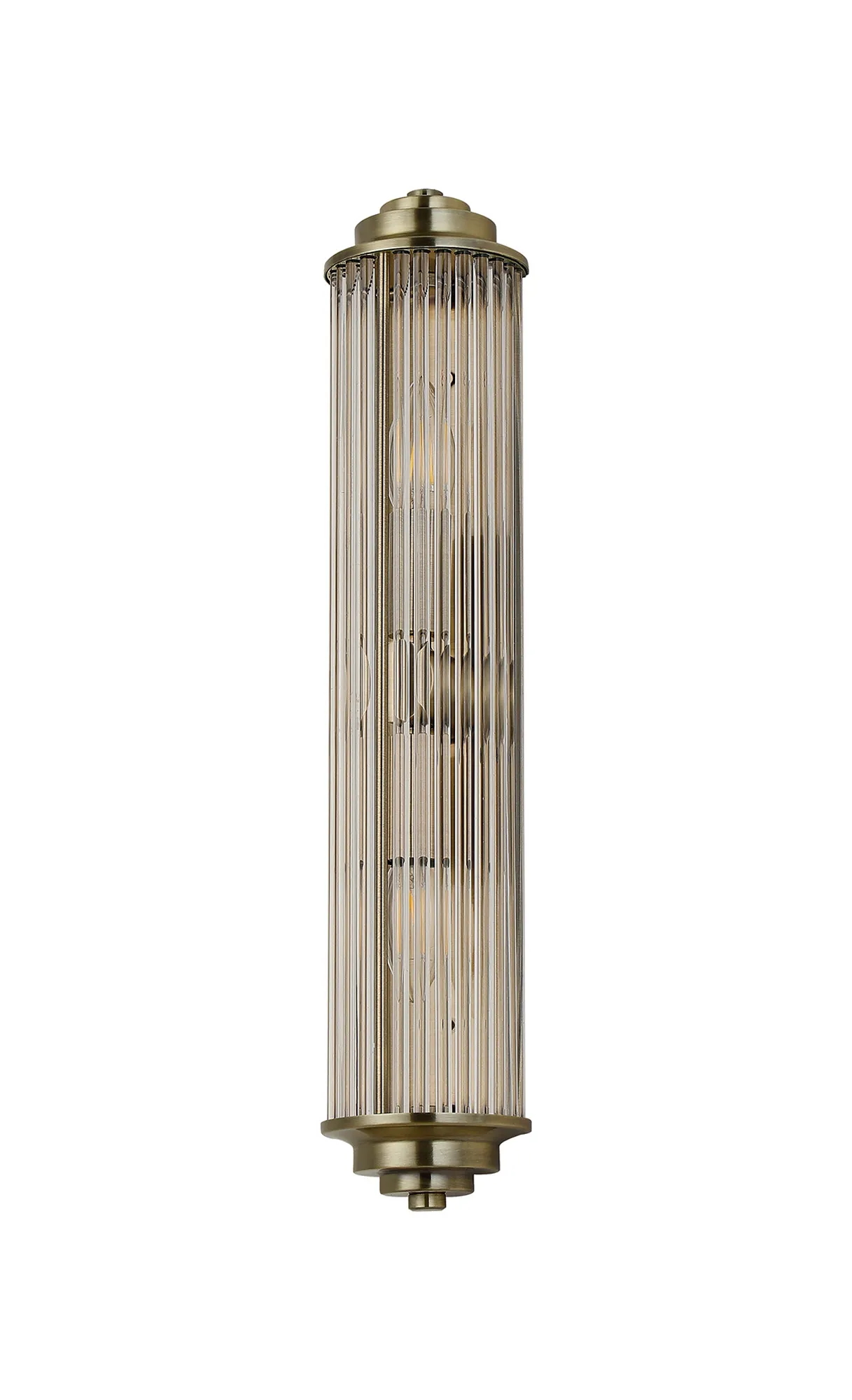 Labrador 2 Light Glass Rod Wall Up & Down, E14, IP44, Antique Brass/Clear Glass Rods