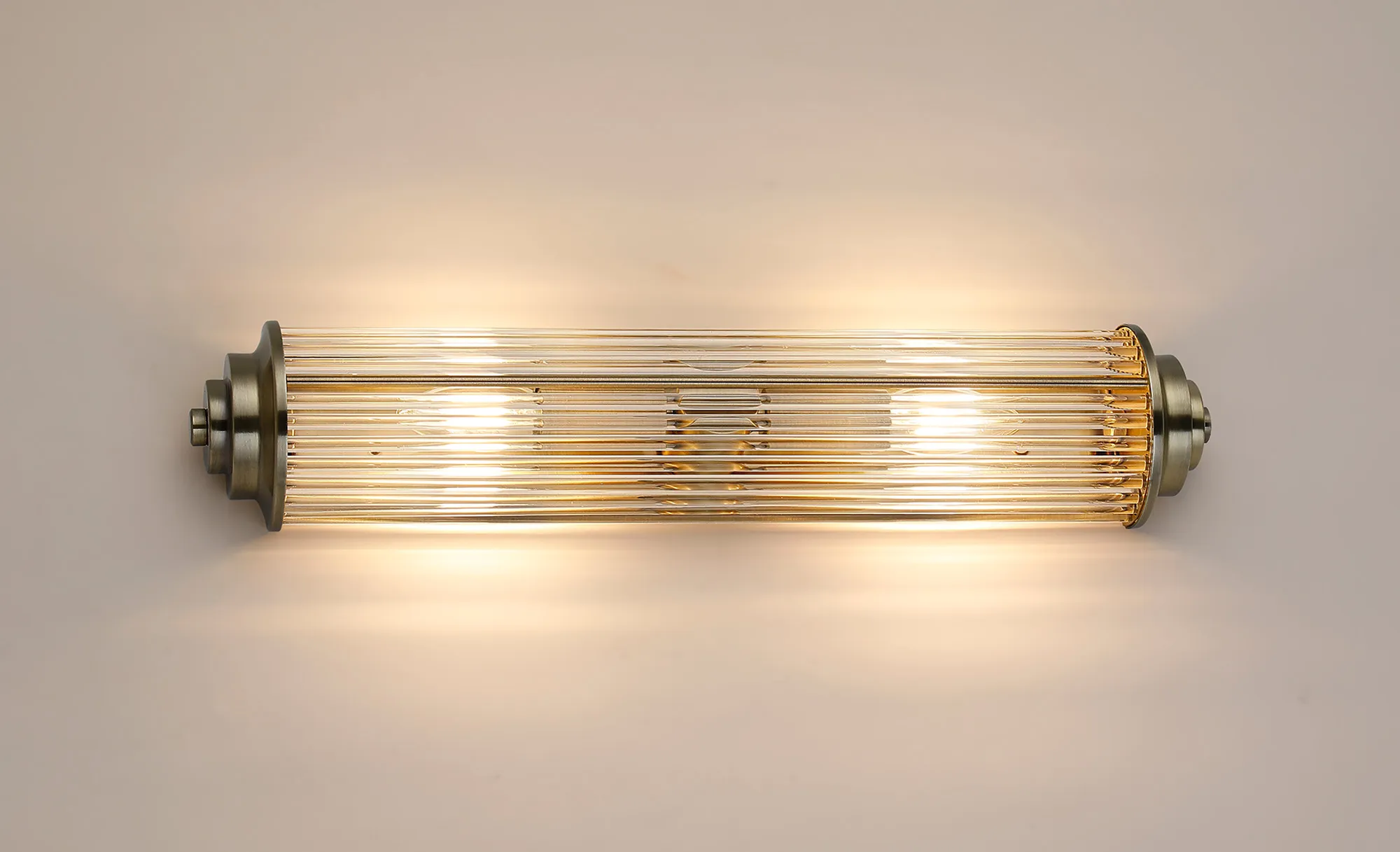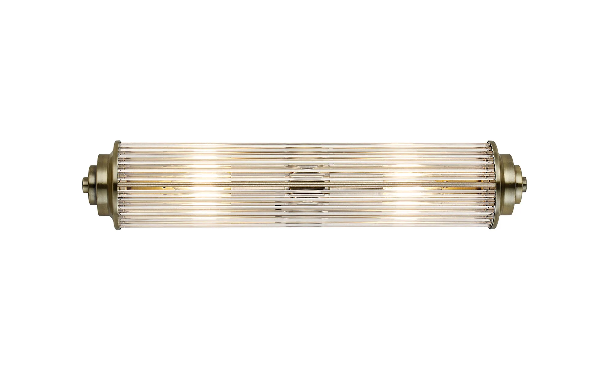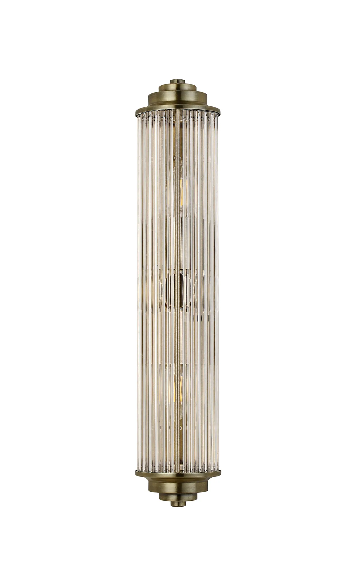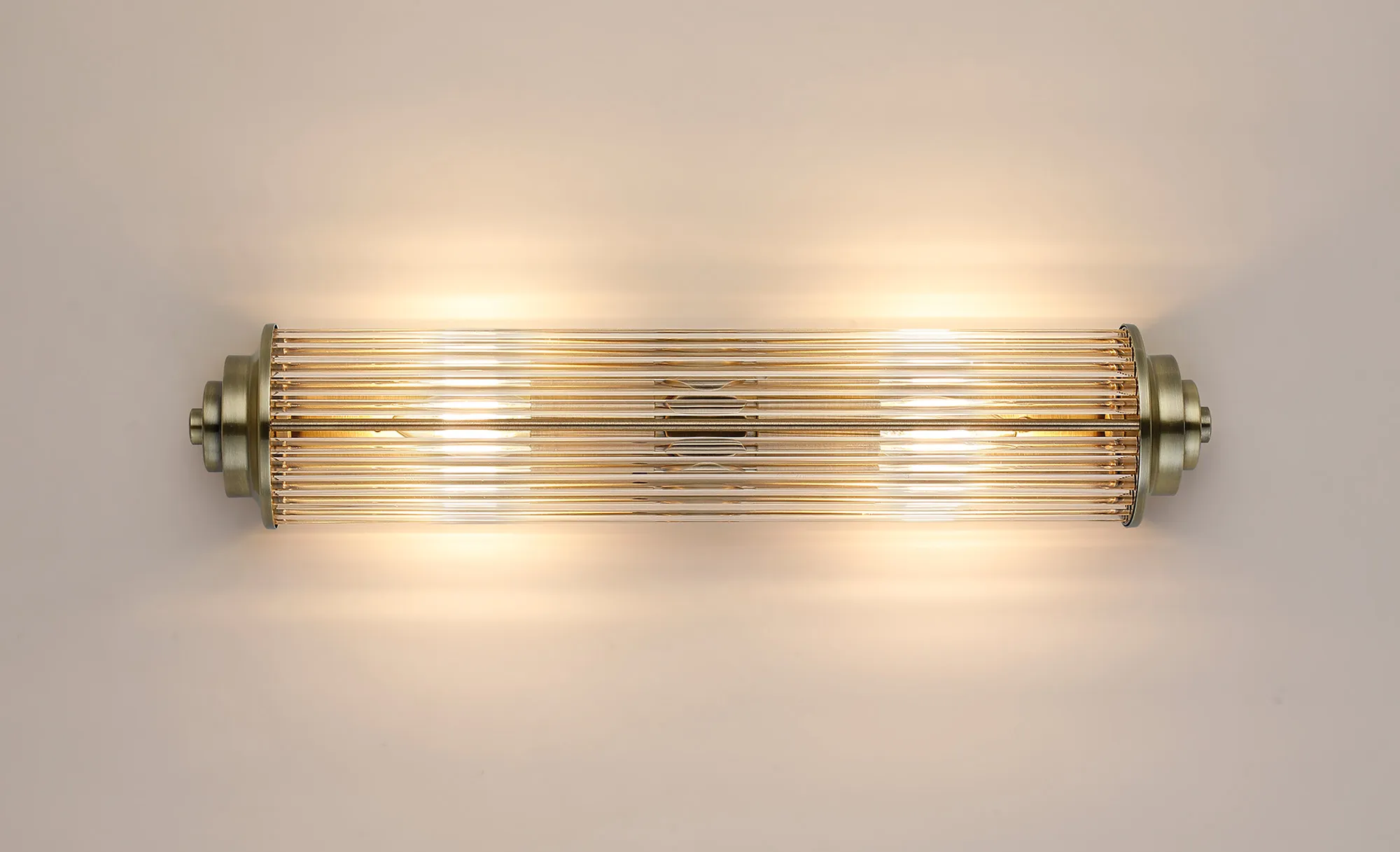 Labrador 2 Light Glass Rod Wall Up & Down, E14, IP44, Antique Brass/Clear Glass Rods