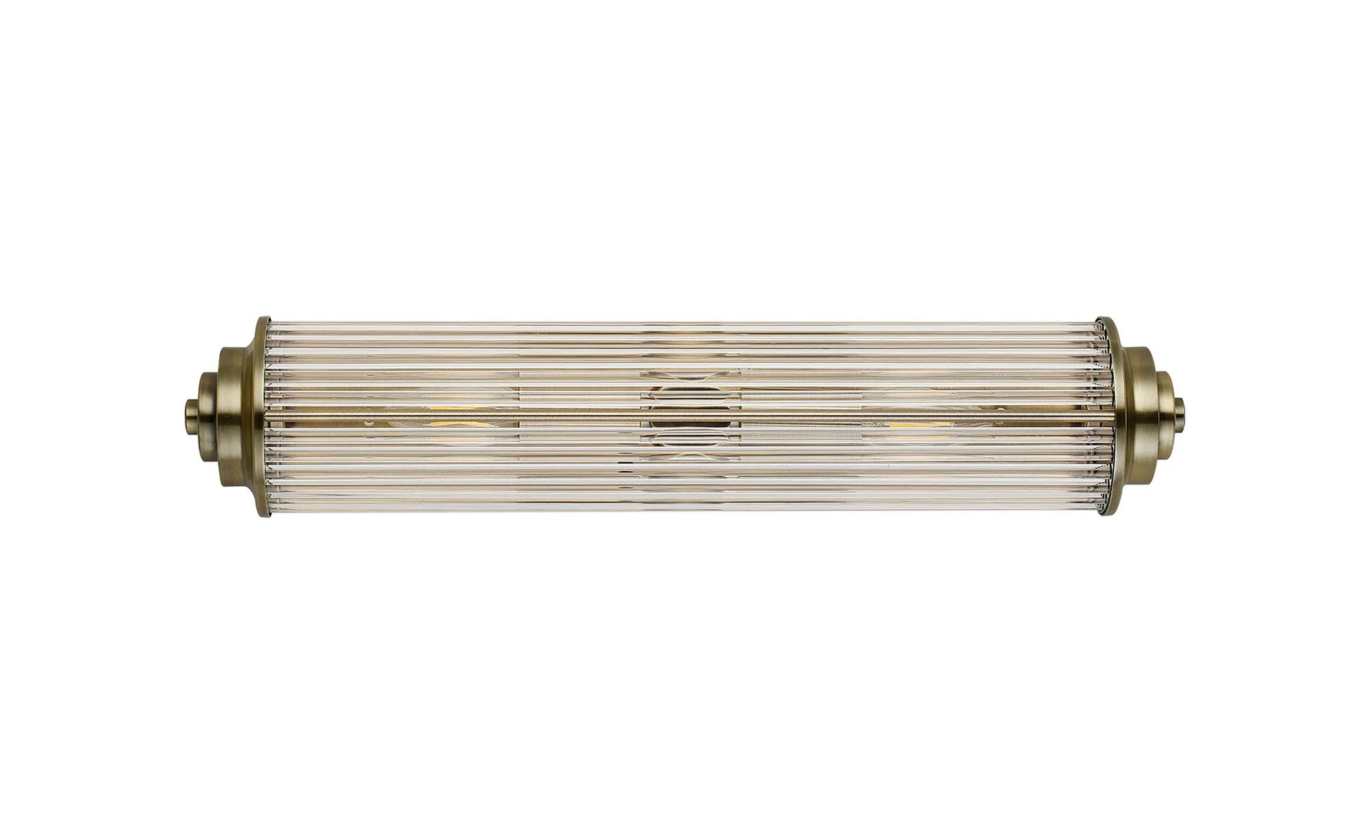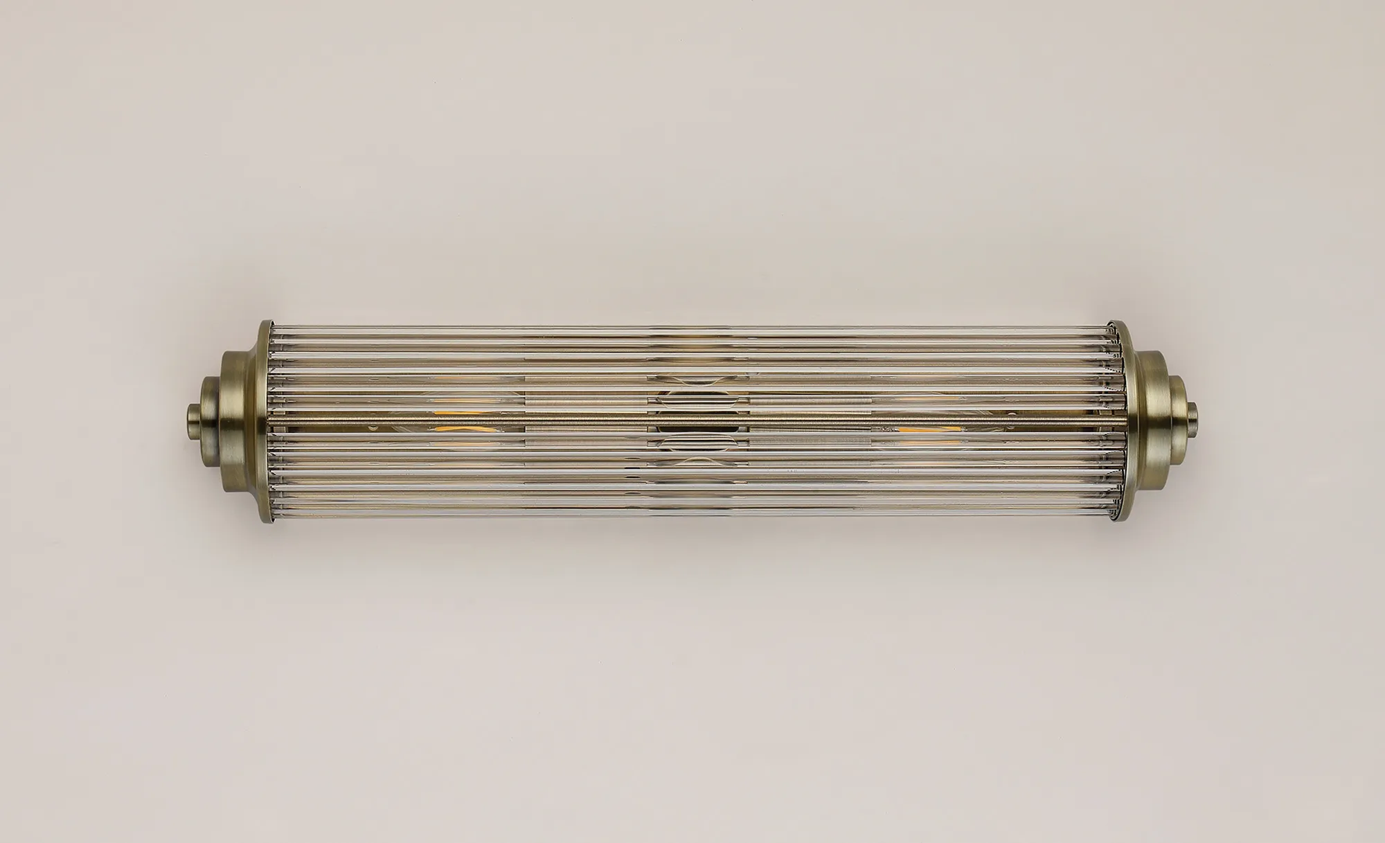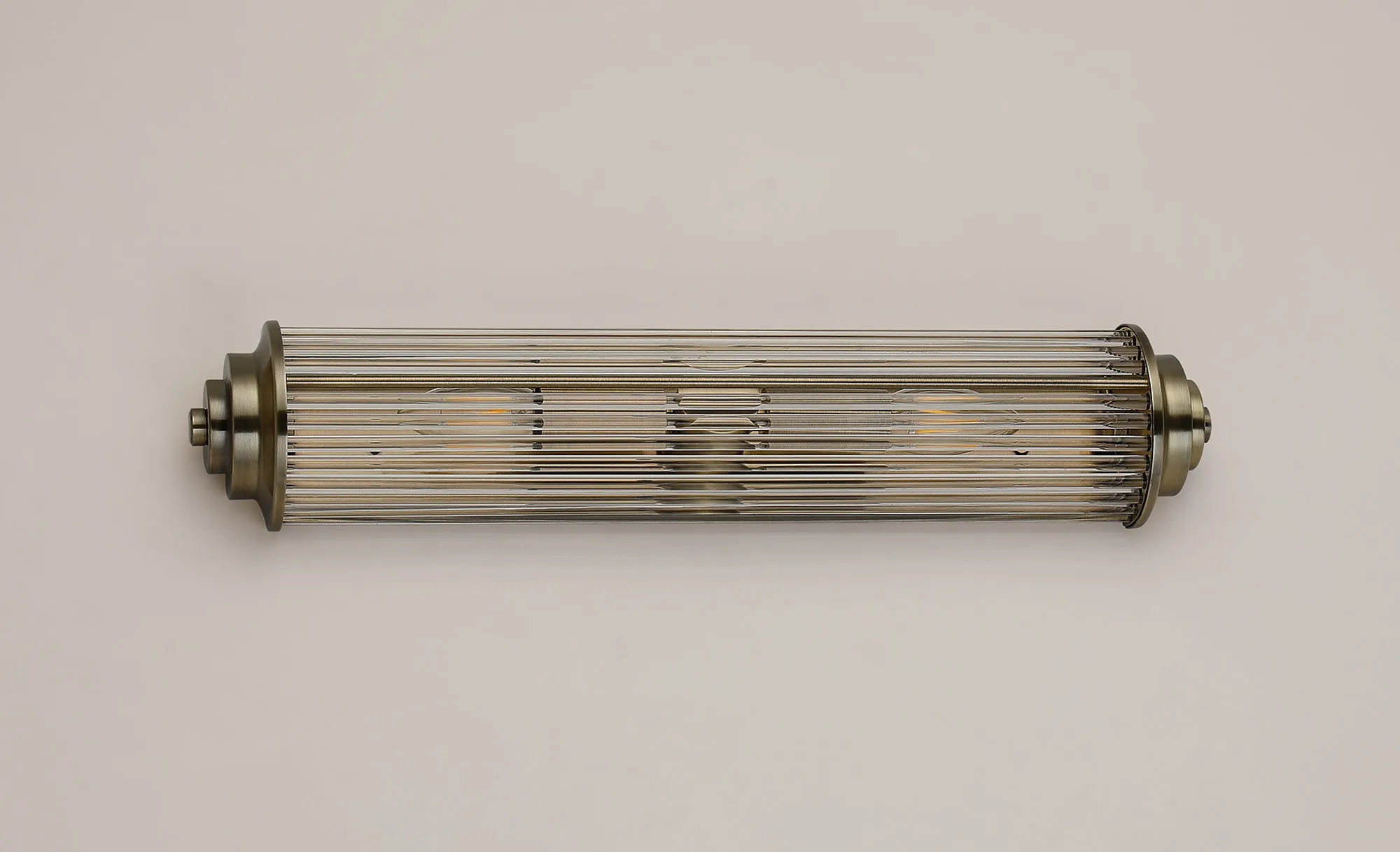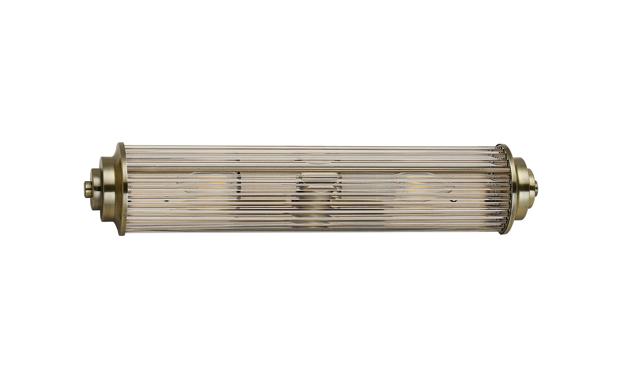 Labrador 2 Light Glass Rod Wall Up & Down, E14, IP44, Antique Brass/Clear Glass Rods