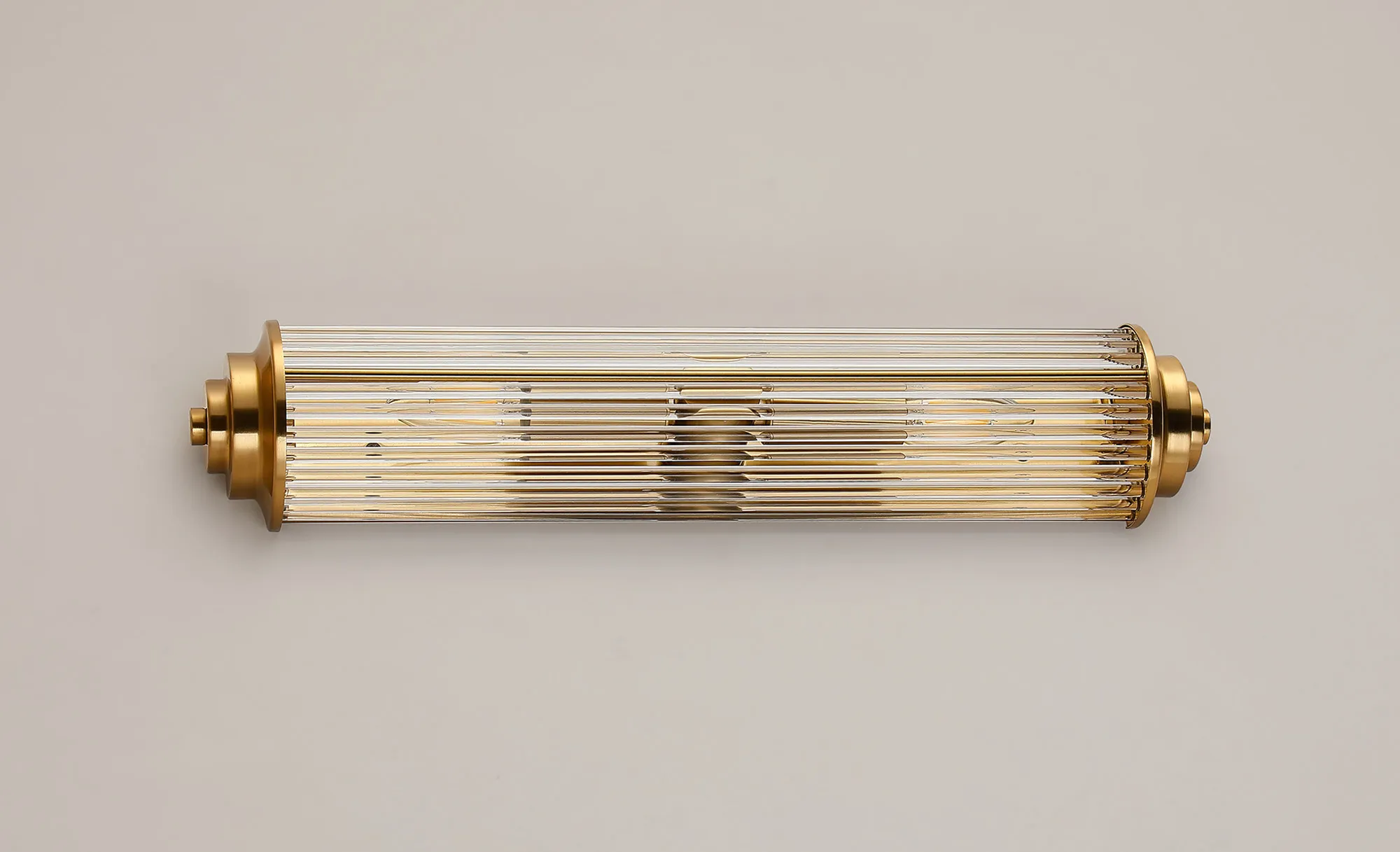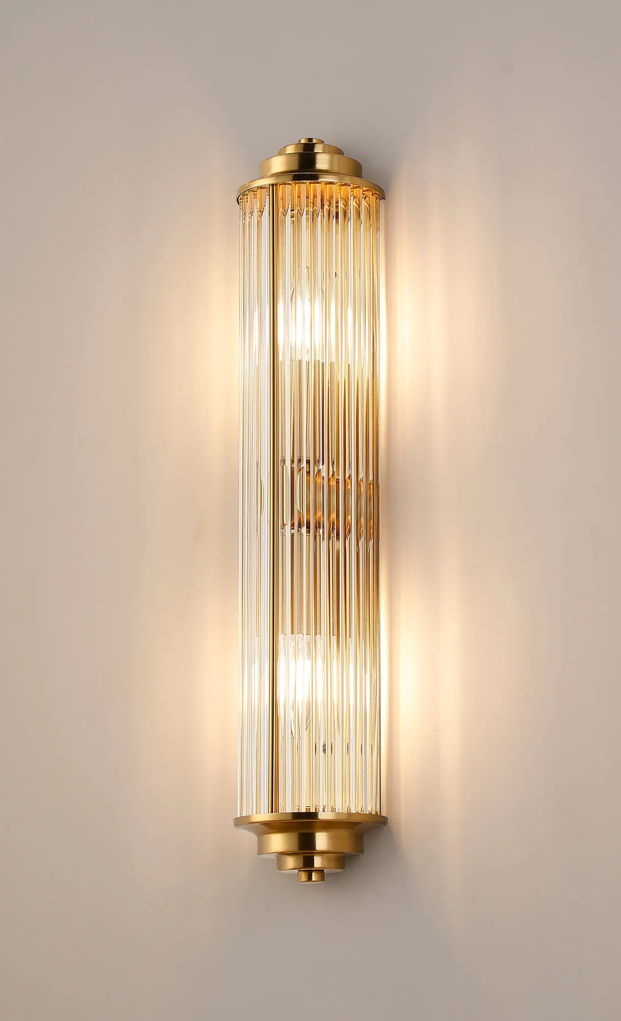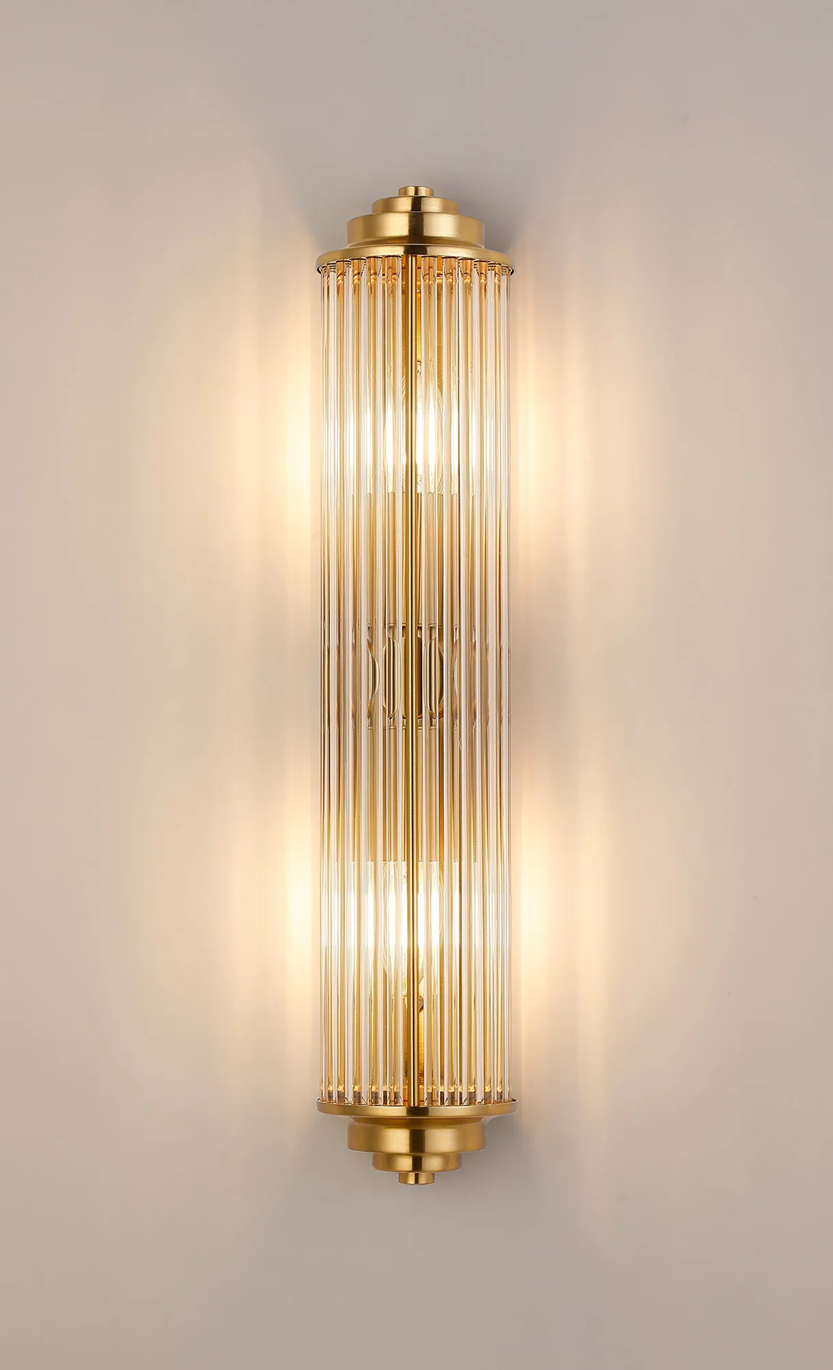 Labrador 2 Light Glass Rod Wall, G9, IP44, Gold/Clear Glass Rods