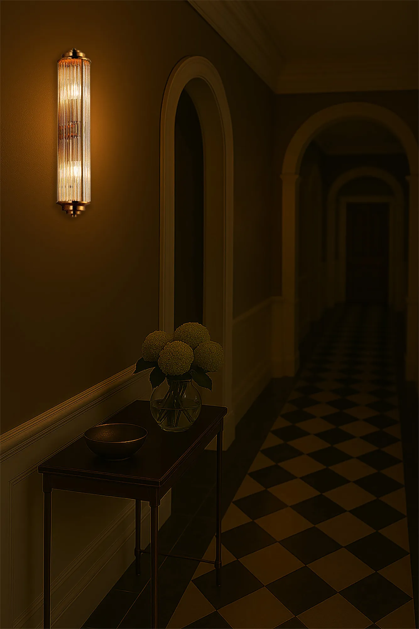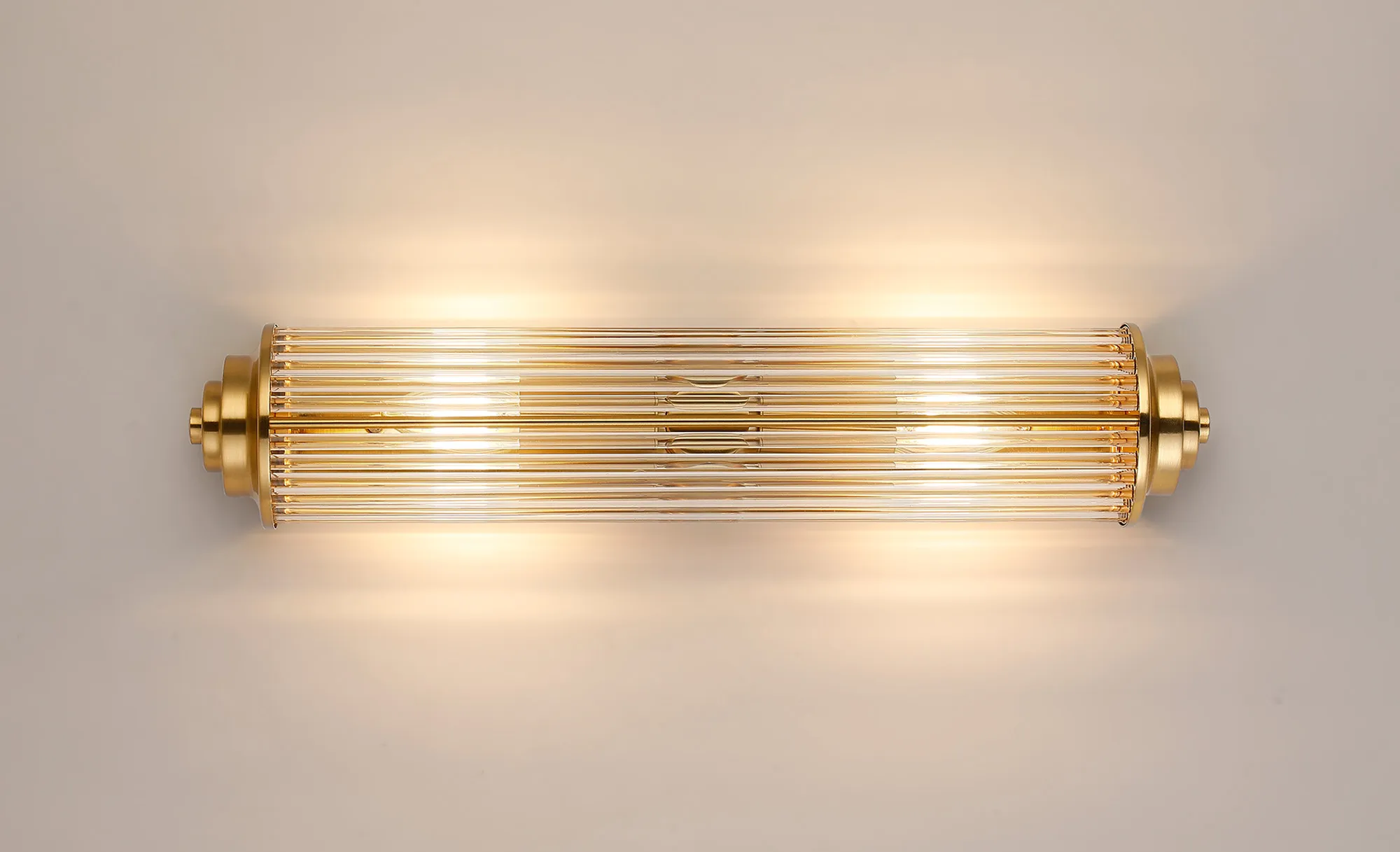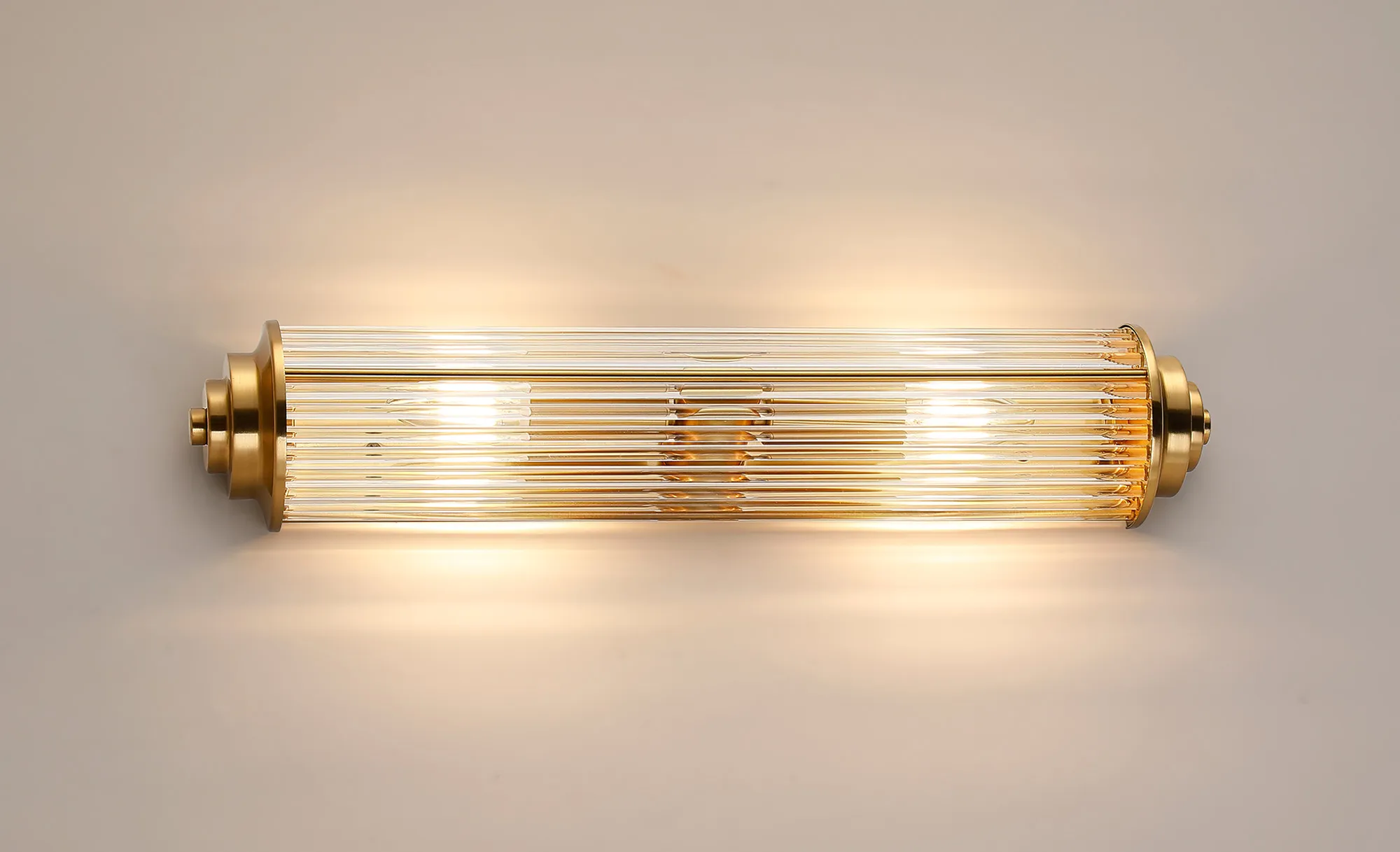 Labrador 2 Light Glass Rod Wall, G9, IP44, Gold/Clear Glass Rods