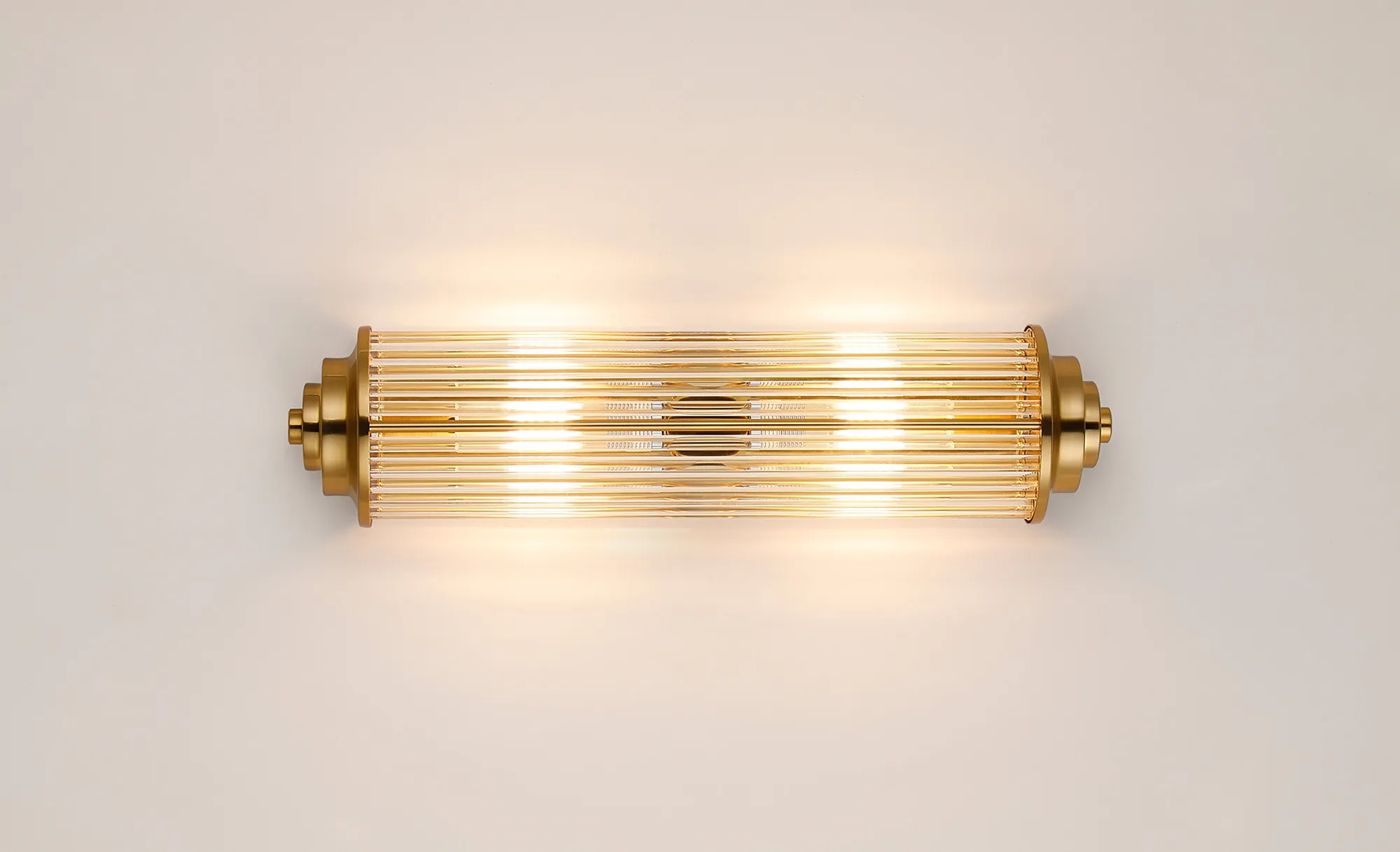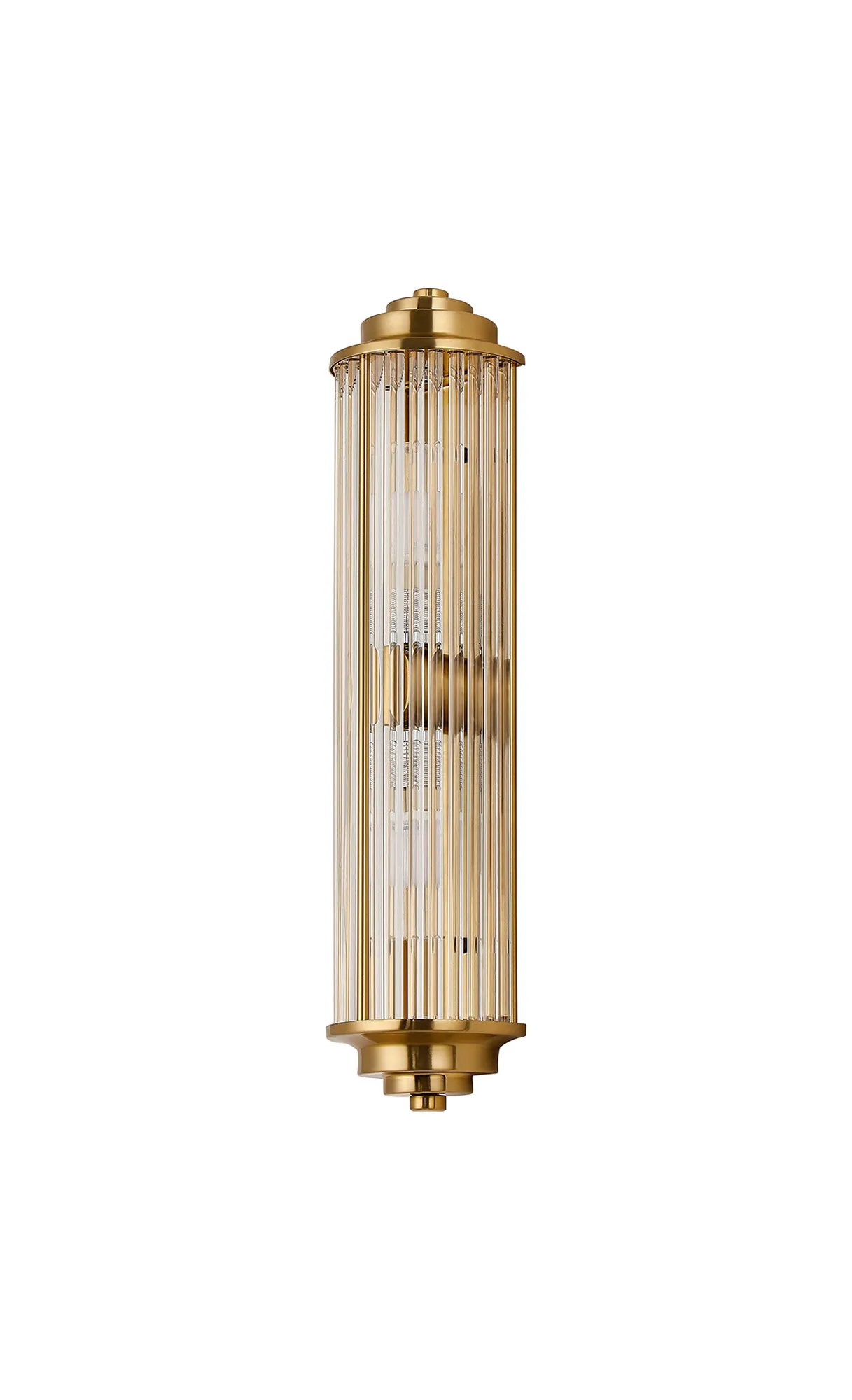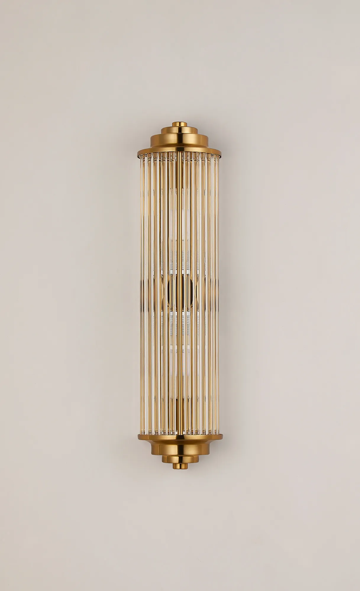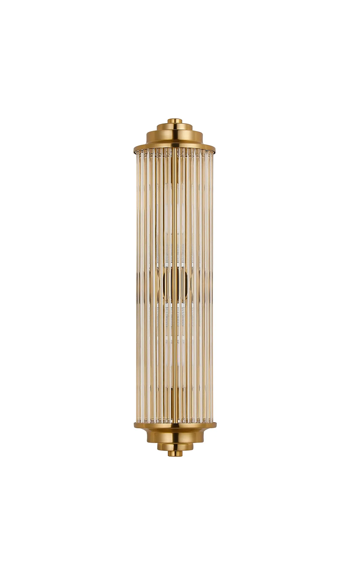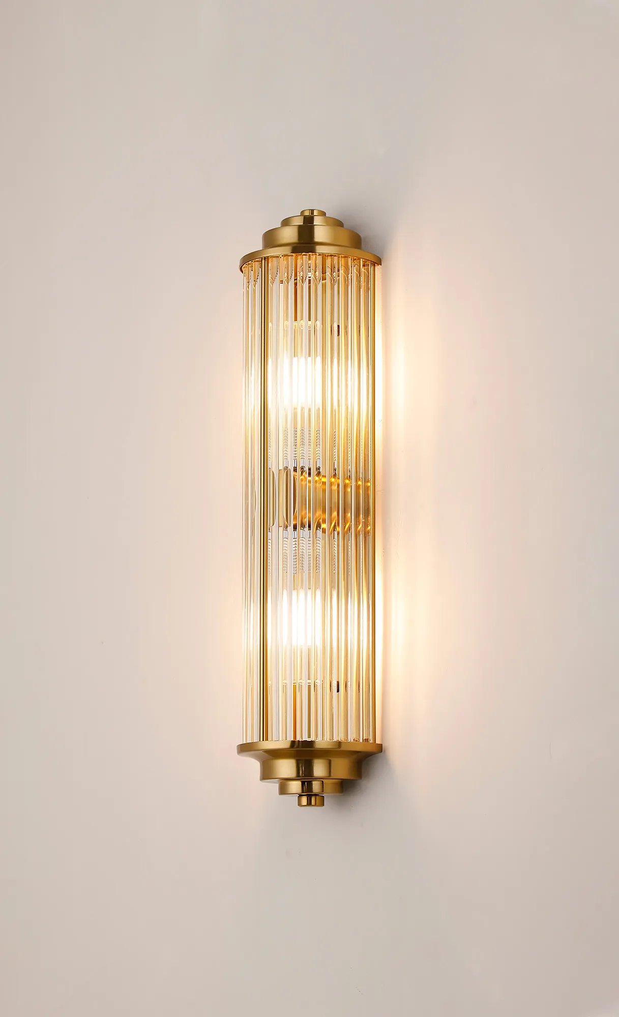 Labrador 2 Light Glass Rod Wall Up & Down, E14, IP44, Gold/Clear Glass Rods