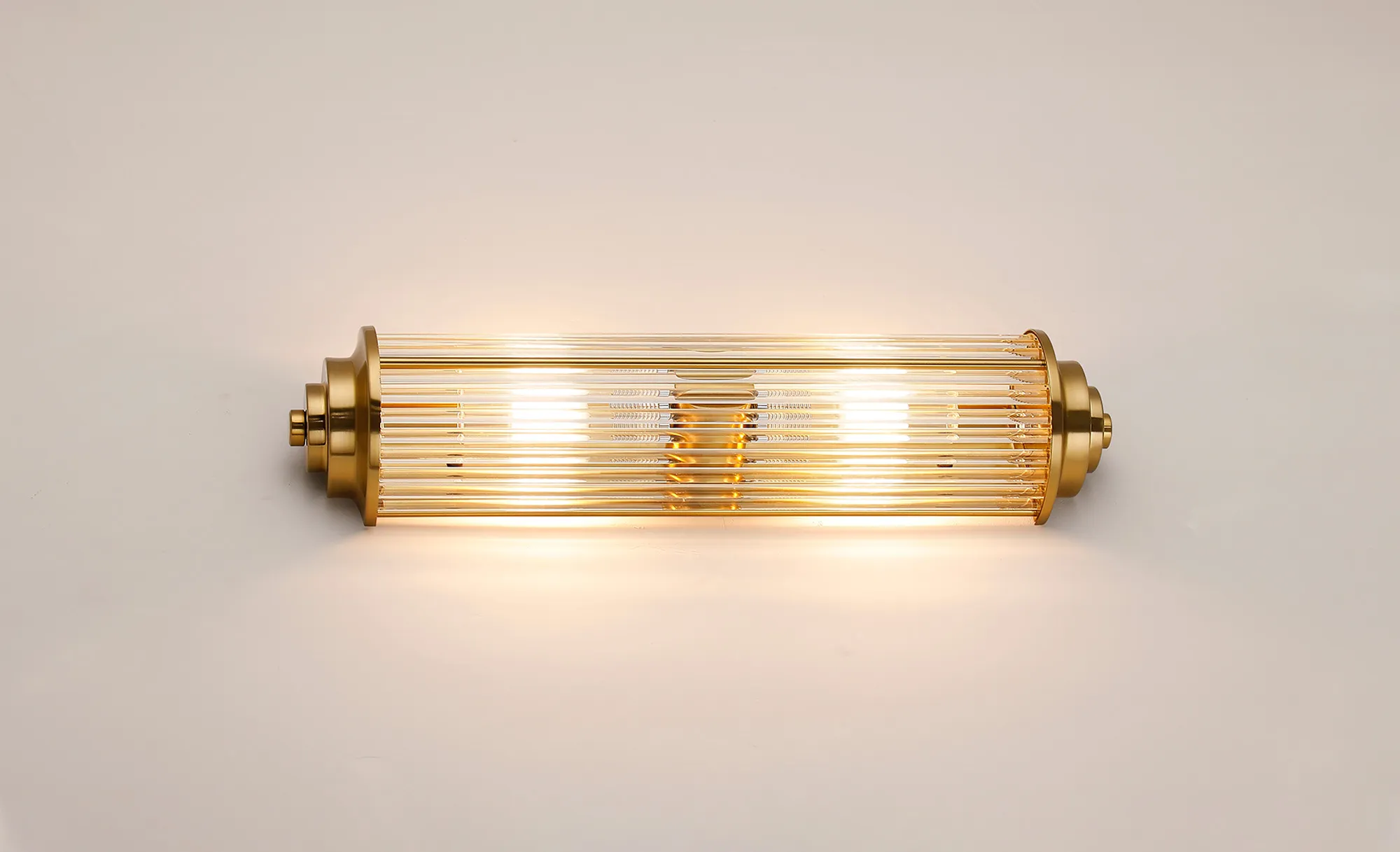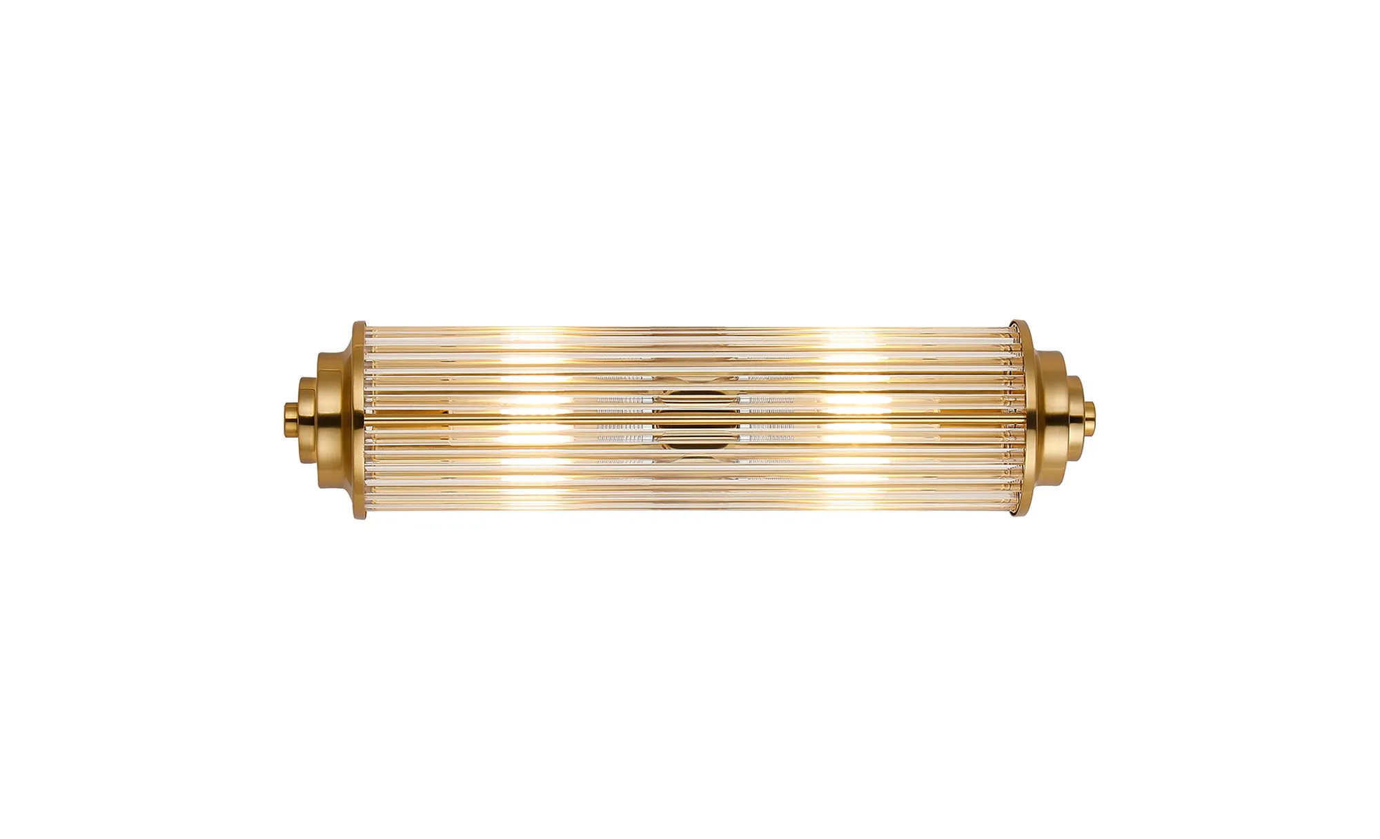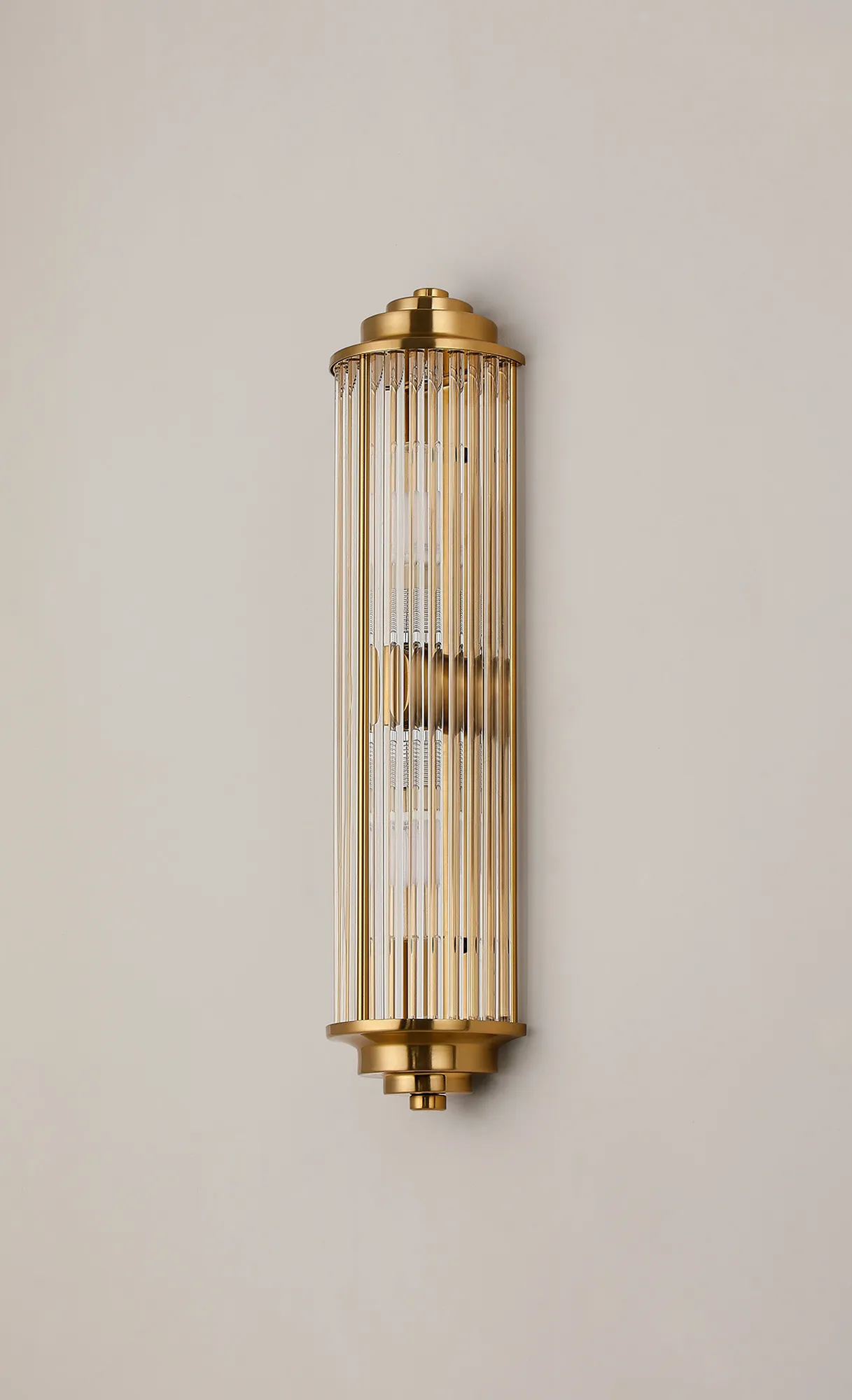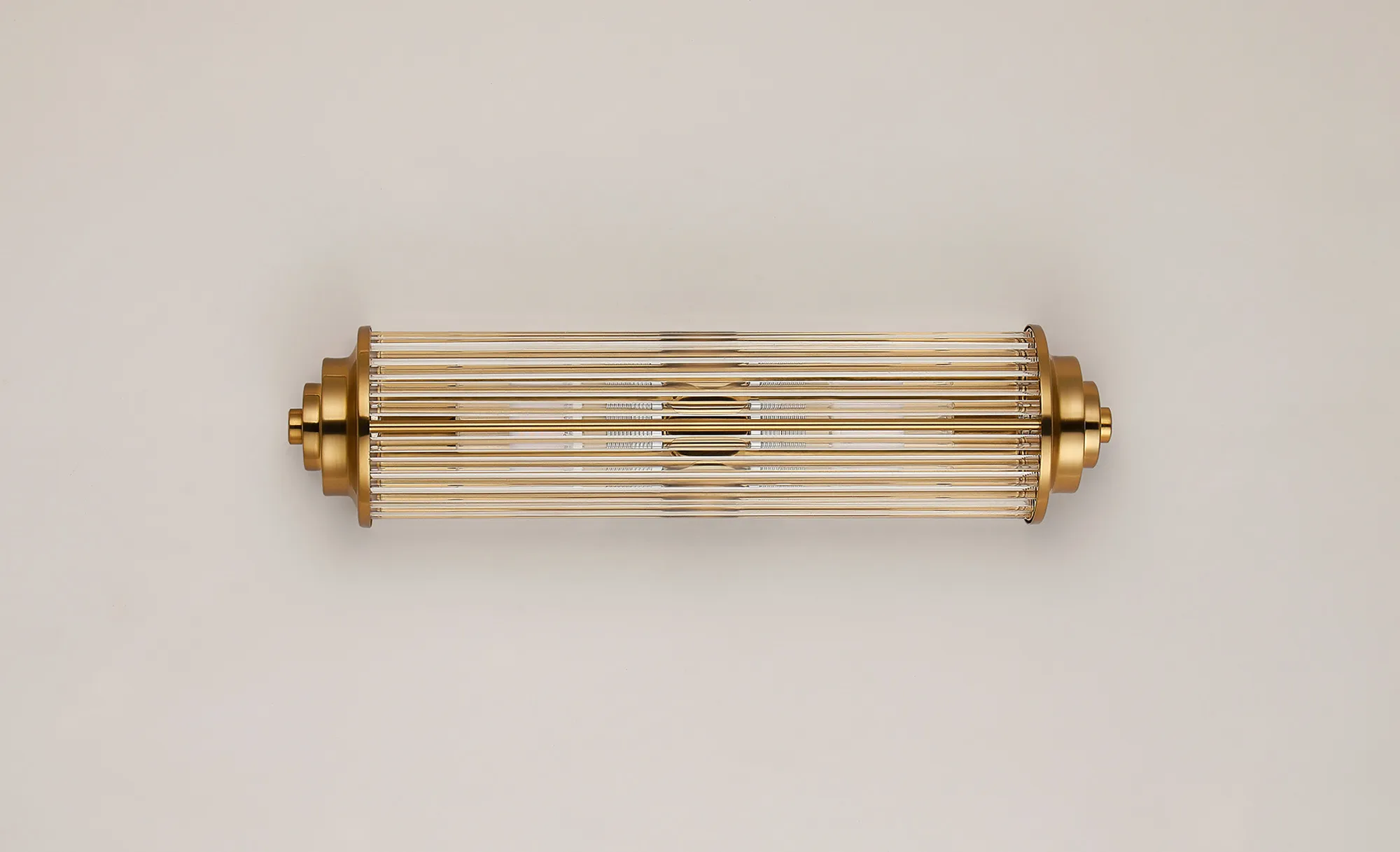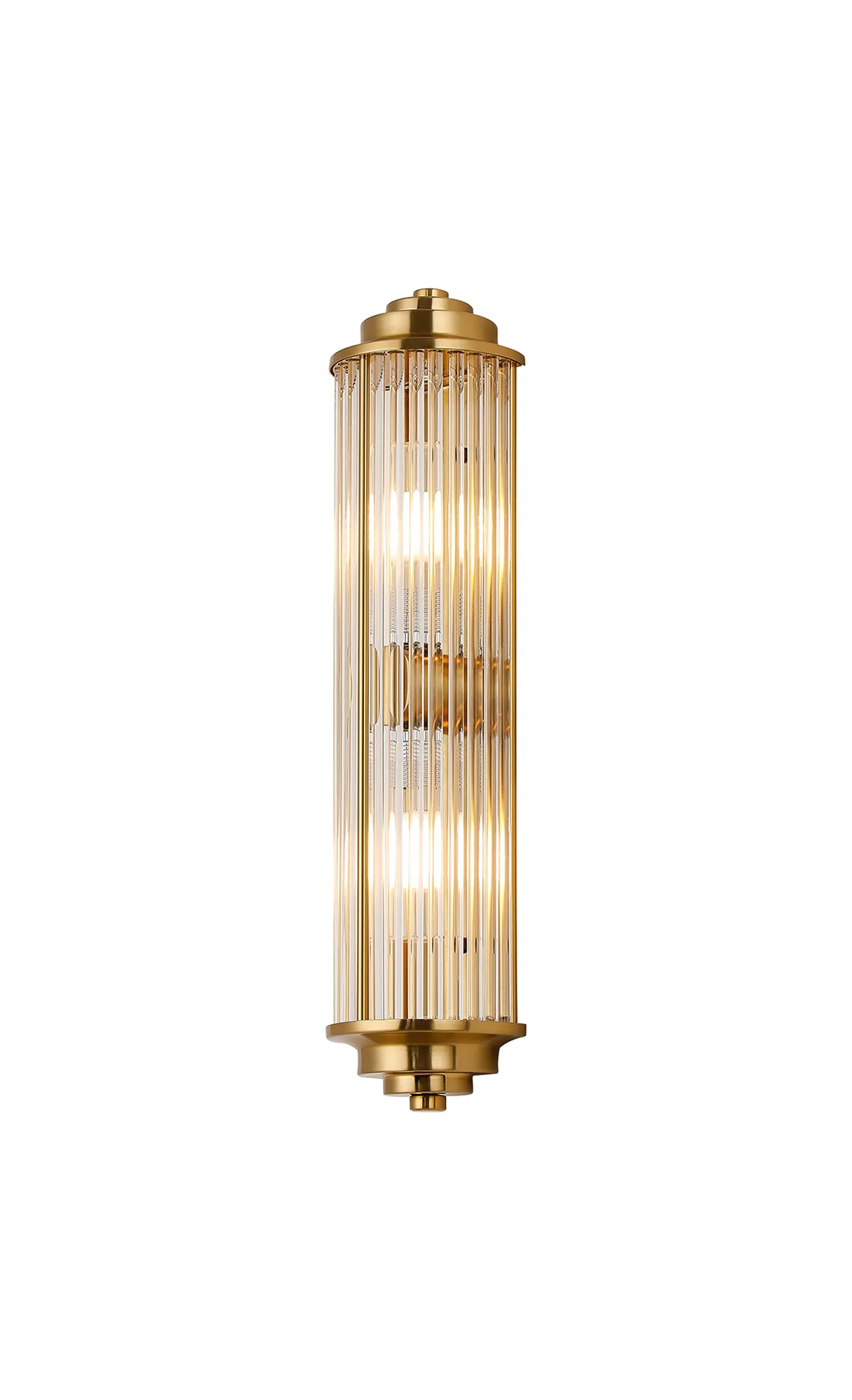 Labrador 2 Light Glass Rod Wall Up & Down, E14, IP44, Gold/Clear Glass Rods