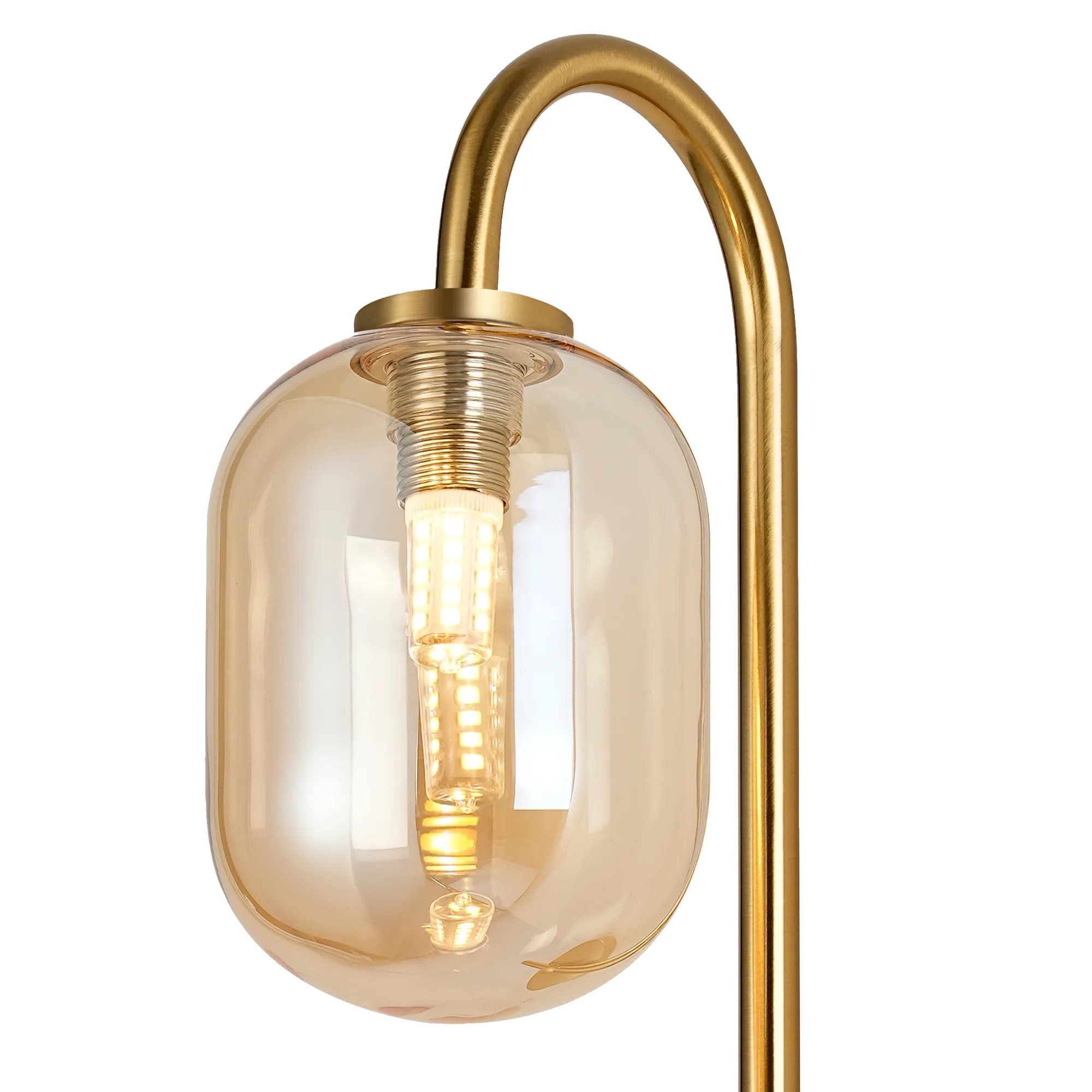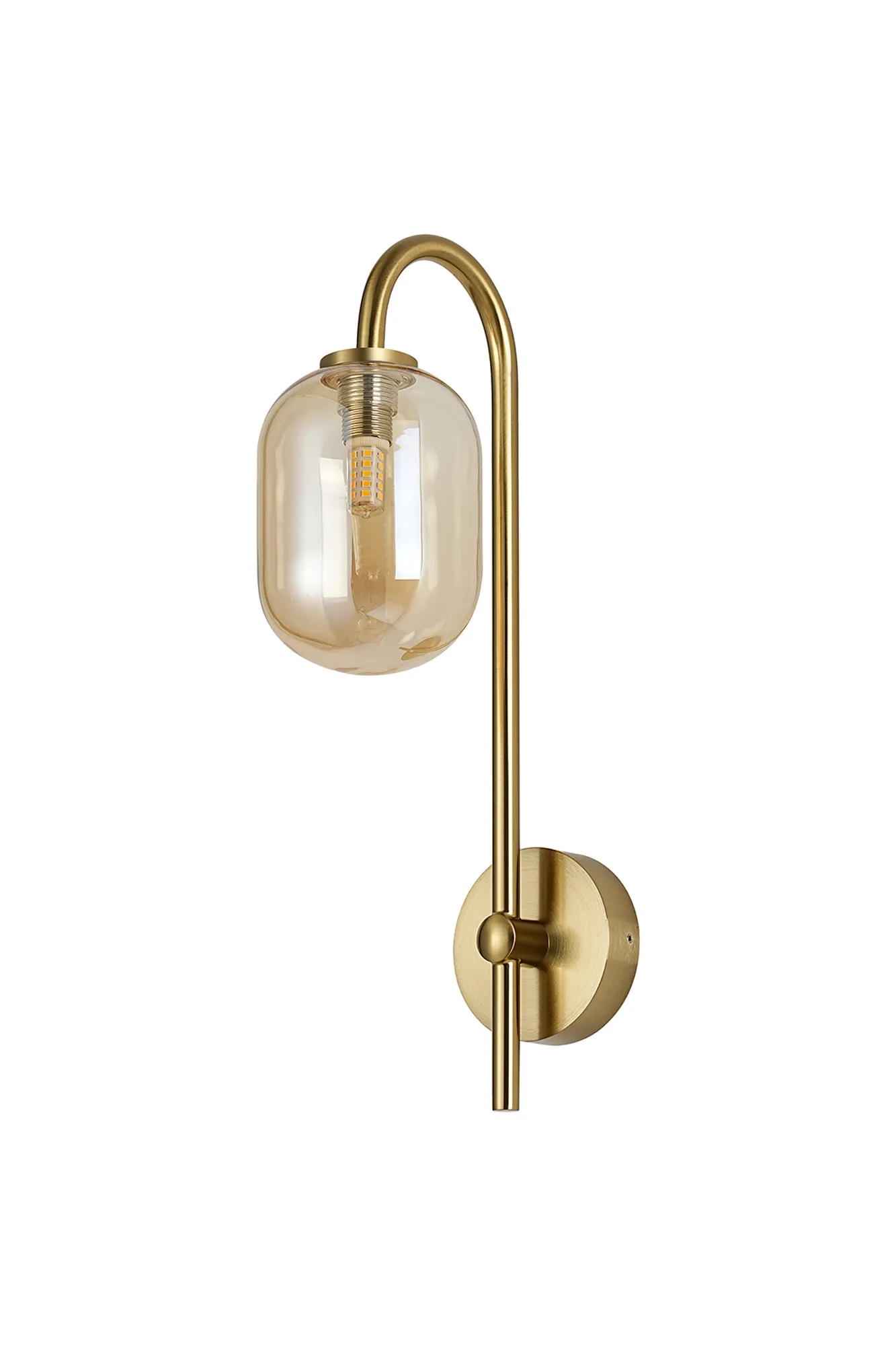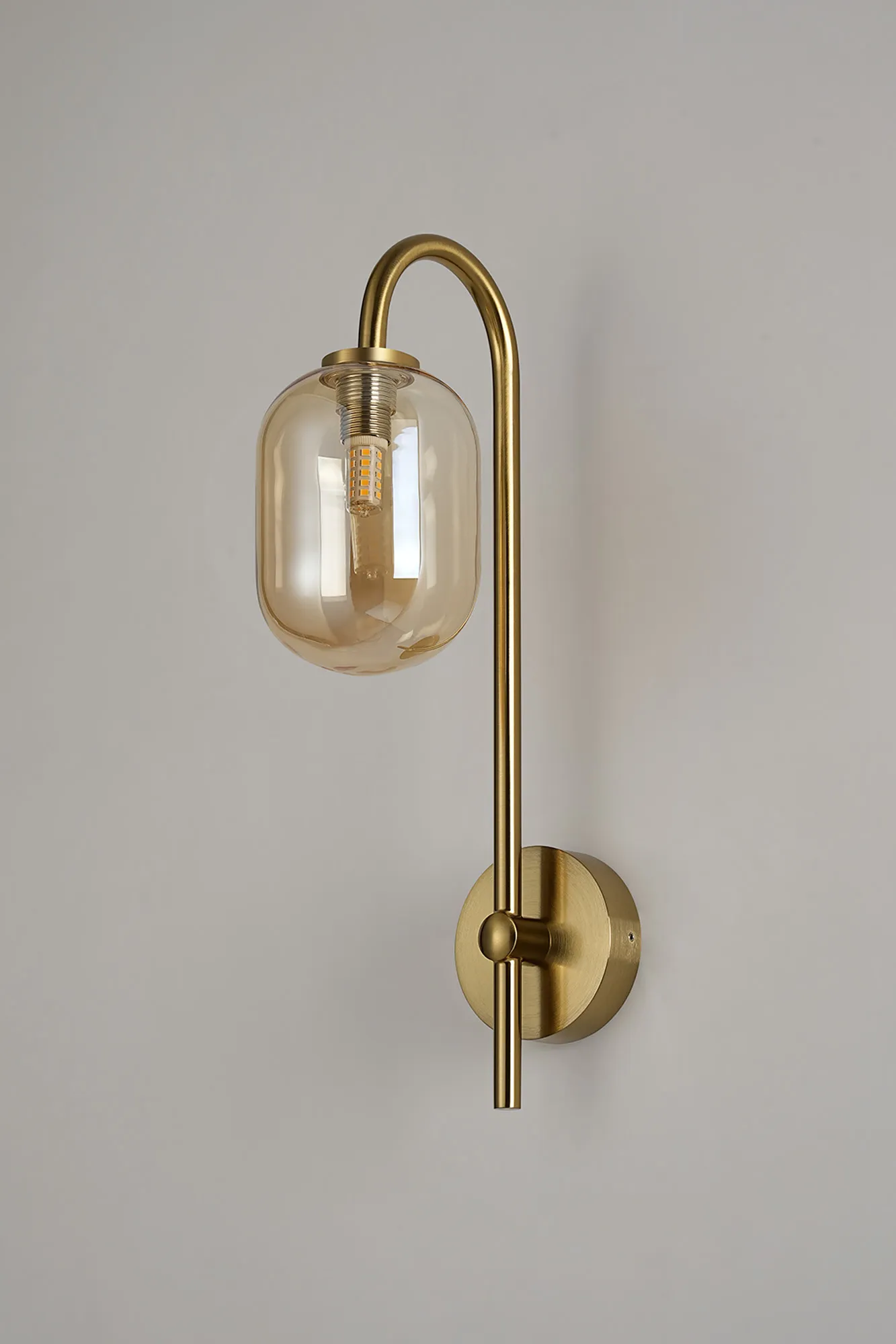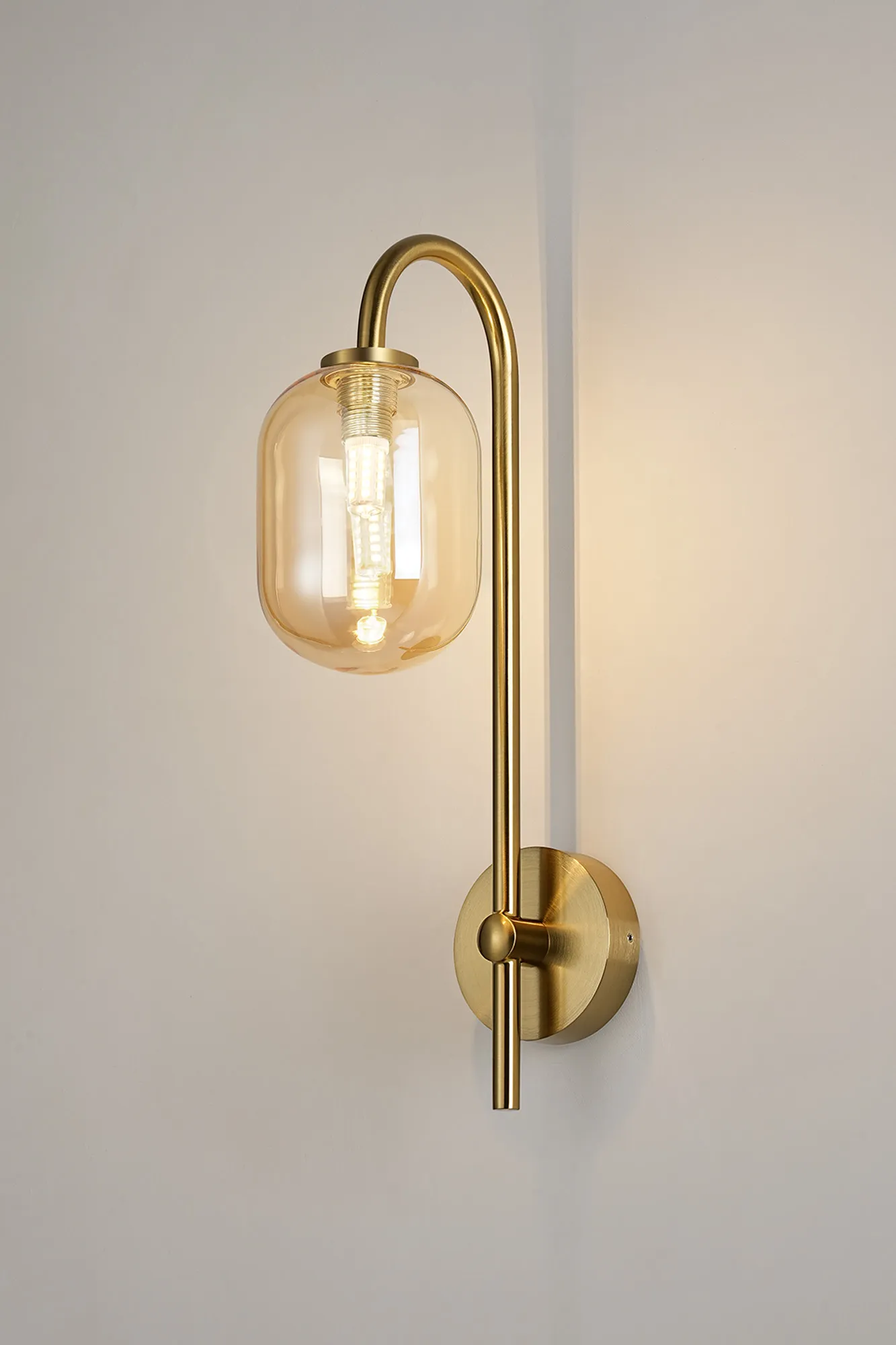 OTHER Nova Curved Arm Wall Lamp 1 Light IP44 Brass Gold/Amber Smooth Tubular Glass