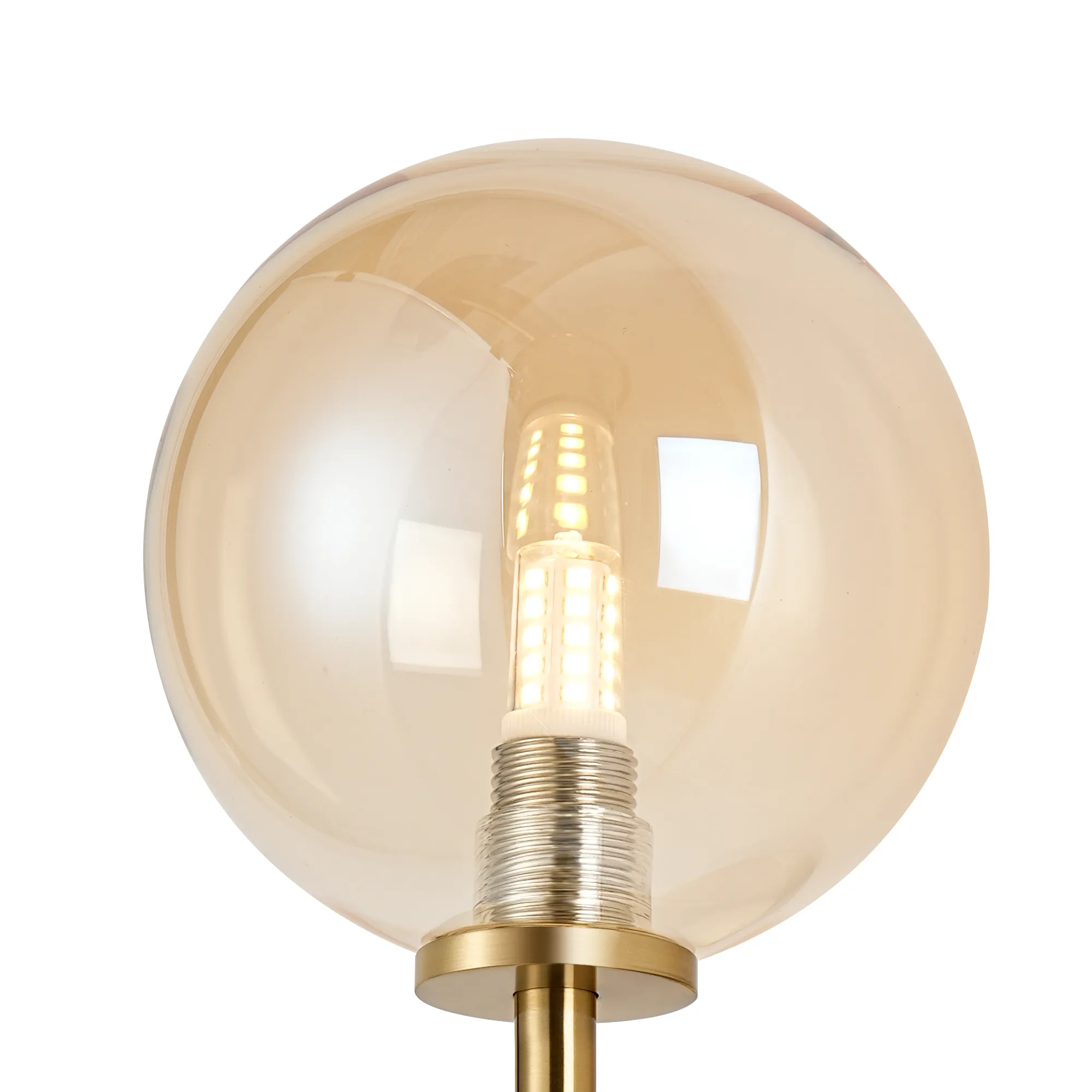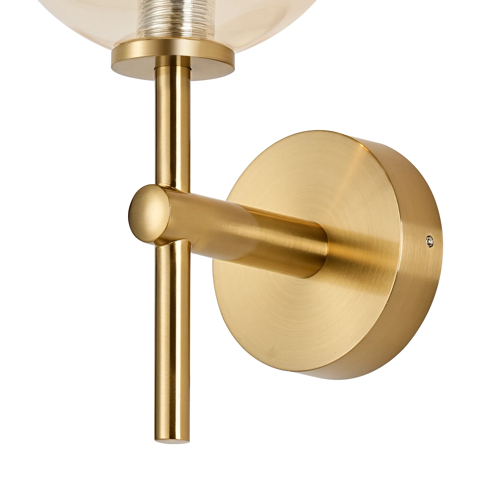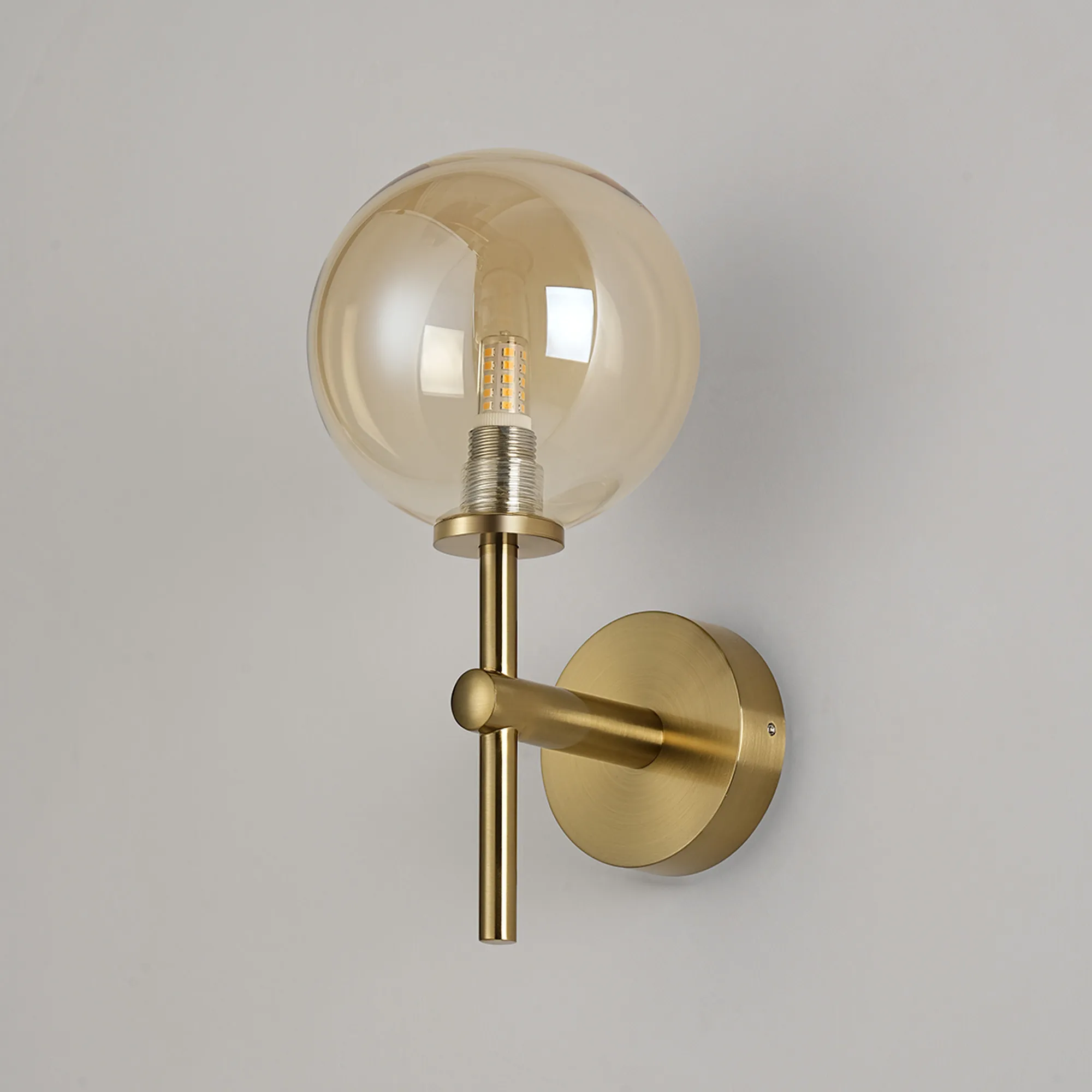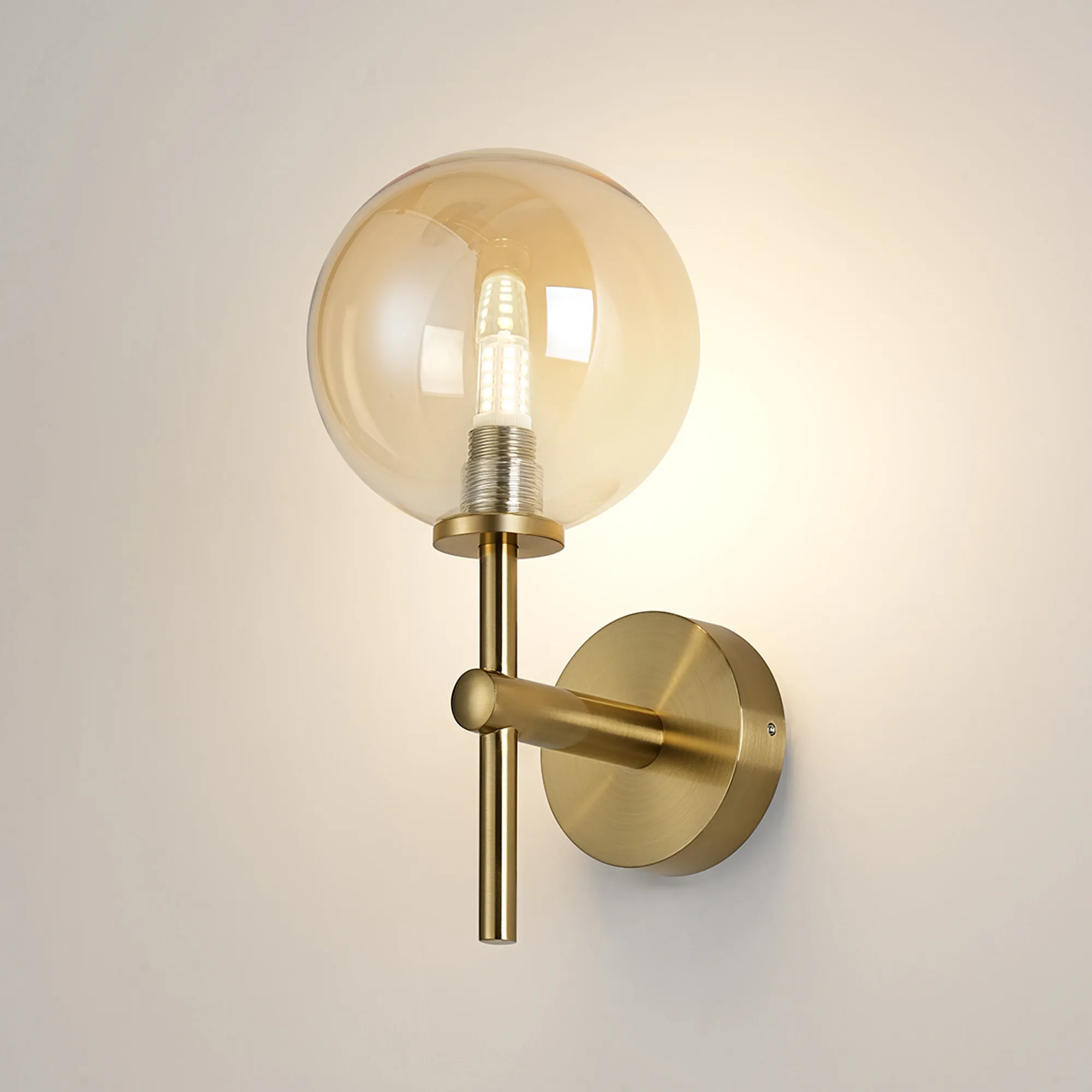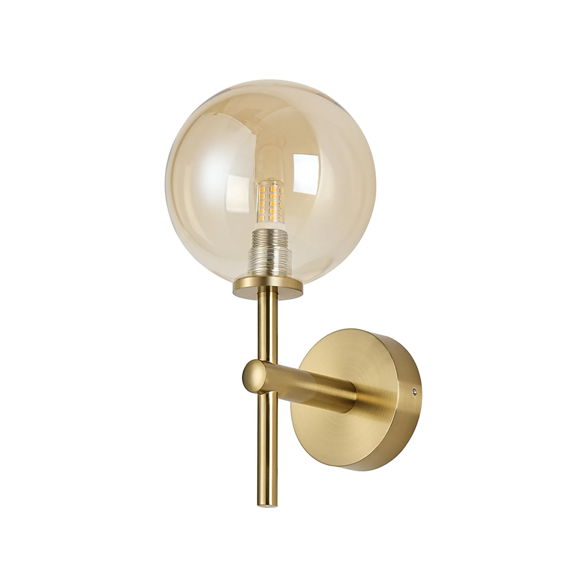 OTHER Nova Medium Arm Wall Lamp 1 Light IP44 Brass Gold/Amber Smooth Round Glass