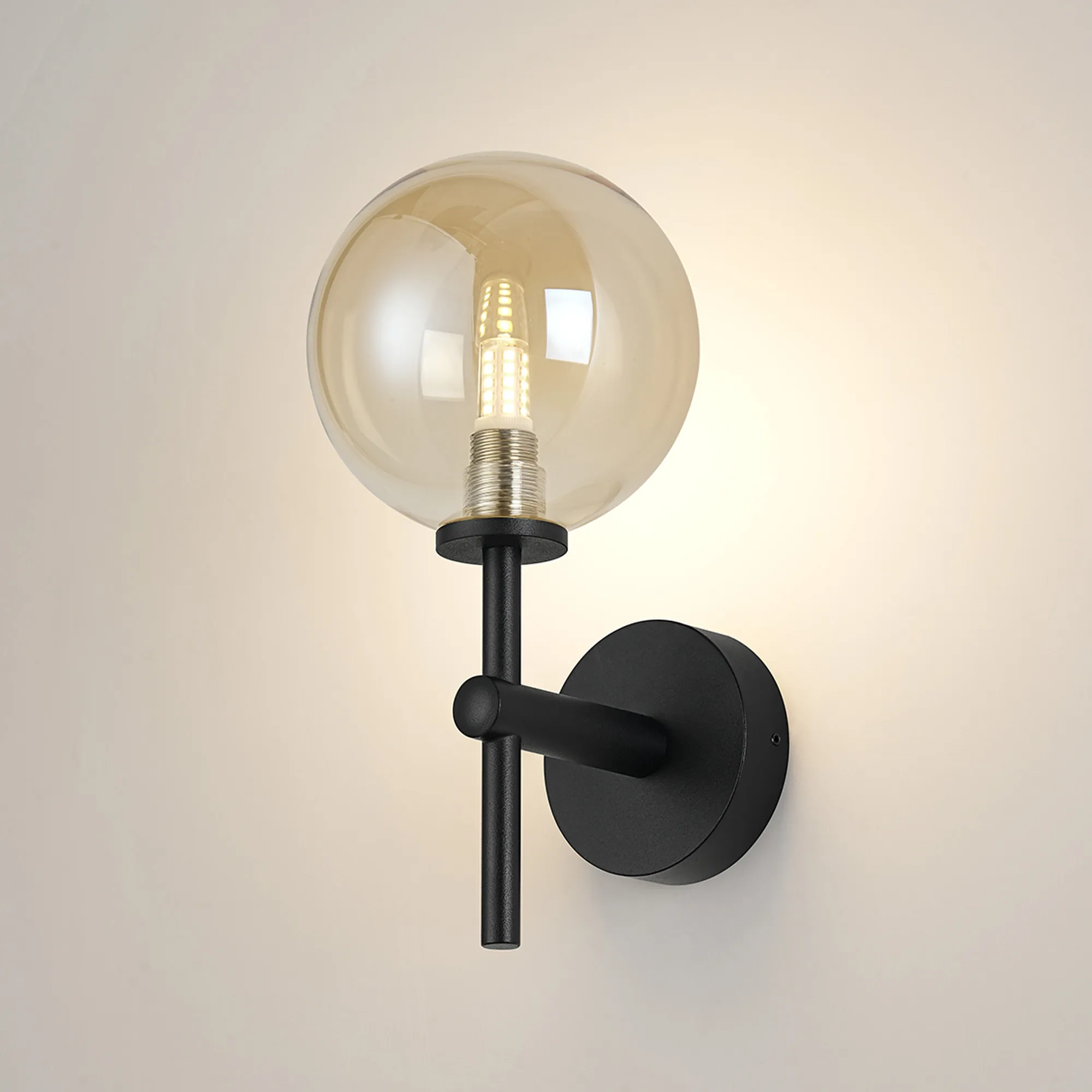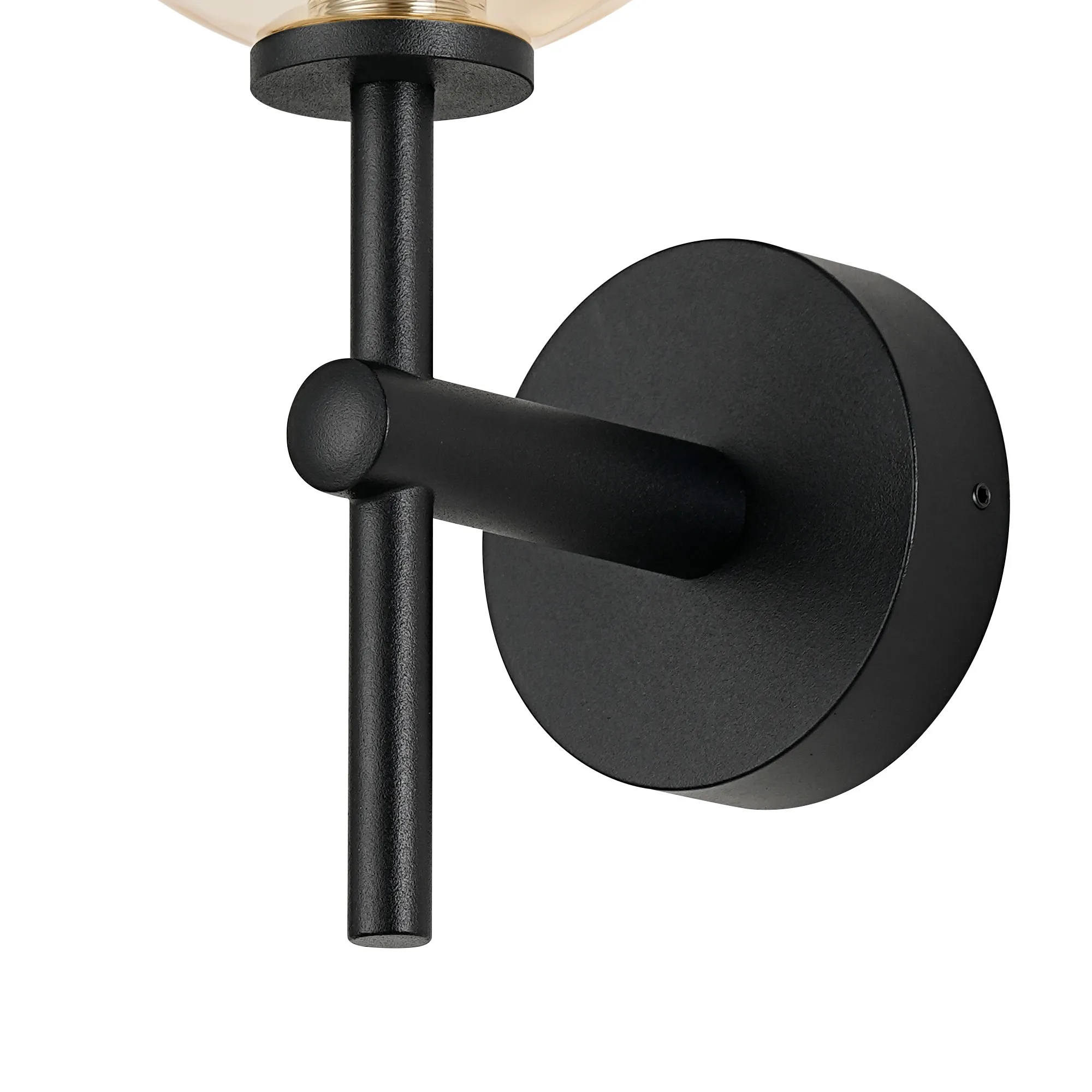 OTHER Nova Medium Arm Wall Light, 1 Light G9, IP44, Satin Black/Amber Smooth Round Glass