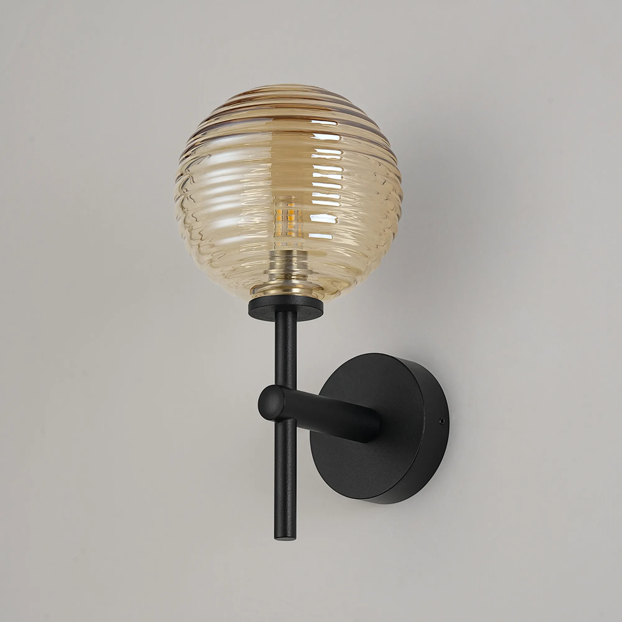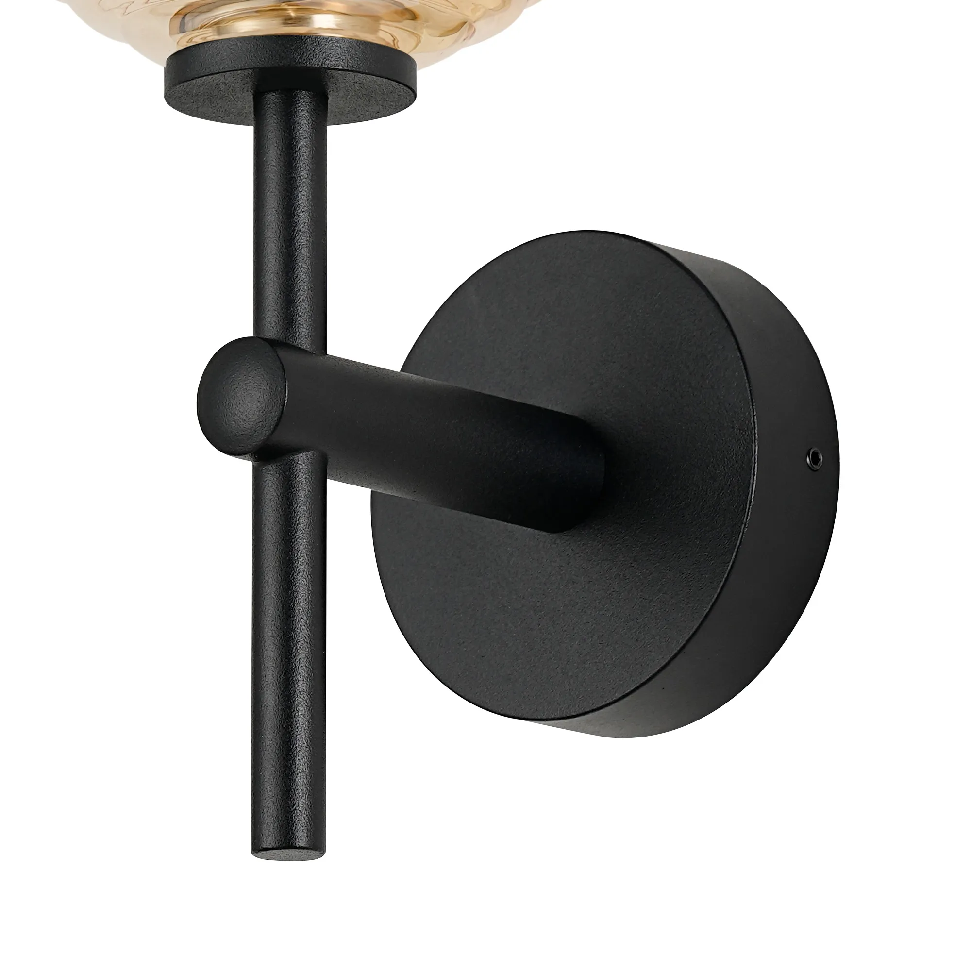 OTHER Nova Medium Arm Wall Light, 1 Light G9, IP44, Satin Black/Amber Ribbed Round Glass