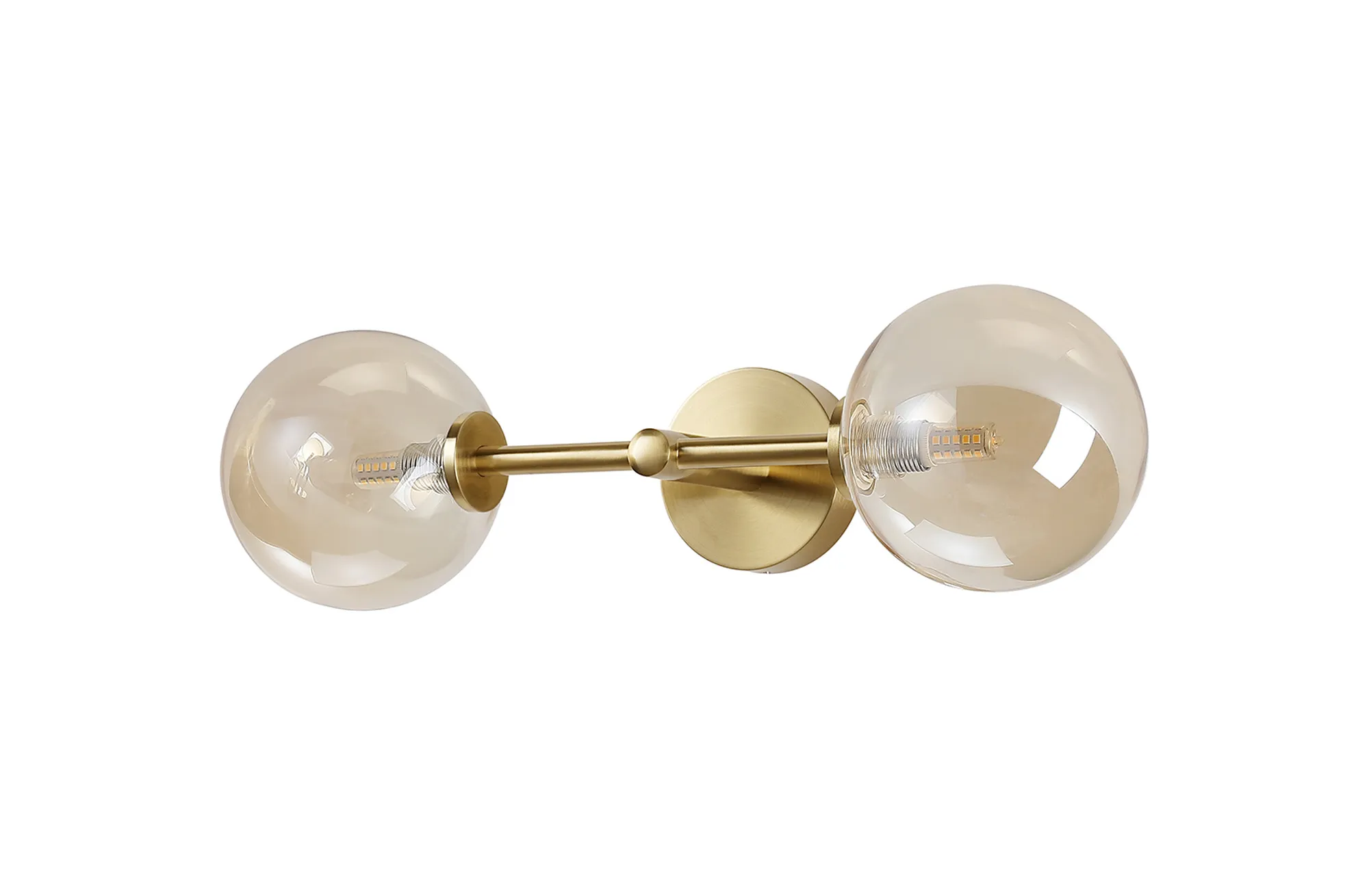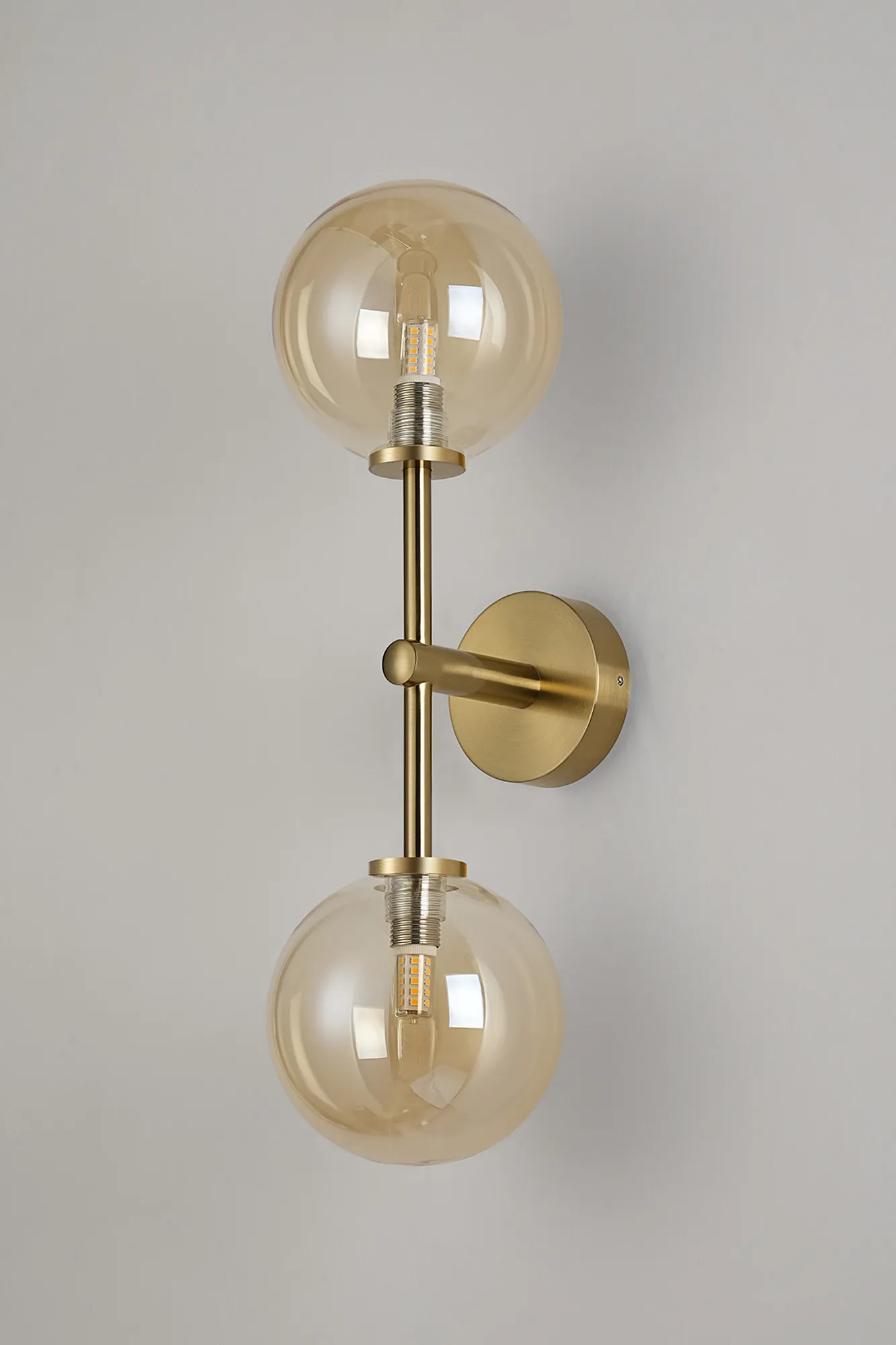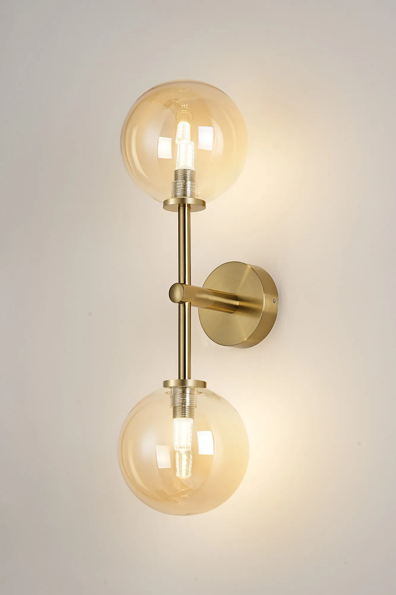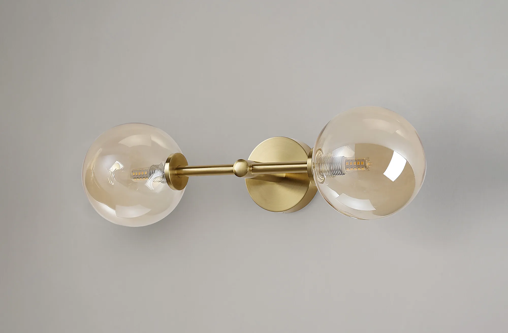 OTHER Nova Medium Arm Wall Lamp 2 Light IP44 Brass Gold/Amber Smooth Round Glass