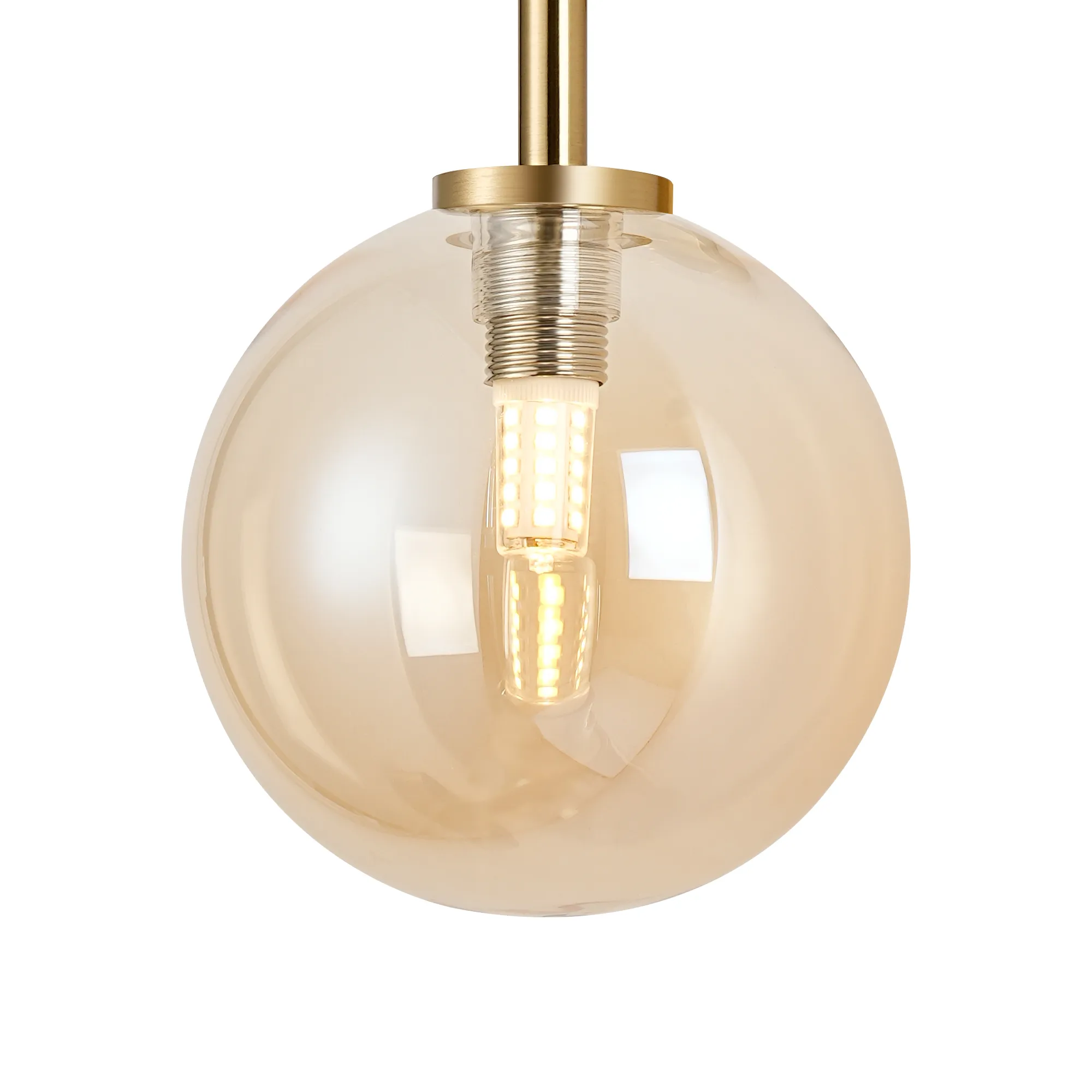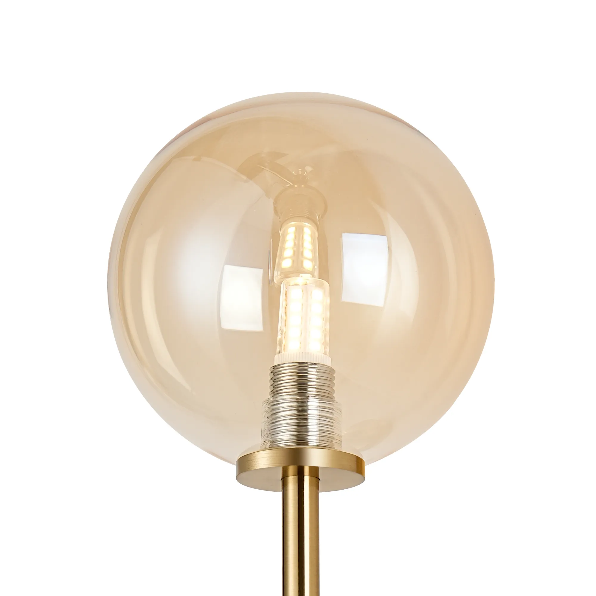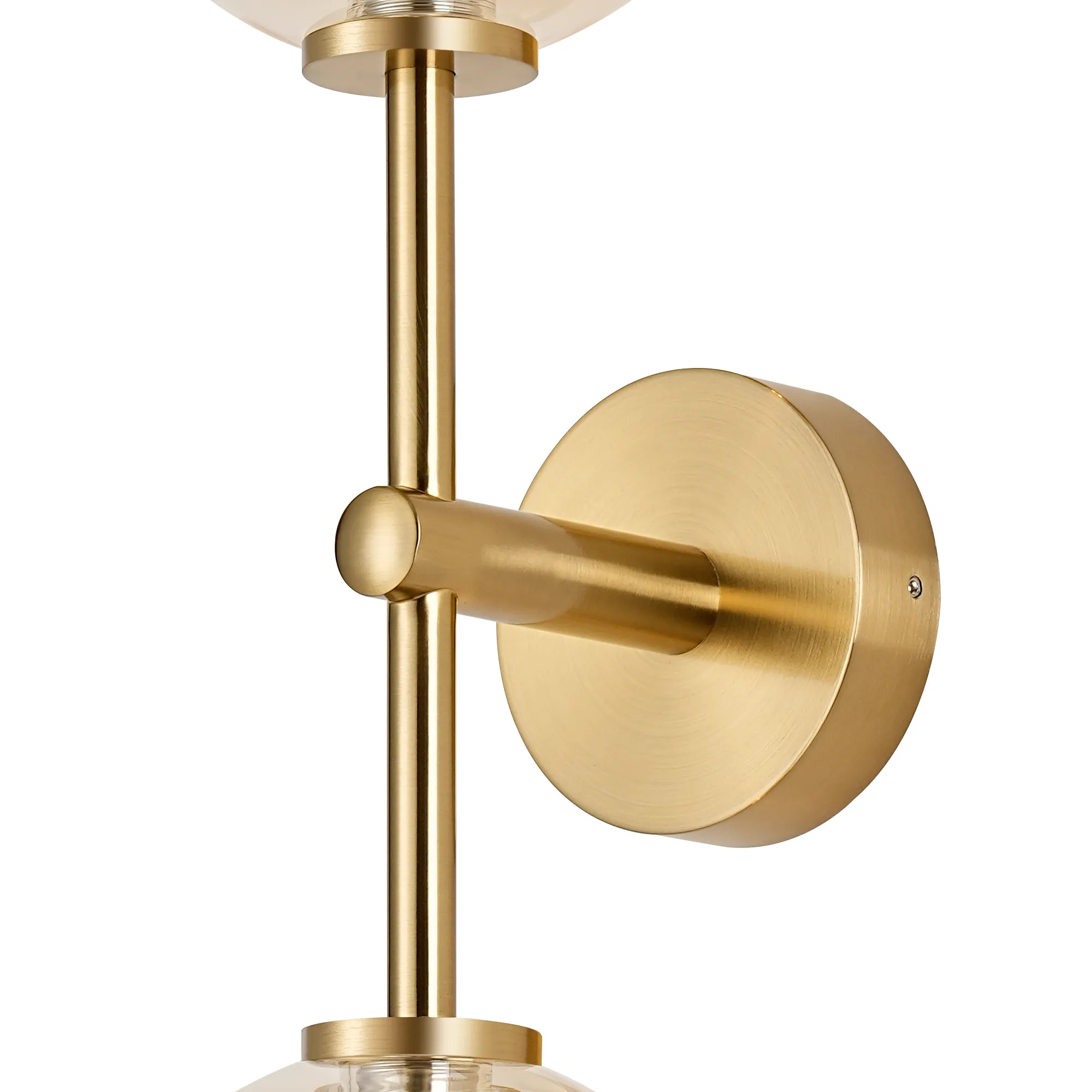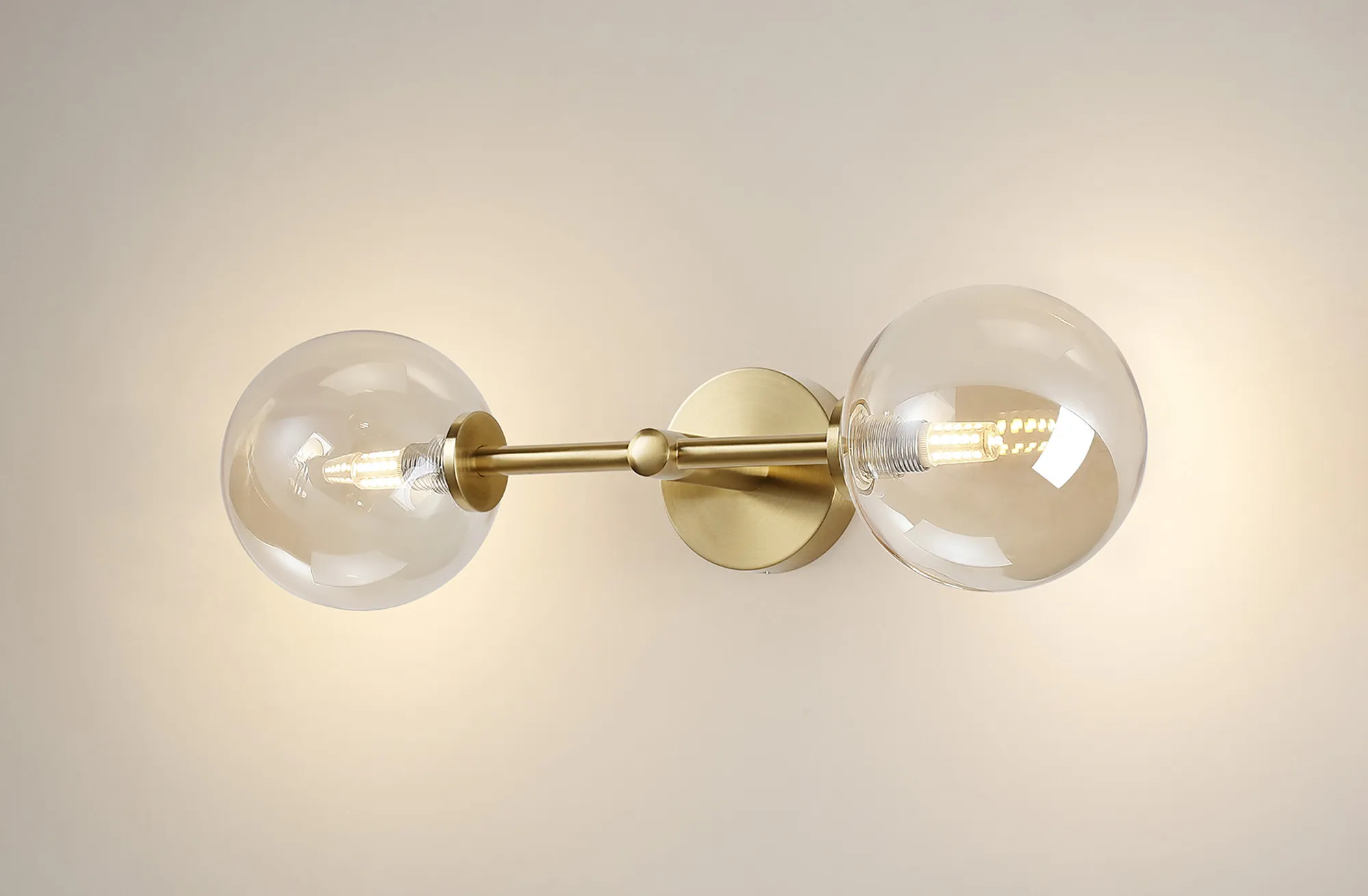 OTHER Nova Medium Arm Wall Lamp 2 Light IP44 Brass Gold/Amber Smooth Round Glass