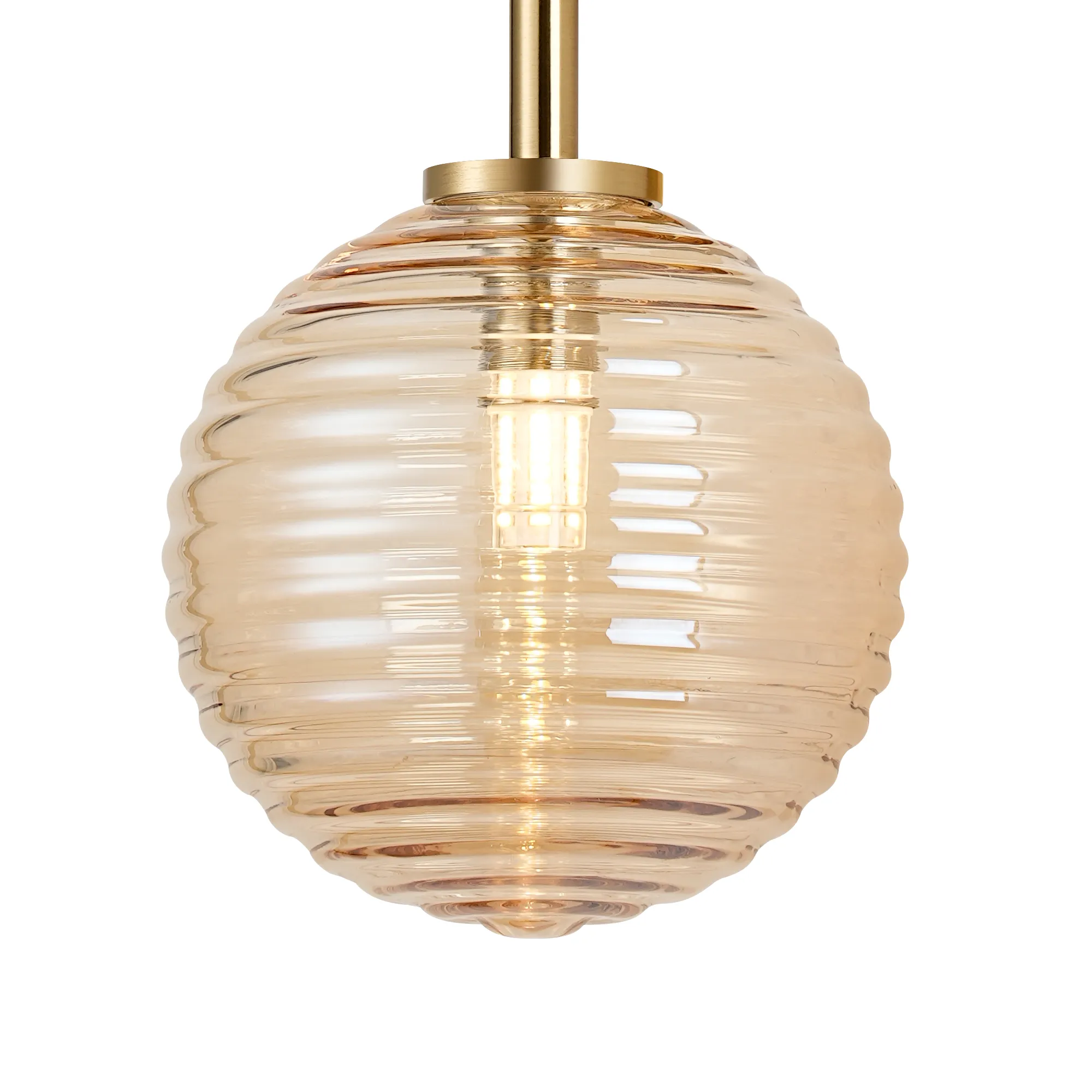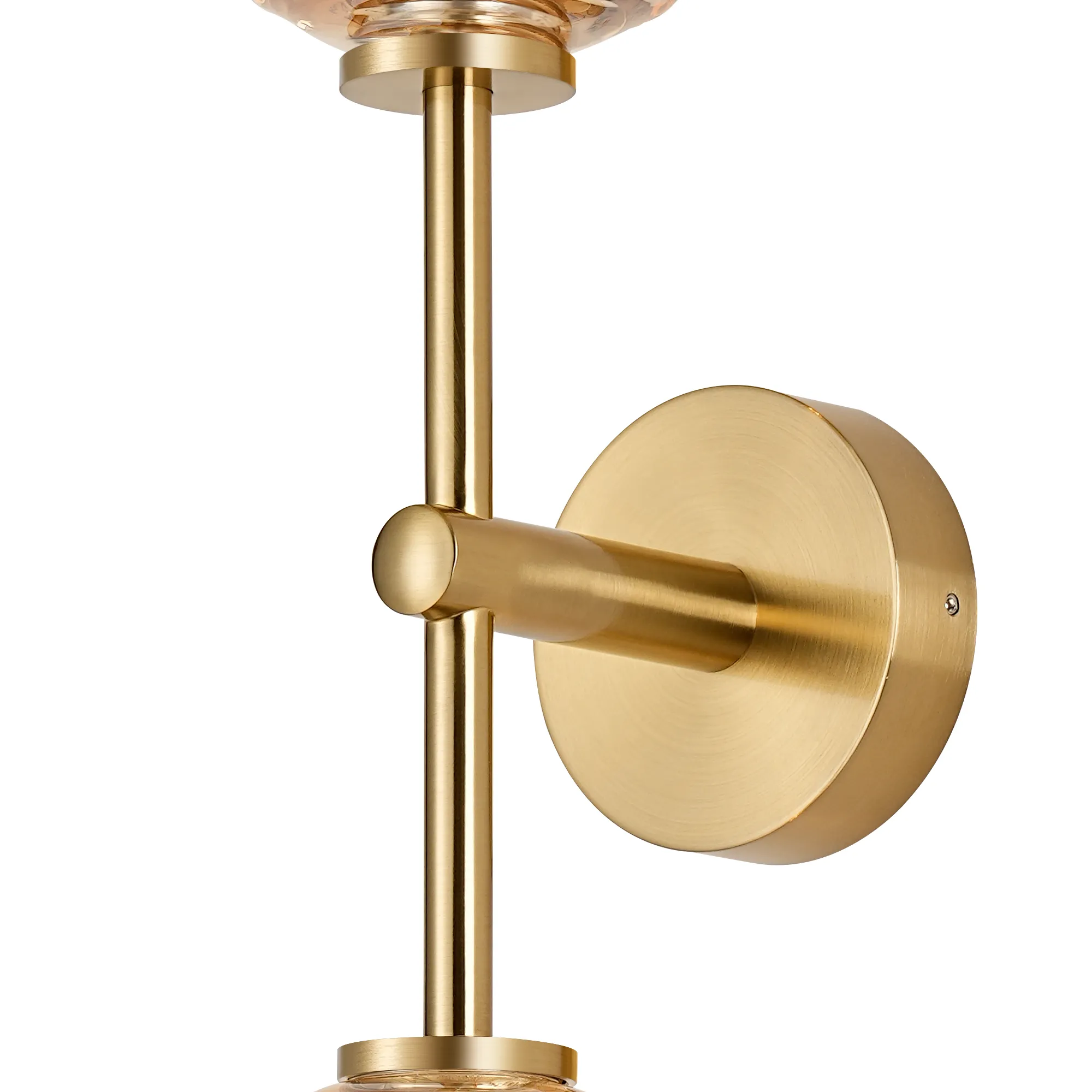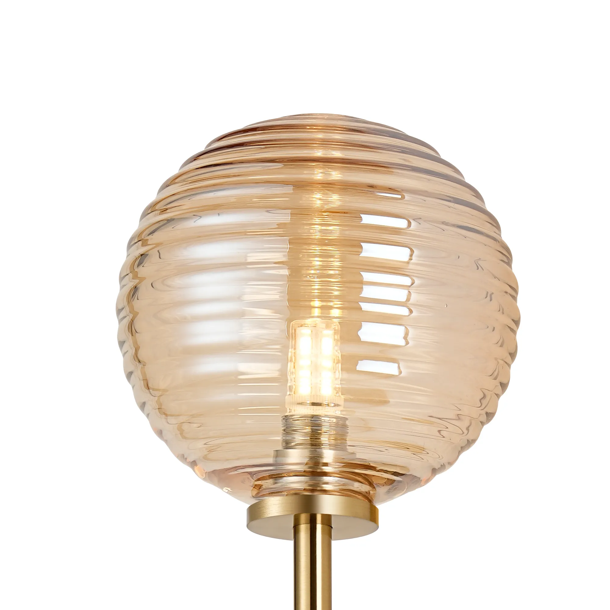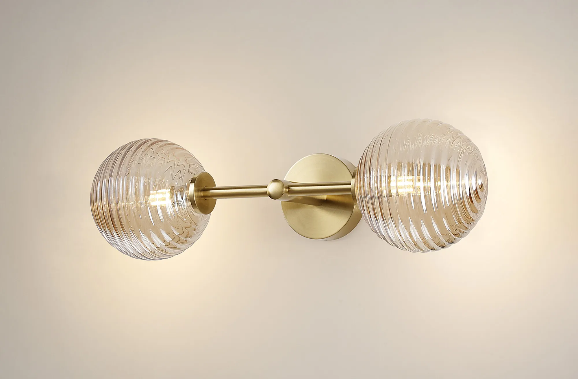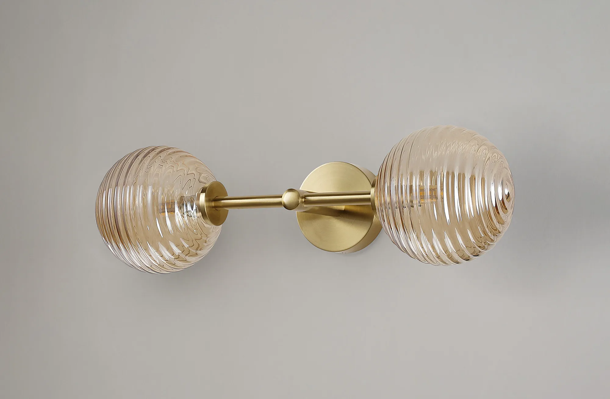 OTHER Nova Medium Arm Wall Lamp 2 Light IP44 Brass Gold/Amber Ribbed Round Glass