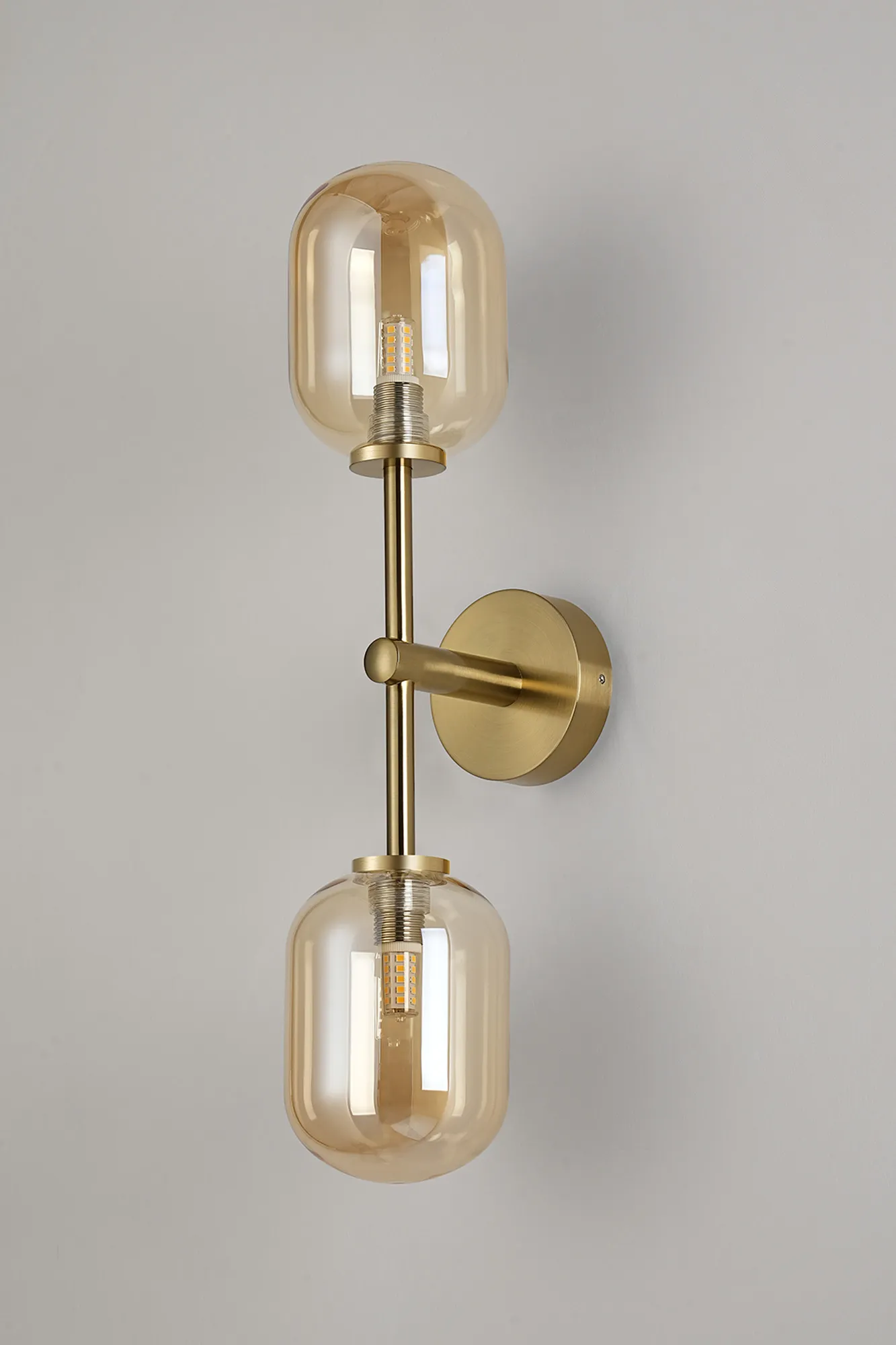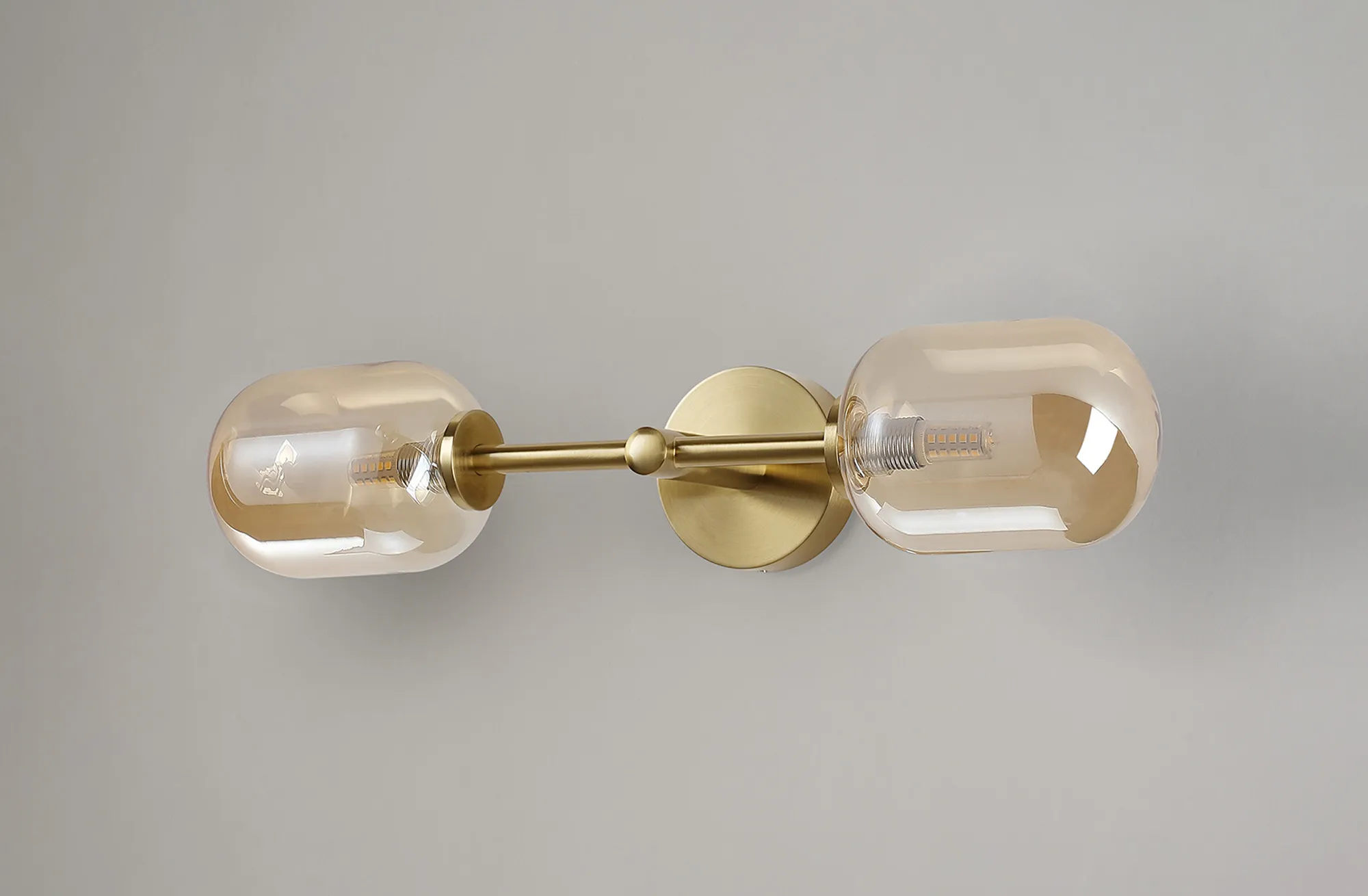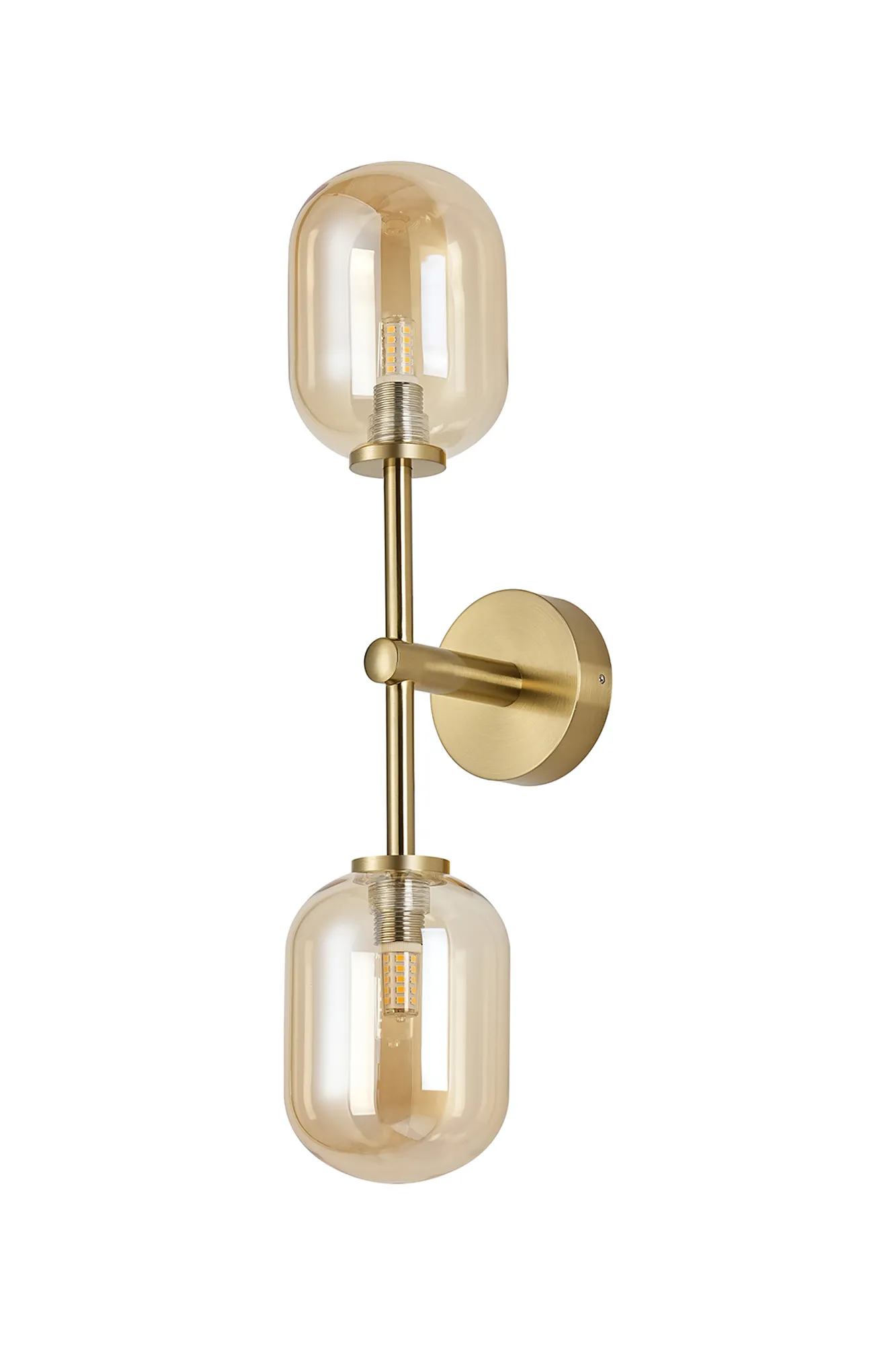 OTHER Nova Medium Arm Wall Lamp 2 Light IP44 Brass Gold/Amber Smooth Tubular Glass