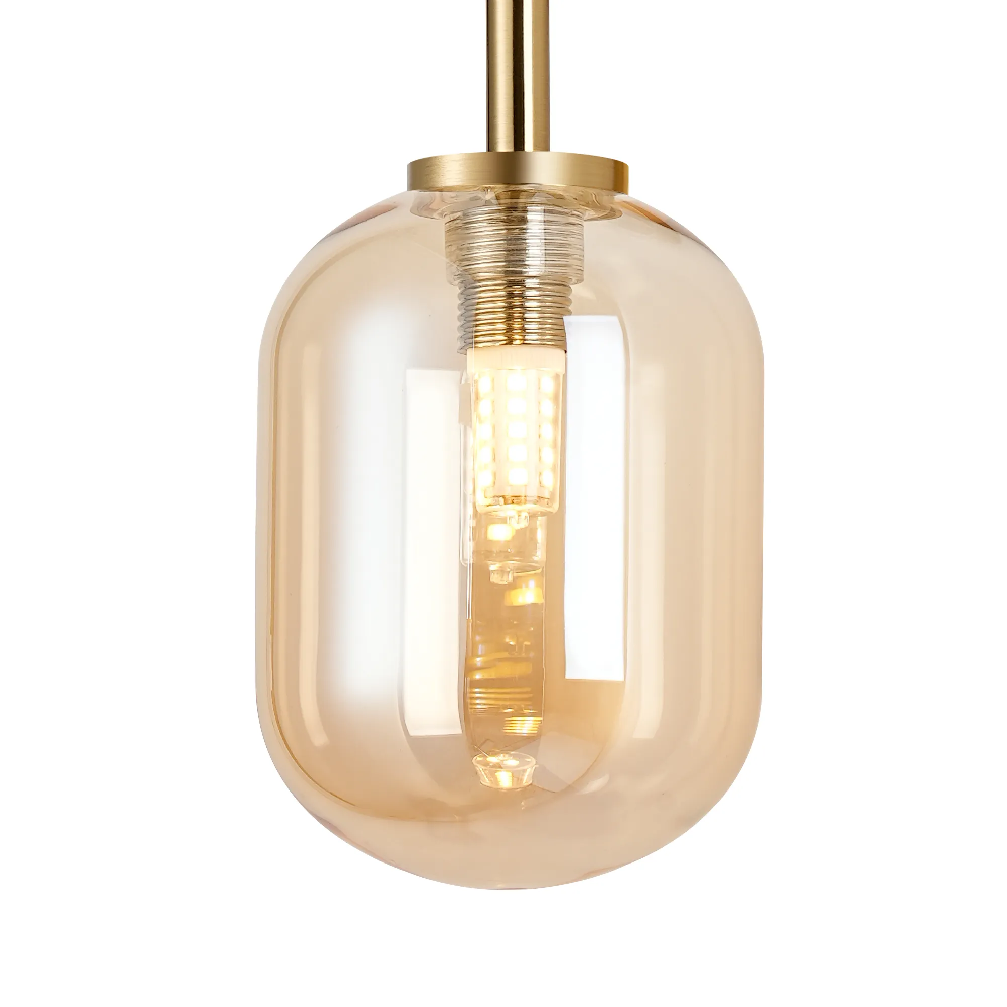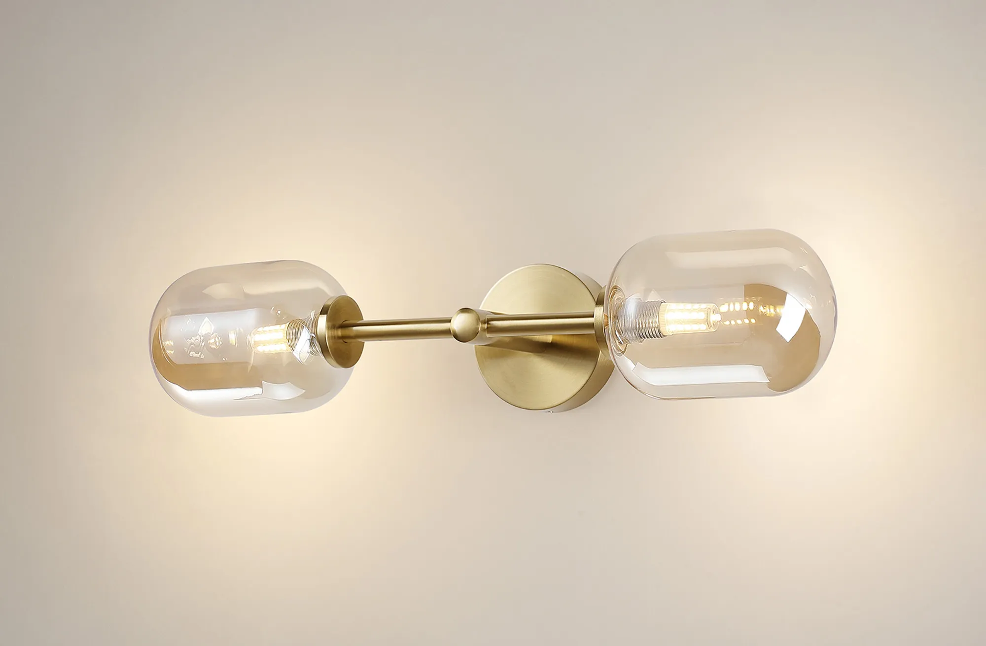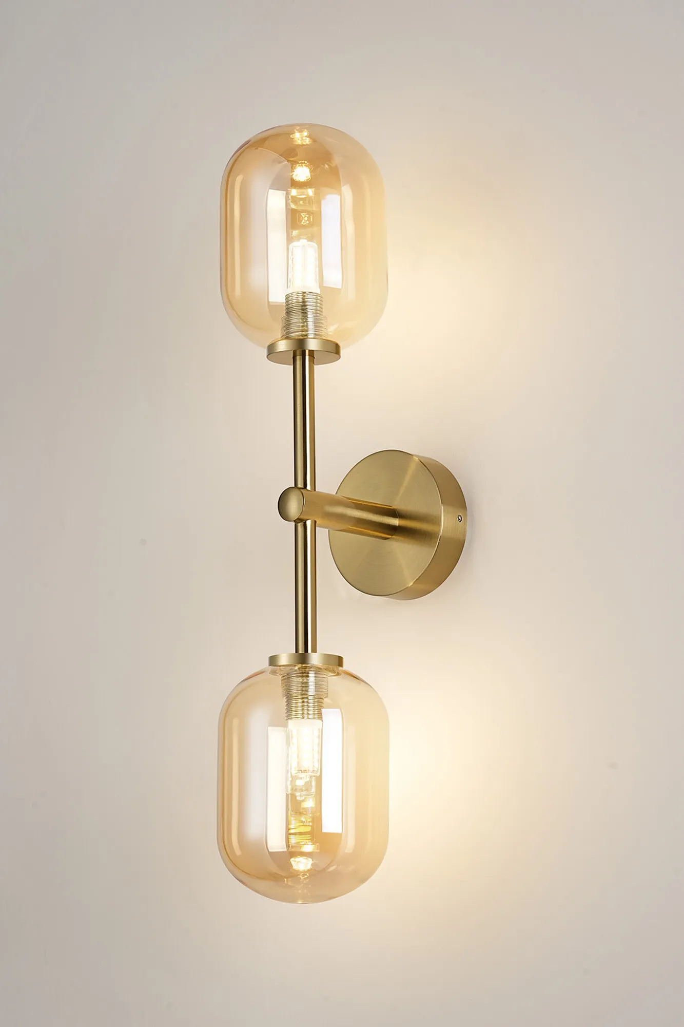 OTHER Nova Medium Arm Wall Lamp 2 Light IP44 Brass Gold/Amber Smooth Tubular Glass