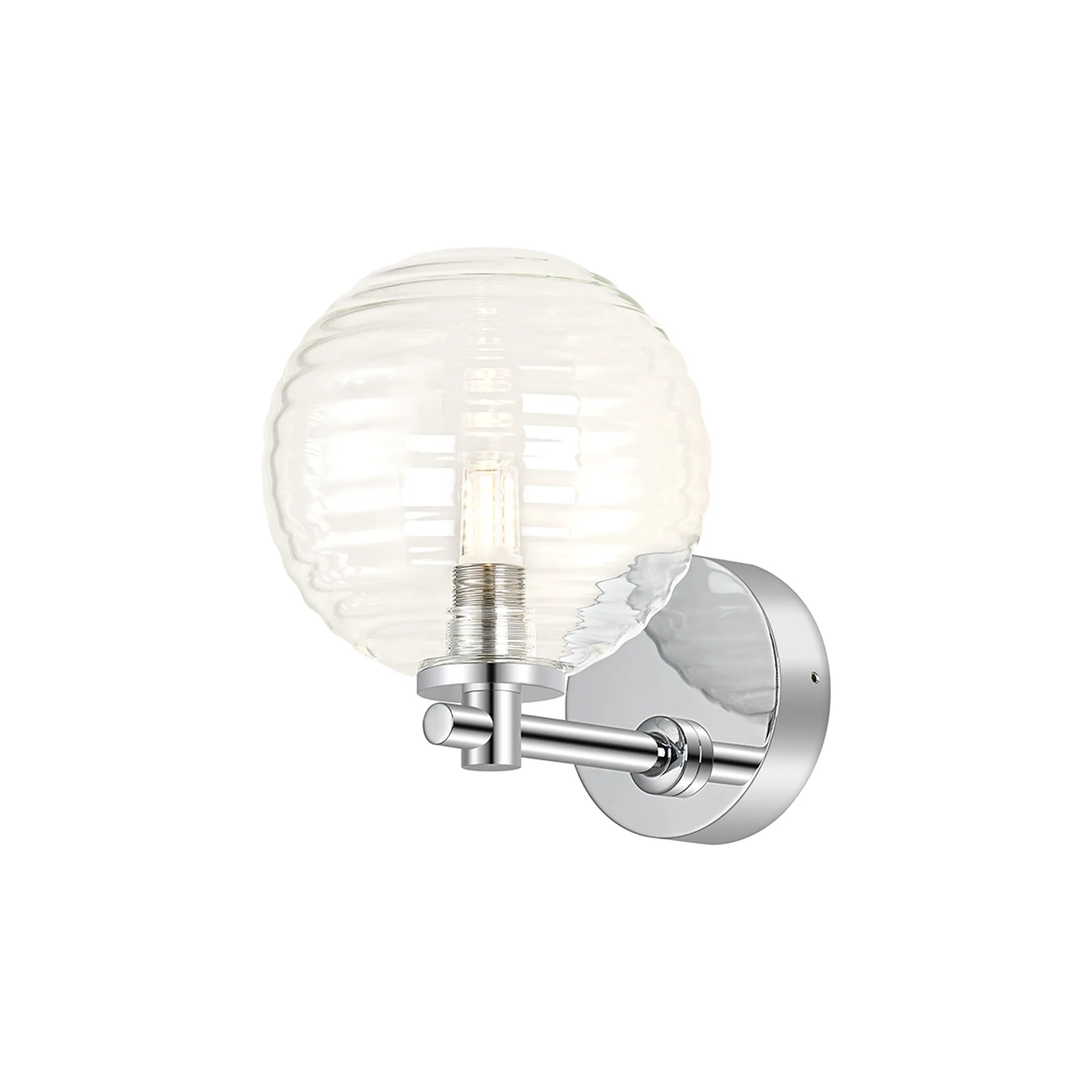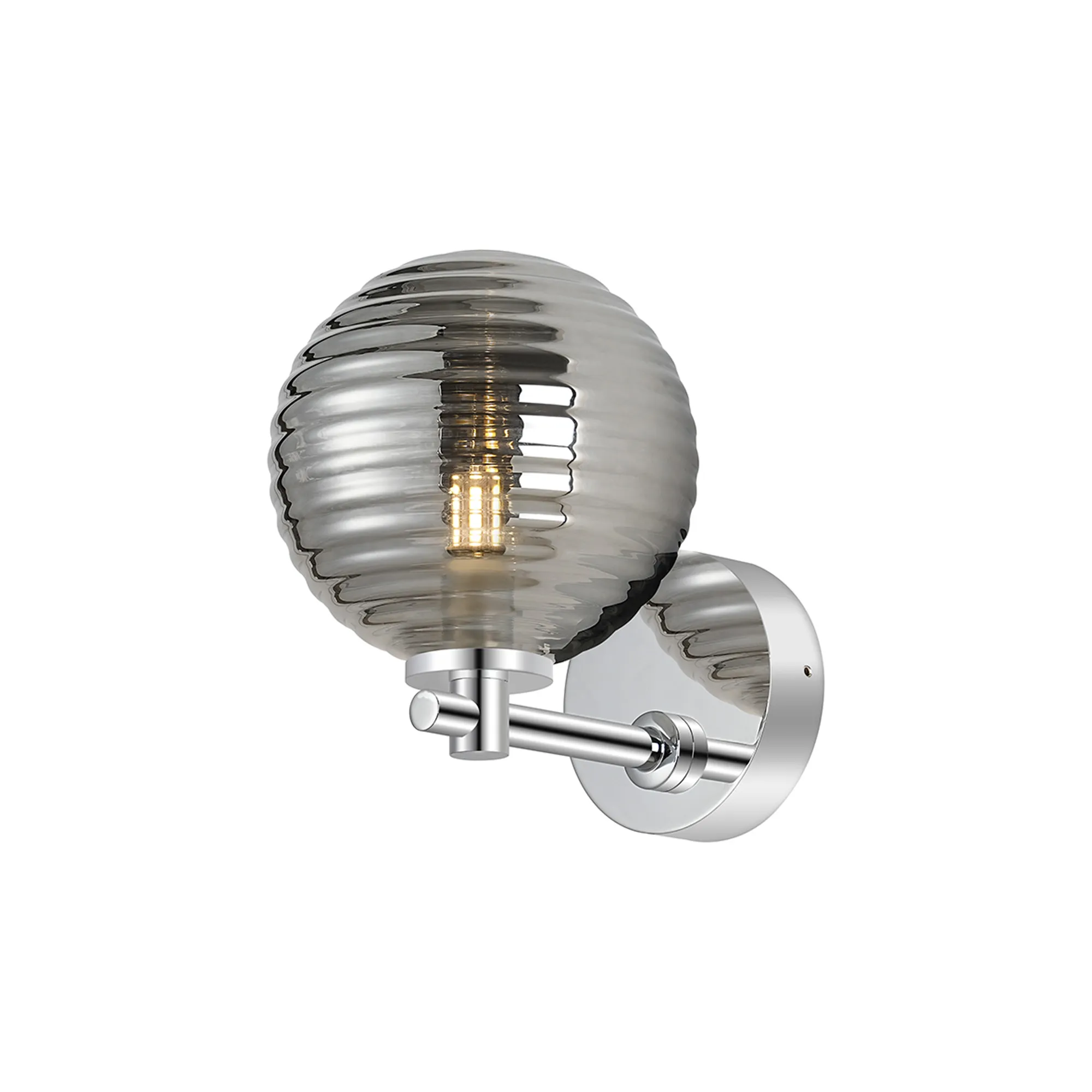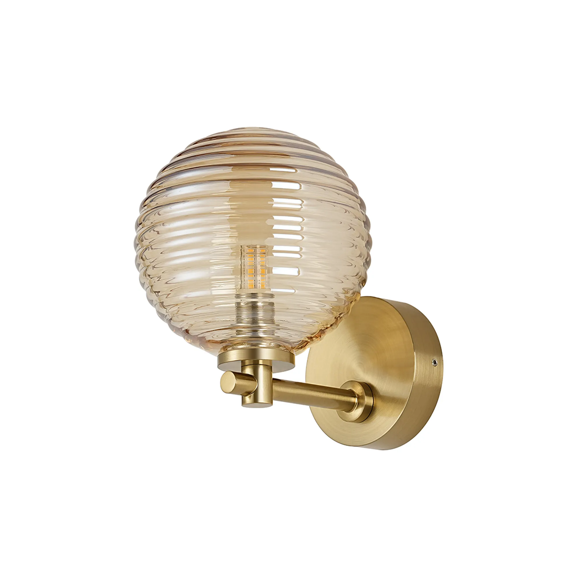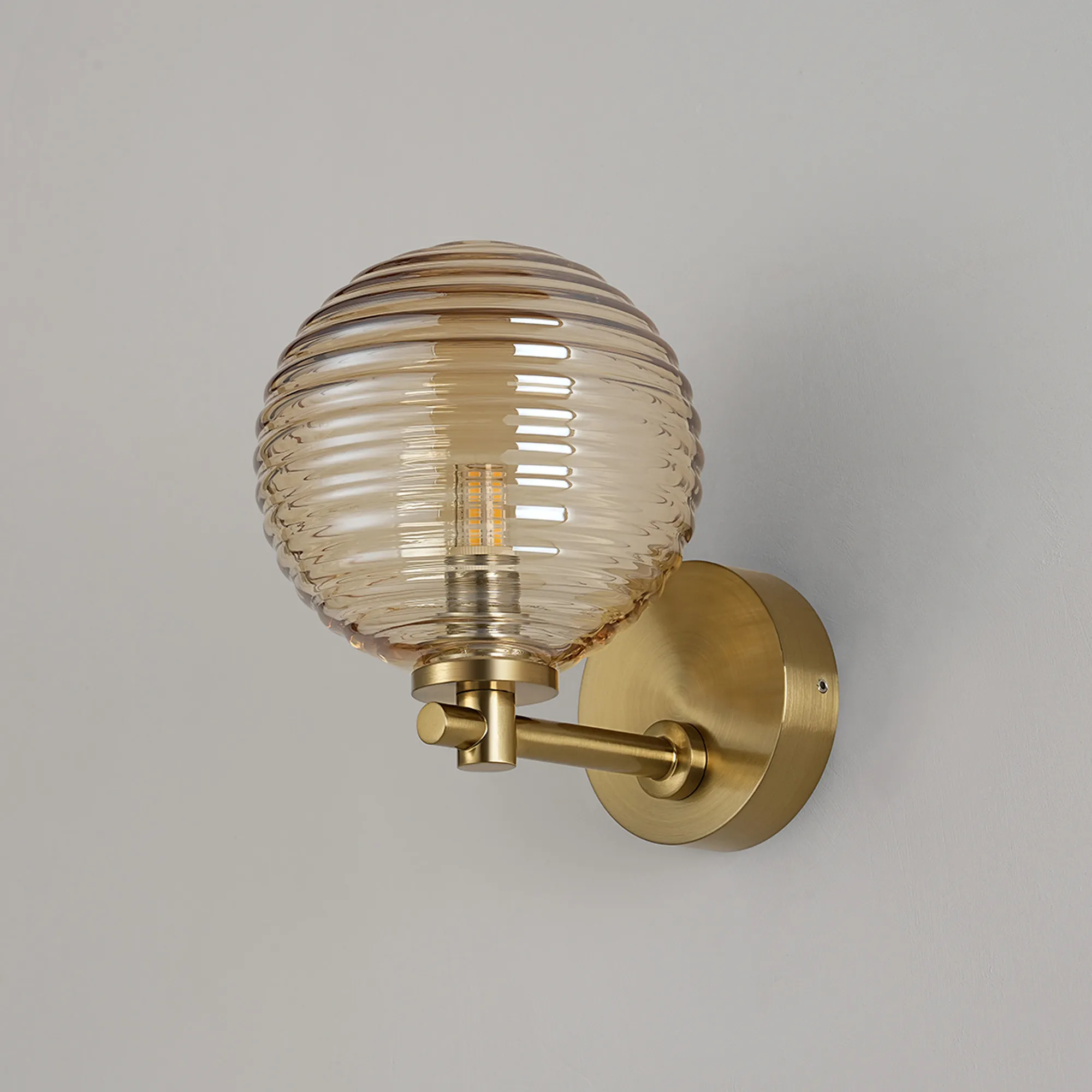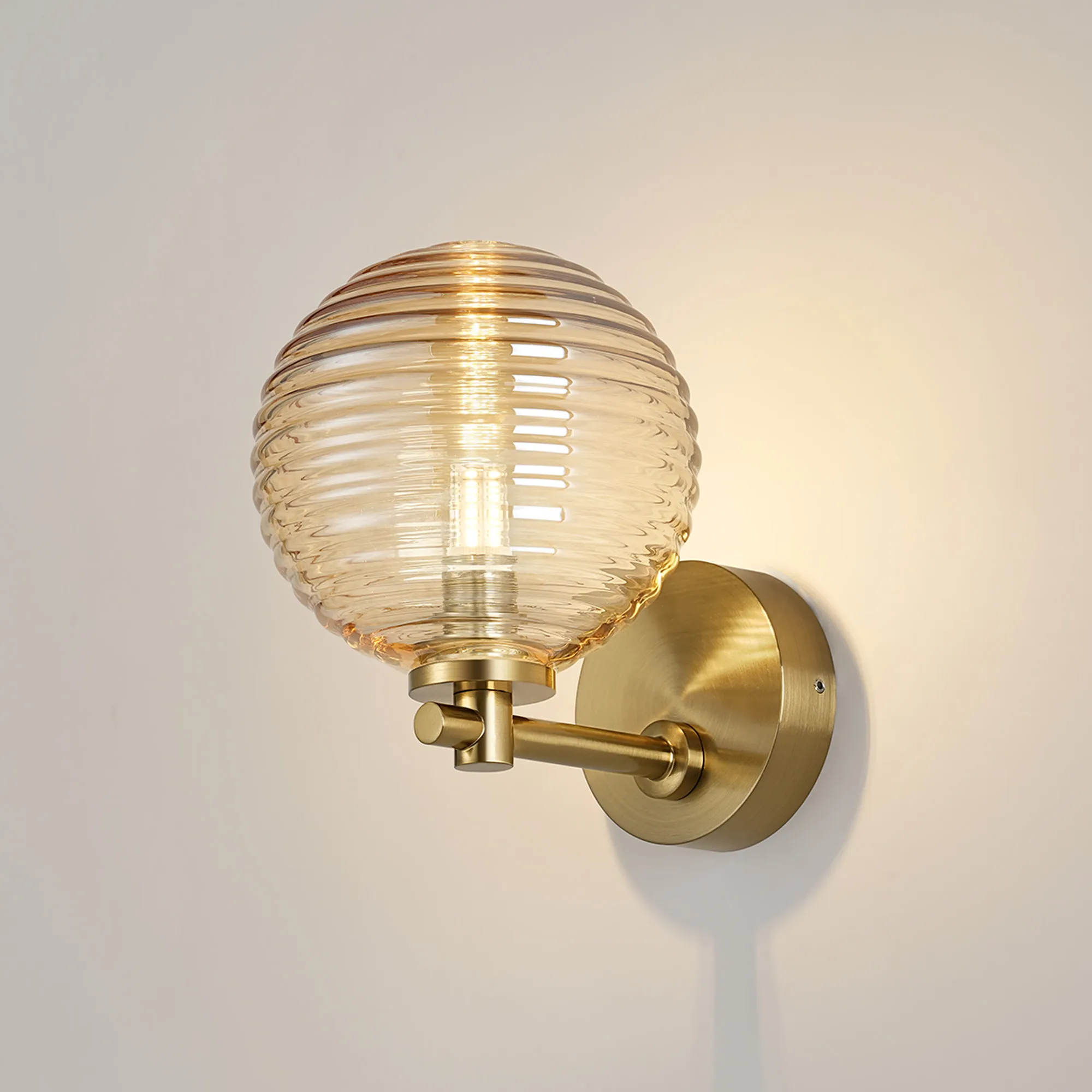 OTHER Nova Short Arm Wall Lamp 1 Light IP44 Brass Gold/Amber Ribbed Round Glass