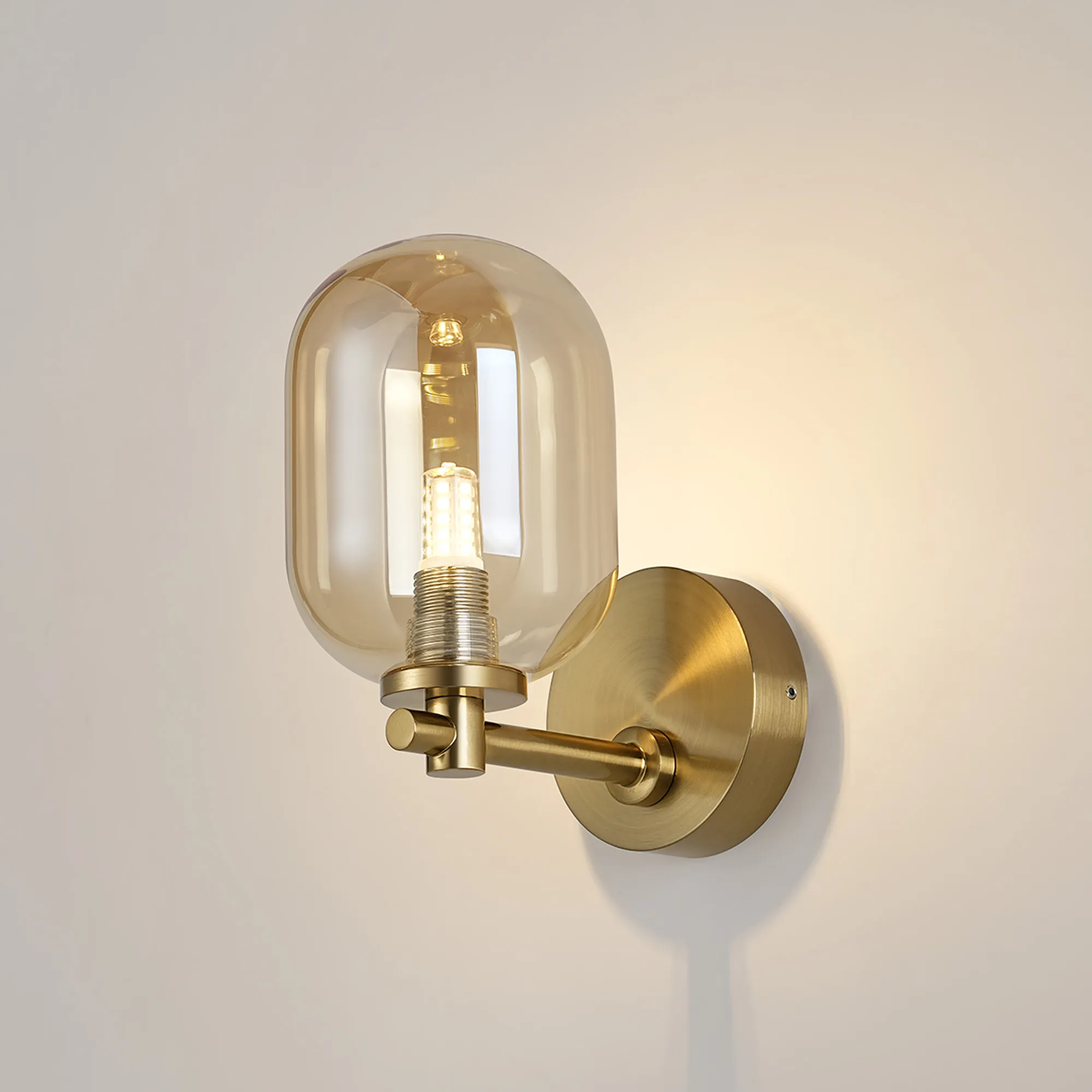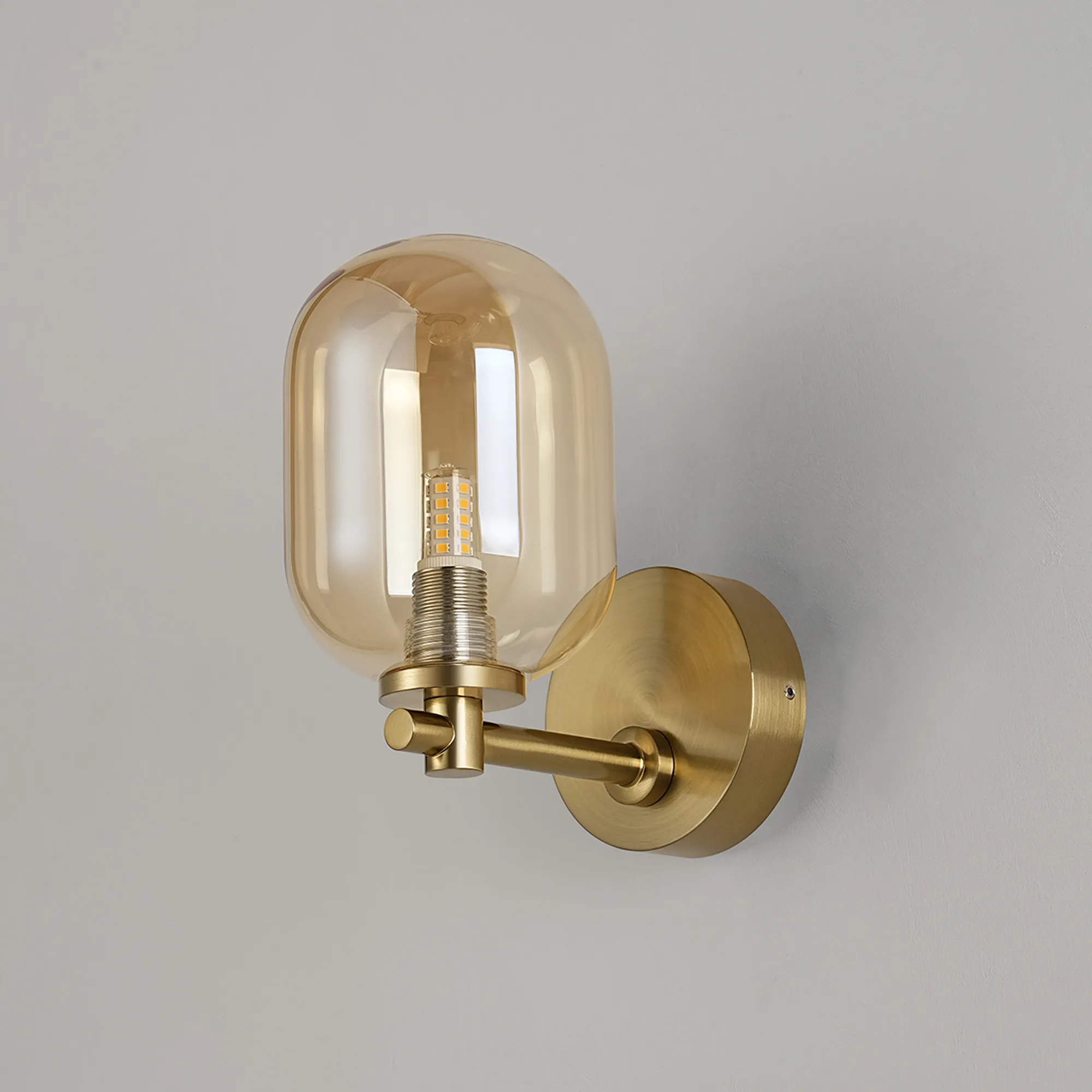OTHER Nova Short Arm Wall Lamp 1 Light IP44 Brass Gold/Amber Smooth Tubular Glass