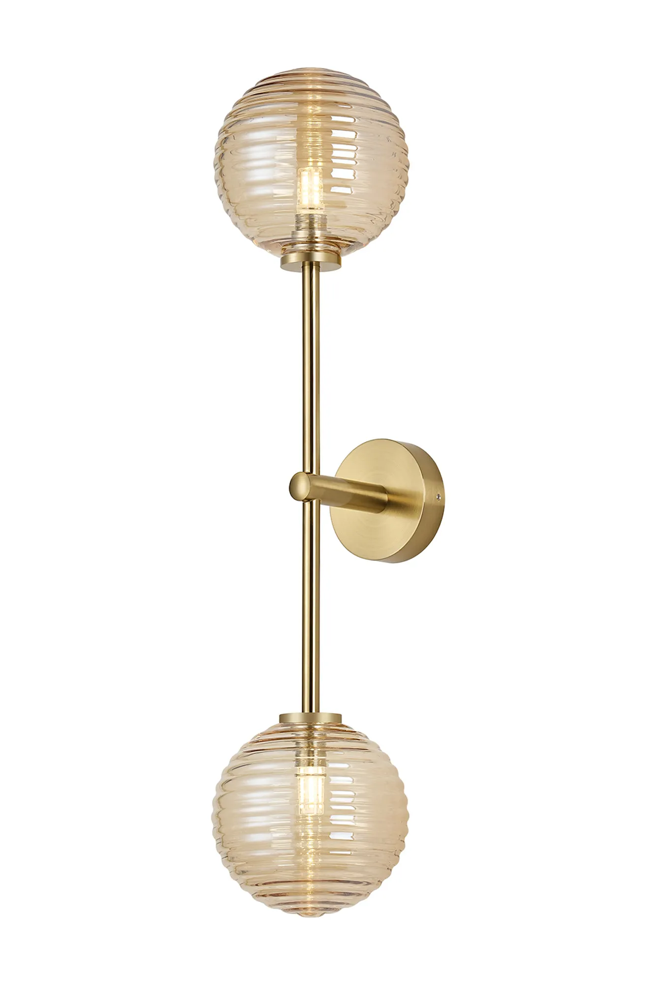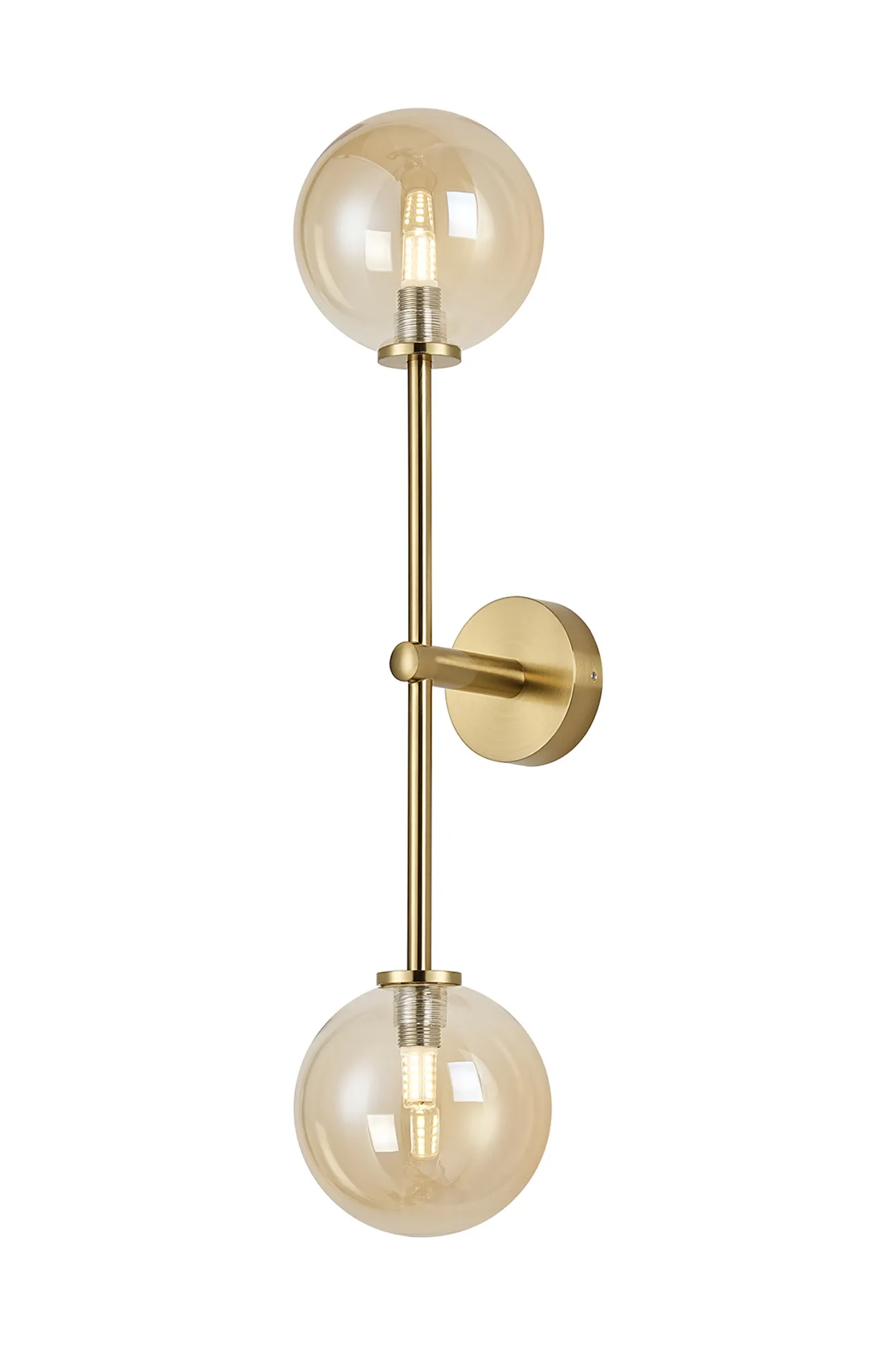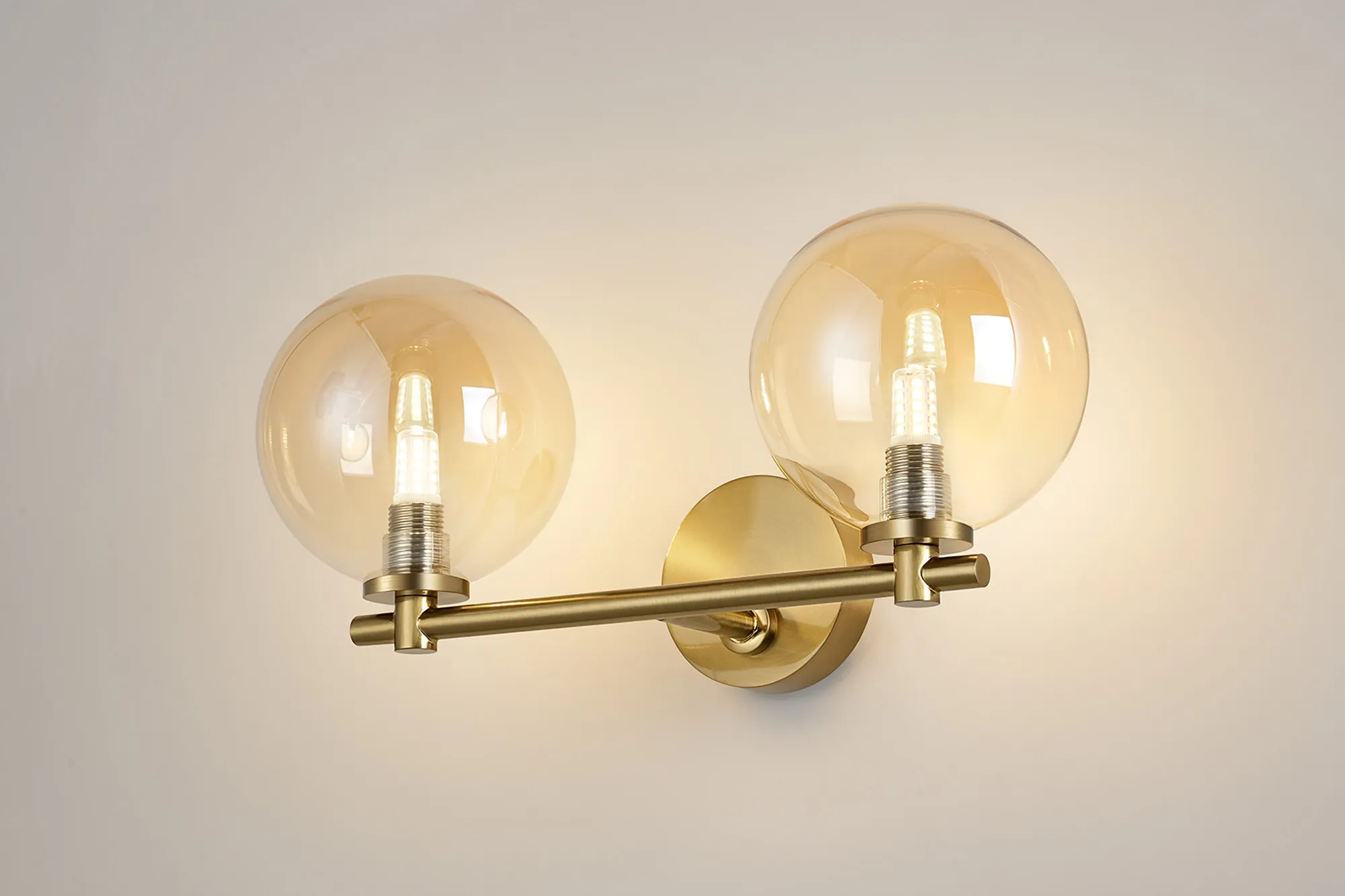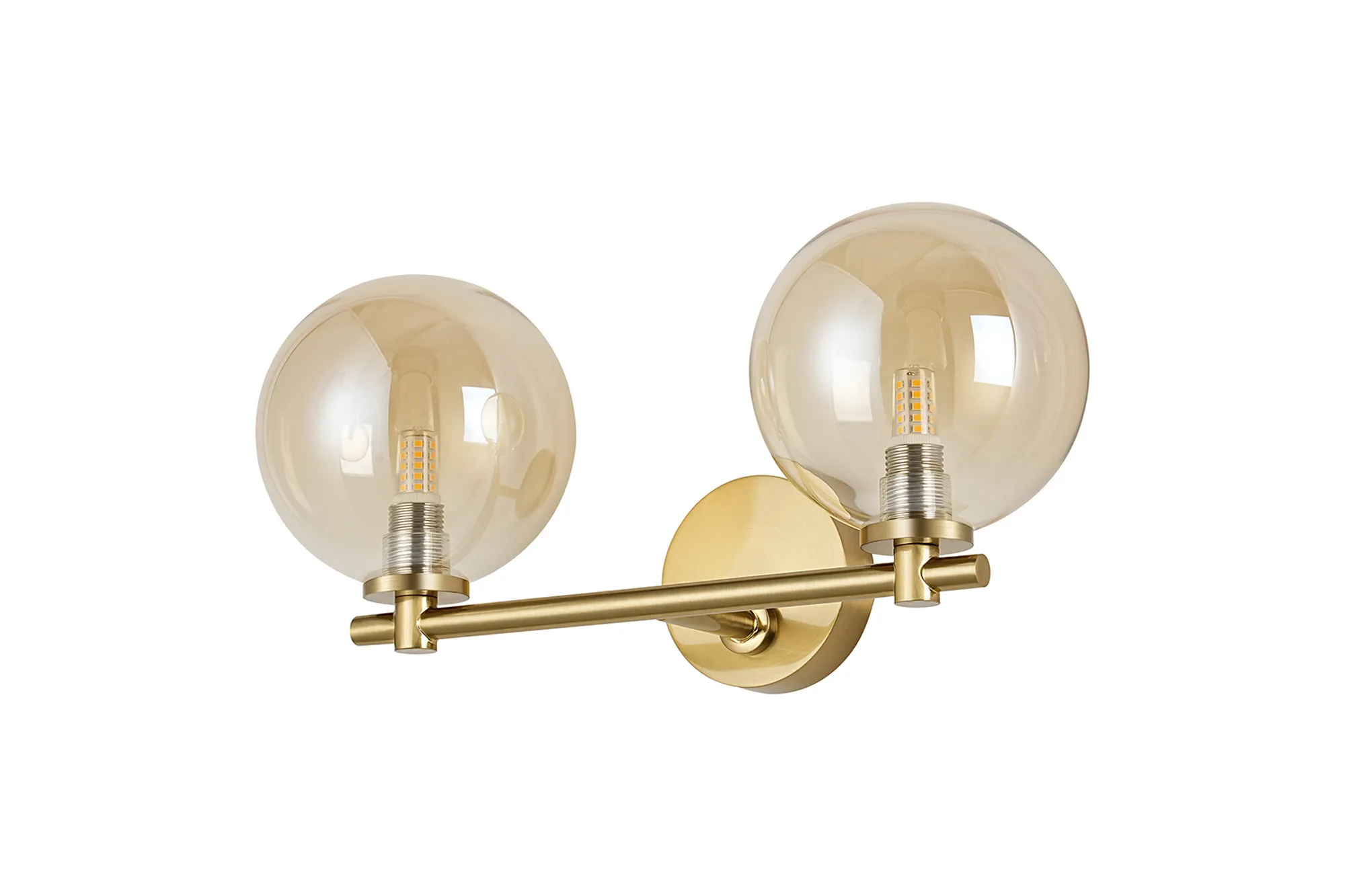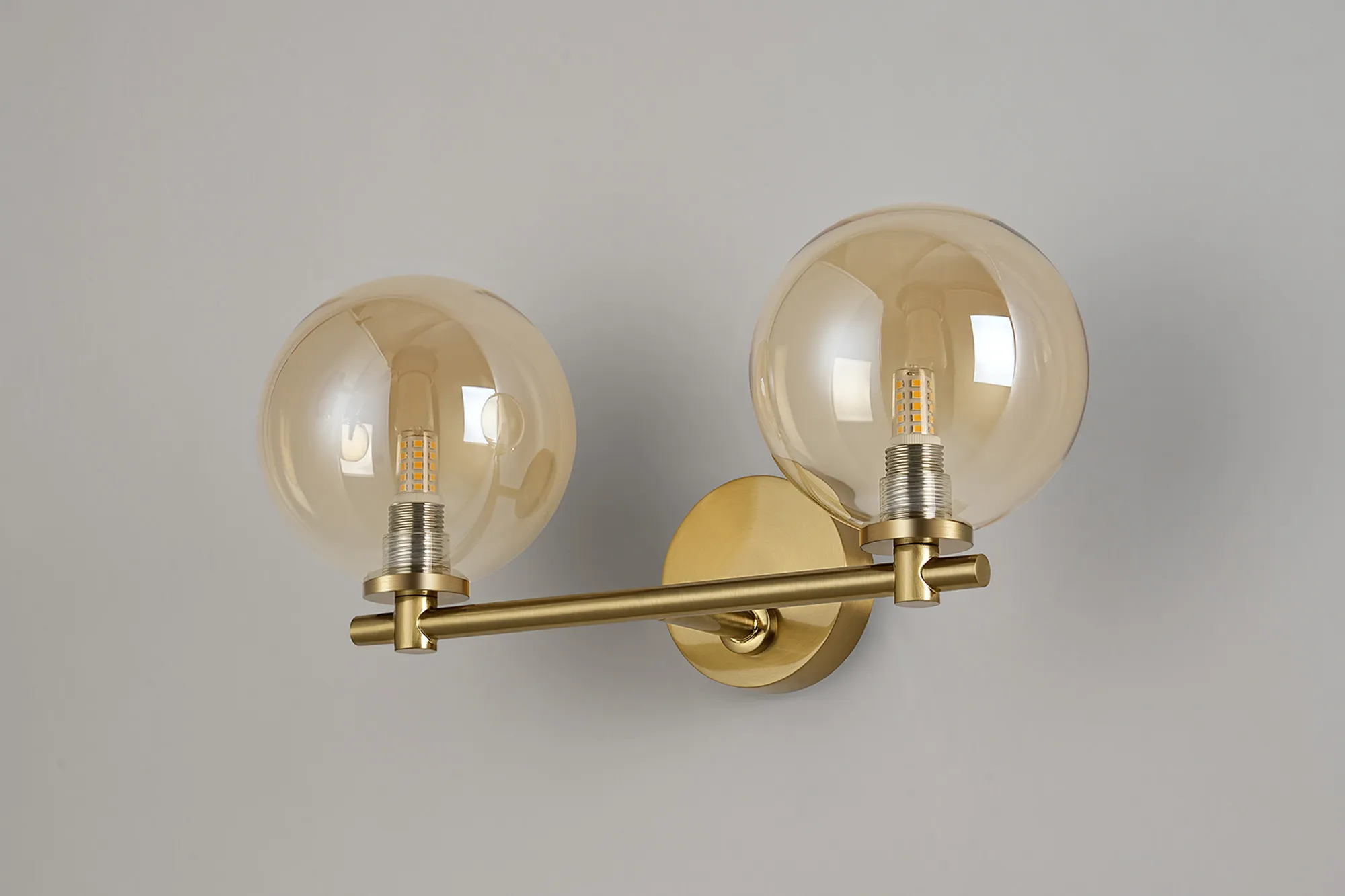 OTHER Nova Short Arm Wall Lamp 2 Light IP44 Brass Gold/Amber Smooth Round Glass