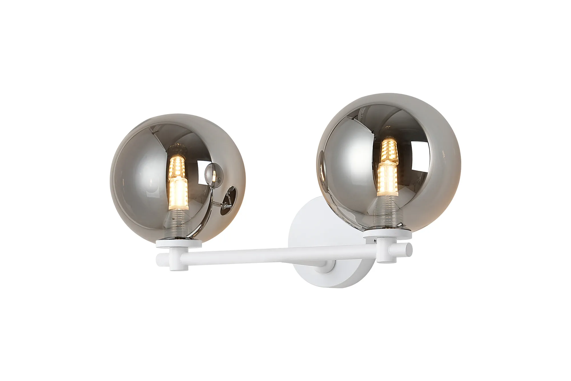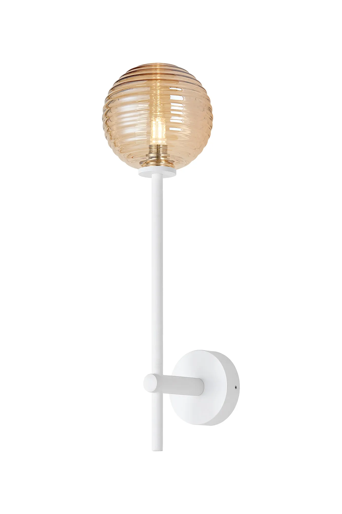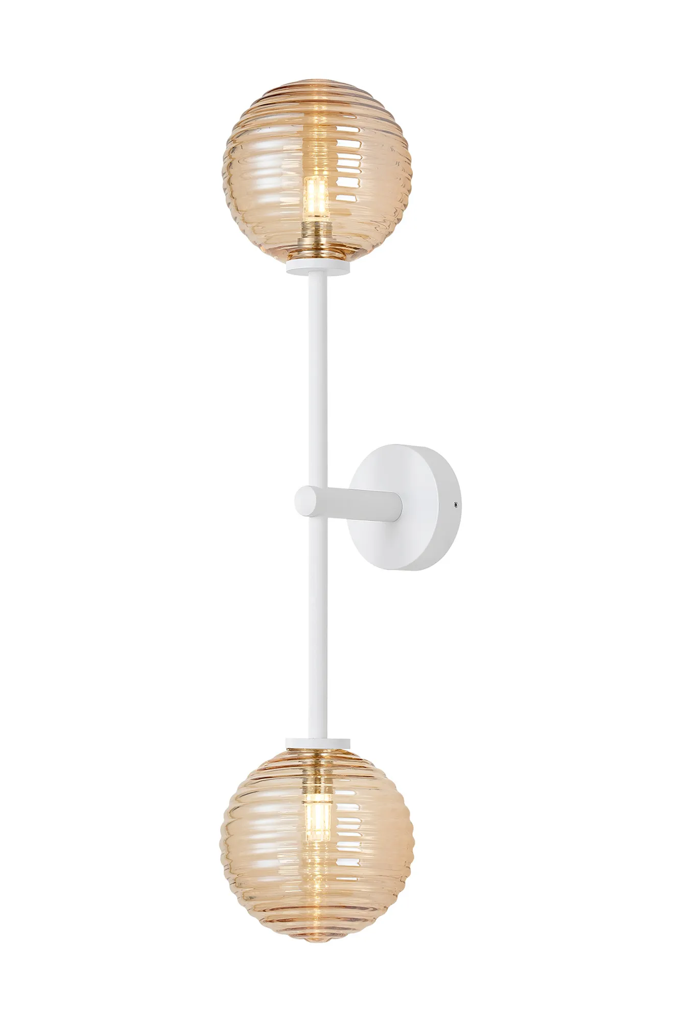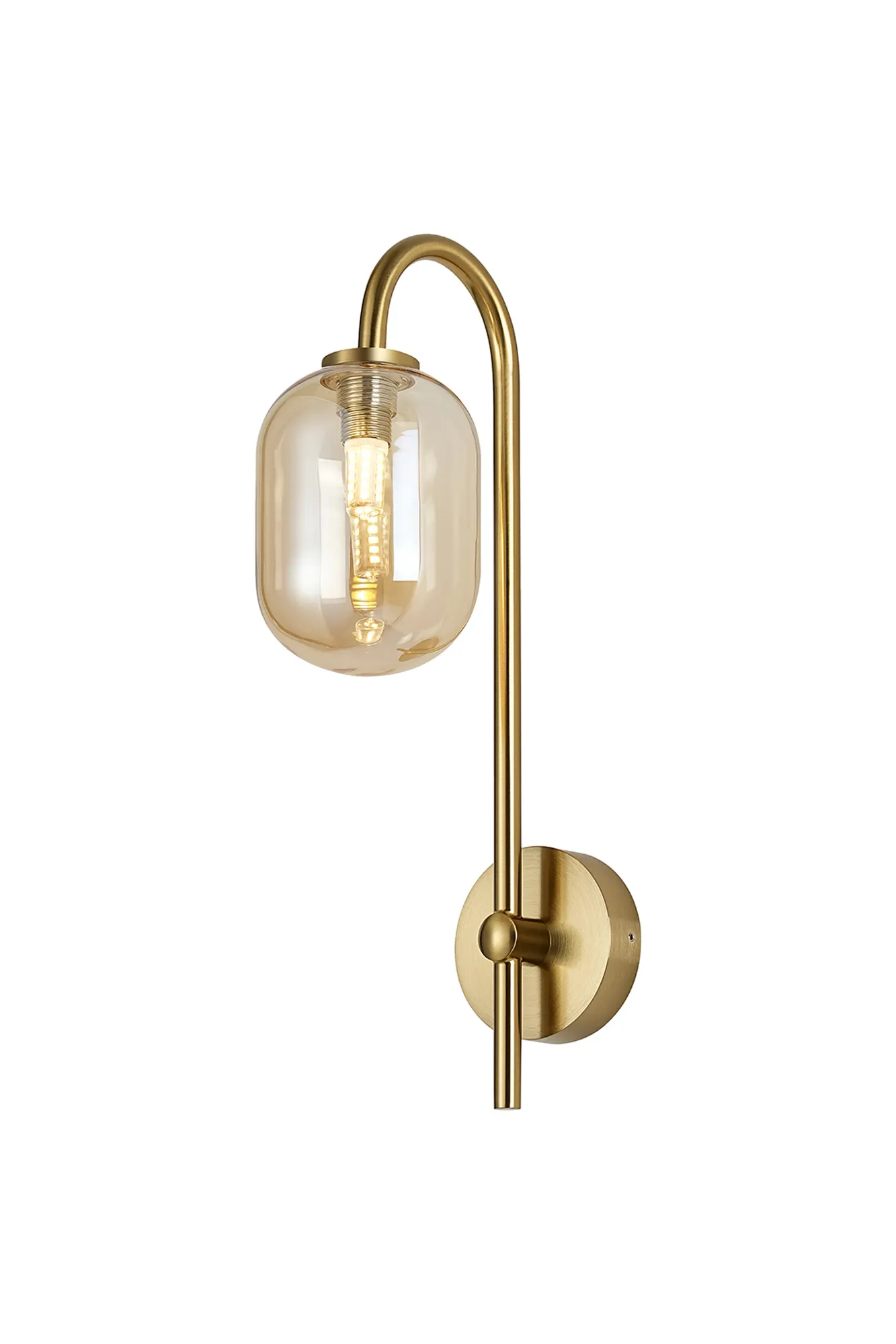 OTHER Nova Short Arm Wall Lamp 2 Light IP44 Brass Gold/Amber Smooth Round Glass