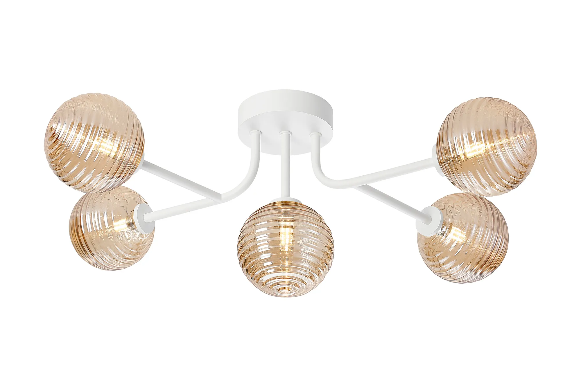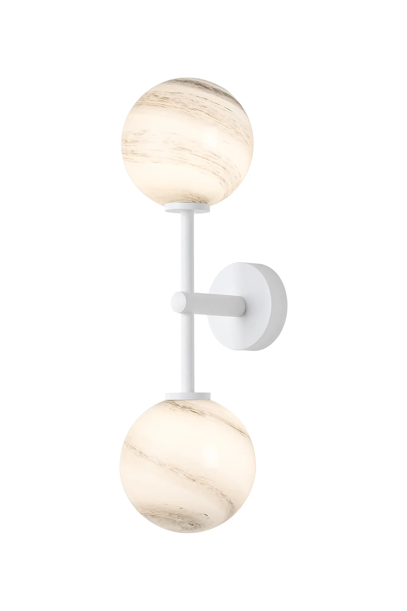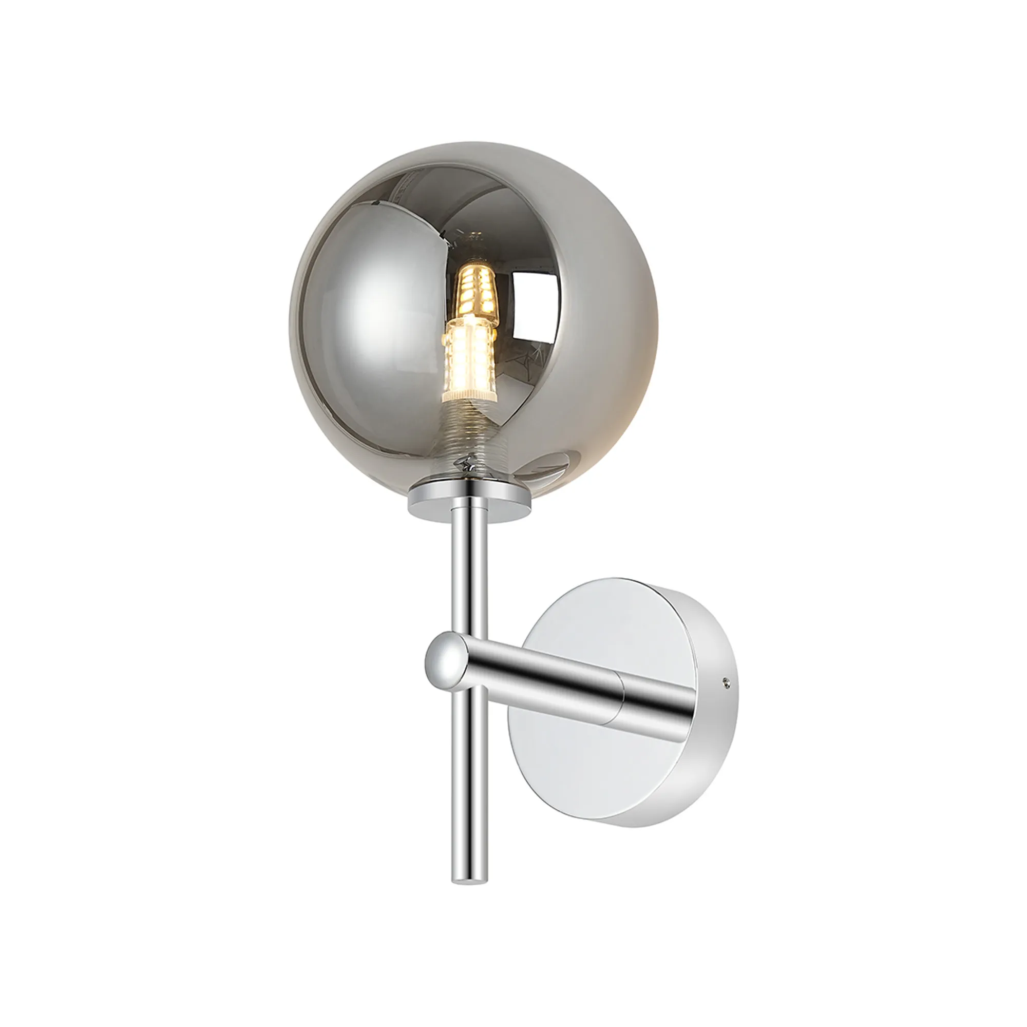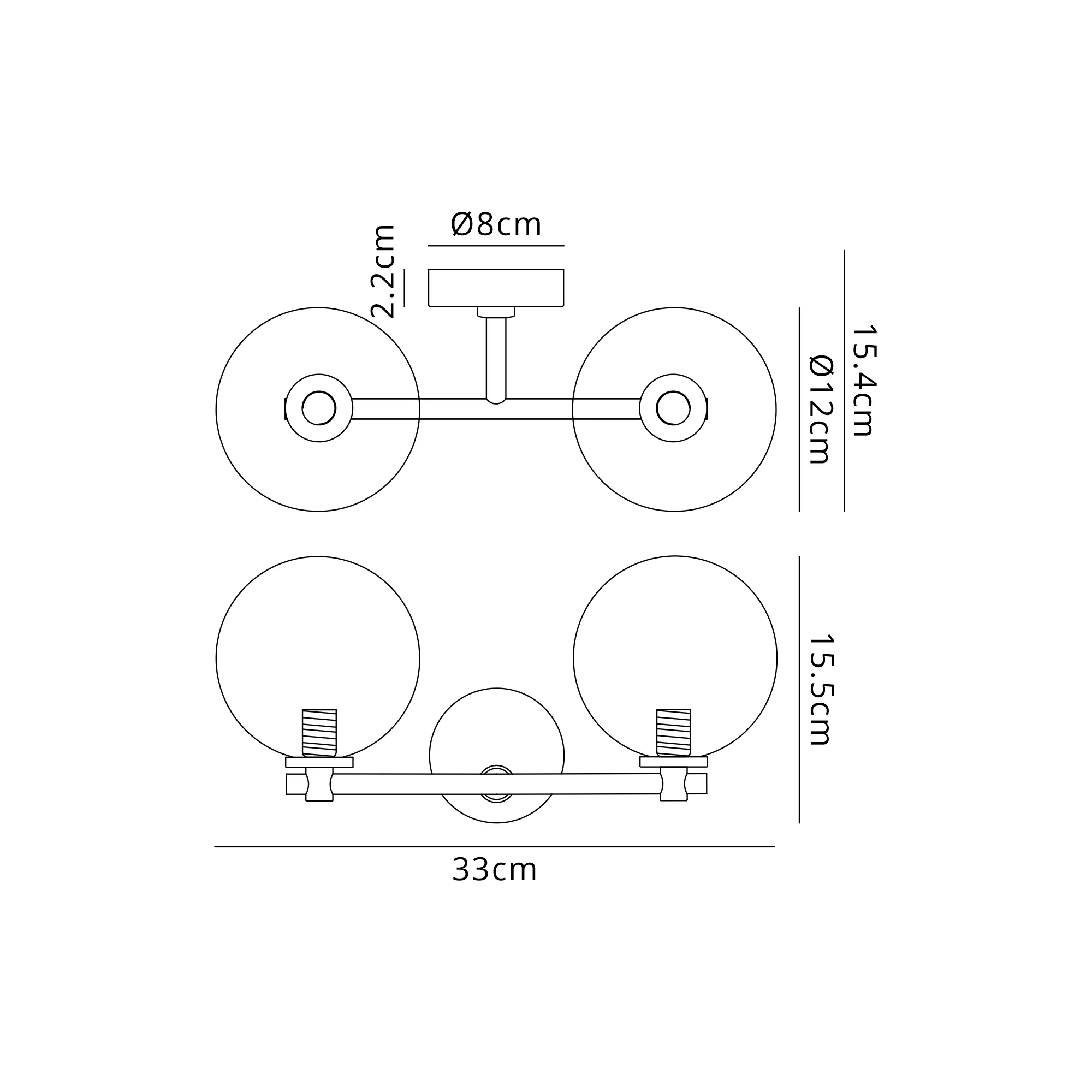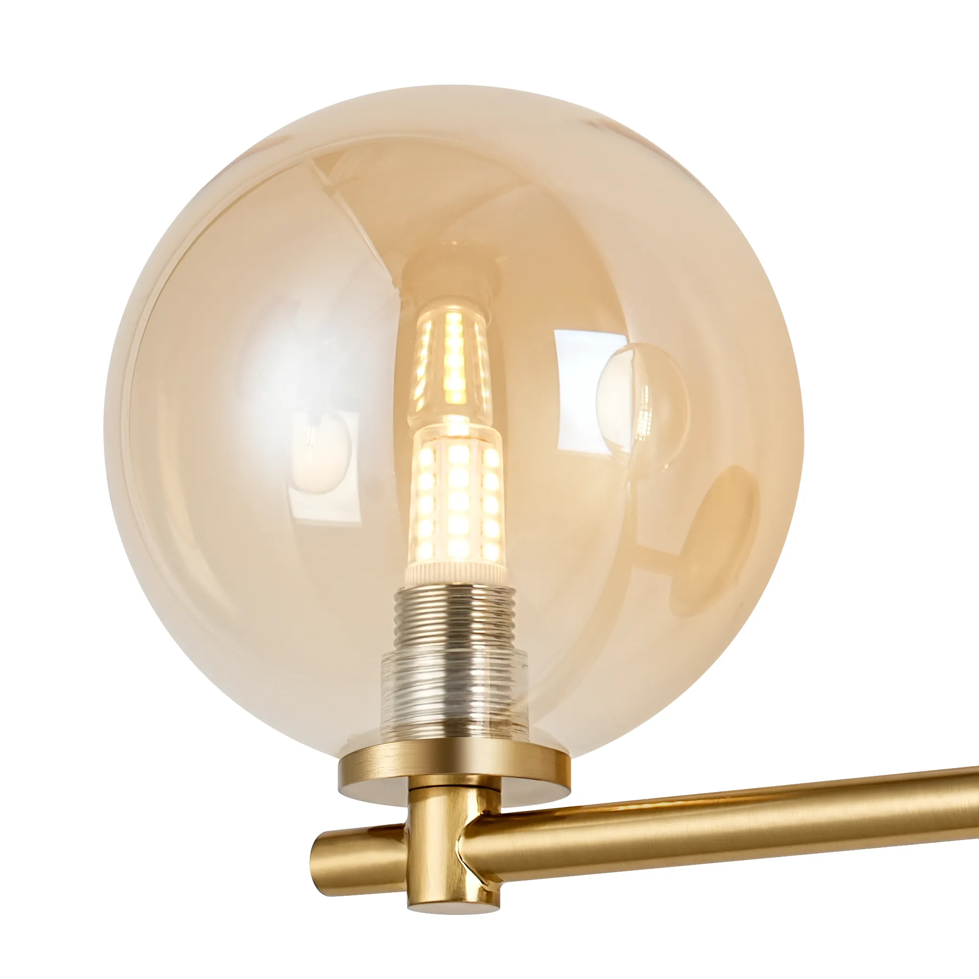 OTHER Nova Short Arm Wall Lamp 2 Light IP44 Brass Gold/Amber Smooth Round Glass