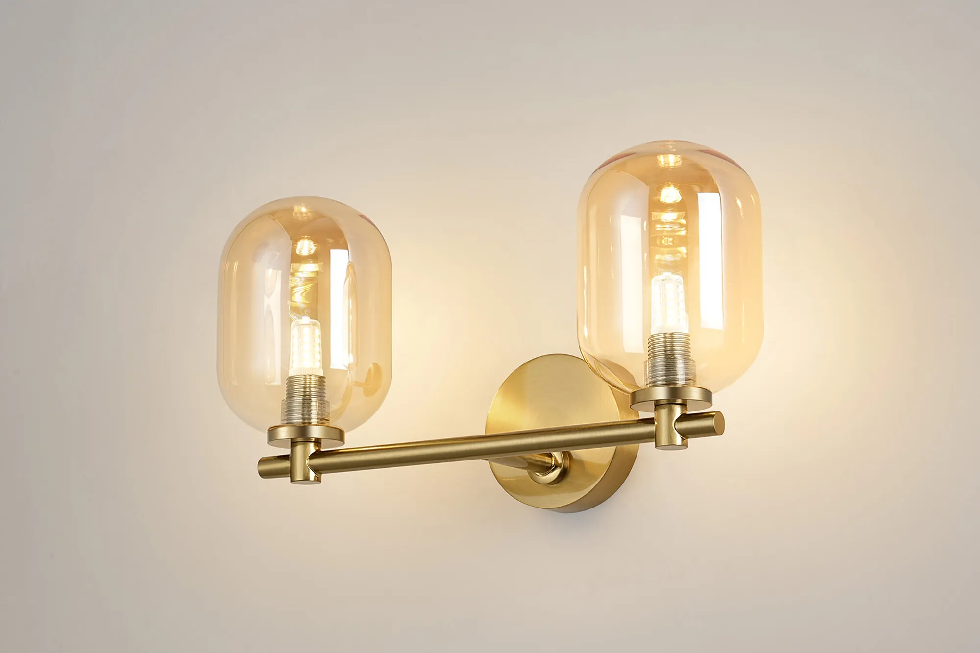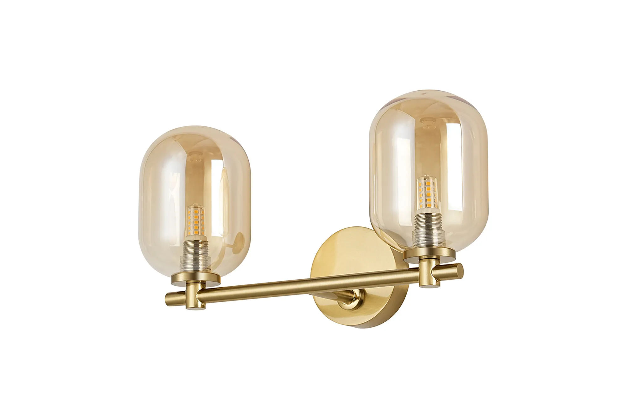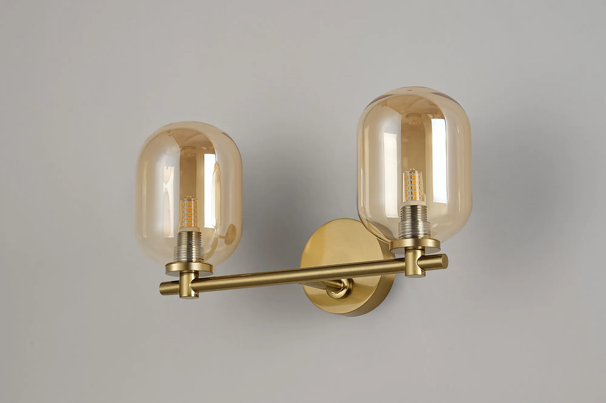 OTHER Nova Short Arm Wall Lamp 2 Light IP44 Brass Gold/Amber Smooth Tubular Glass