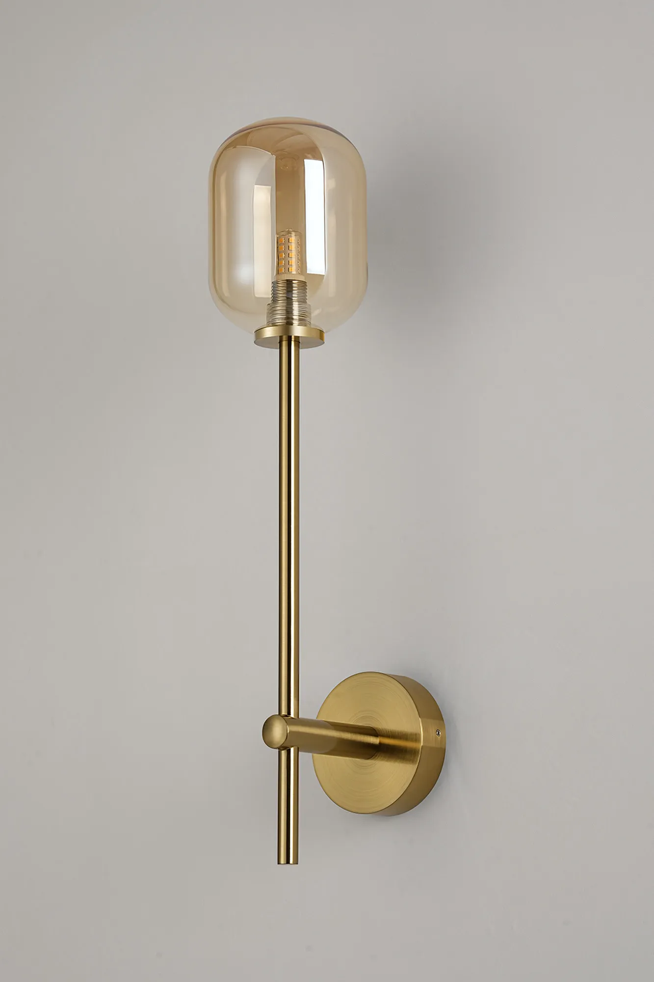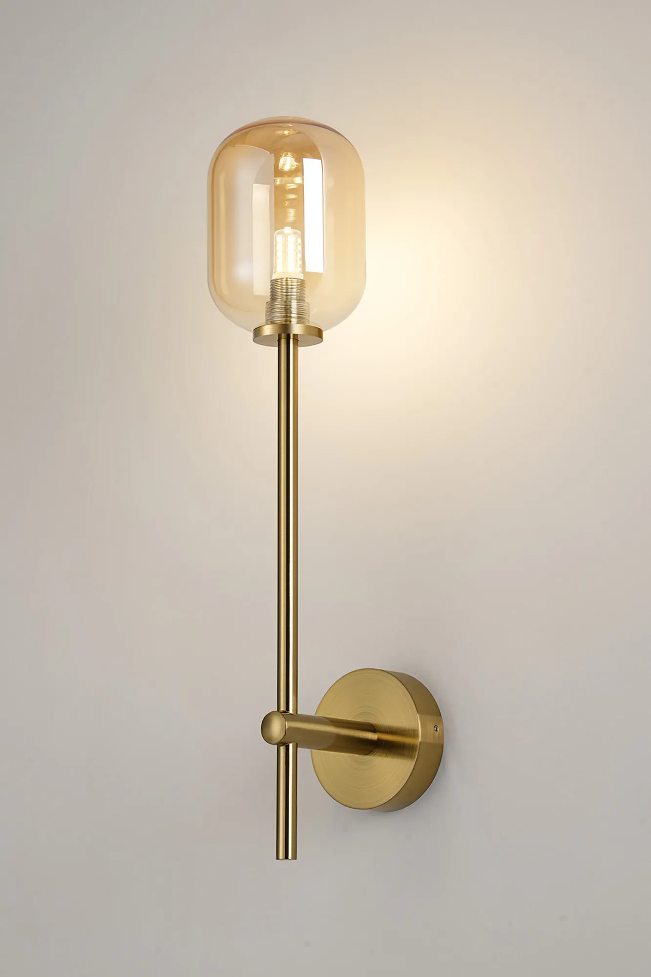 OTHER Nova Tall Arm Wall Lamp 1 Light IP44 Brass Gold/Amber Smooth Tubular Glass