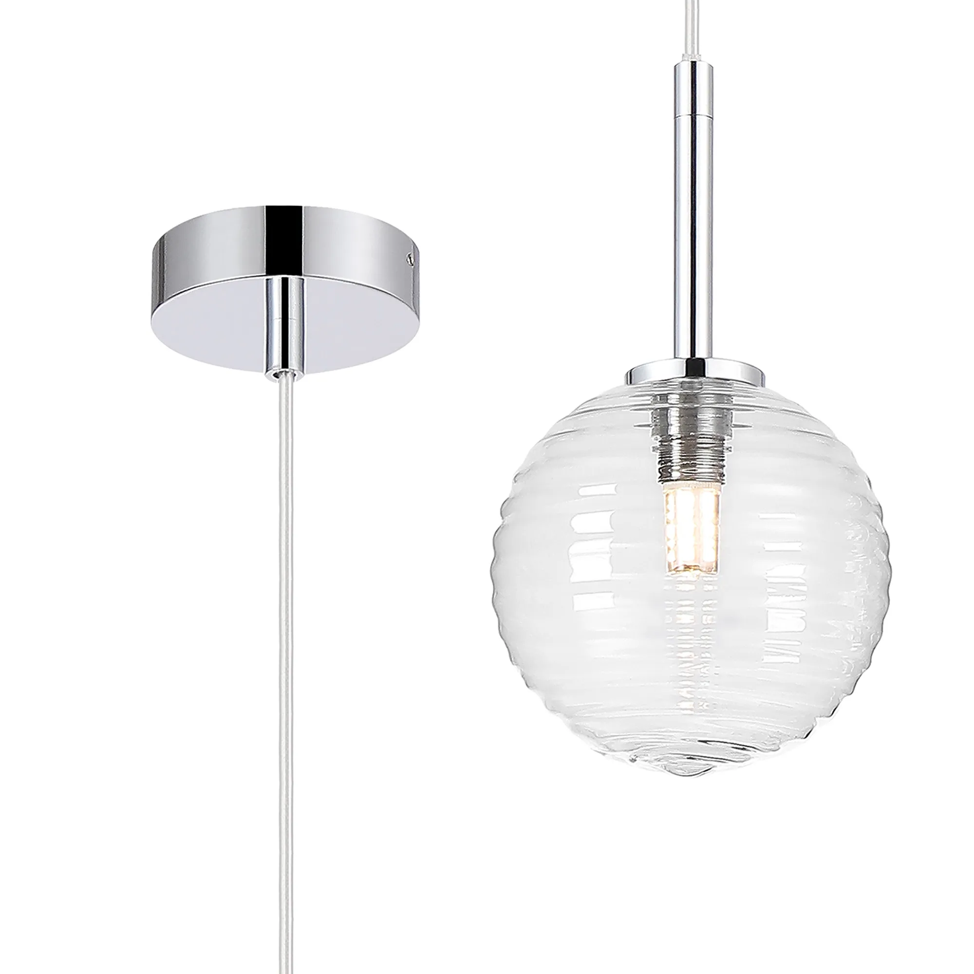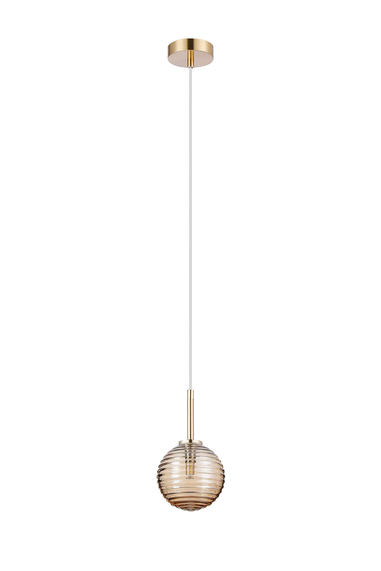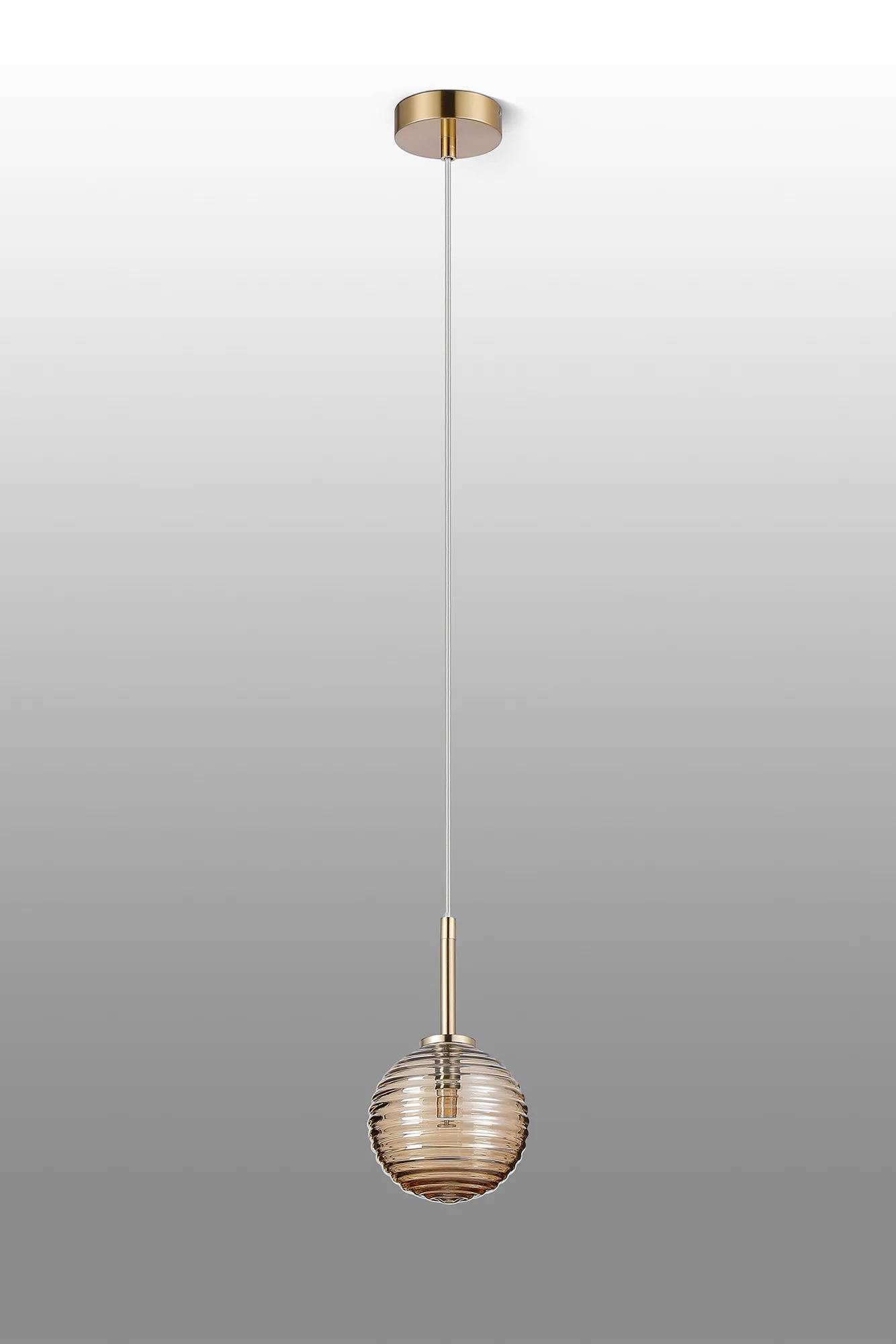 OTHER Nova 12cm Adjustable Pendant, 1 Light G9, IP44, Brass Gold/Amber Ribbed Round Glass