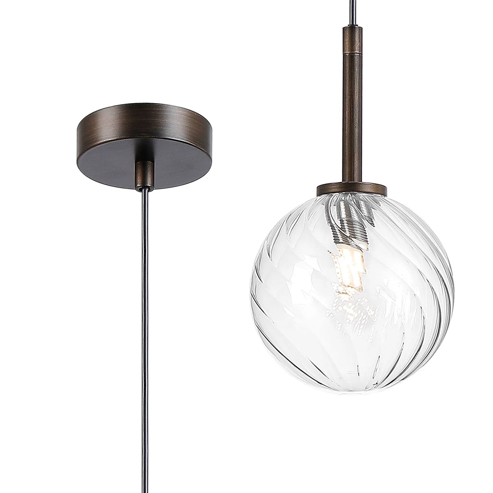 Nova 12cm Adjustable Pendant, 1 Light G9, IP44, Bronze/Brown Round Marble Effect Glass