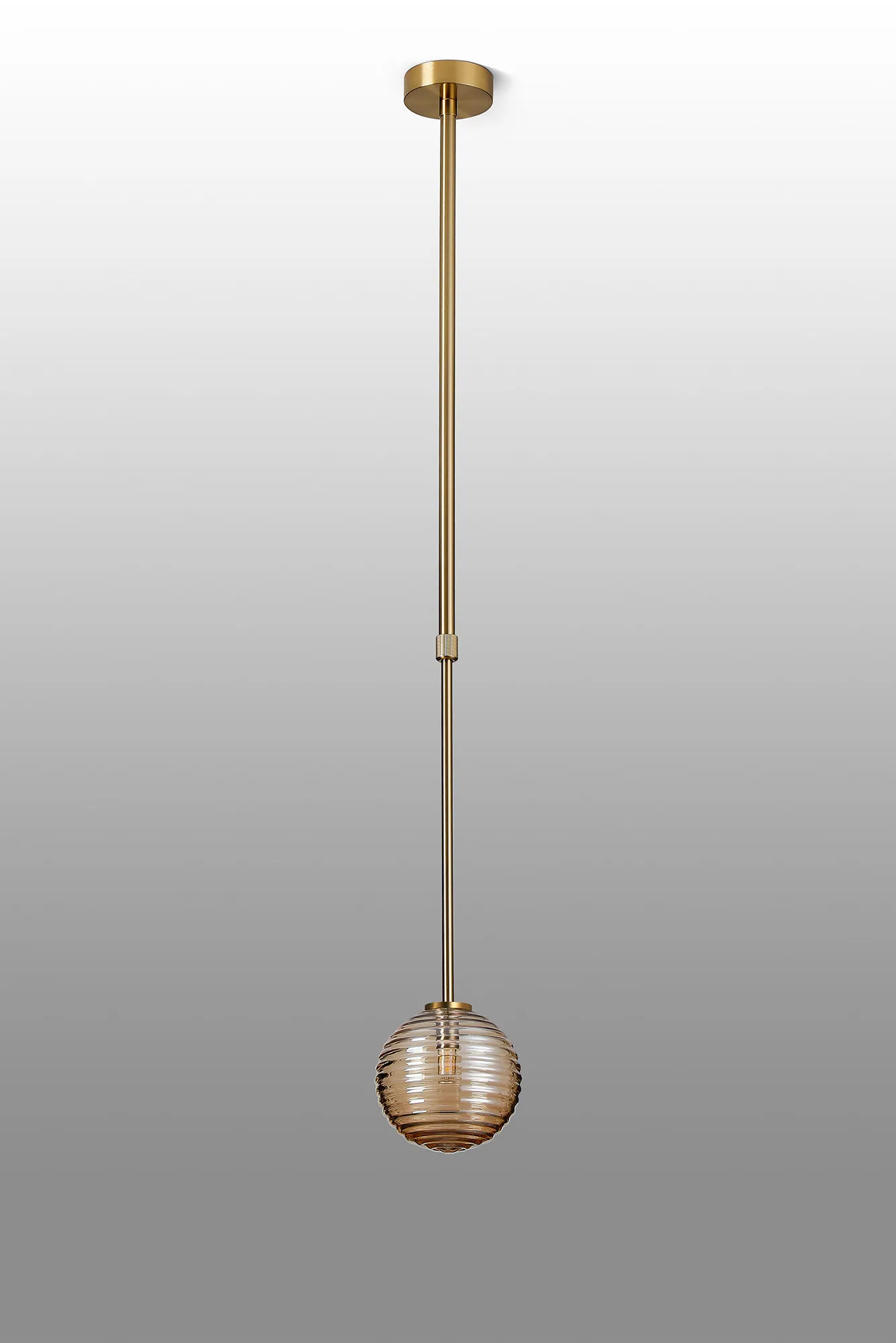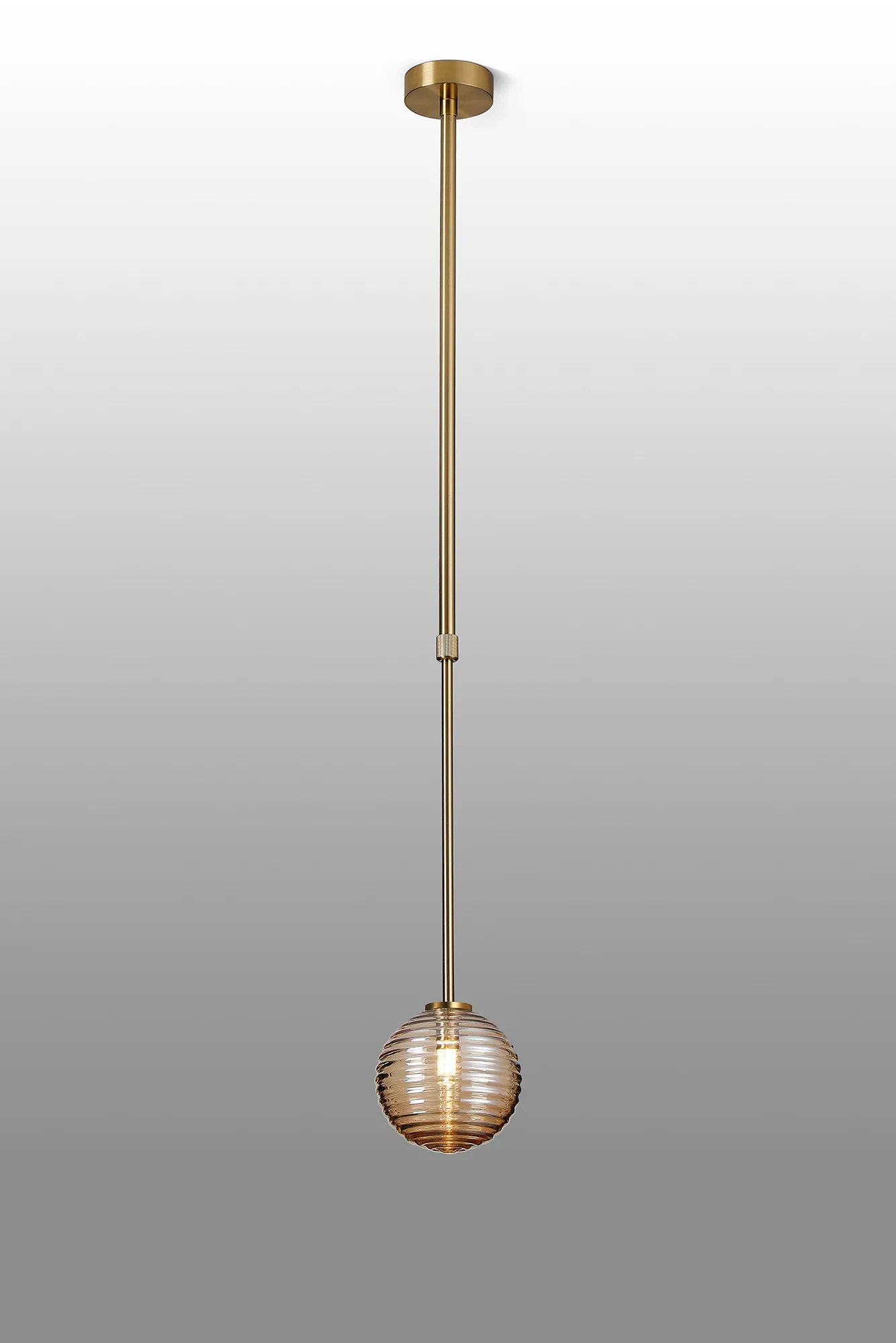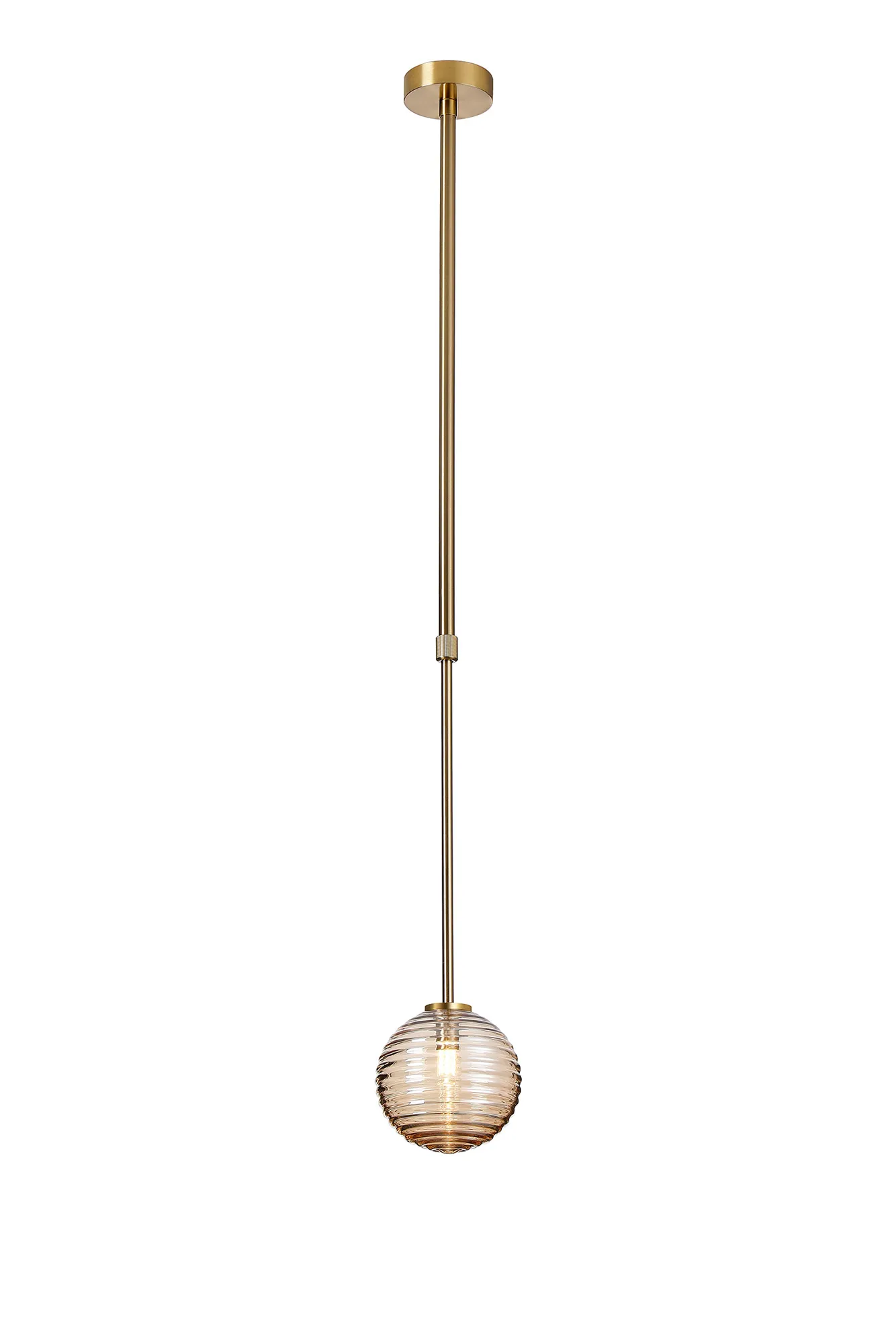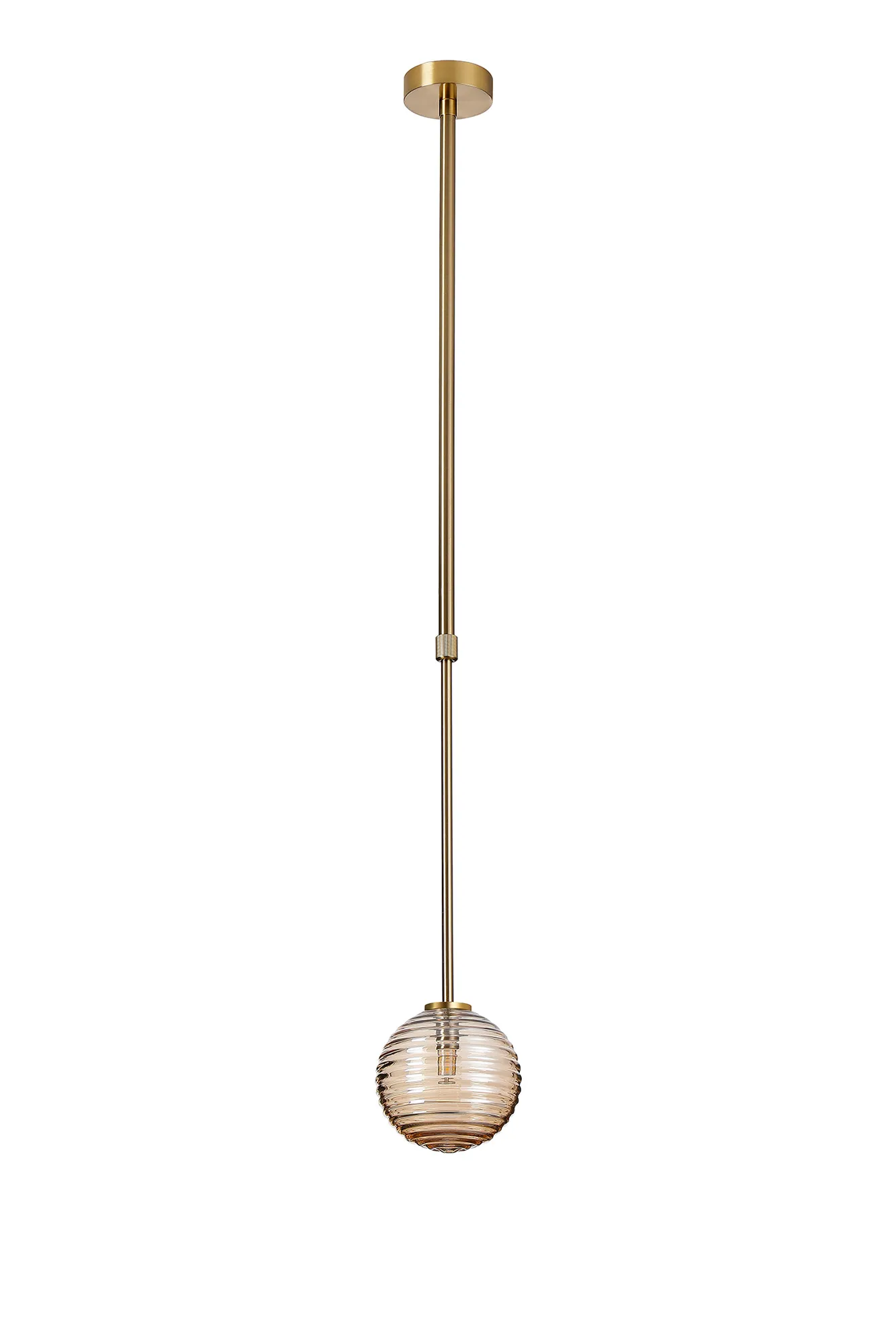 OTHER Nova Telescopic Pendant 1 Light IP44 Brass Gold/Amber Ribbed Round Glass