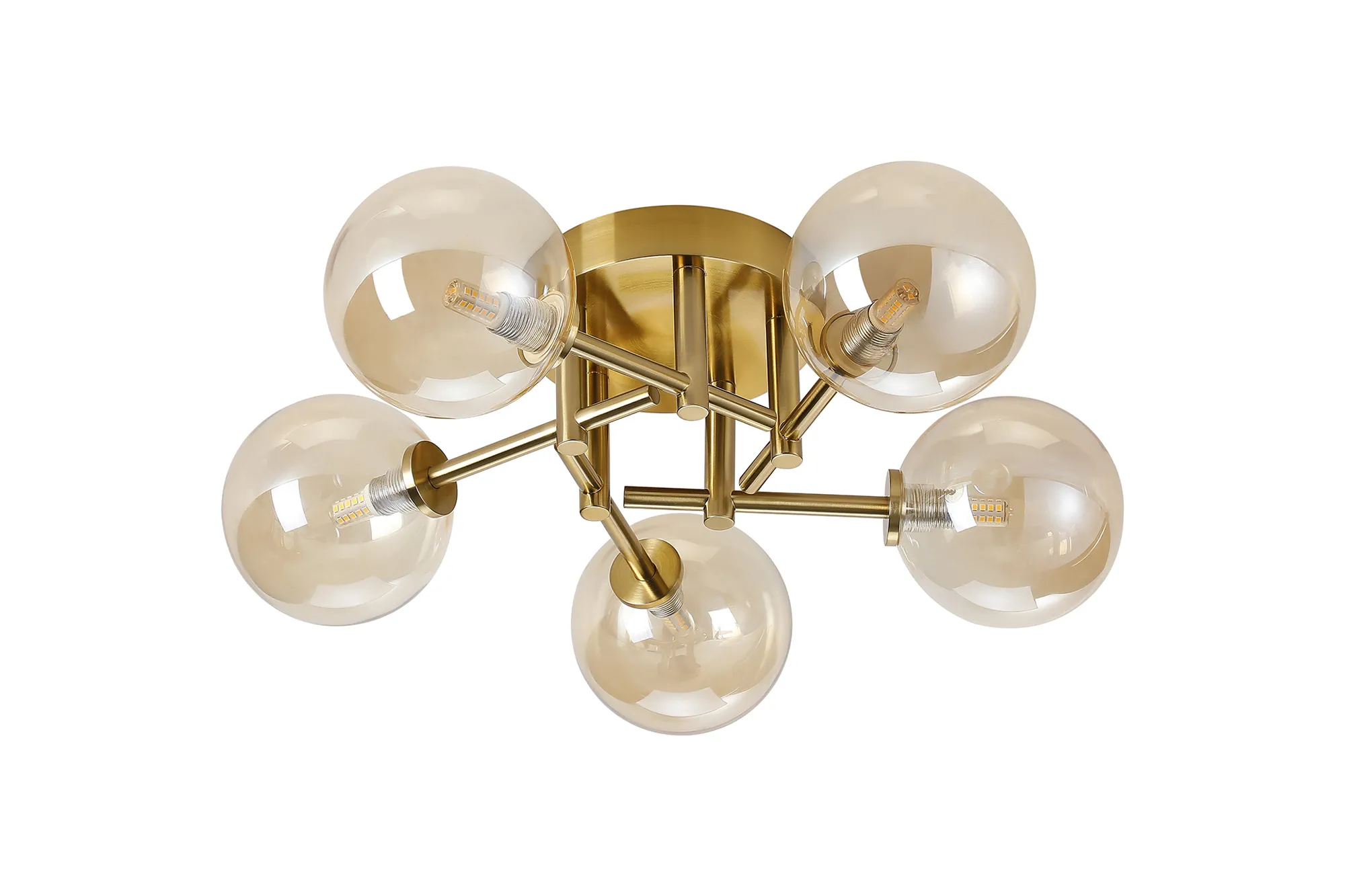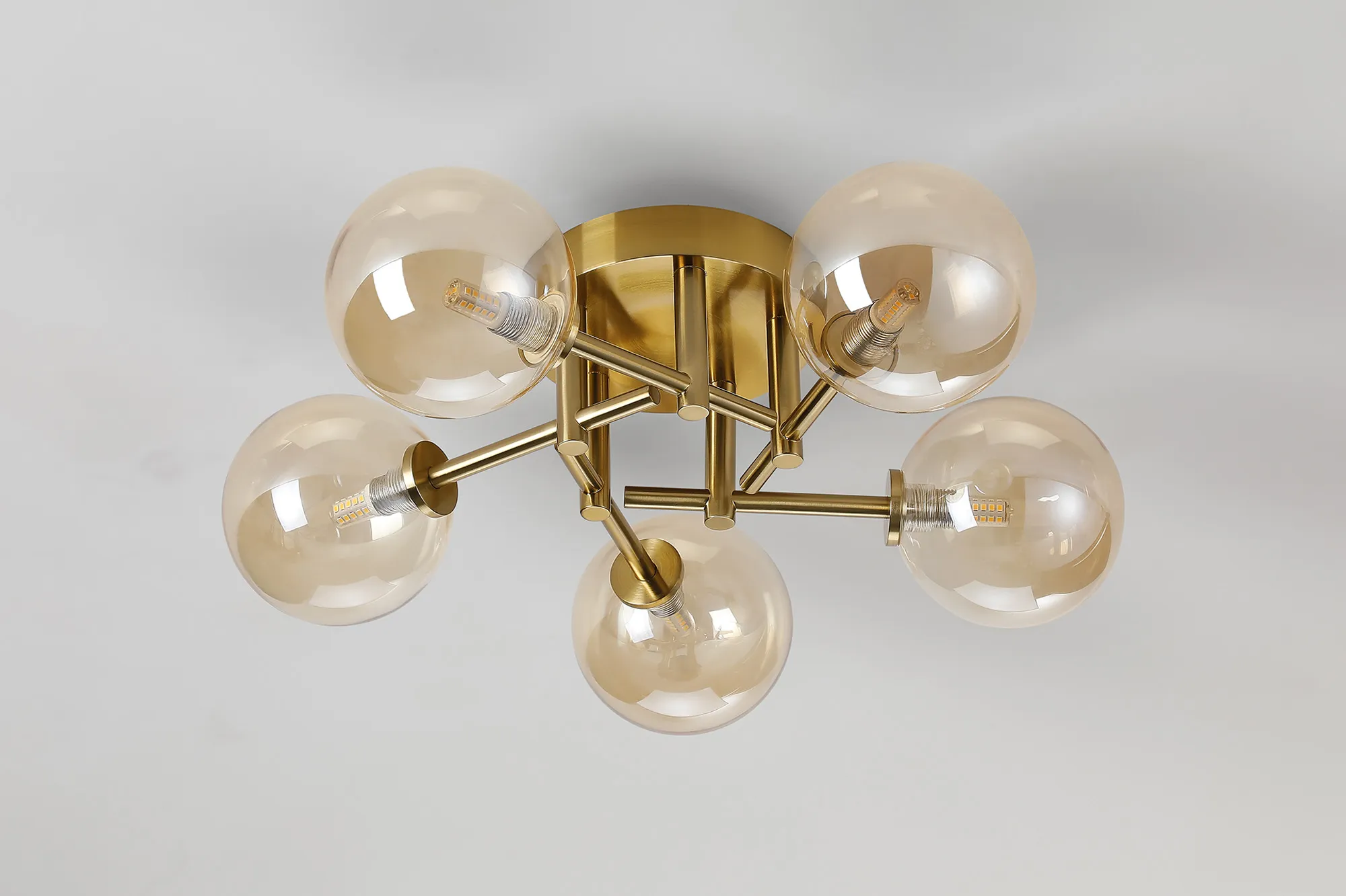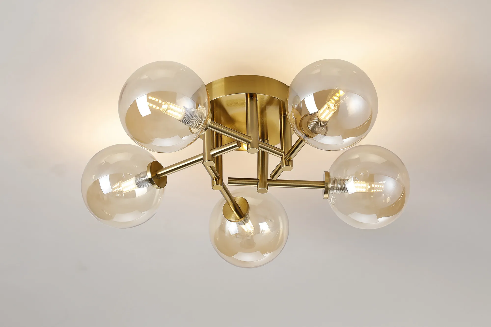 OTHER Nova Round Semi Flush Ceiling 5 Light IP44 Brass Gold/Amber Smooth Round Glass