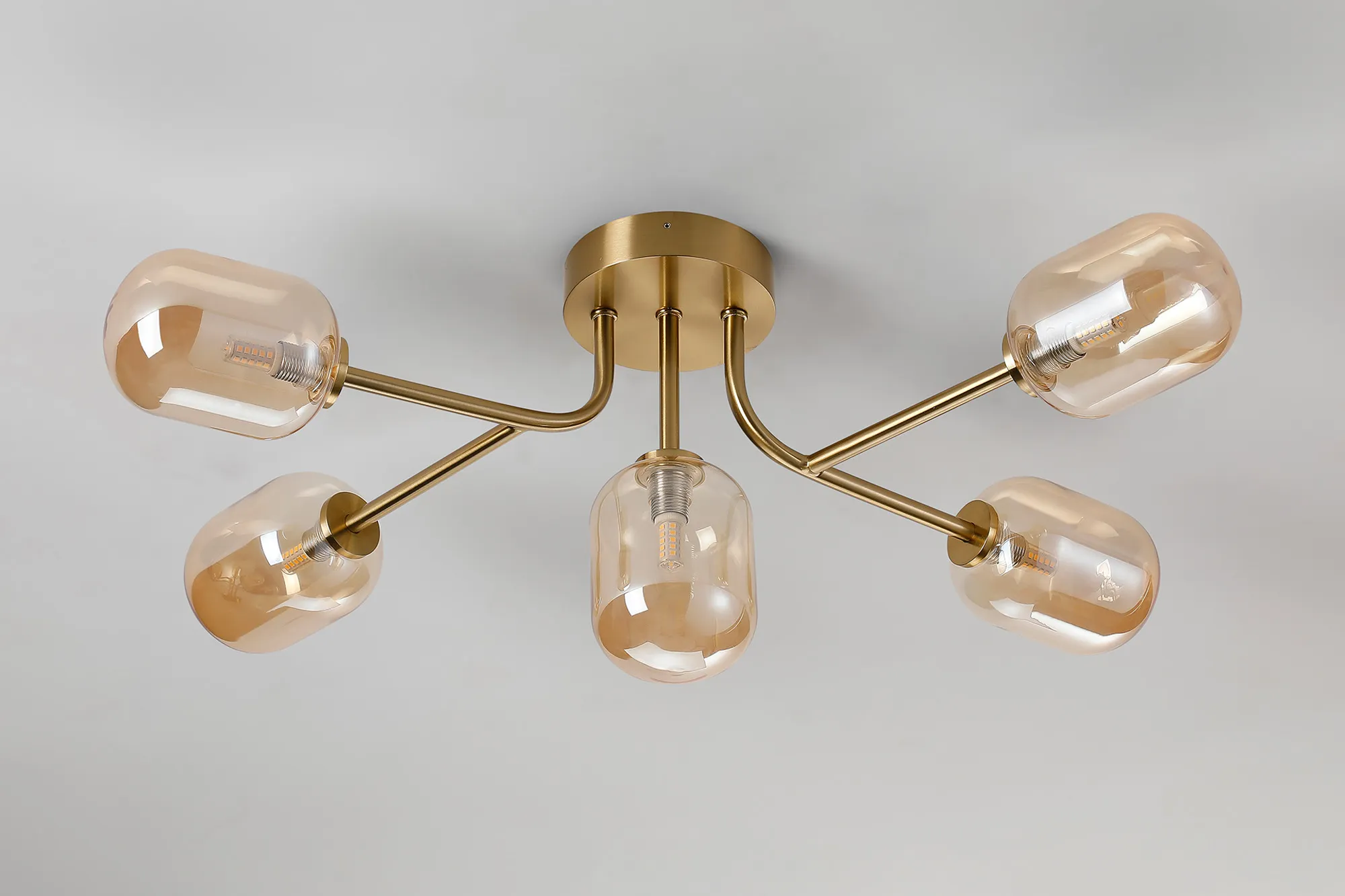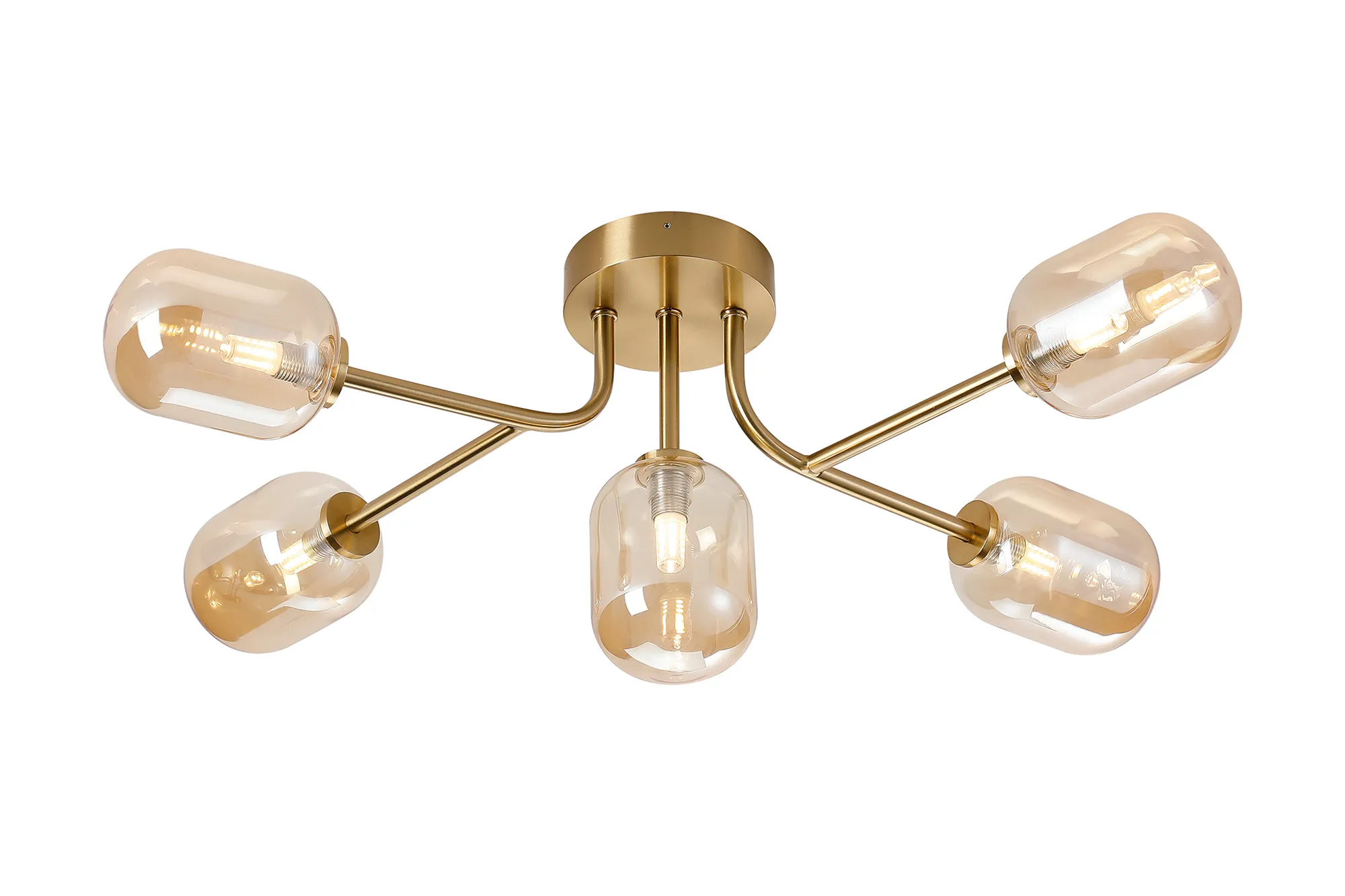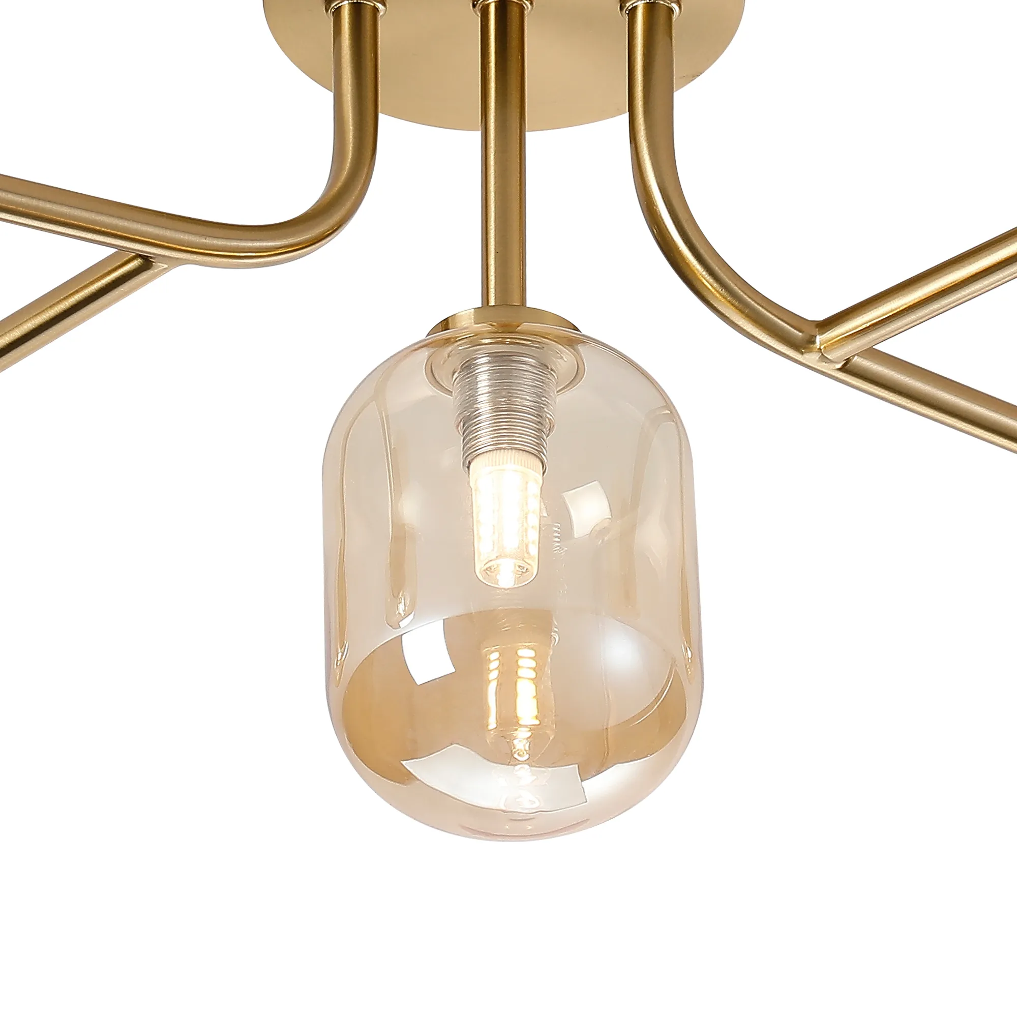 OTHER Nova Linear Semi Flush Ceiling 5 Light IP44 Brass gold/Amber Smooth Tubular Glass