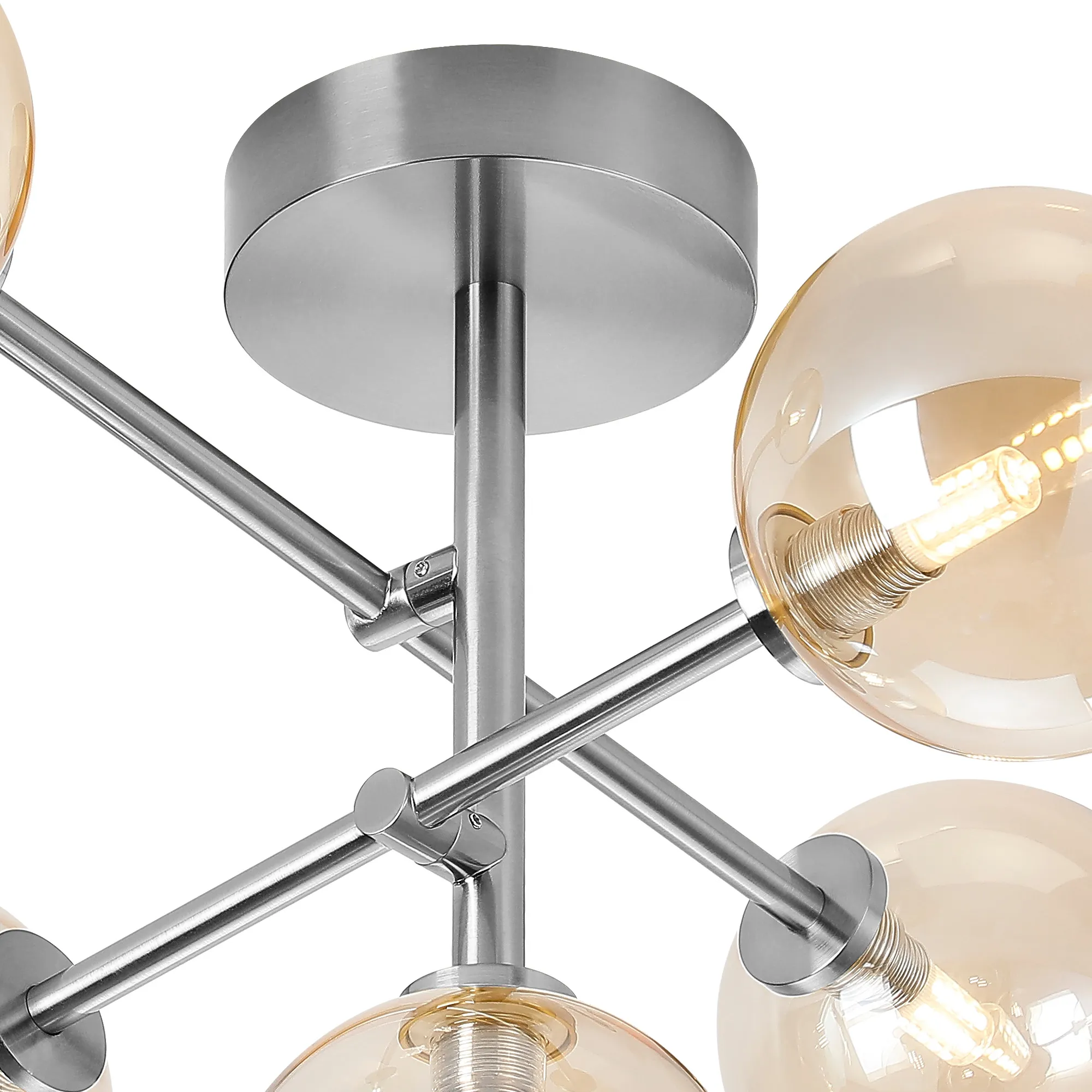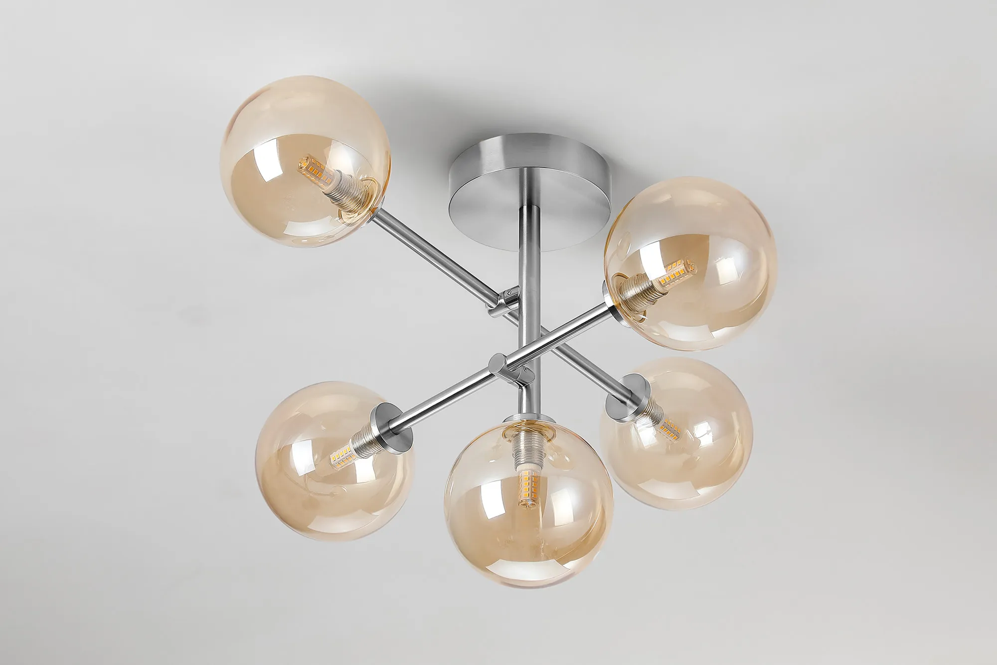 Nova Semi Flush Ceiling Tiered Adjustable Arms, 5 Light G9, IP44, Polished Chrome/Opal Round Segment Glass