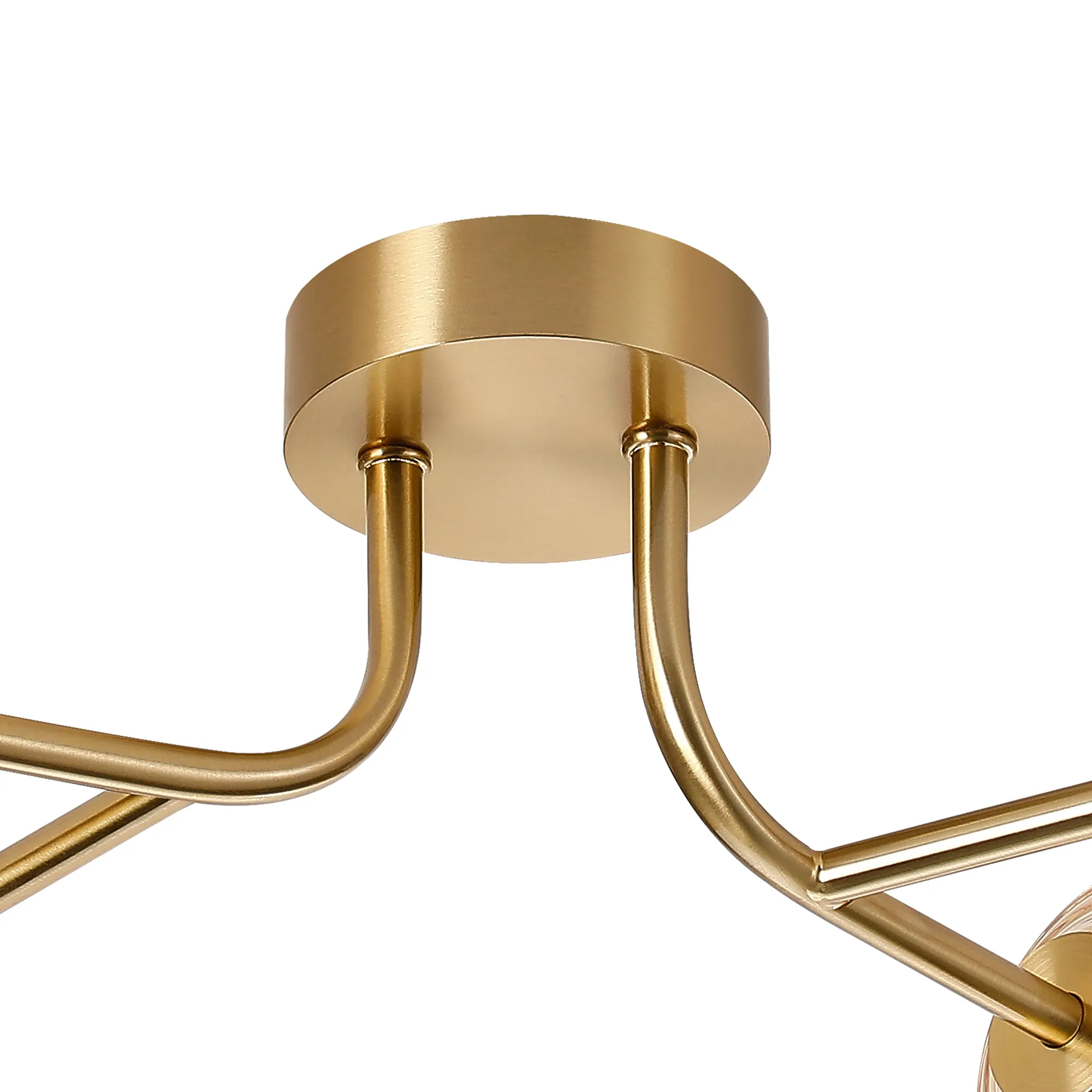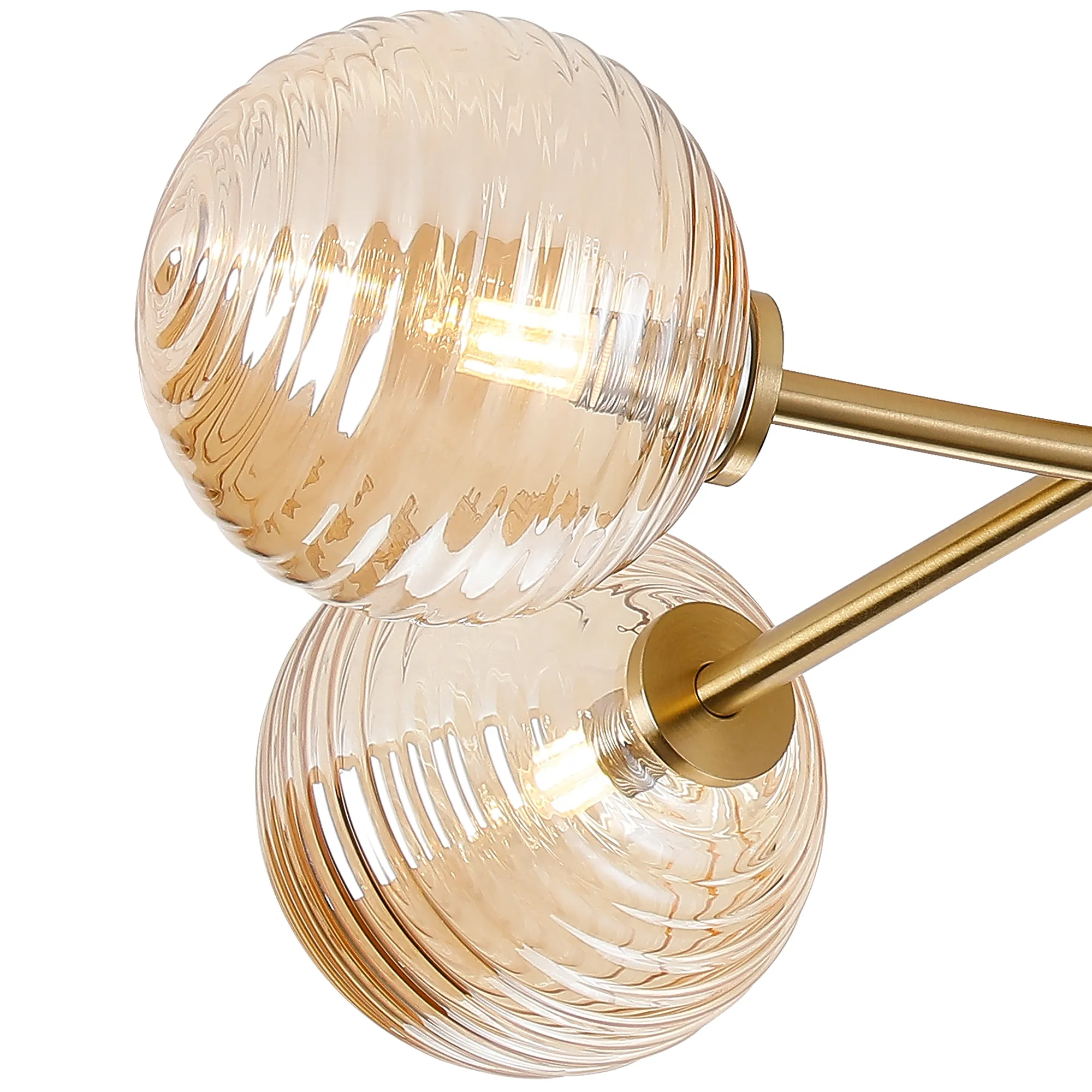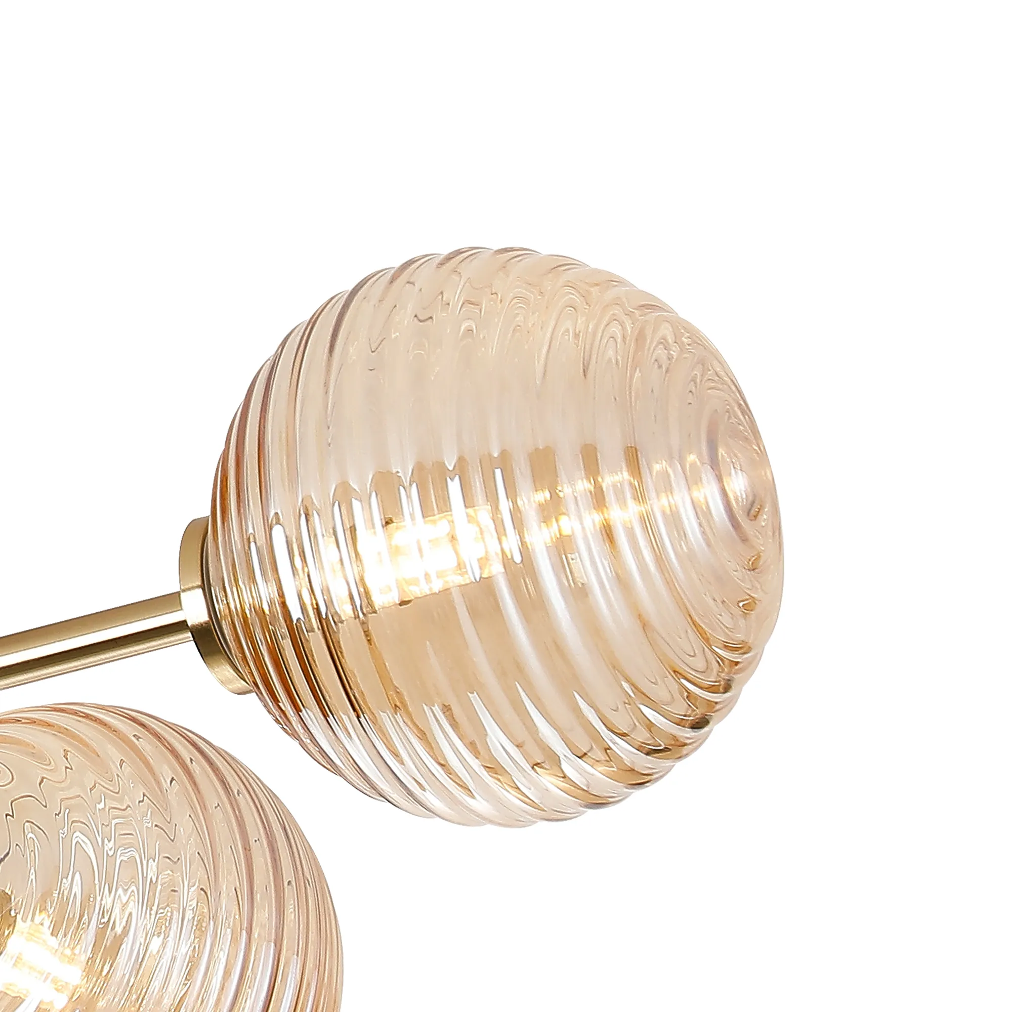 OTHER Nova Linear Semi Flush Ceiling 4 Light IP44 Brass Gold/Amber Ribbed Round Glass