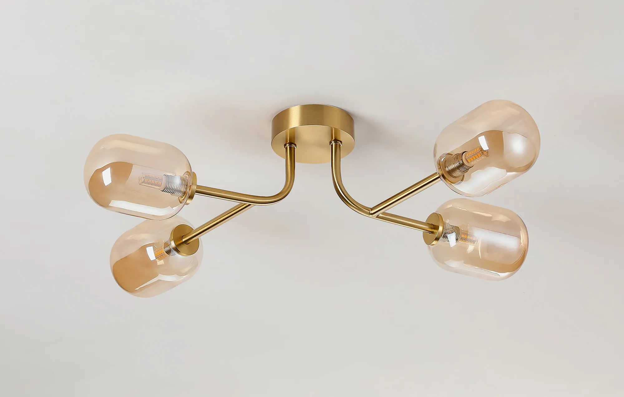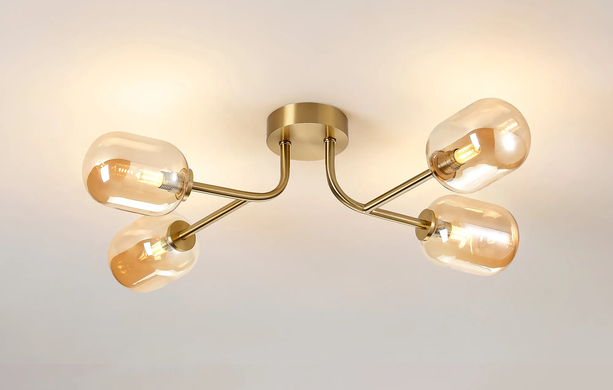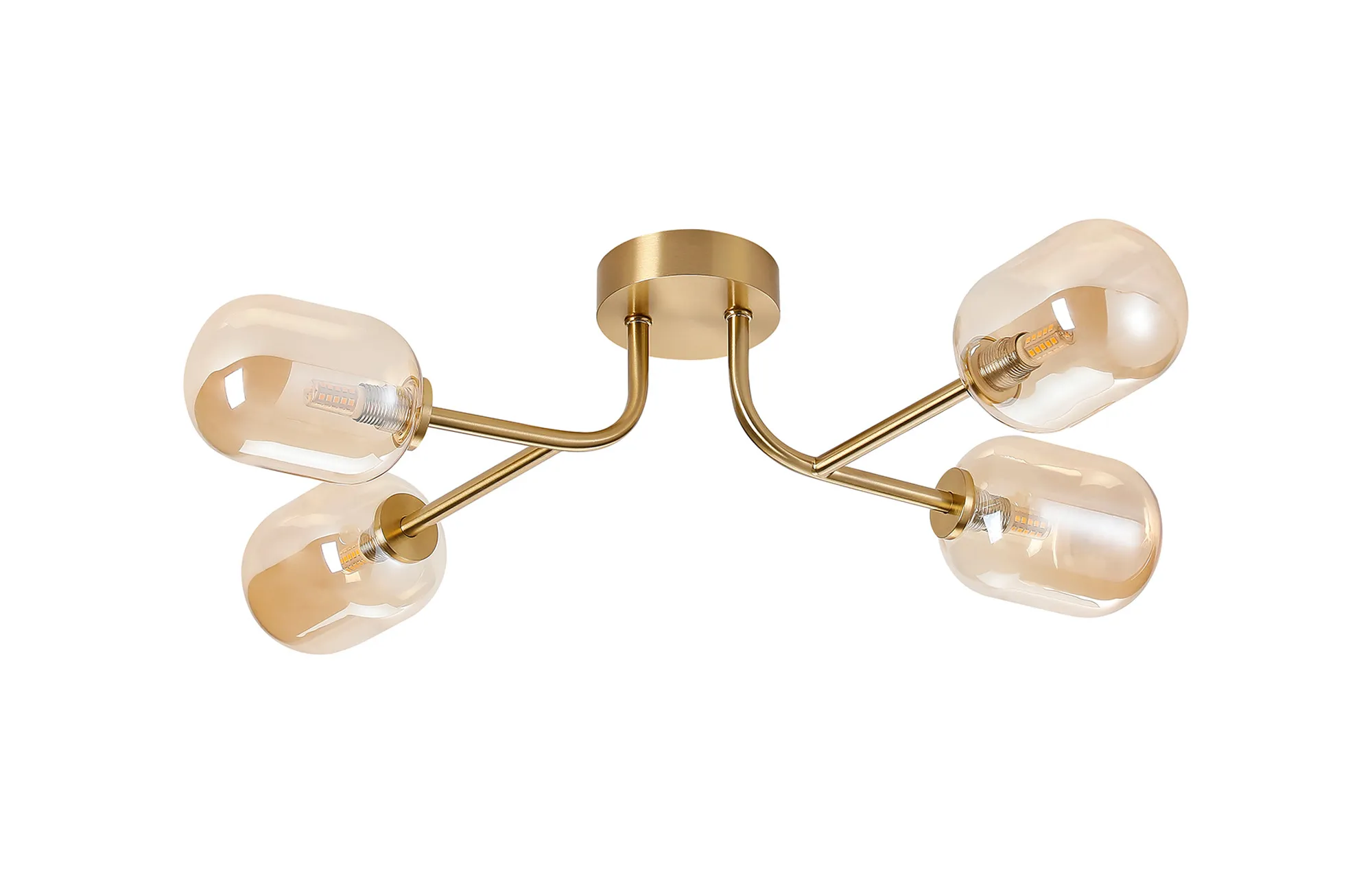 OTHER Nova Linear Semi Flush Ceiling 4 Light IP44 Brass Gold/Amber Smooth Tubular Glass