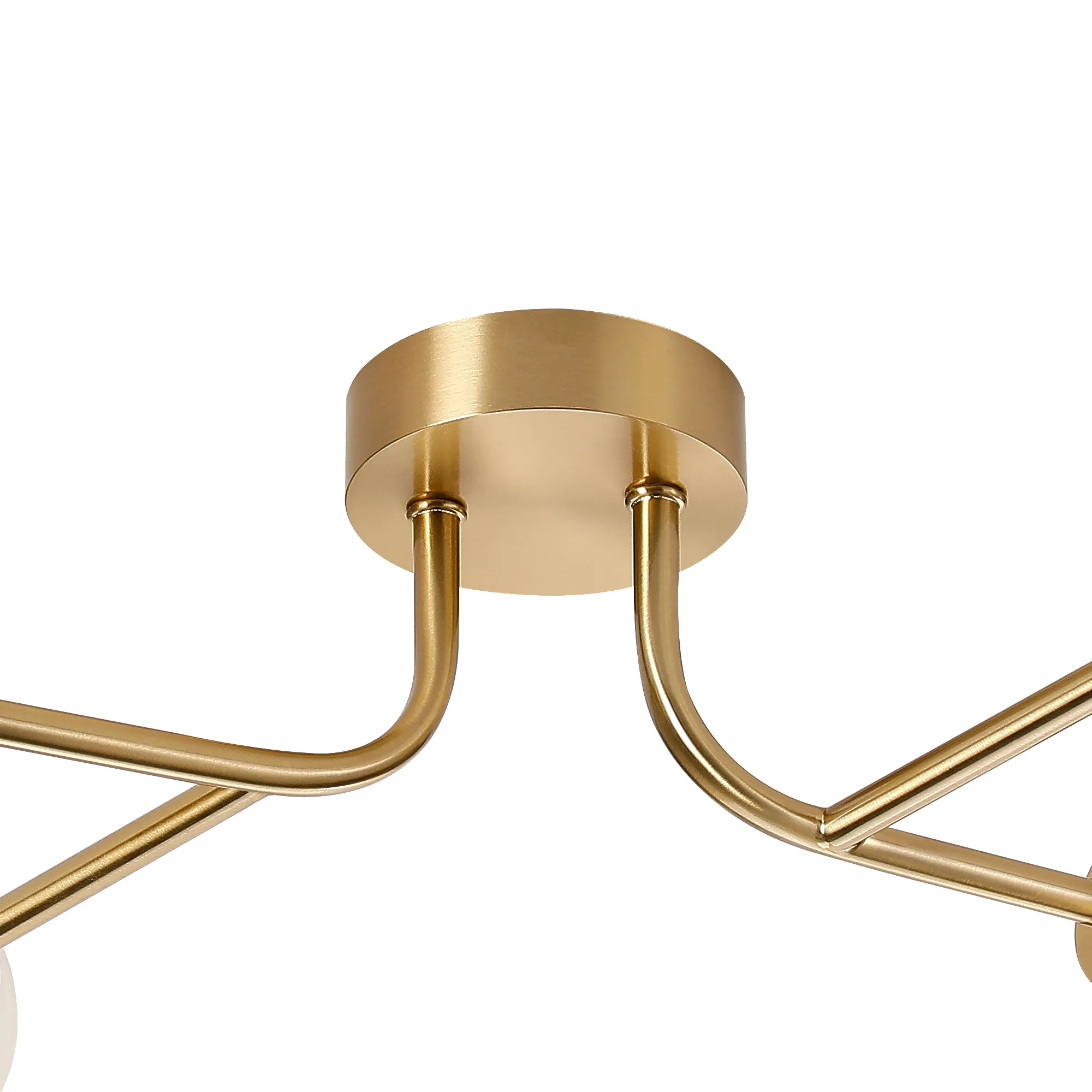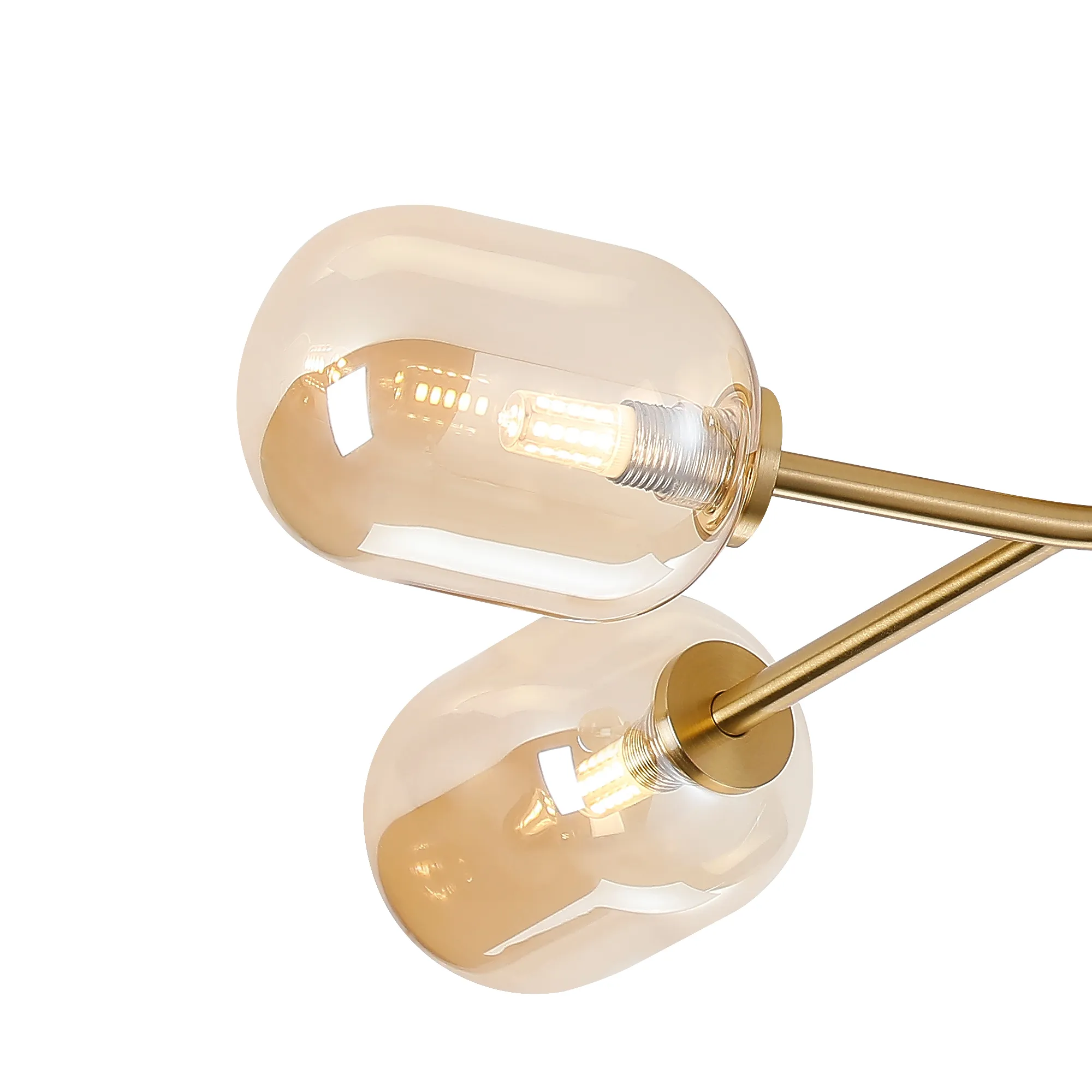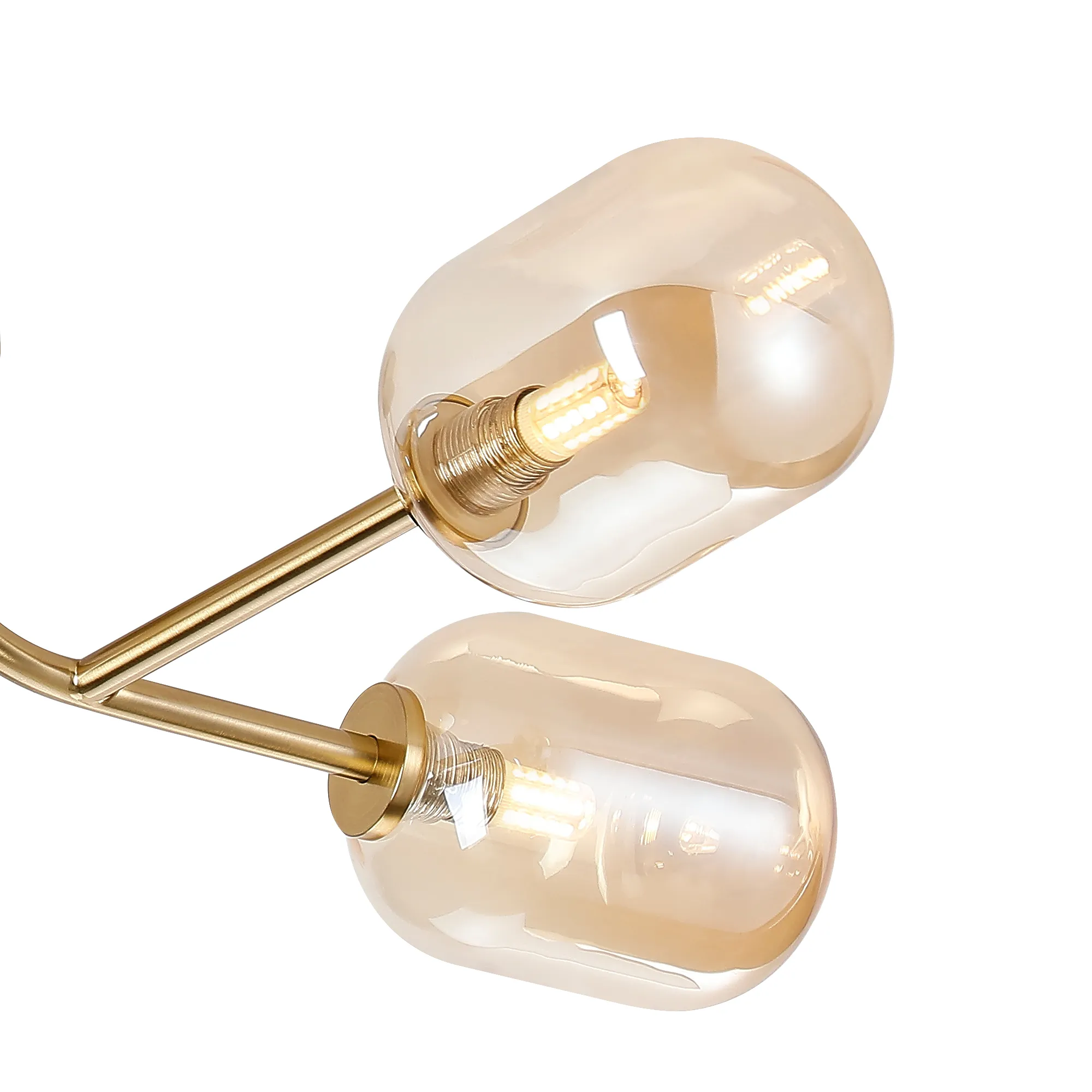 OTHER Nova Linear Semi Flush Ceiling 4 Light IP44 Brass Gold/Amber Smooth Tubular Glass