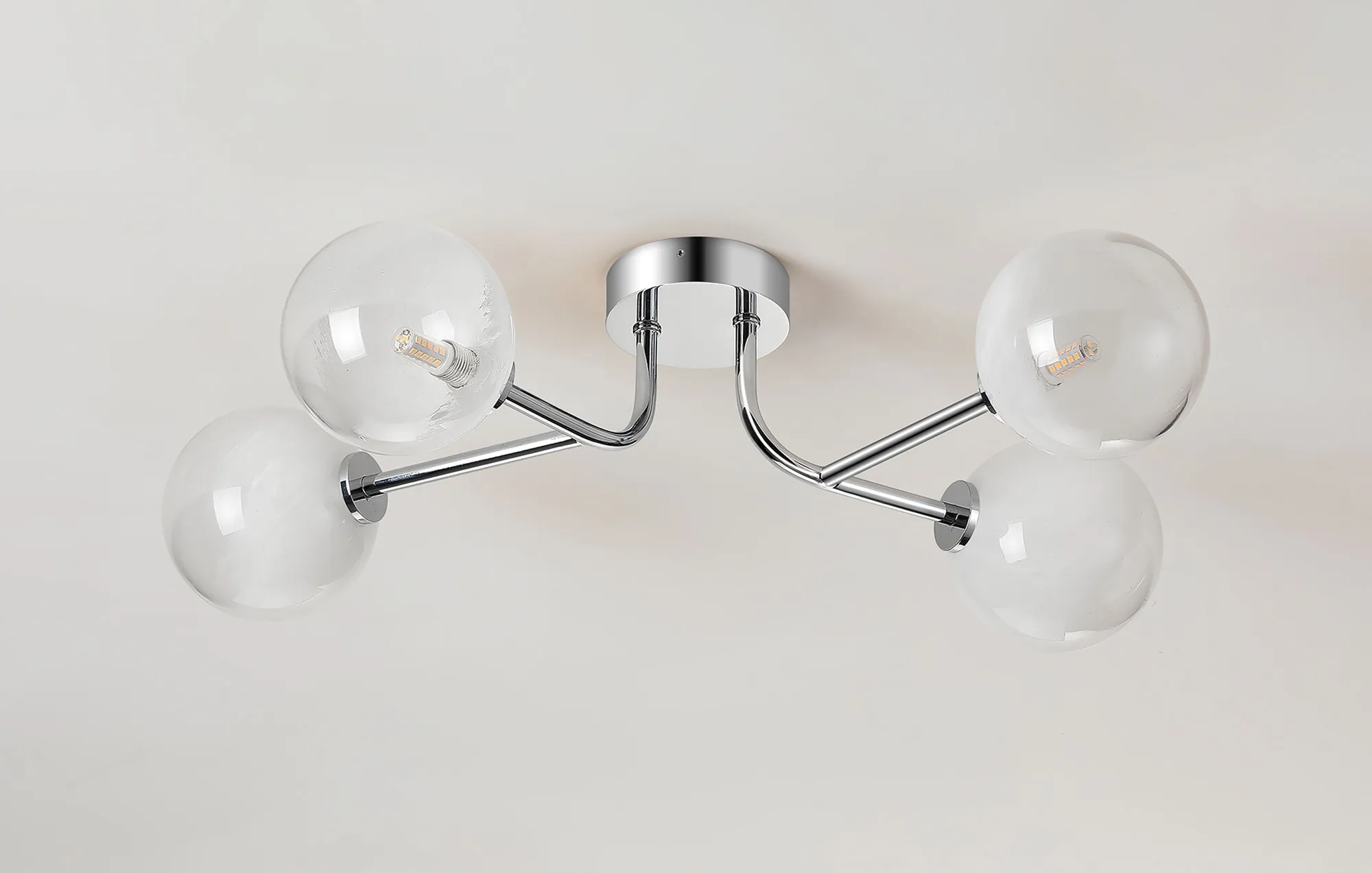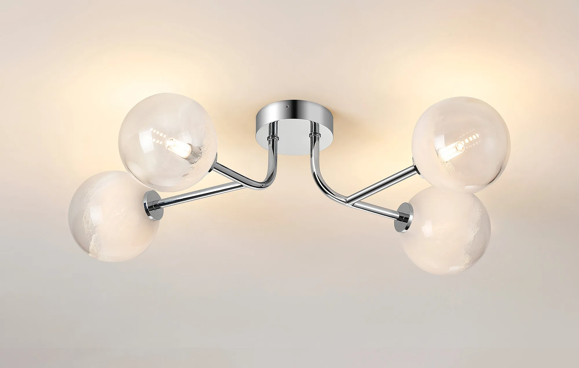 Nova Semi Flush Ceiling Tiered Adjustable Arms, 5 Light G9, IP44, Polished Chrome/Amber Smooth Round Glass