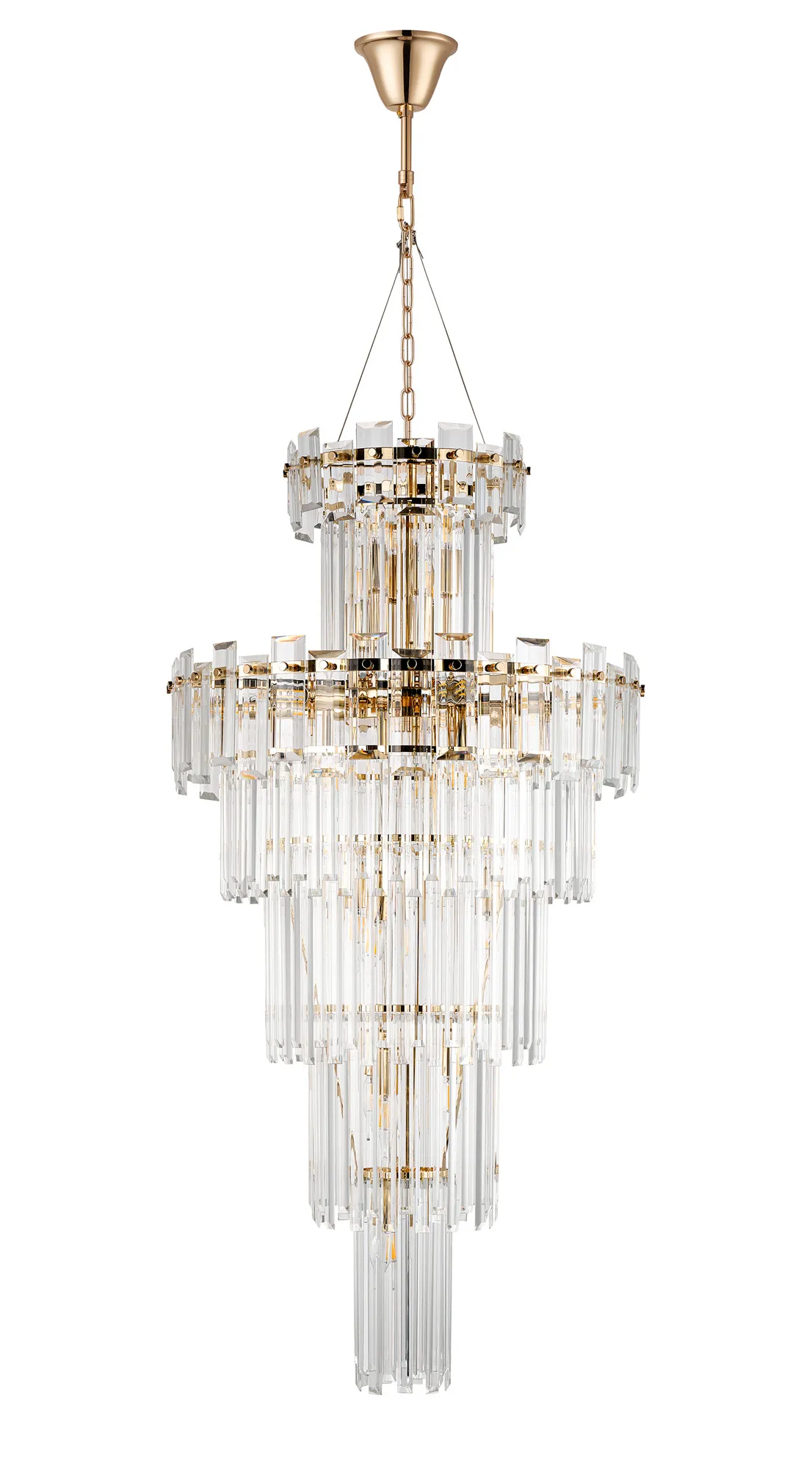 Cumbernauld Tall Pendant 27 Light French Gold/Clear Glass