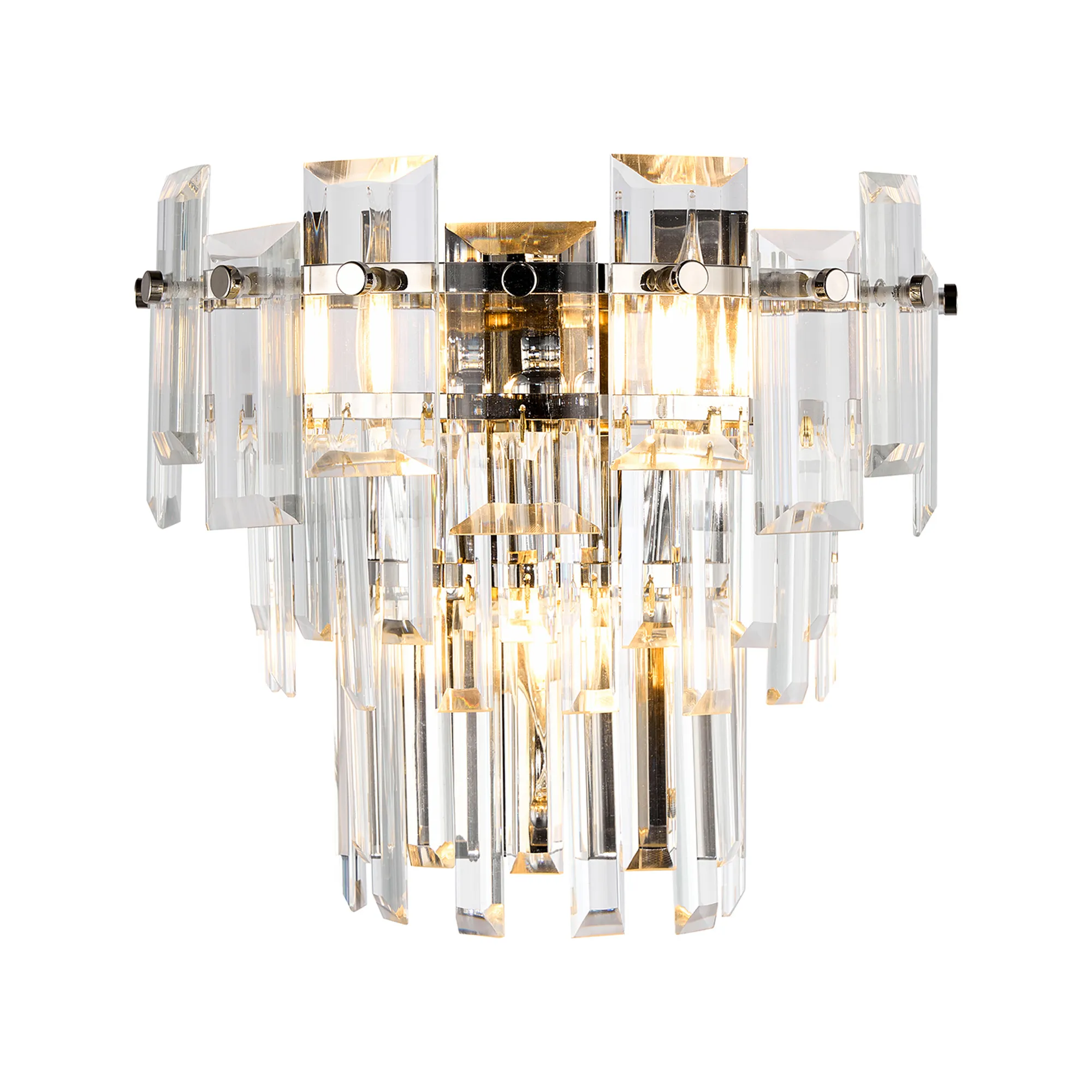 The Cumbernauld collection offers a stunning and luxurious lighting solution for dramatic impact. It is available in either a french gold or polished nickel finish. The layers of dazzling clear glass pieces are cut into different sized rectangular forms increasing the character and decadence of each chandelier. A complementing wall lamp provides an additional lighting option.