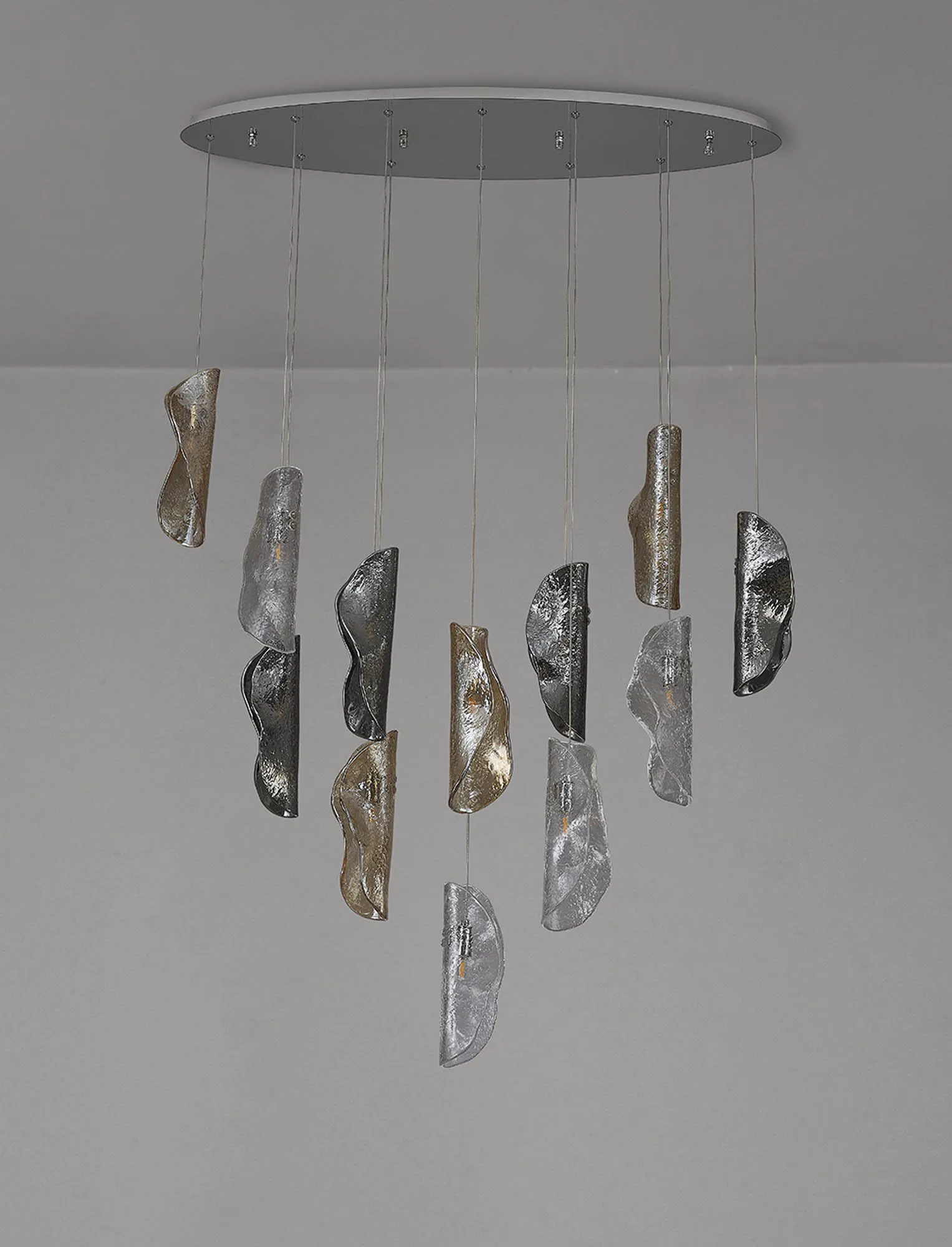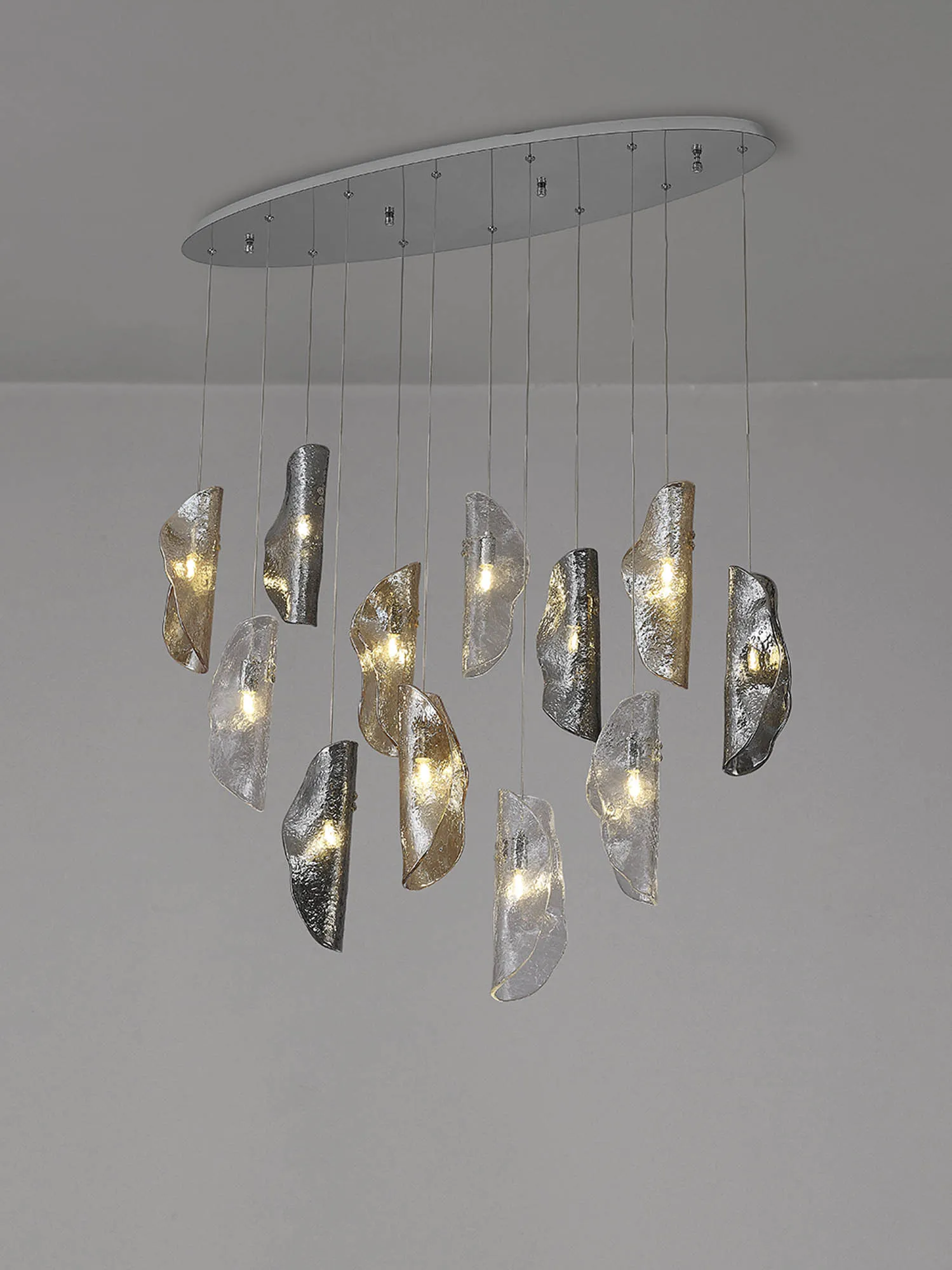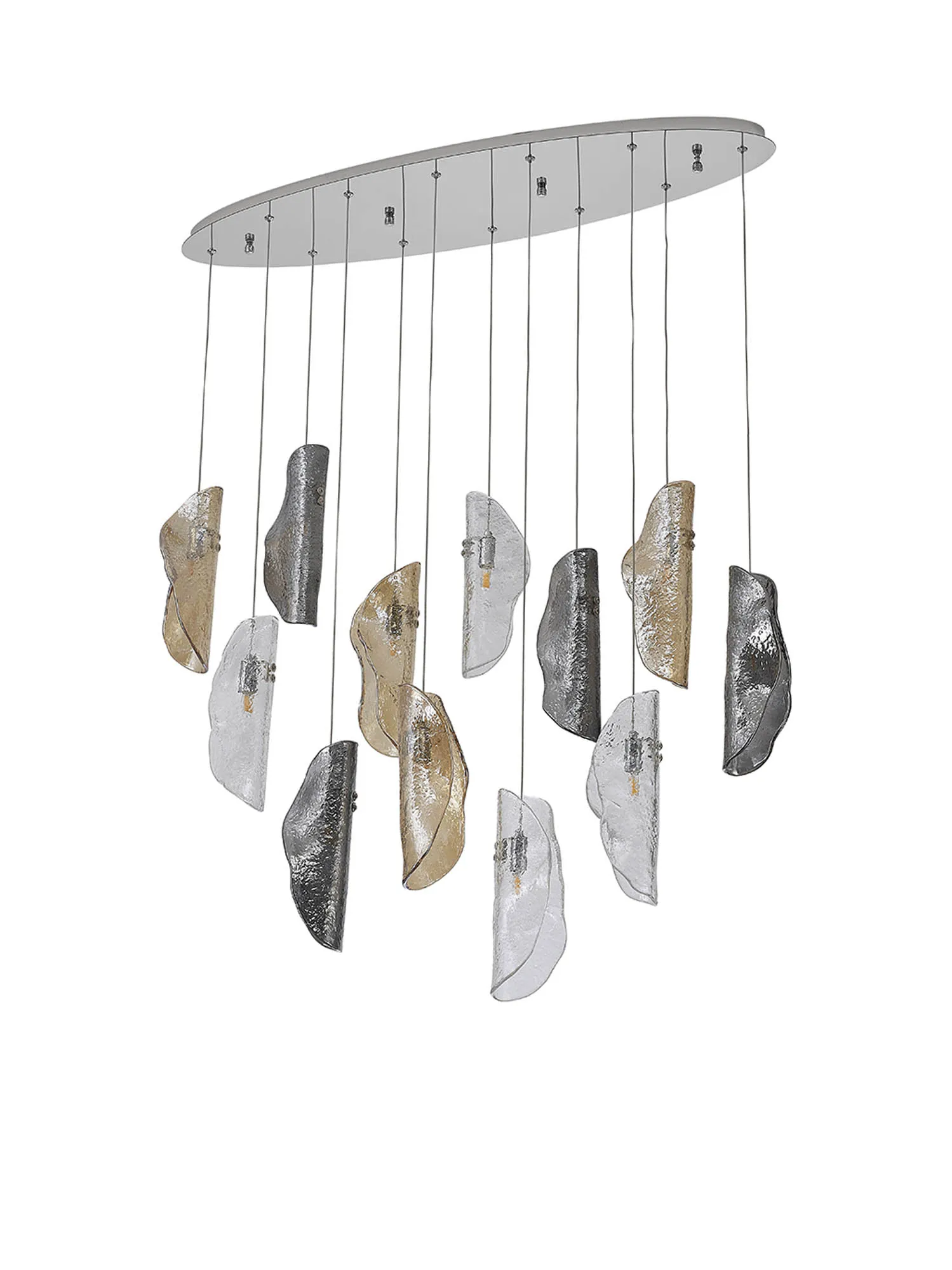 OTHER Canterbury Oval Pendant 2m, 12 x G9, Polished Chrome/Clear & Amber & Smoked Glass