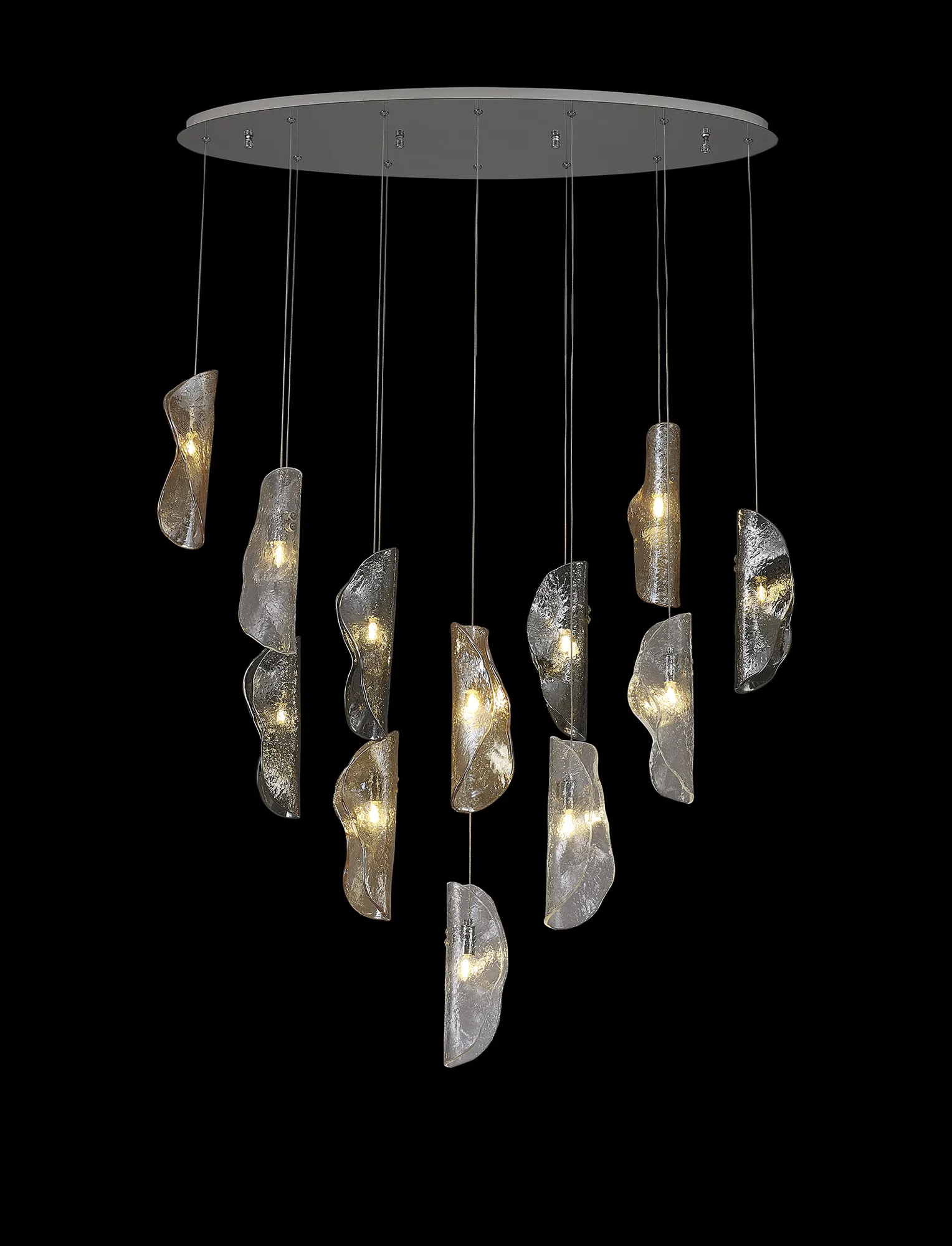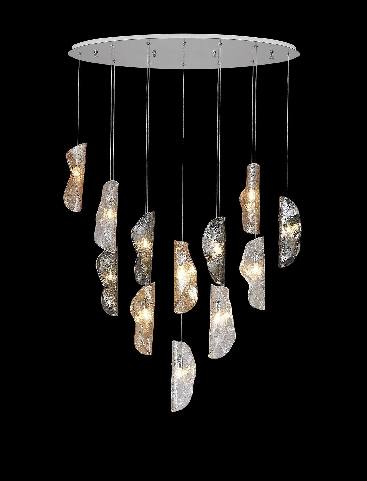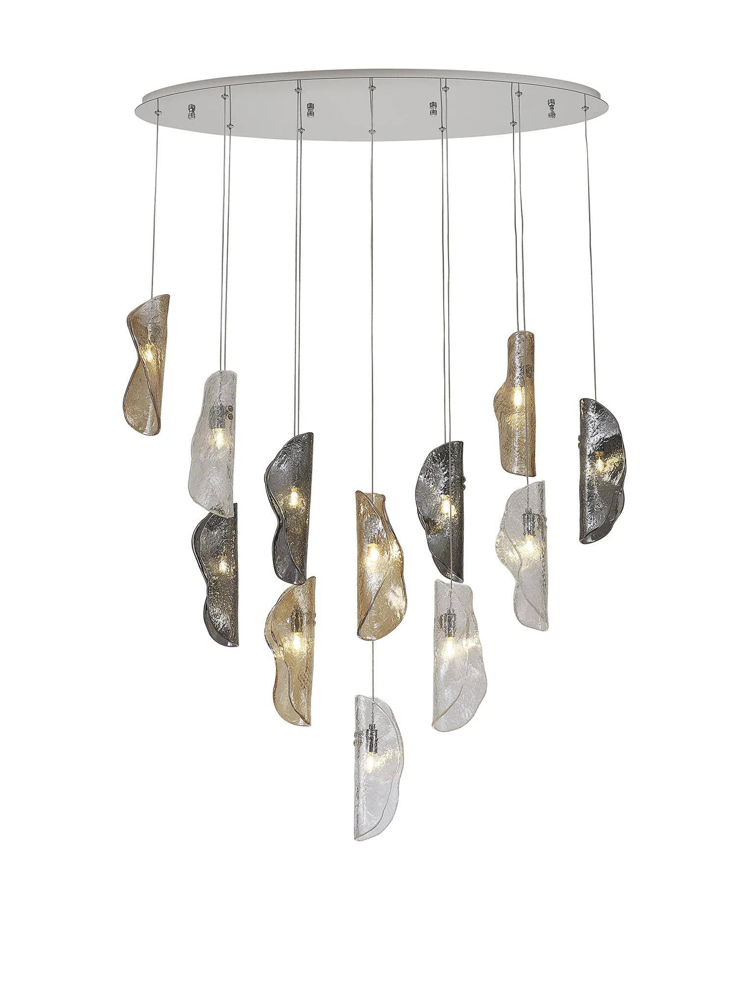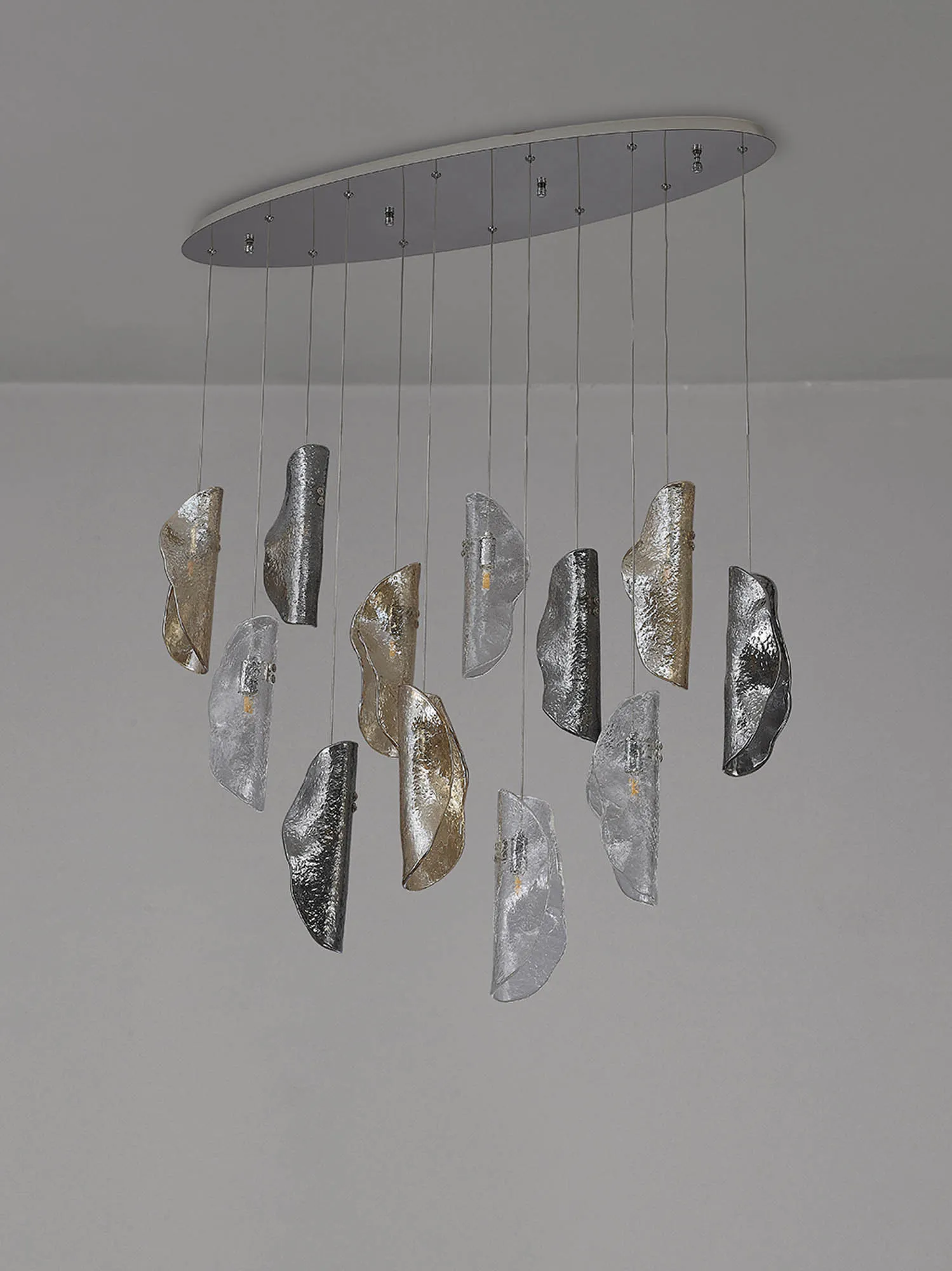 OTHER Canterbury Oval Pendant 2m, 12 x G9, Polished Chrome/Clear & Amber & Smoked Glass