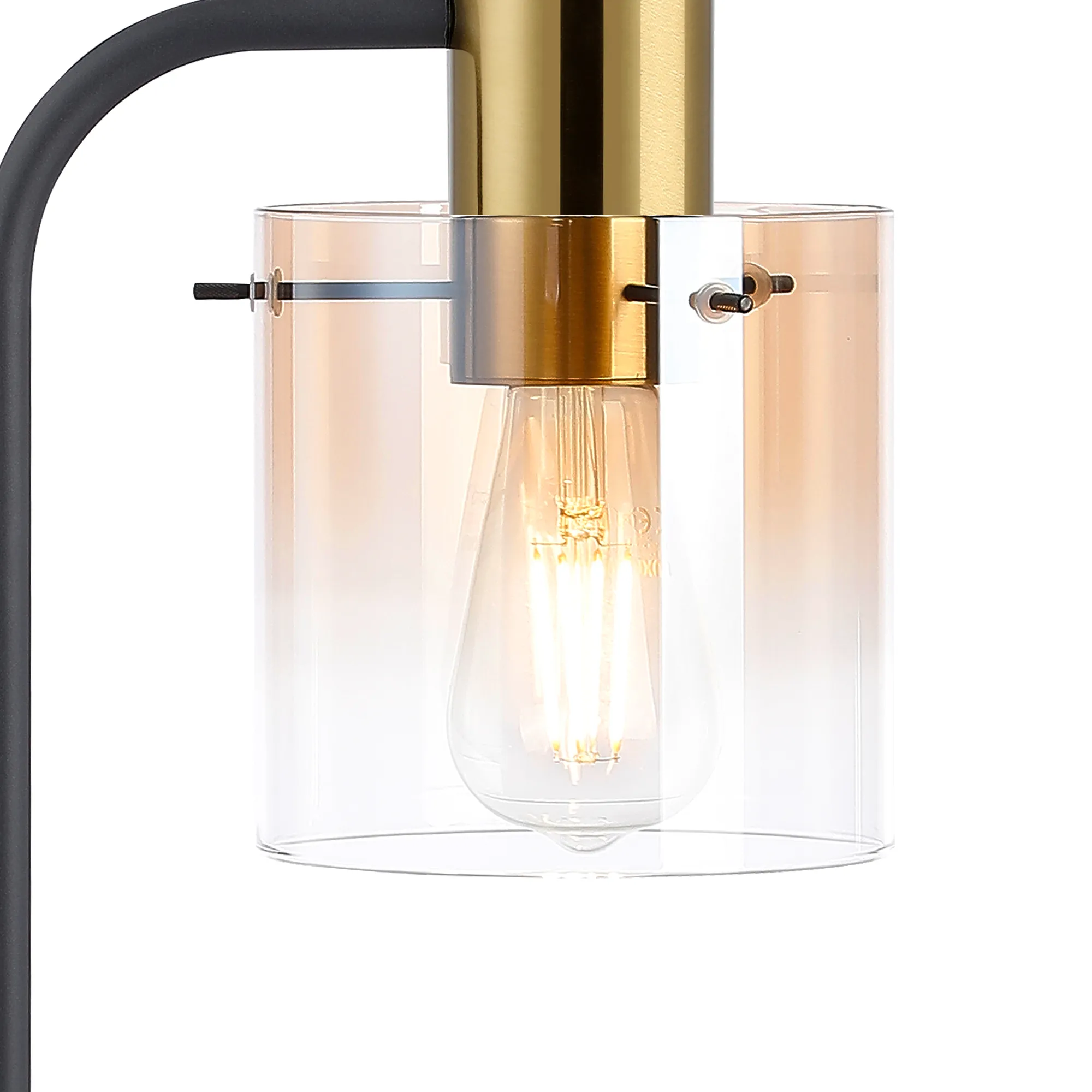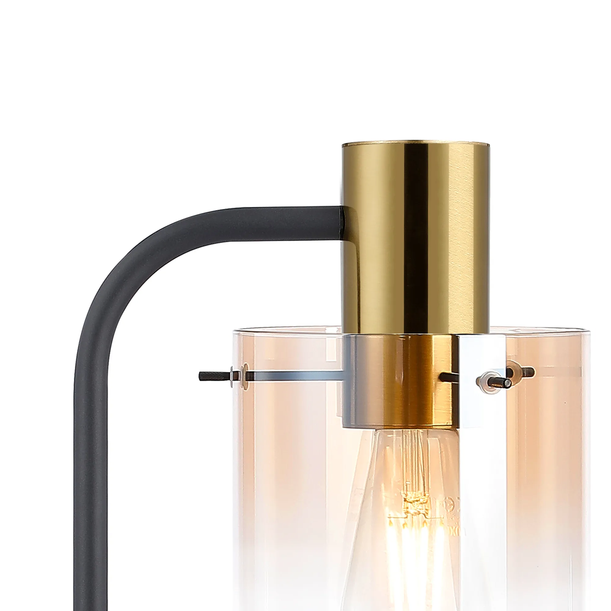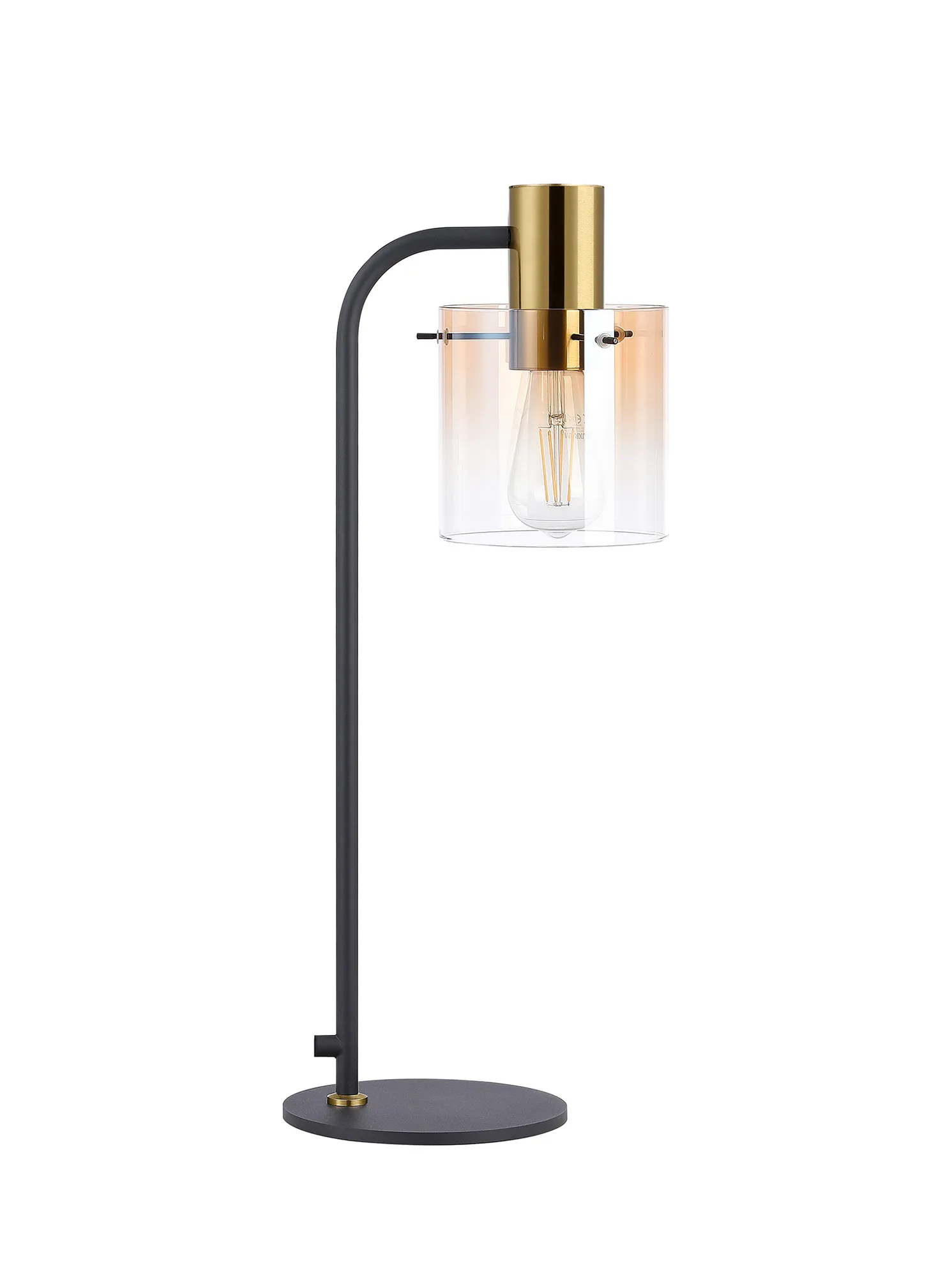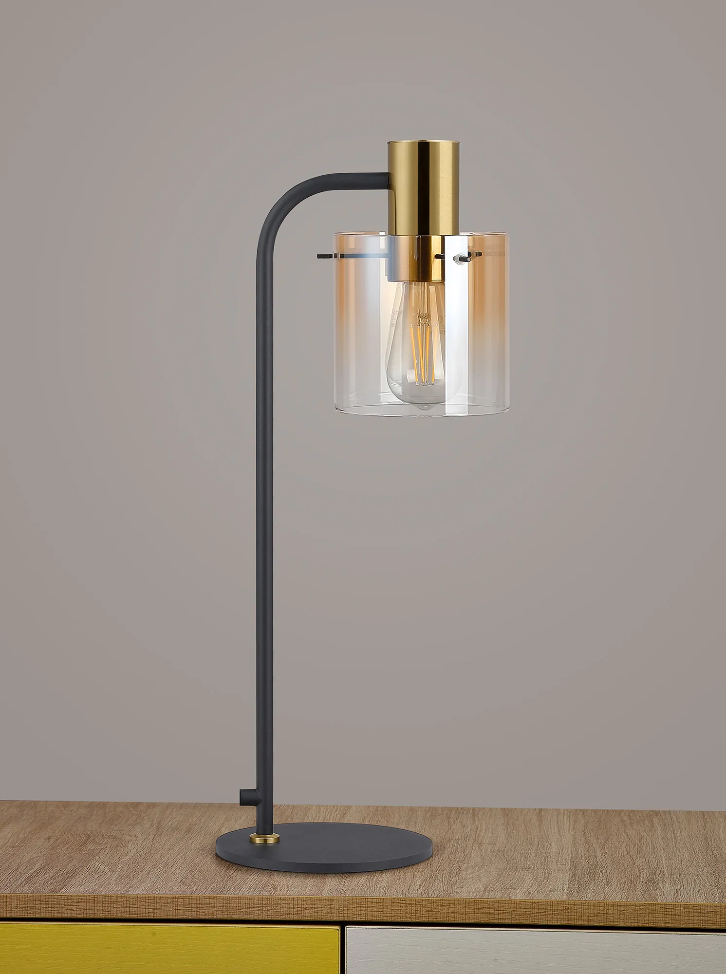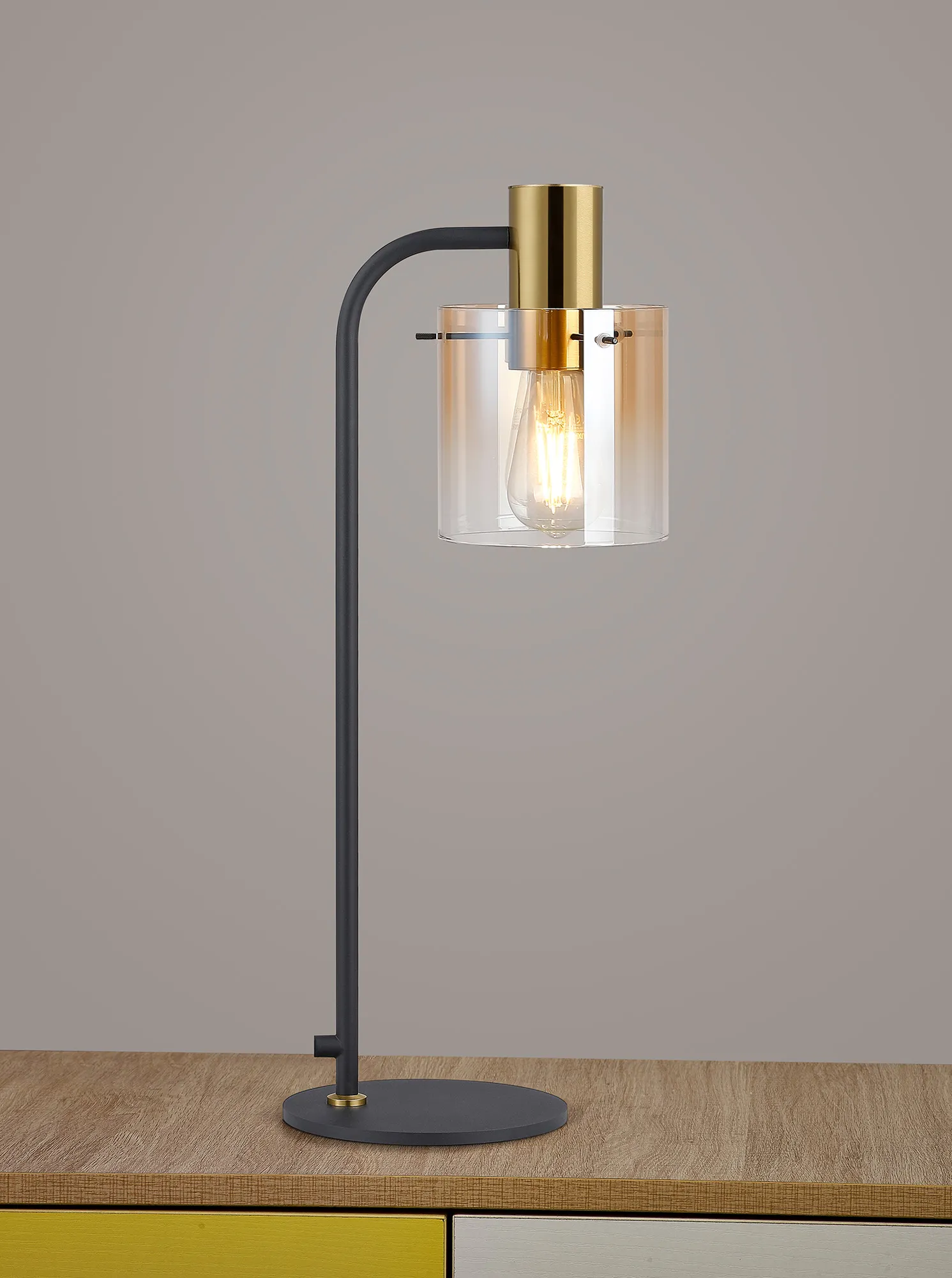 OTHER Mangere Large Table Lamp, 1 Light E27, Brass/Sand Black/Amber Fade Glass