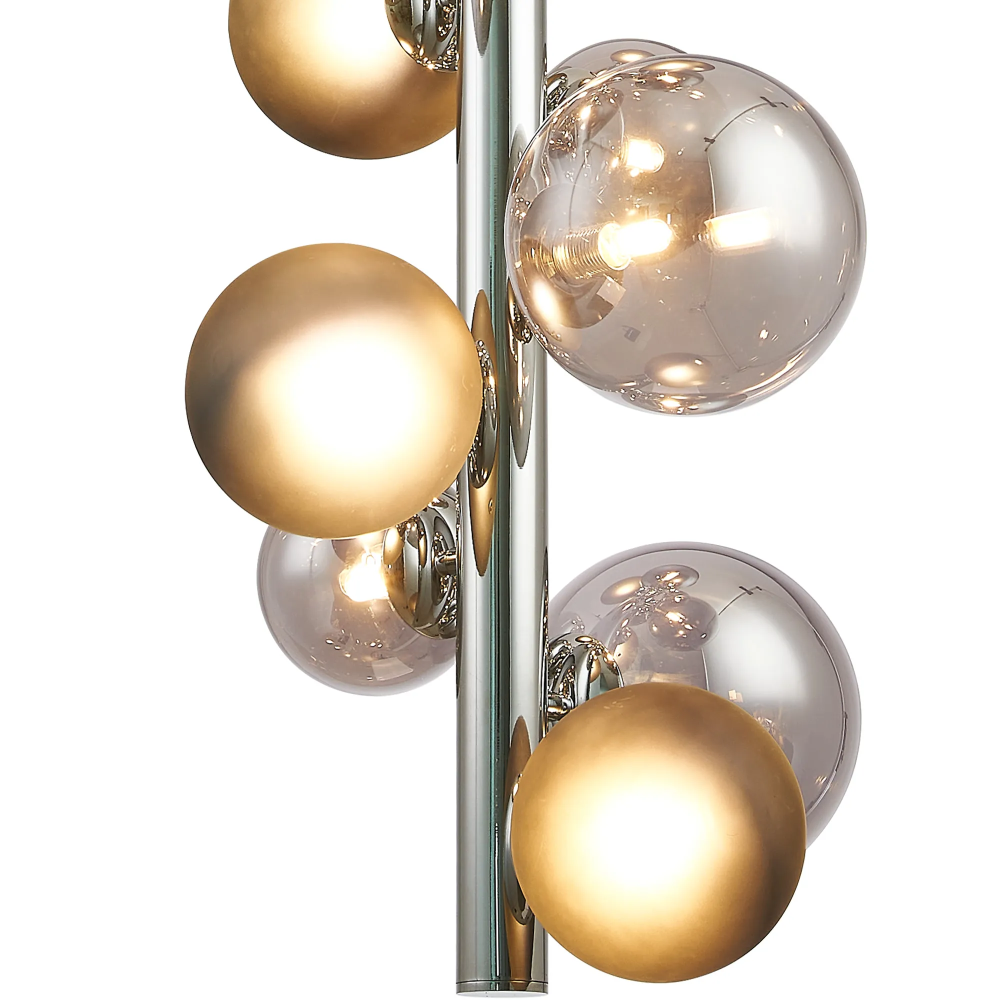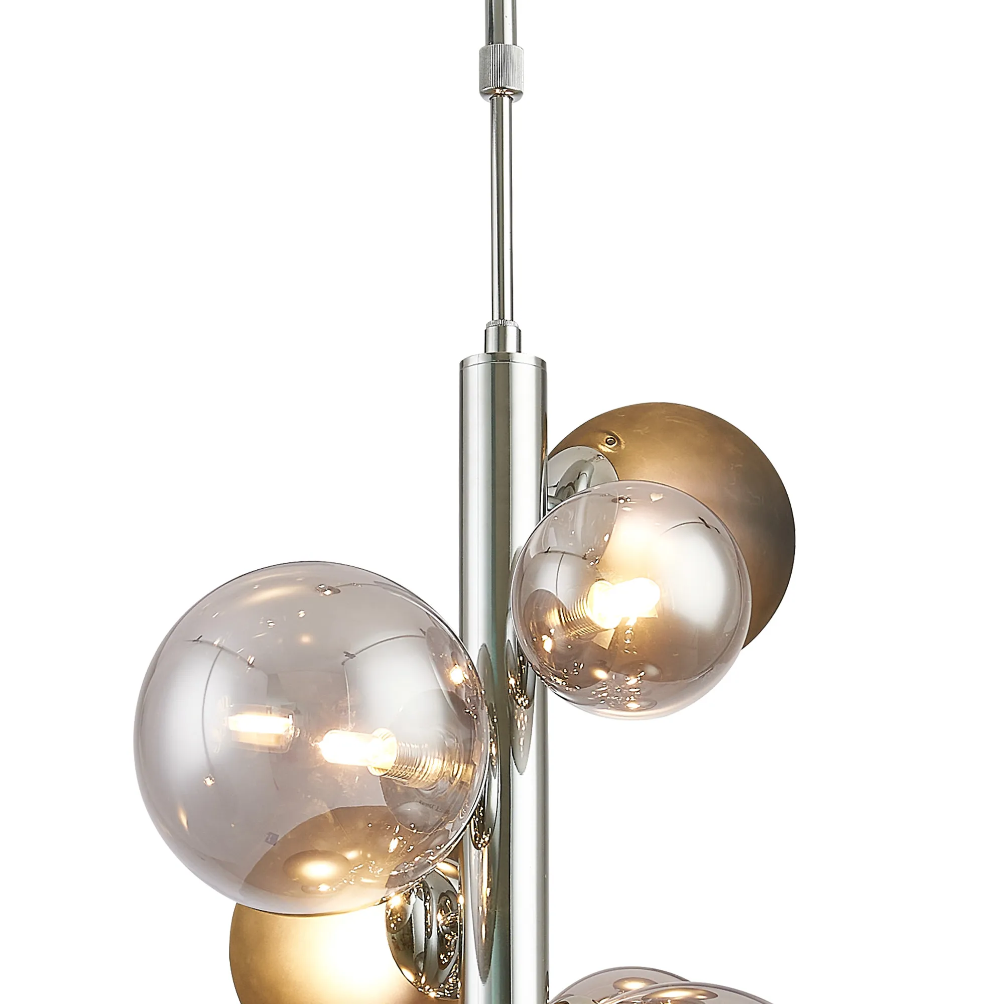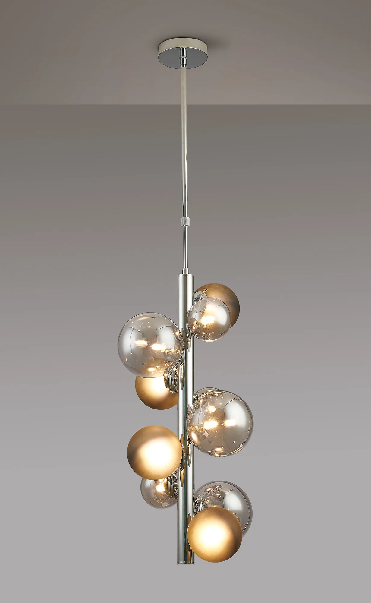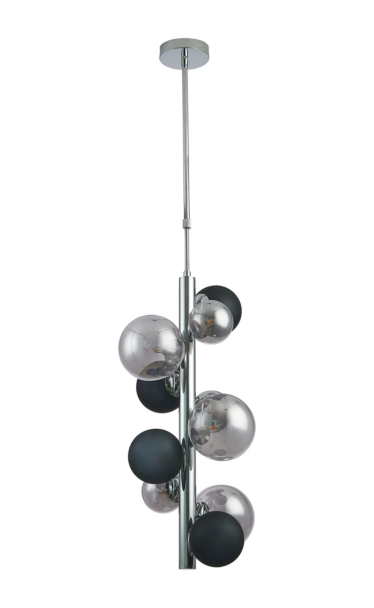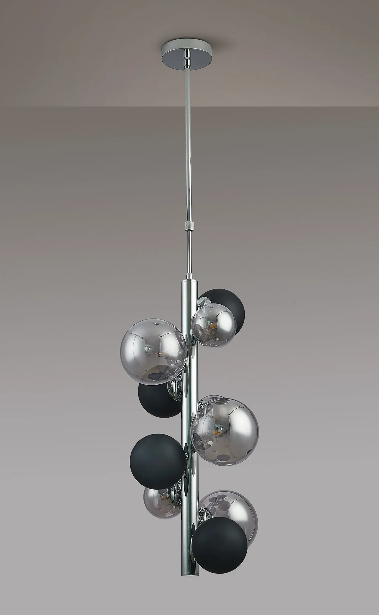 Queenstown 31cm Vertical Linear Telescopic Pendant, 6 x G9, Polished Chrome, Smoke Plated/Black Frosted Mixed Size Glass