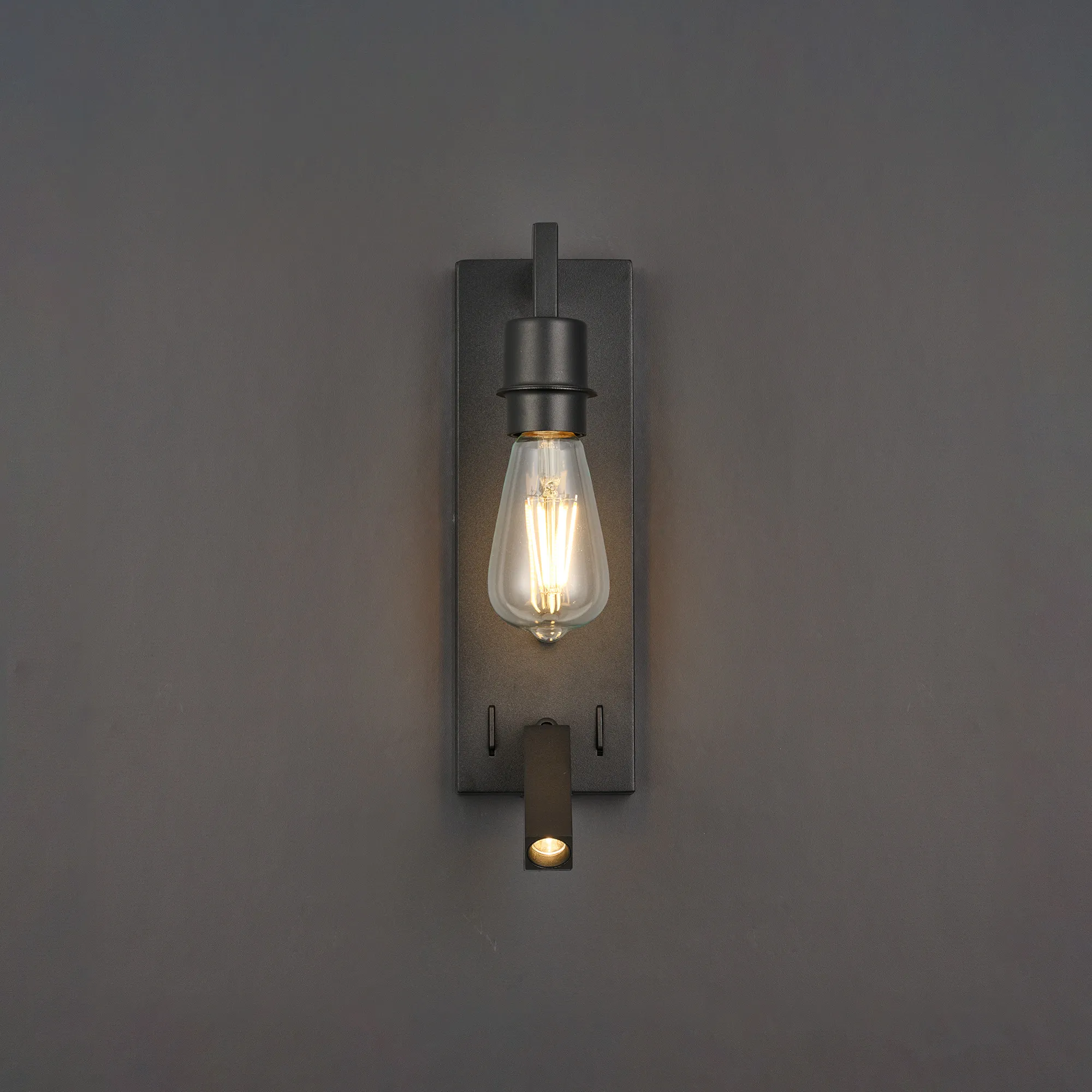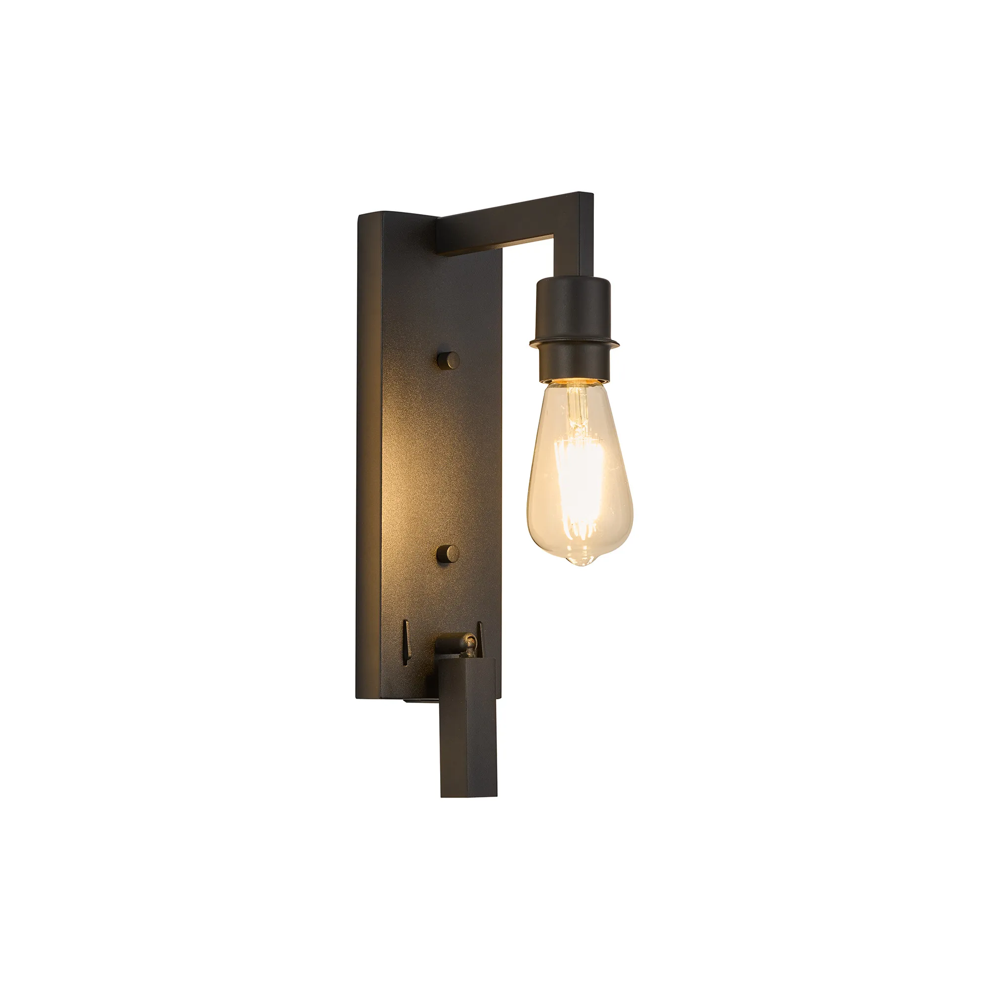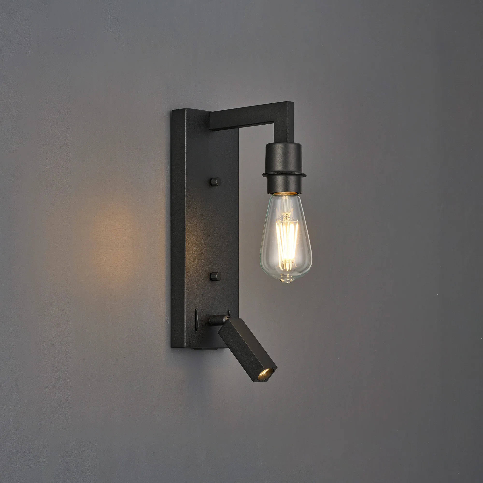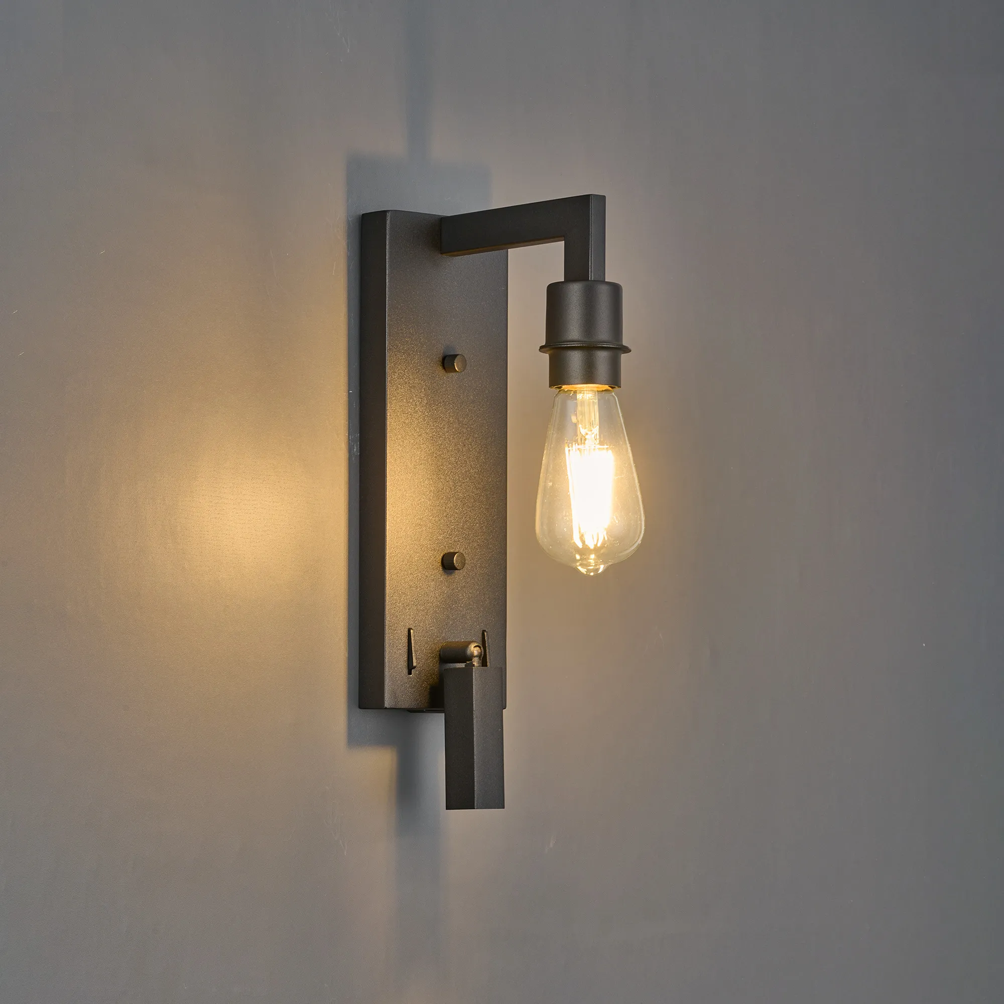 Armstrong Wall Lamp Switched Over Arm (FRAME ONLY) Without Shade, 1 Light E27, Satin Black
