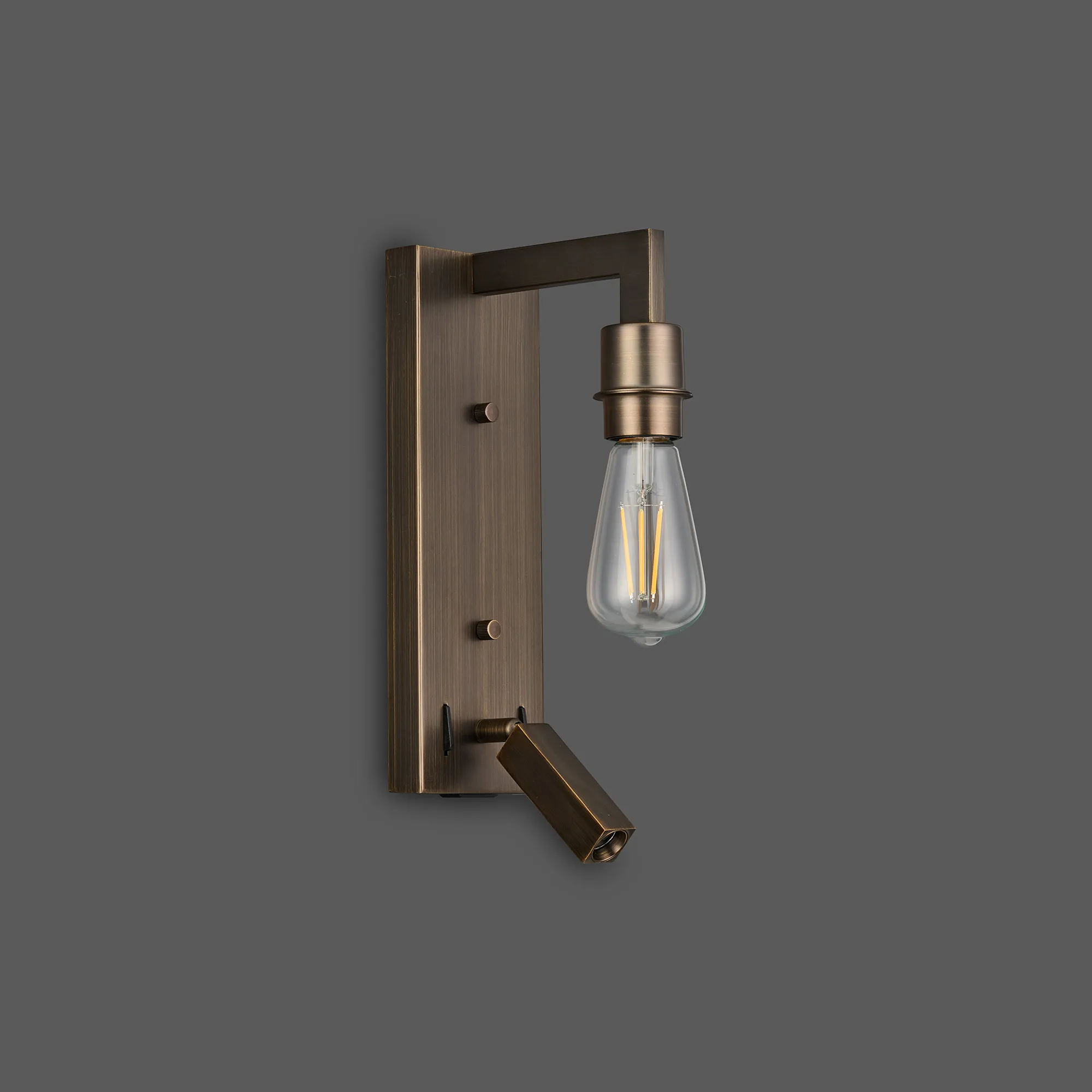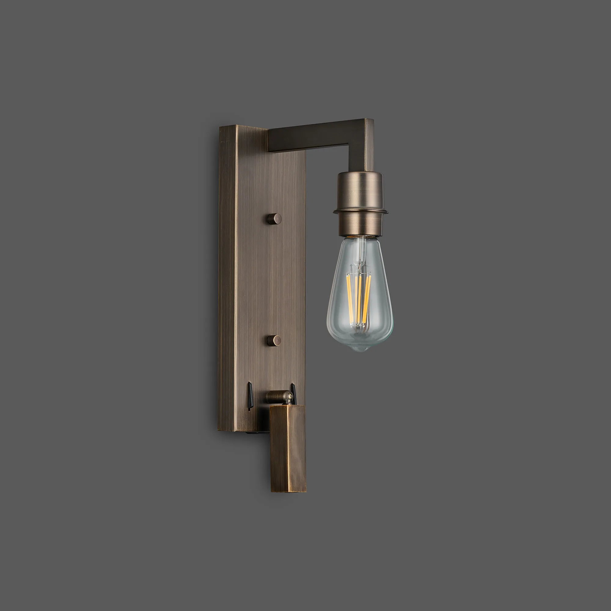 Armstrong Wall Lamp Switched Over Arm (FRAME ONLY) Without Shade, 1 Light E27, Matt Bronze