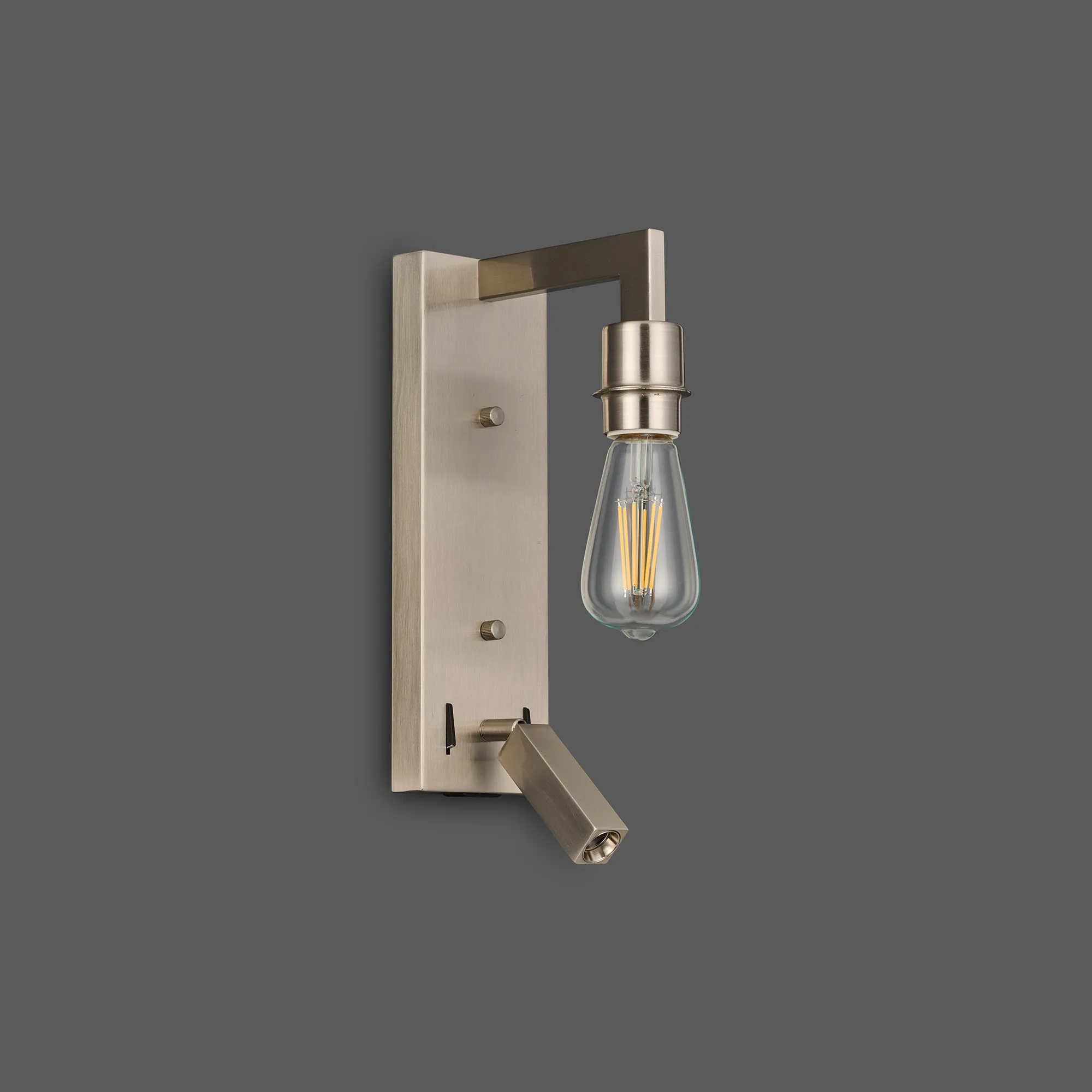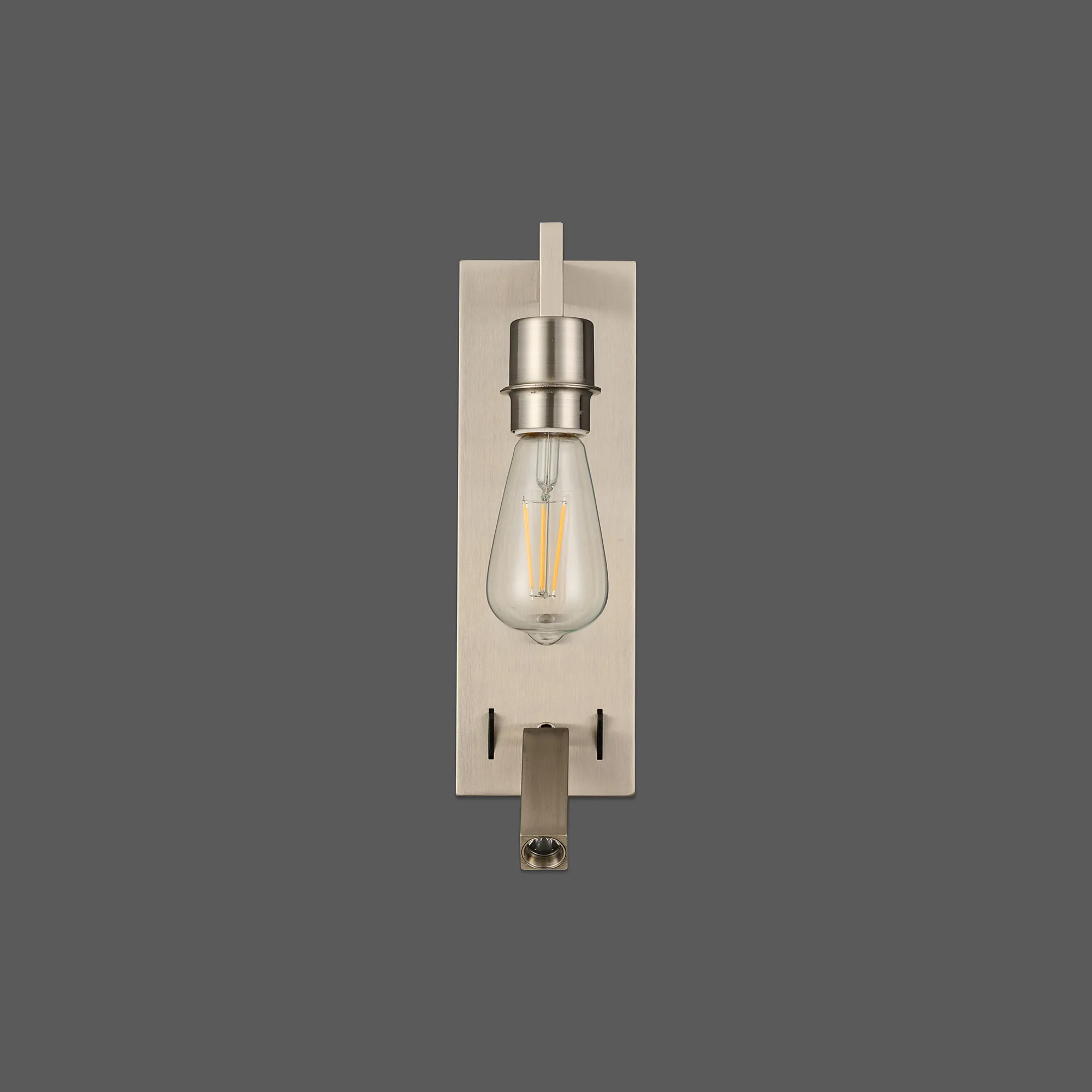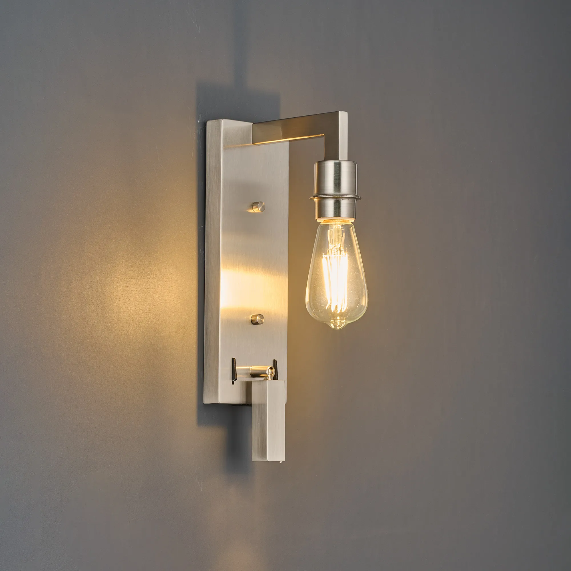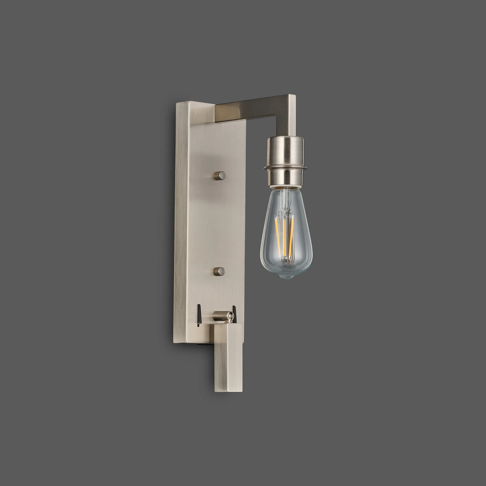 Armstrong Wall Lamp Switched Over Arm (FRAME ONLY) Without Shade, 1 Light E27, Satin Nickel