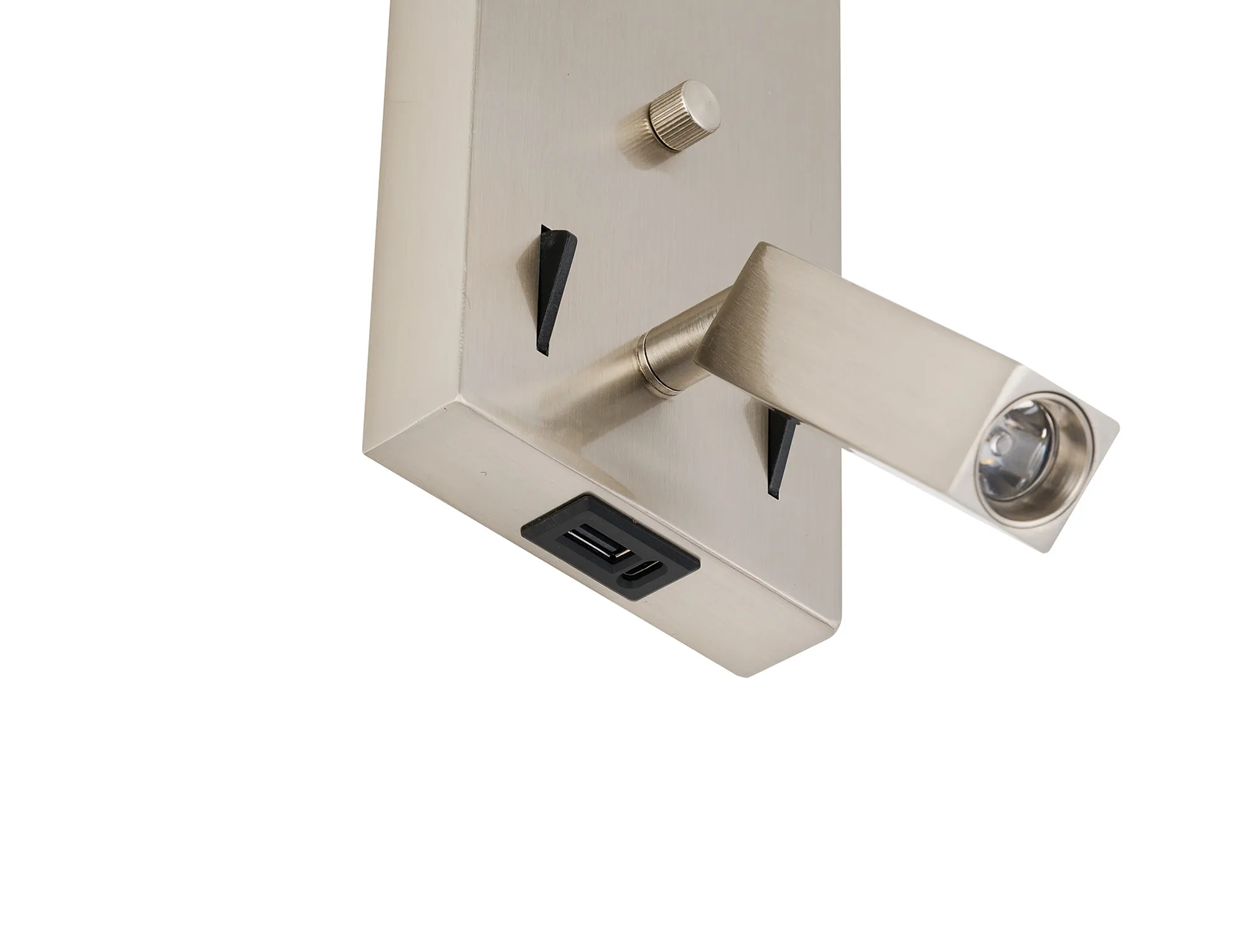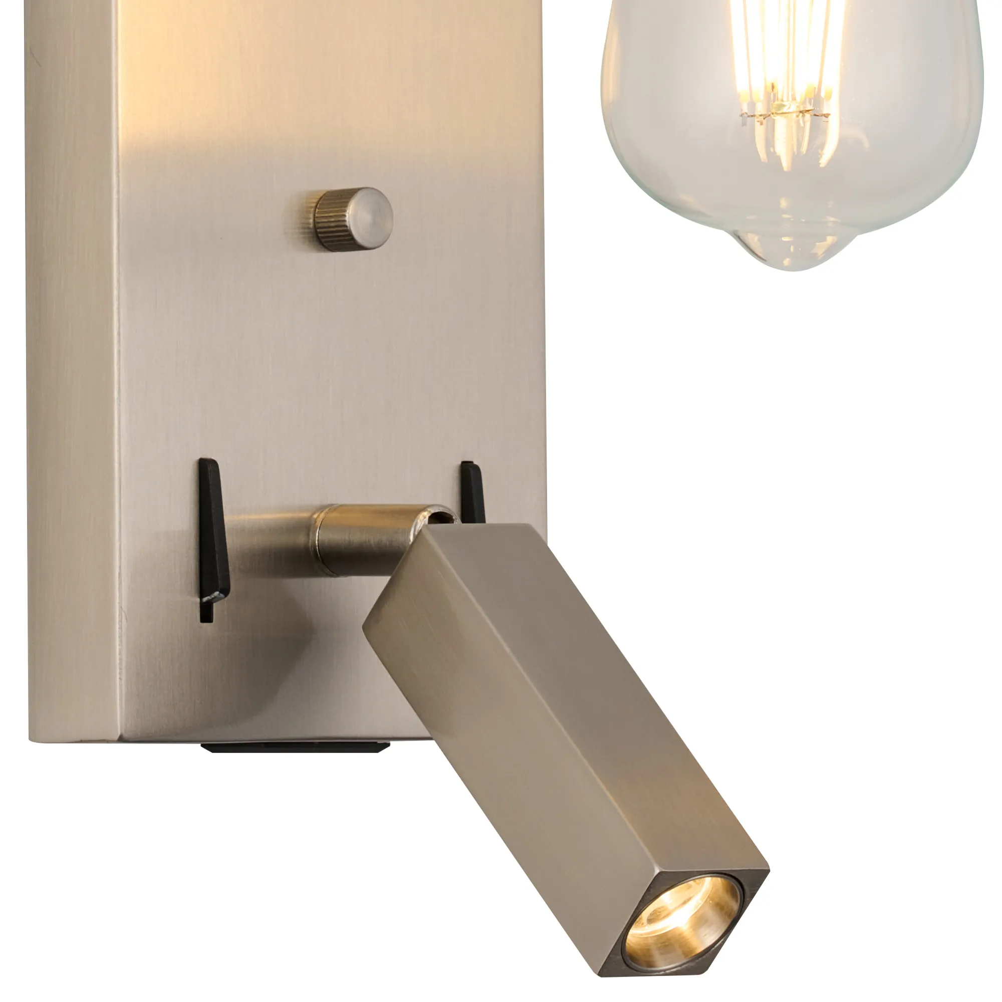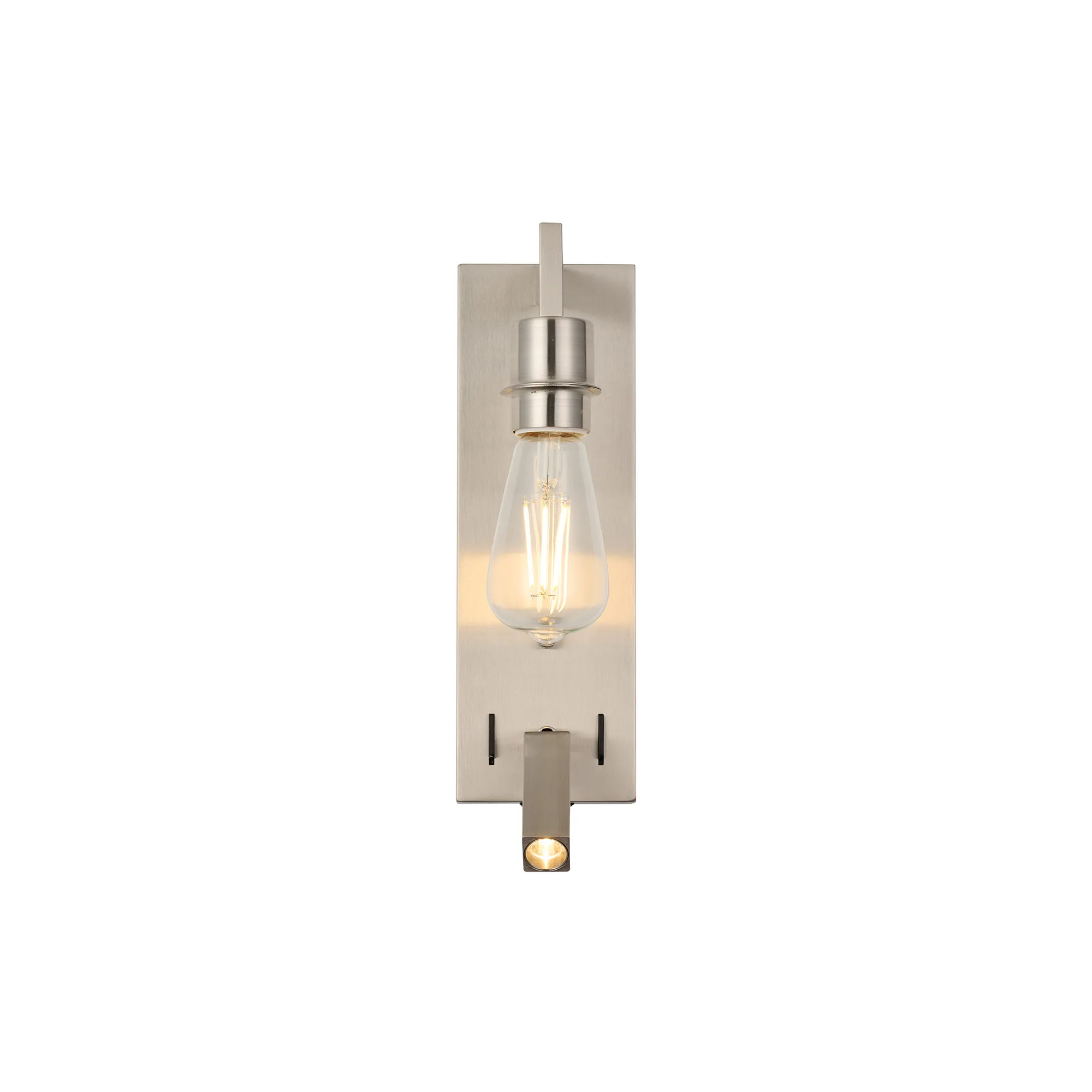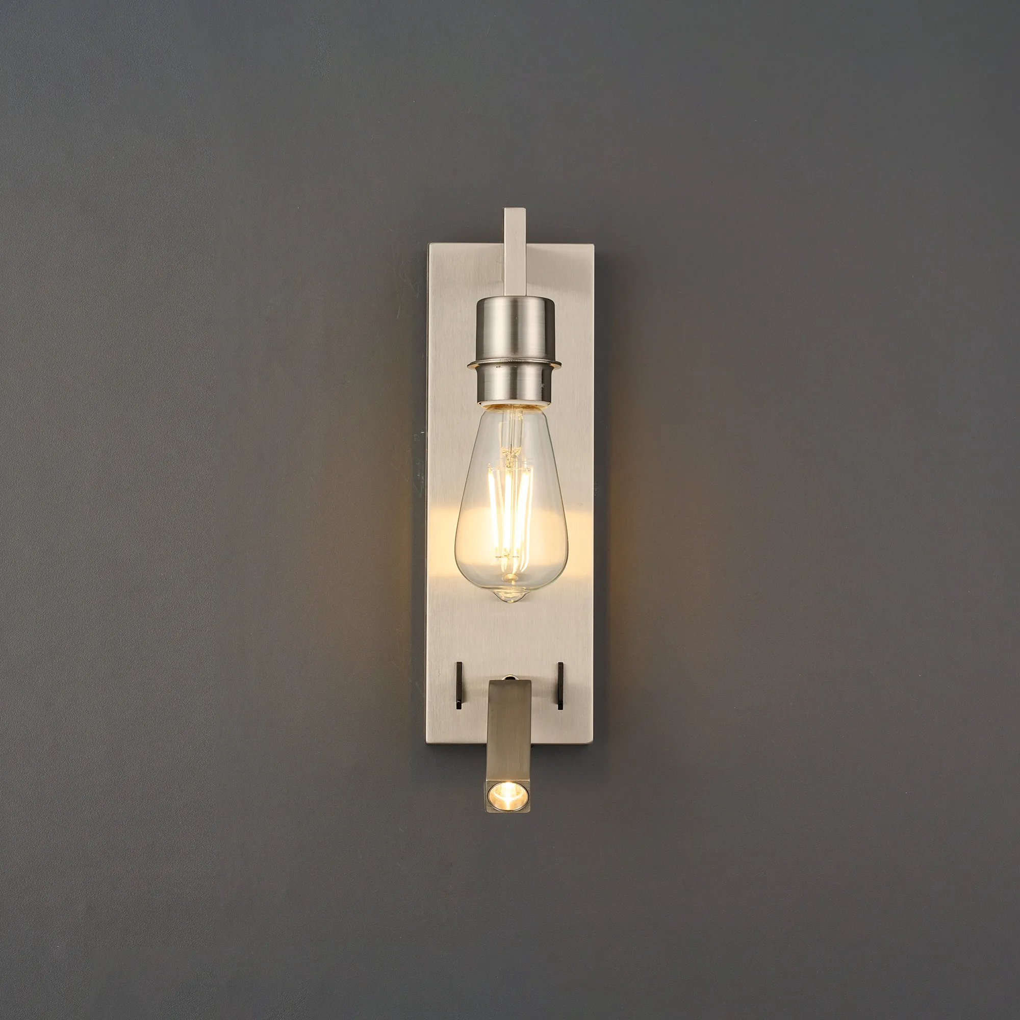 Armstrong Wall Lamp Switched Over Arm (FRAME ONLY) Without Shade, 1 Light E27, Satin Nickel