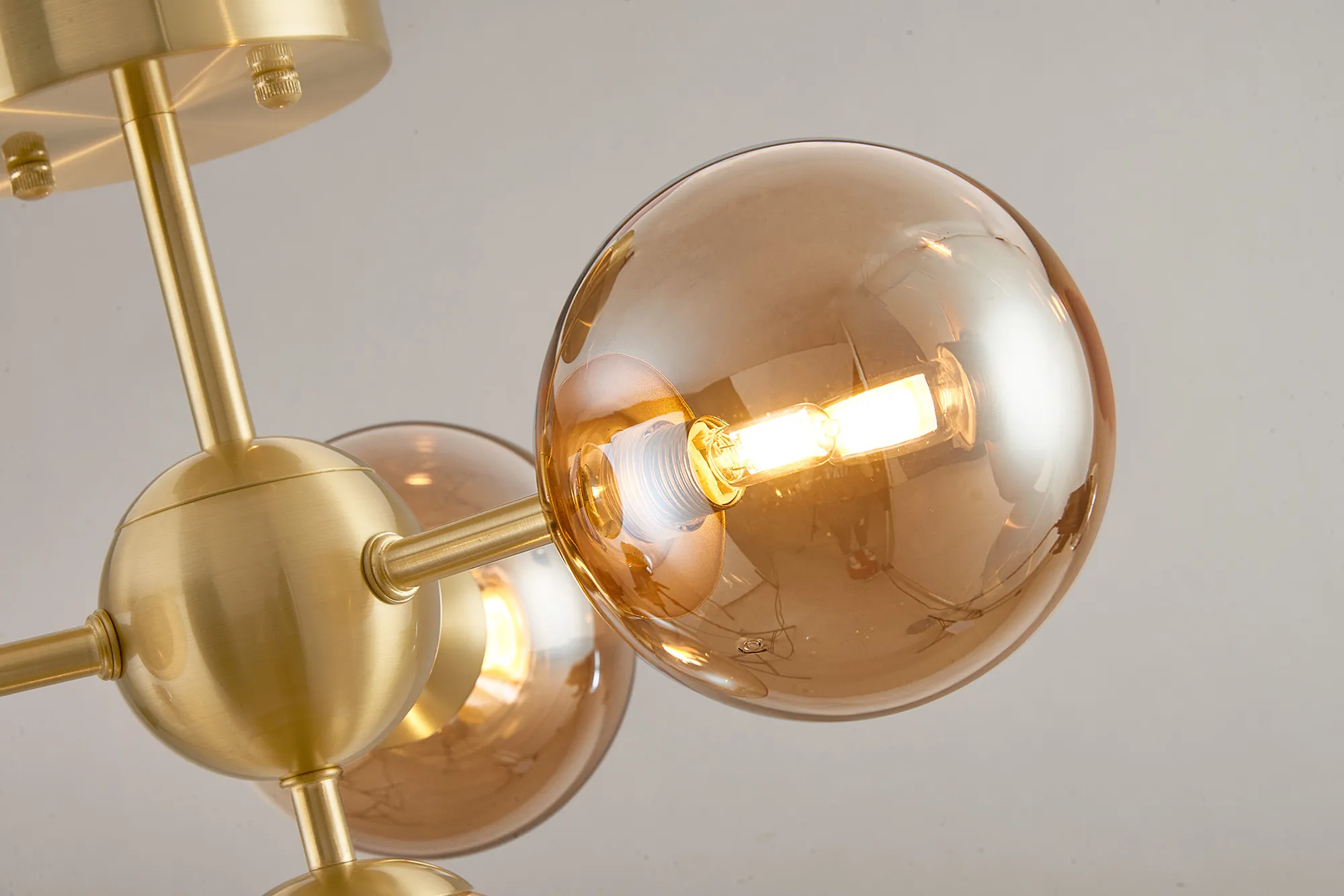 OTHER Wayburn Semi-Flush Multi Arm Ceiling Light, 4 x G9, Satin Gold, Amber Plated