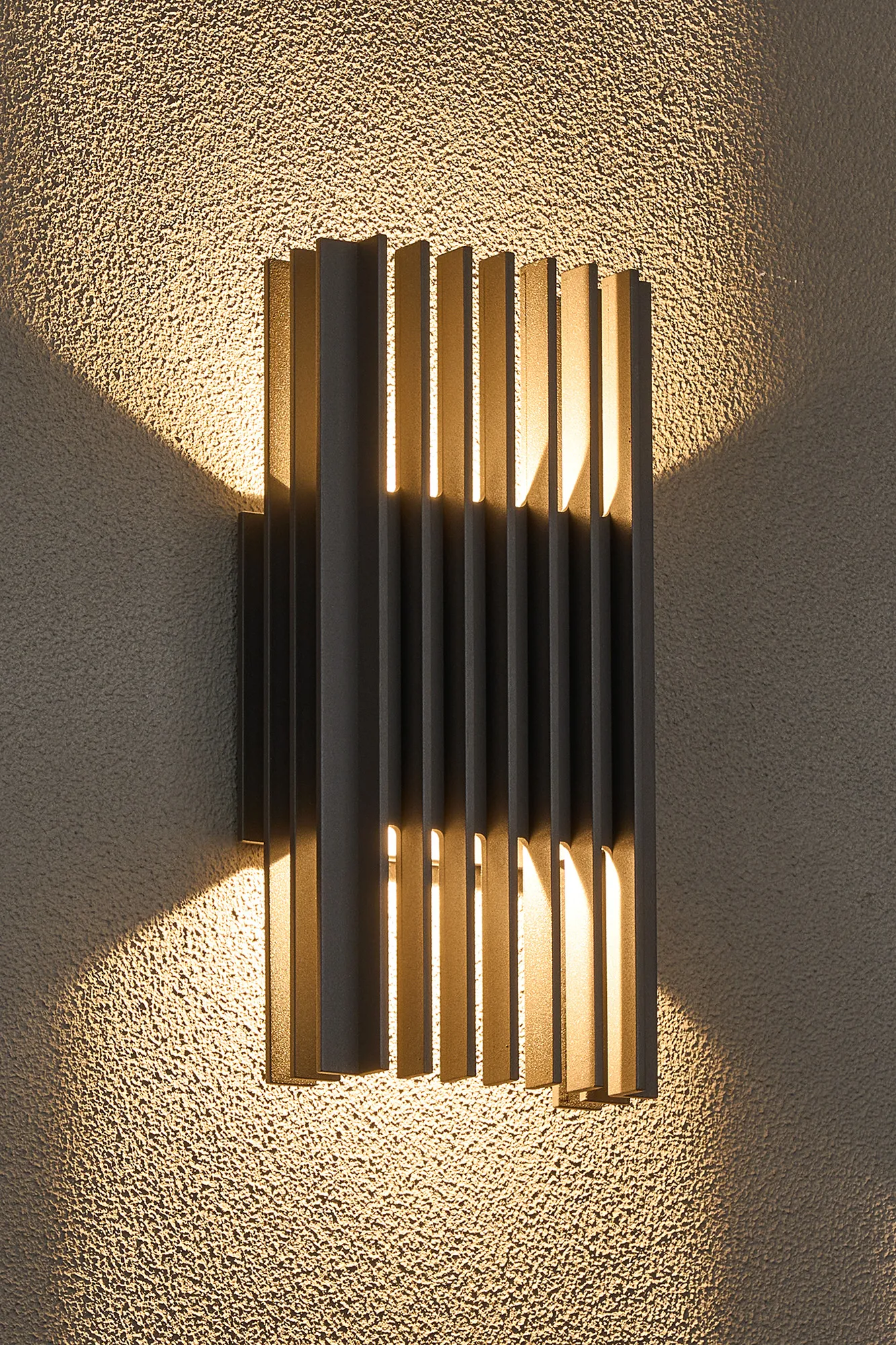 Introducing the Larkhall outdoor collection, showcasing IP65 wall lamps available in anthracite or cacao finishes, paired with a selection of unique patterned shades for a touch of exclusivity in your outdoor setting. Tailored to fit various dimensions, these lamps feature integrated up and downwards 6.5W LEDs emitting a warm 3000K glow, perfect for creating a cozy ambiance in your outdoor area.