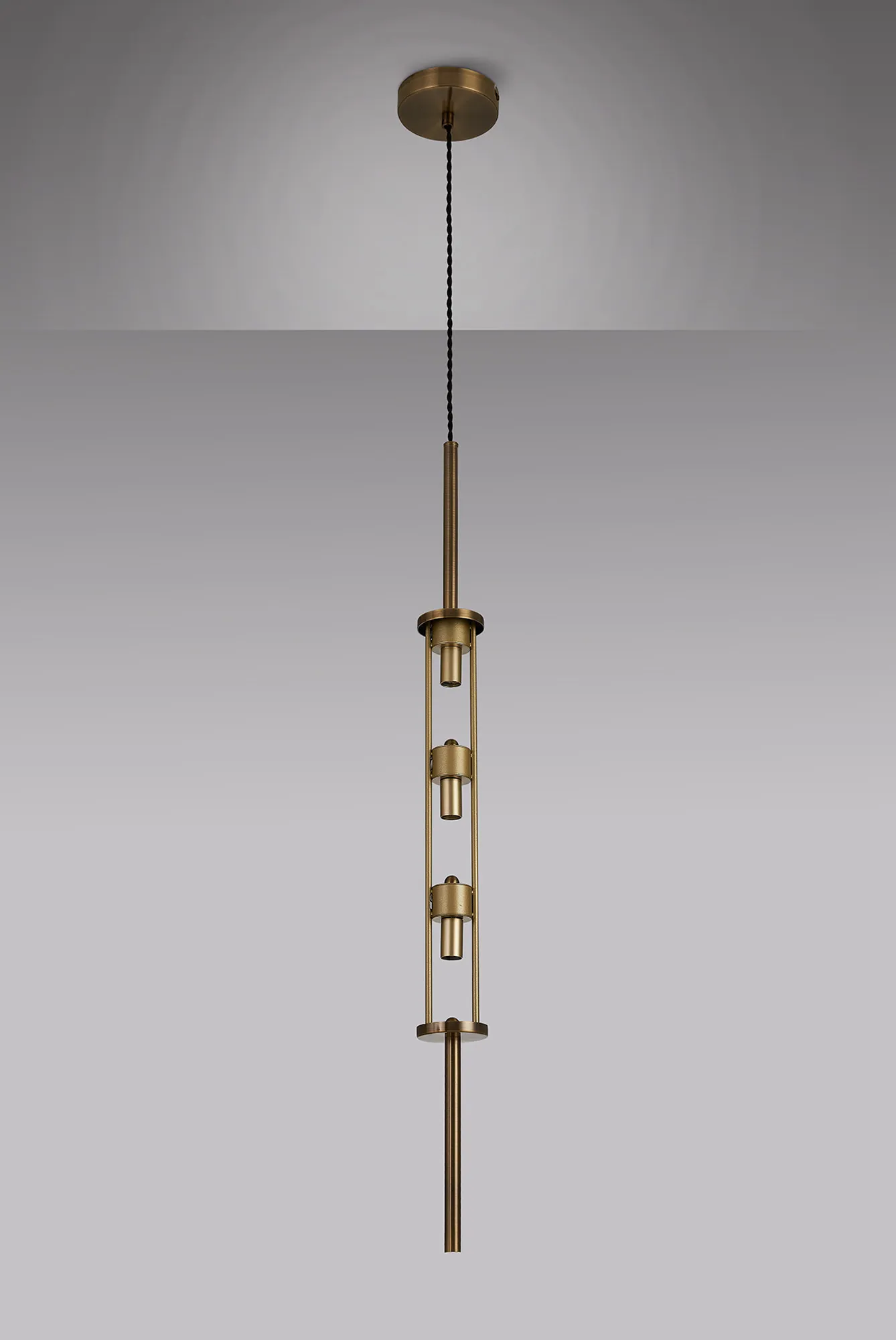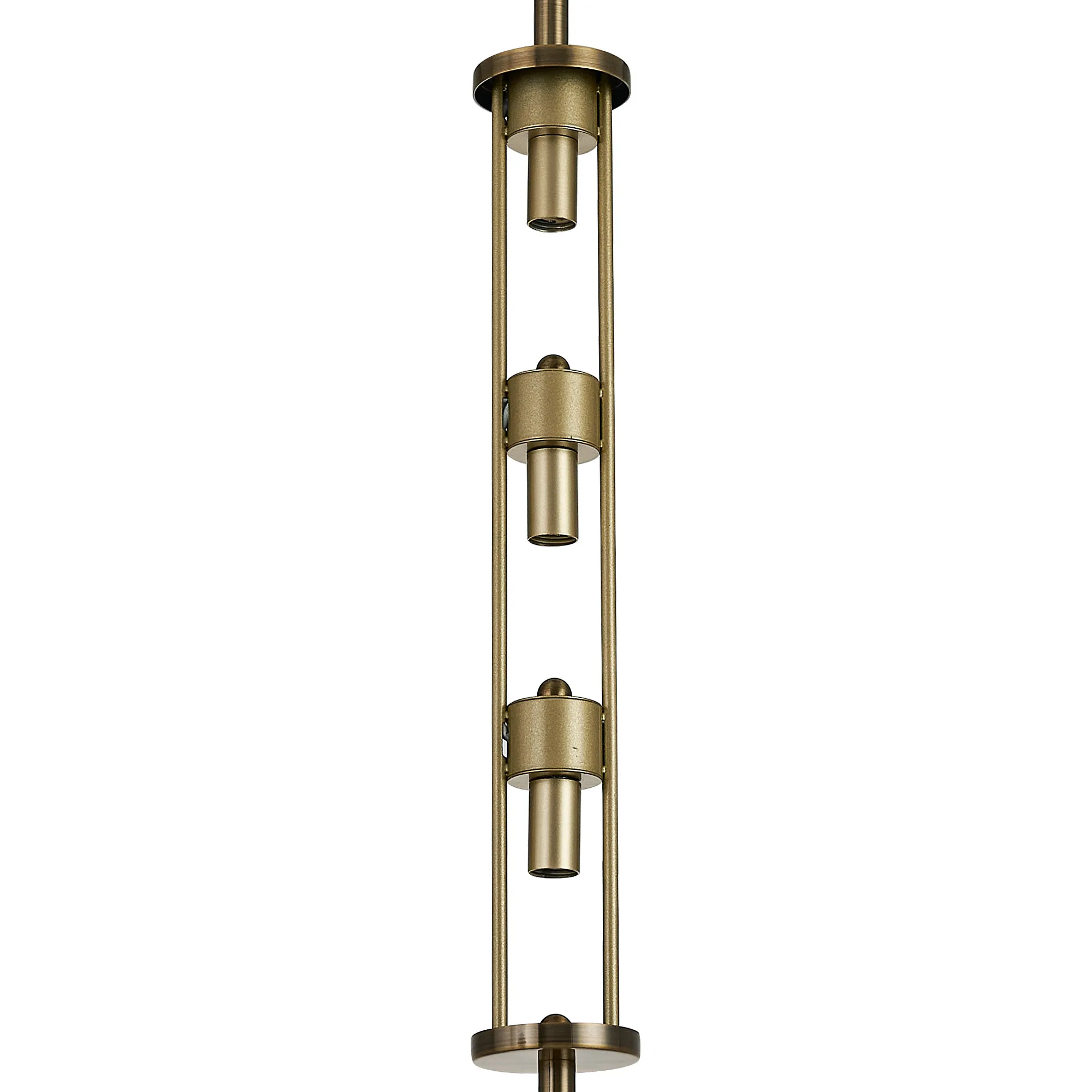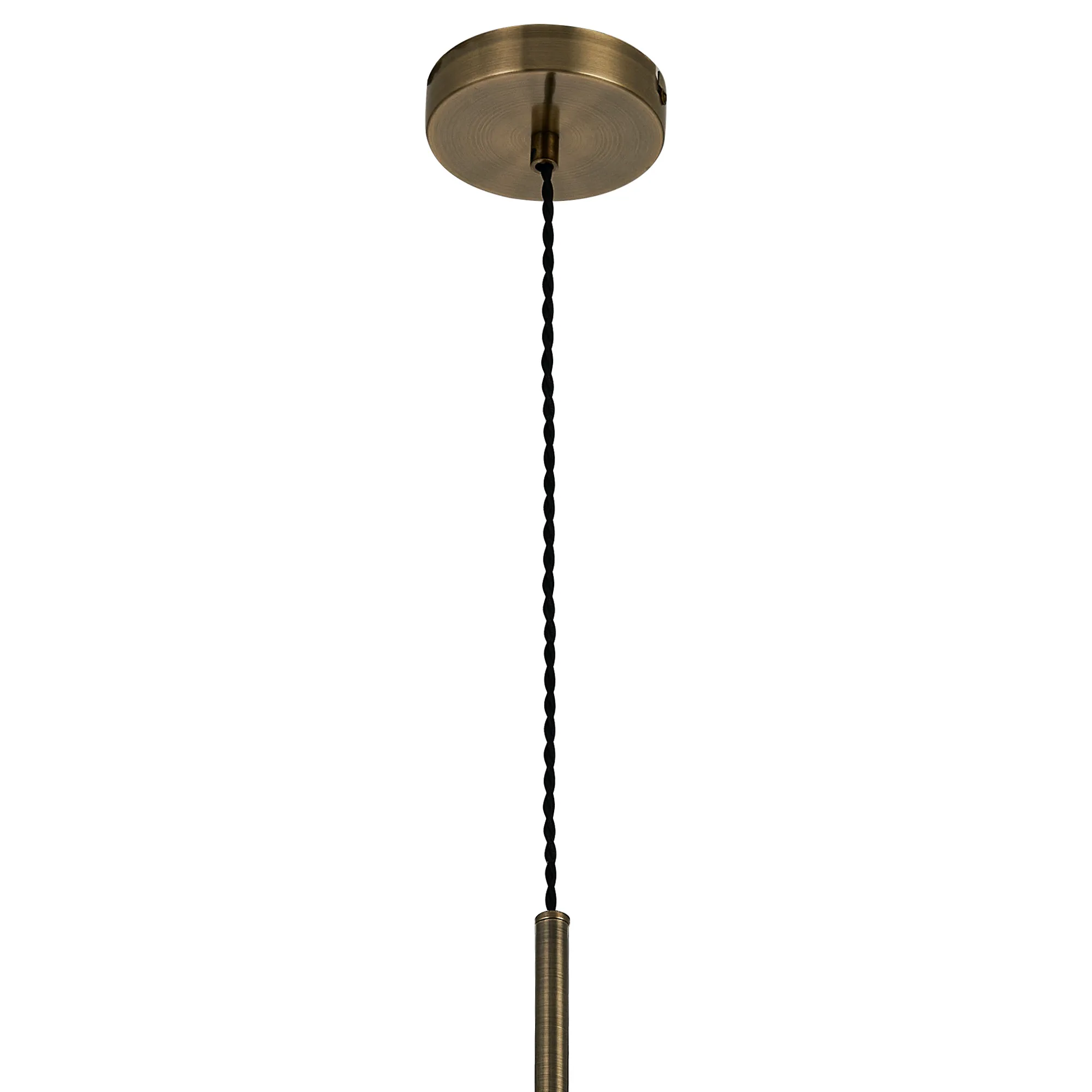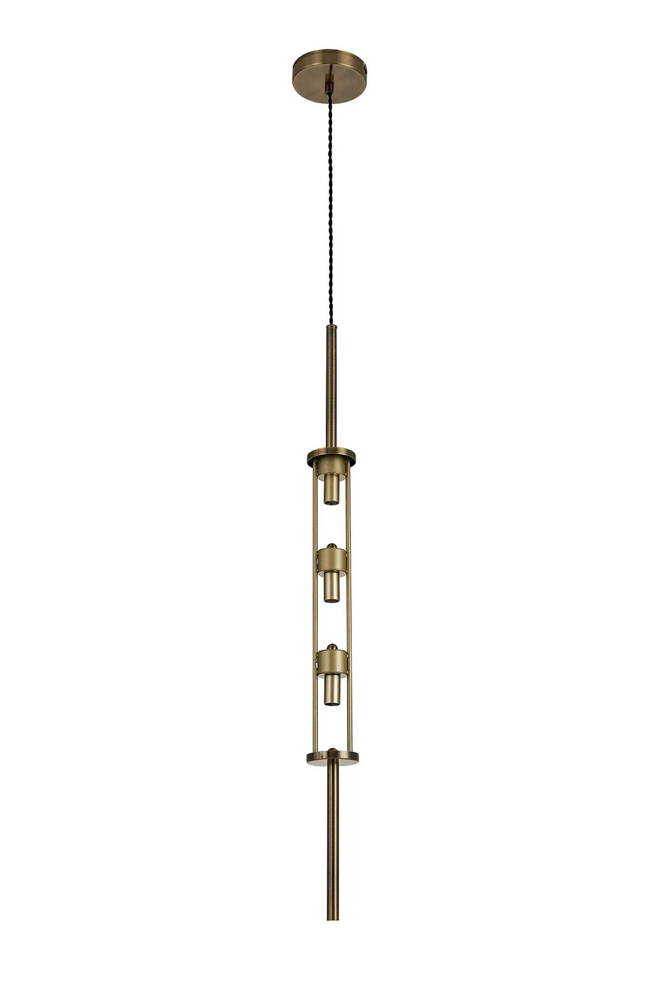The pendant, table and floor lamp featured in the Leigh range host a range of colour combinations with their globe glass; colourful and playful with Blue, Pink and Green or subtle and sleek with Smoke and Amber. These glass pieces, encircling the G9 lamp holders, have a ridged moulding enhancing the luminous sheen given off their coloured tint. The glass fixes to the slim tubular stem, finished in antique brass, in such a way that imitates beads being threaded along string. This peculiar composition can be partnered with one of the two wall lamps available with either a smoked or amber glass to tie in with the pendant, table and floor lamp.